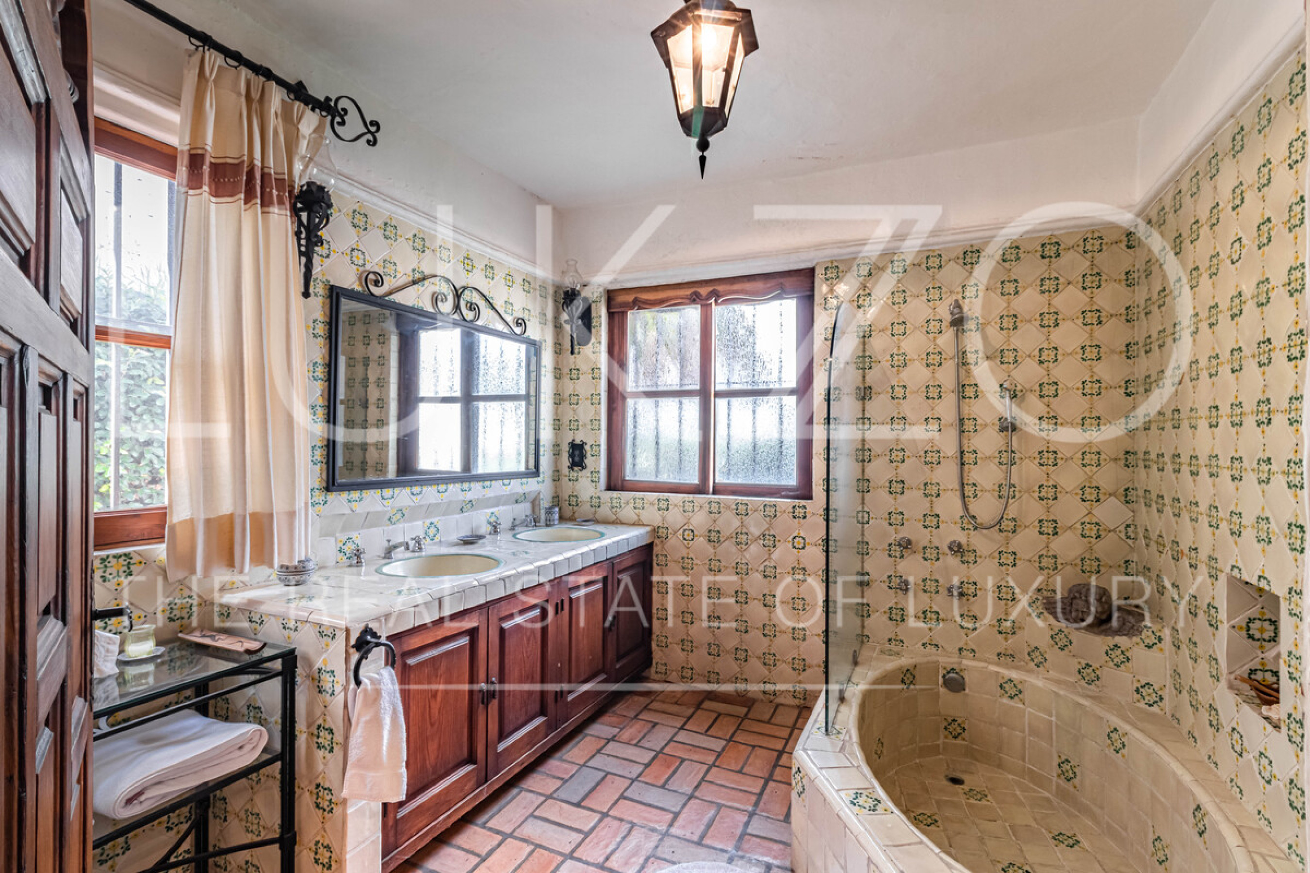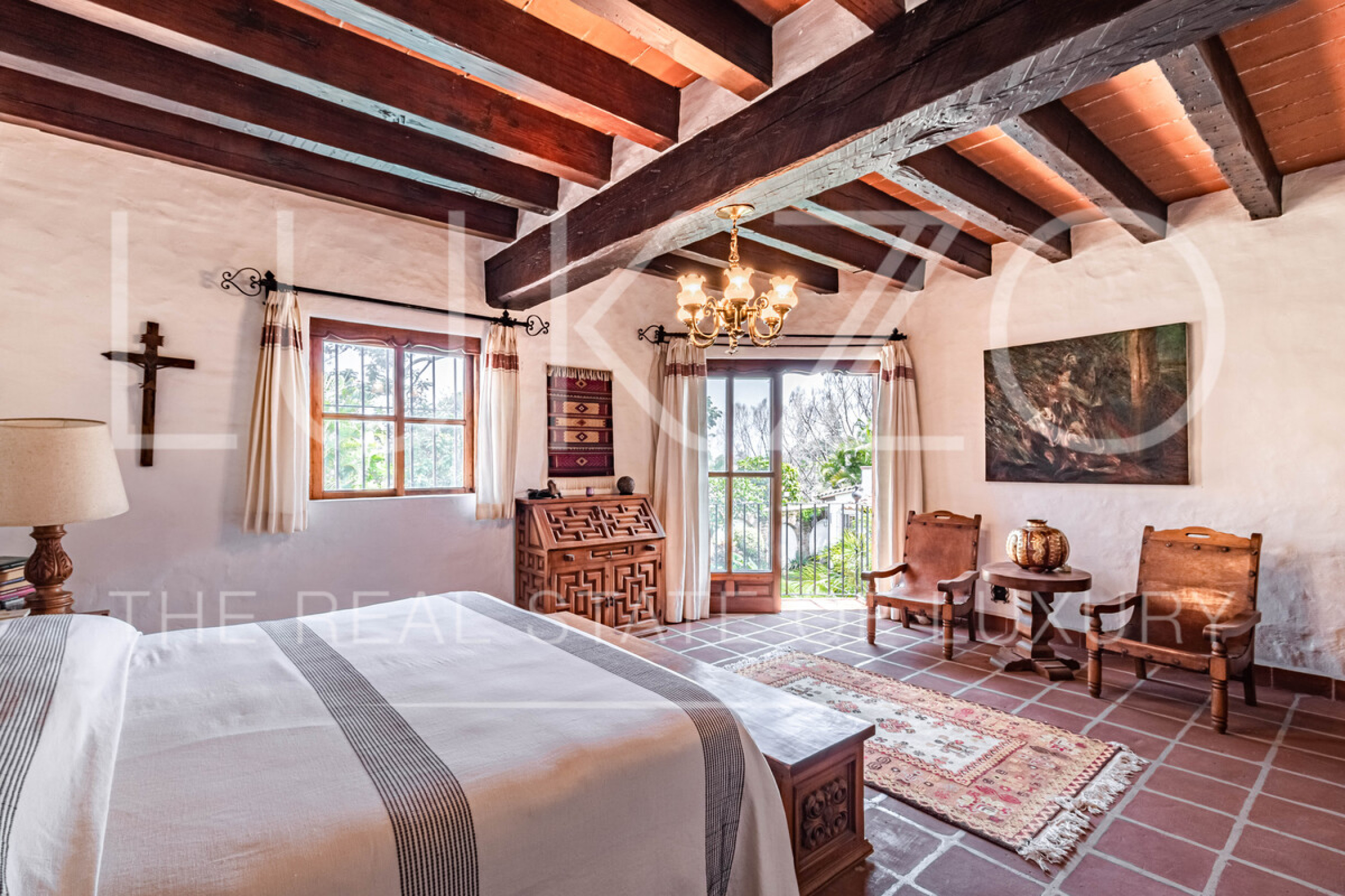 Entre sus principales características se encuentran sus 4 recámaras, 4 ½ baños, cuarto de servicio con baño y cocineta, antecomedor, comedor, cocina equipada, estudio, terrazas, jardín, alberca con bomba de calor, jacuzzi, sauna-vapor, bodega, lavandería, gas estacionario, cisterna, hidroneumático, estacionamiento para 4 autos, y mascotas permitidas.