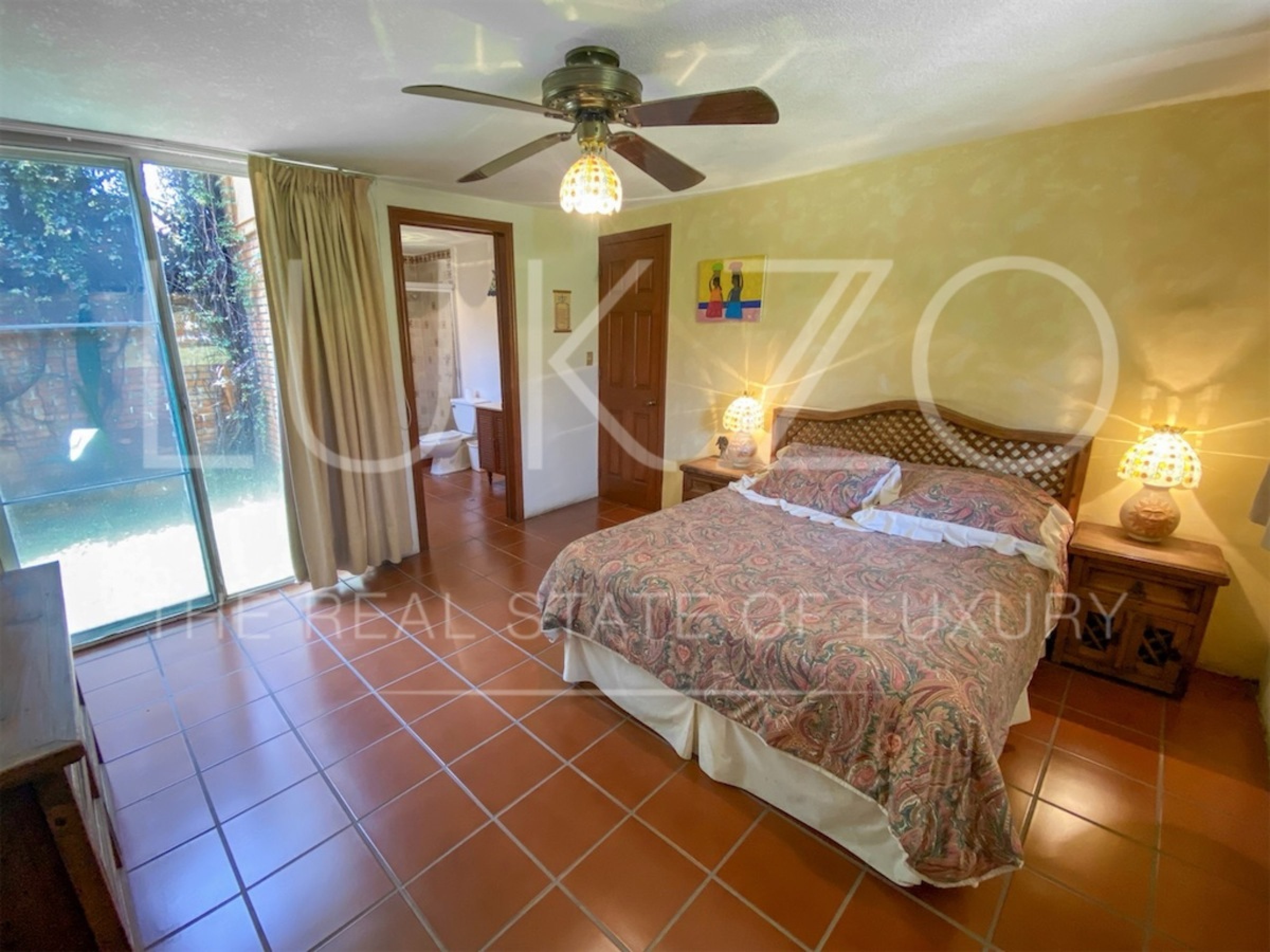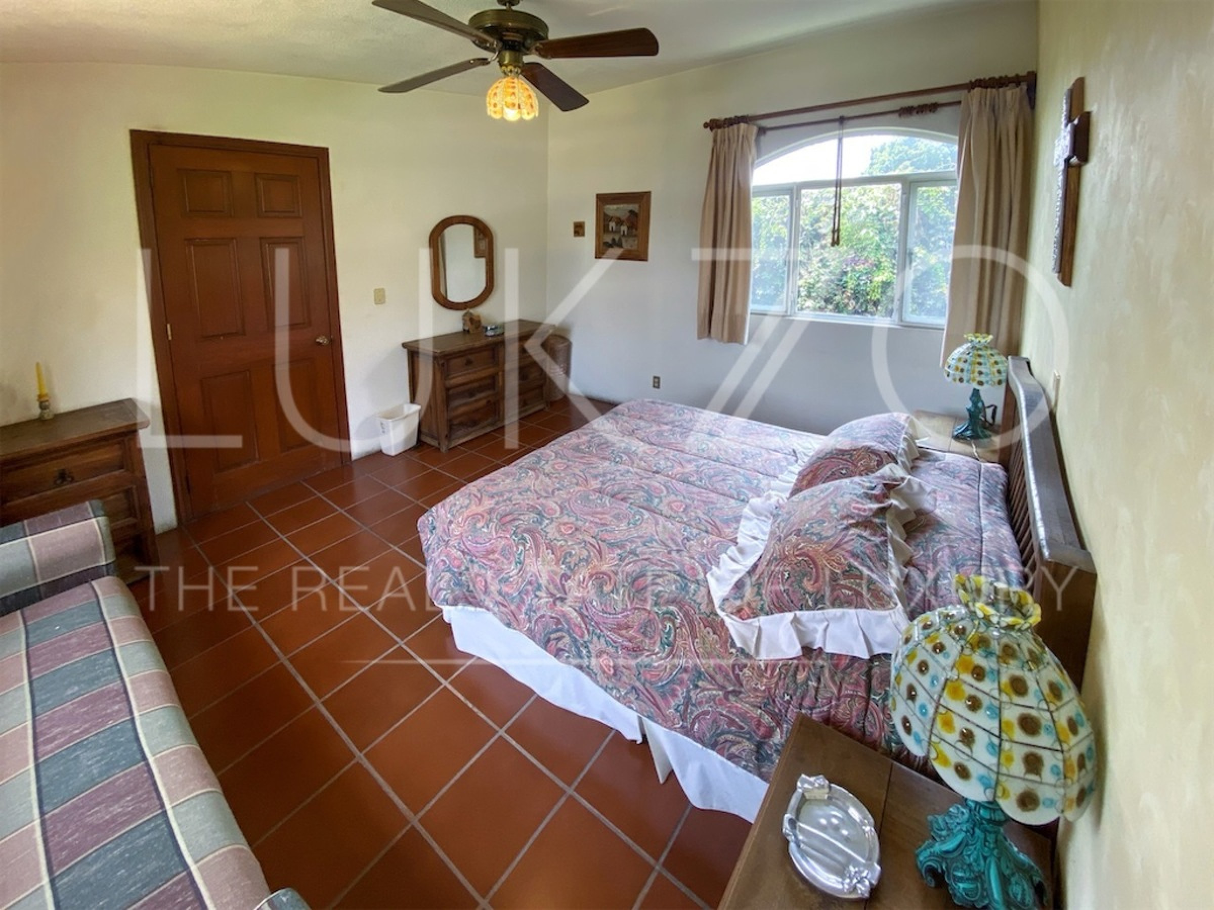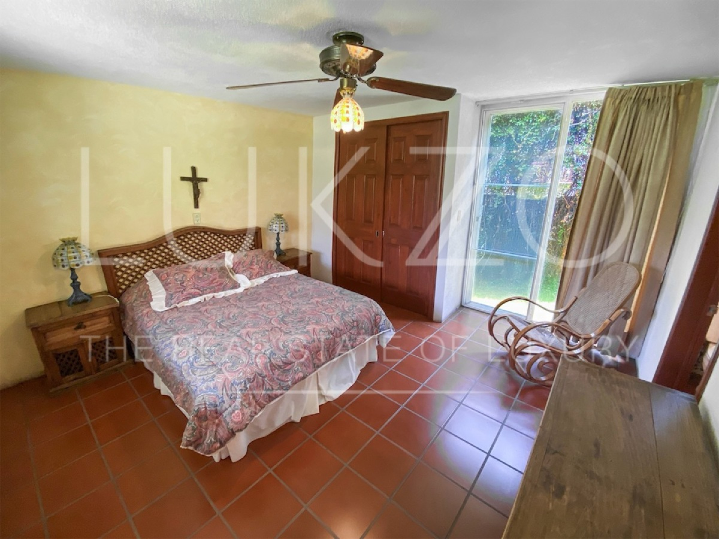 La casa principal cuenta con 7 recámaras y 5.5 baños, además de espacios muy acogedores como la sala con chimenea, comedor, cocina equipada, antecomedor y terraza con vista al jardín.