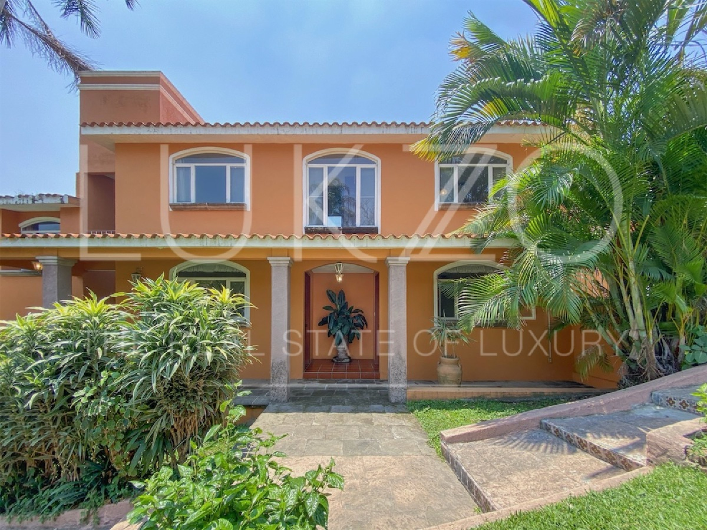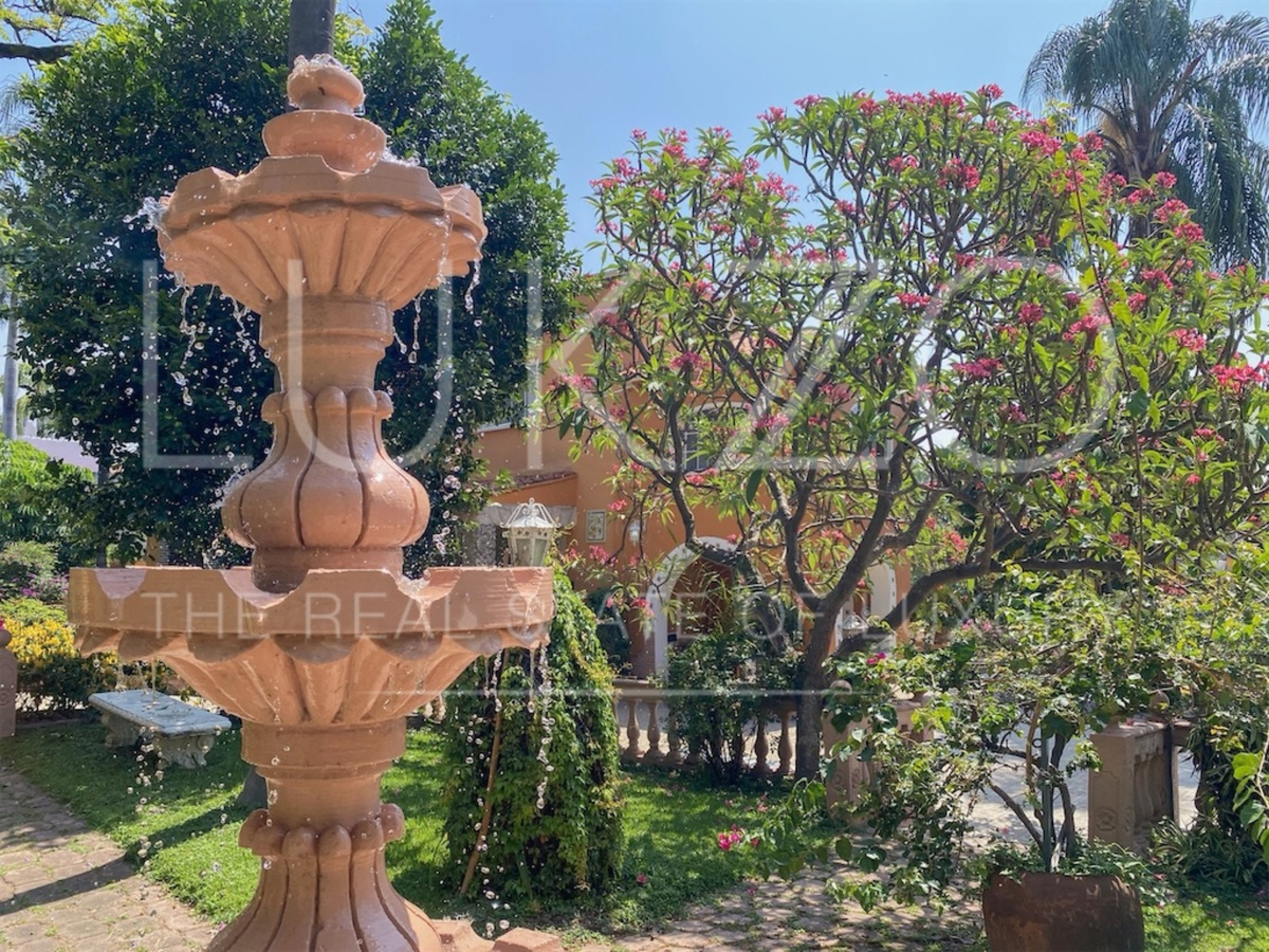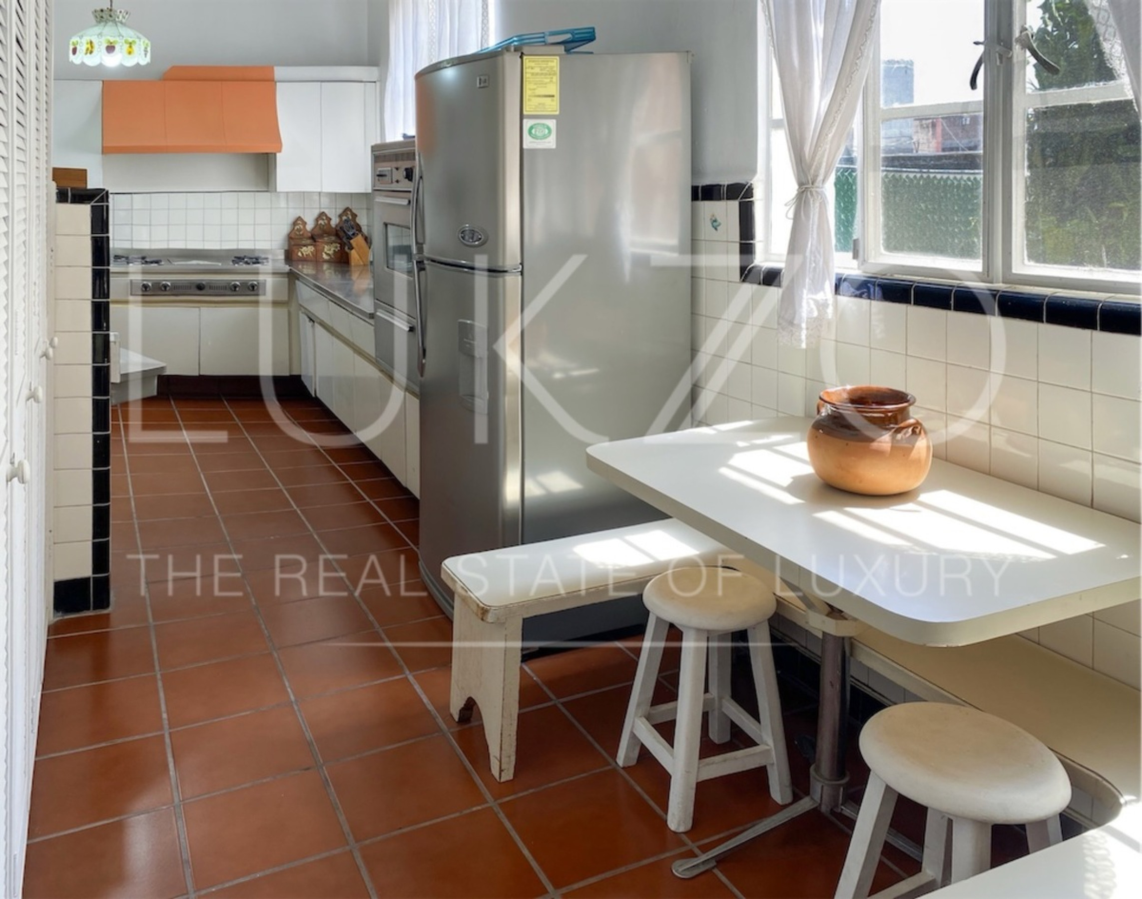 Cuenta con un extenso jardín maduro, alberca, terraza para eventos y estacionamiento para 13 autos.