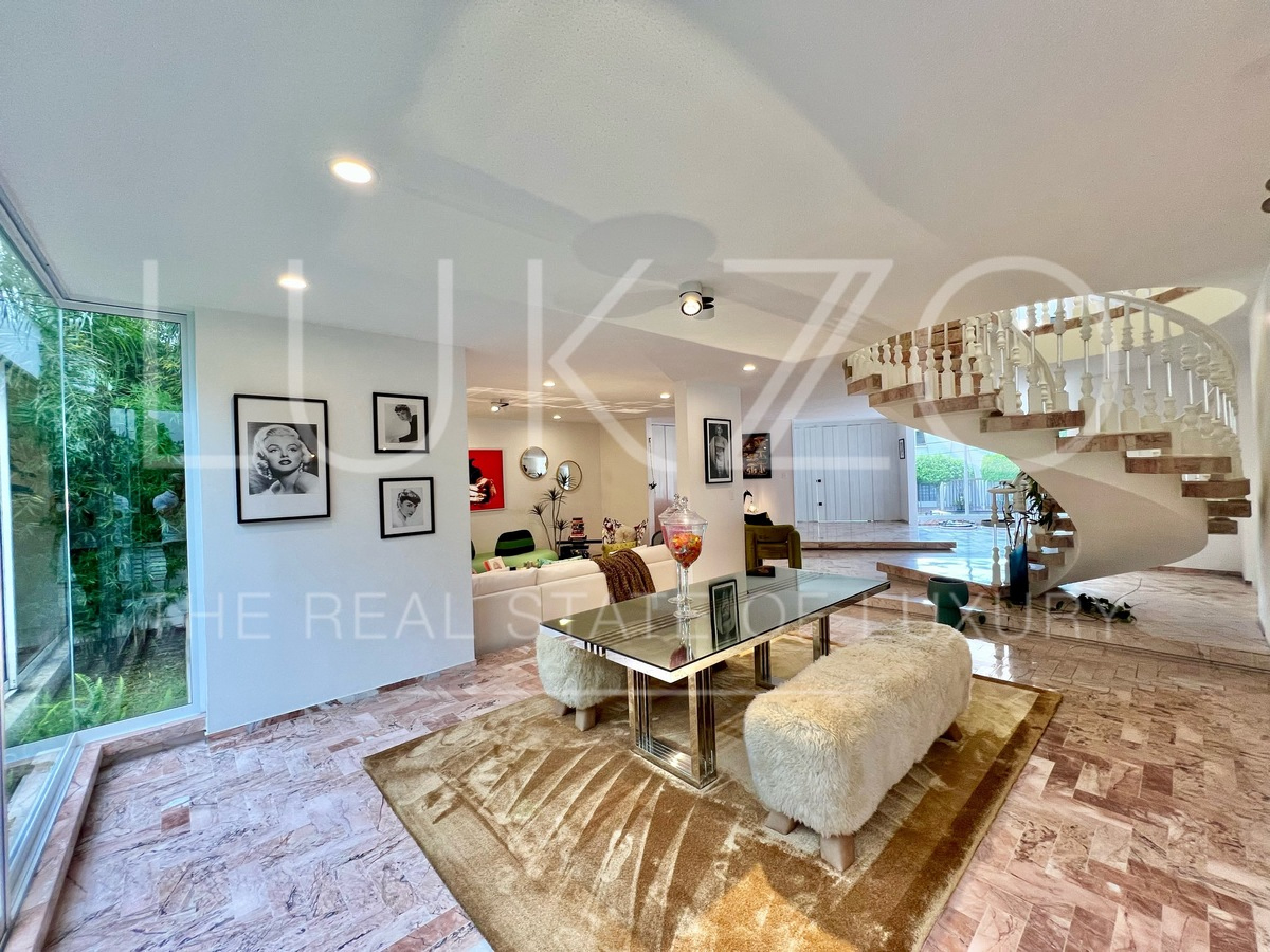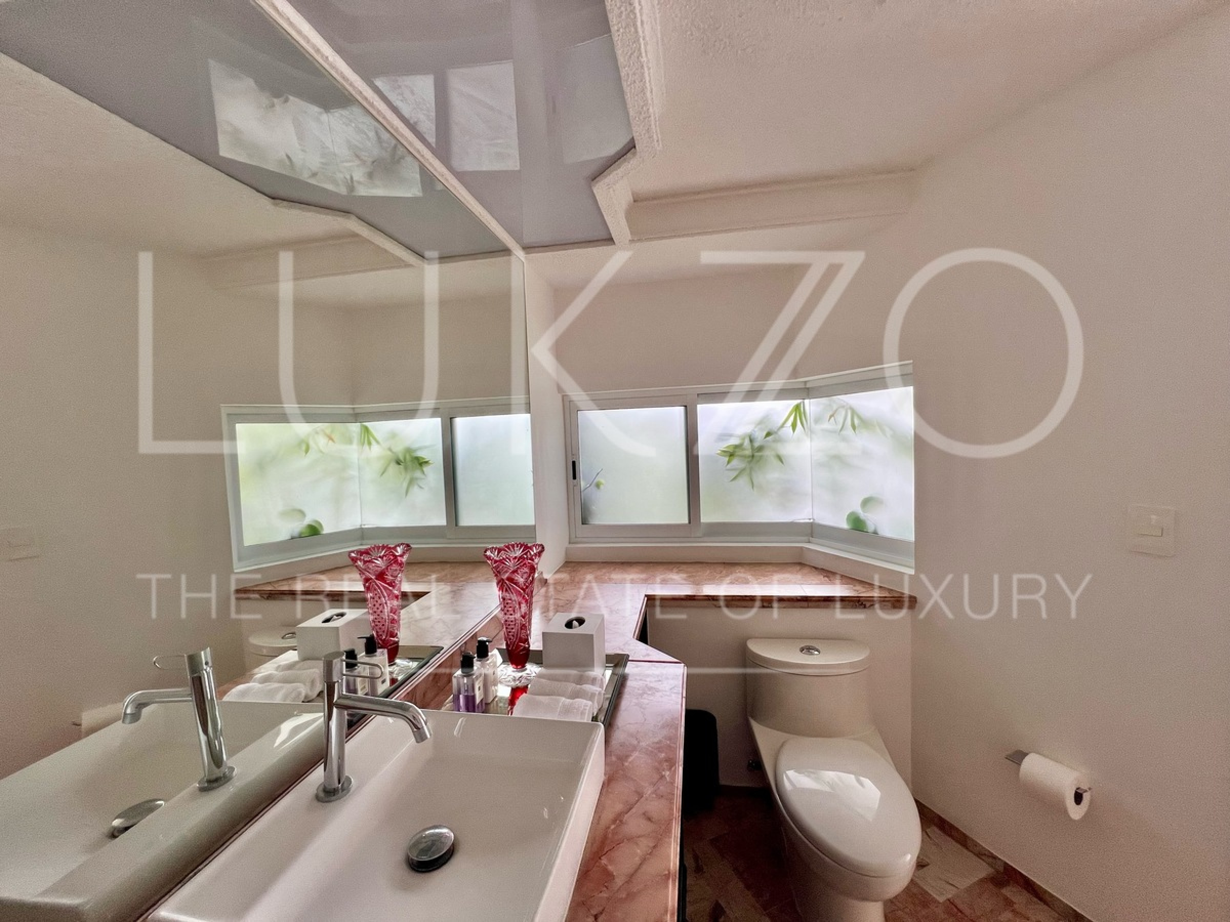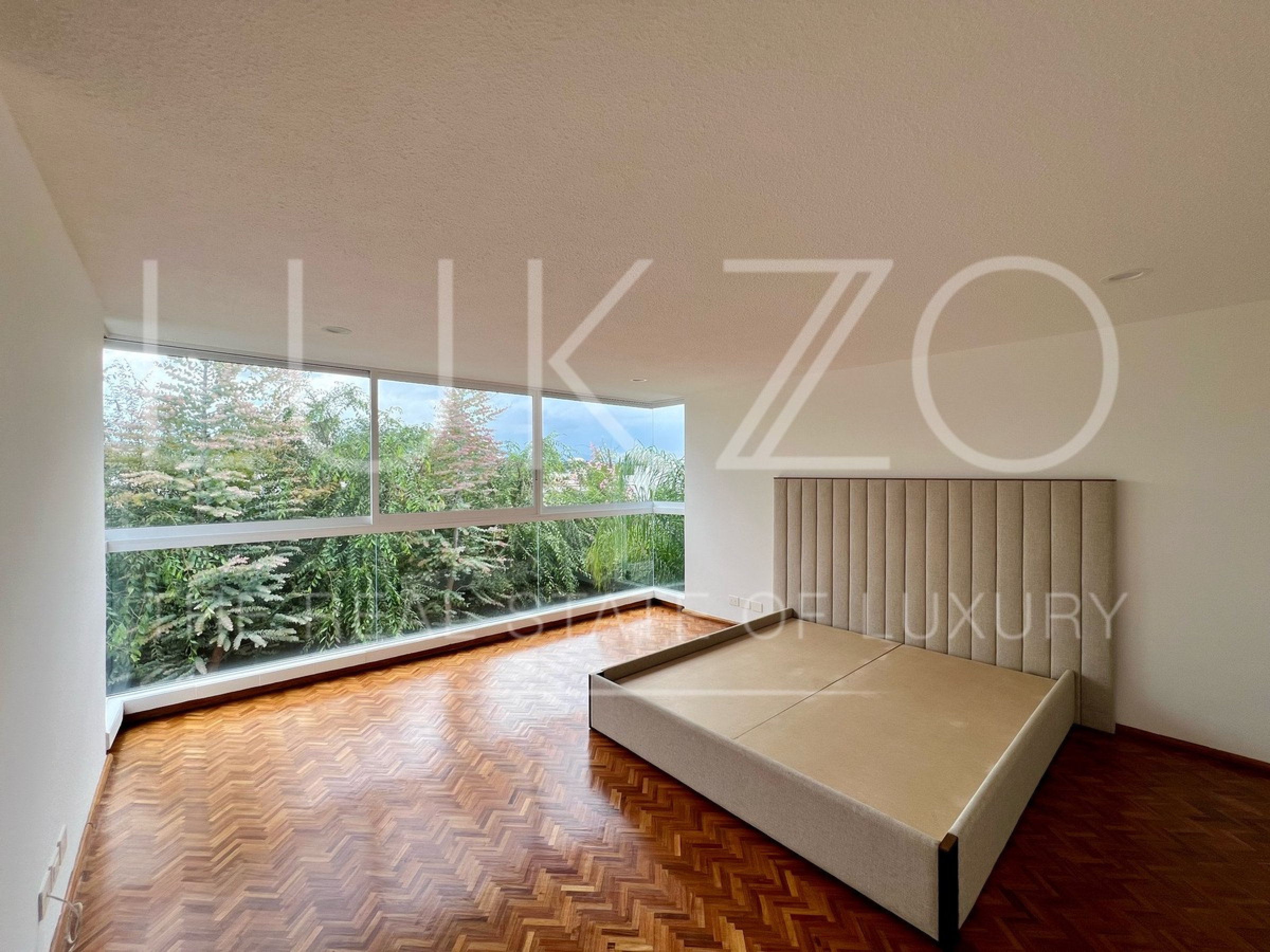 La propiedad cuenta con cuatro habitaciones, incluyendo una suite principal con vestidor y baño completo, ideal para el descanso y la privacidad. Los espacios sociales, como la cocina integral con barra, la sala de TV están diseñados para convivencias memorables. Los acabados, como pisos de mármol y techos altos, junto con detalles funcionales como cochera para tres autos y cuarto de servicio, elevan la experiencia de vivir aquí.