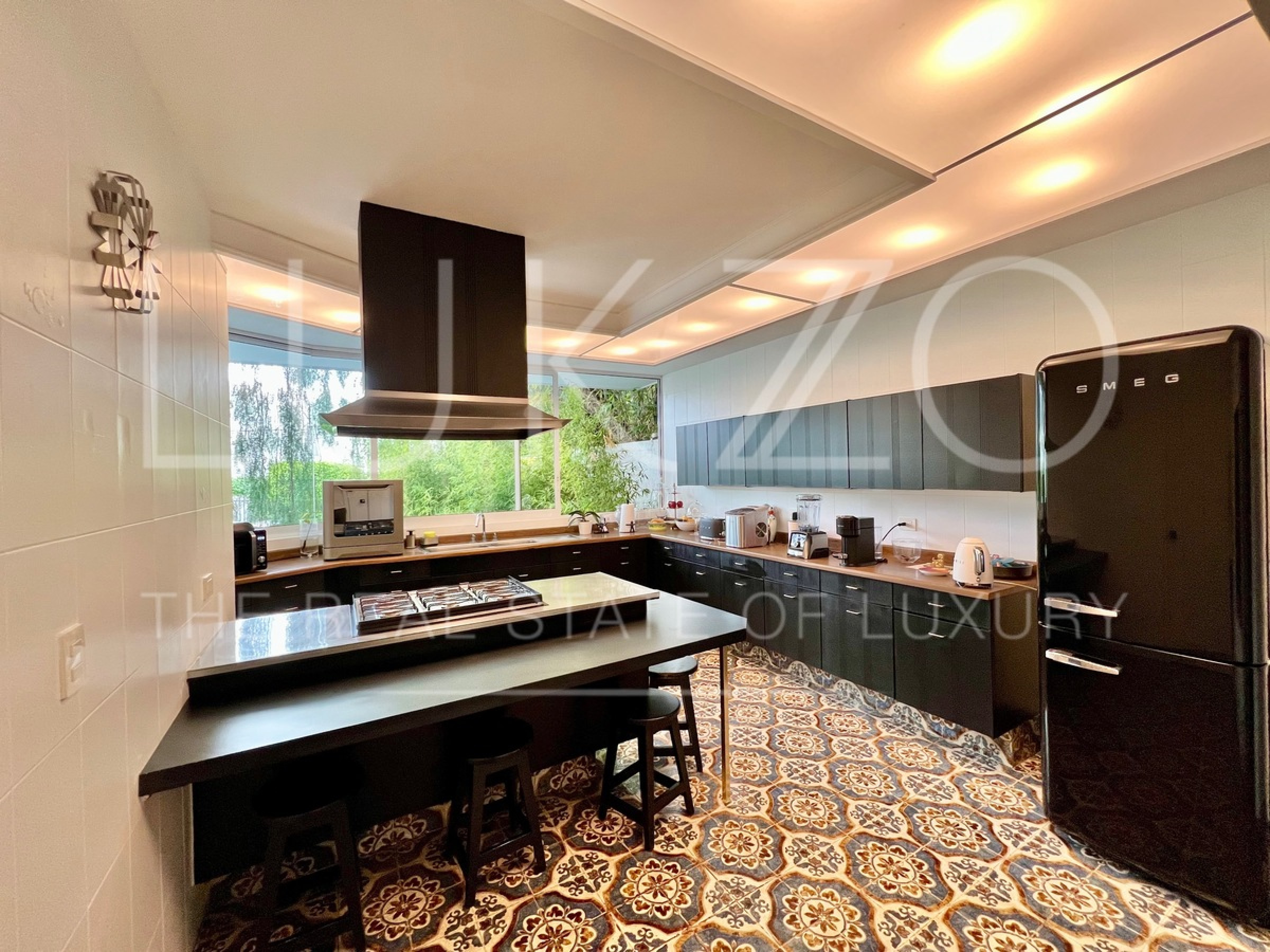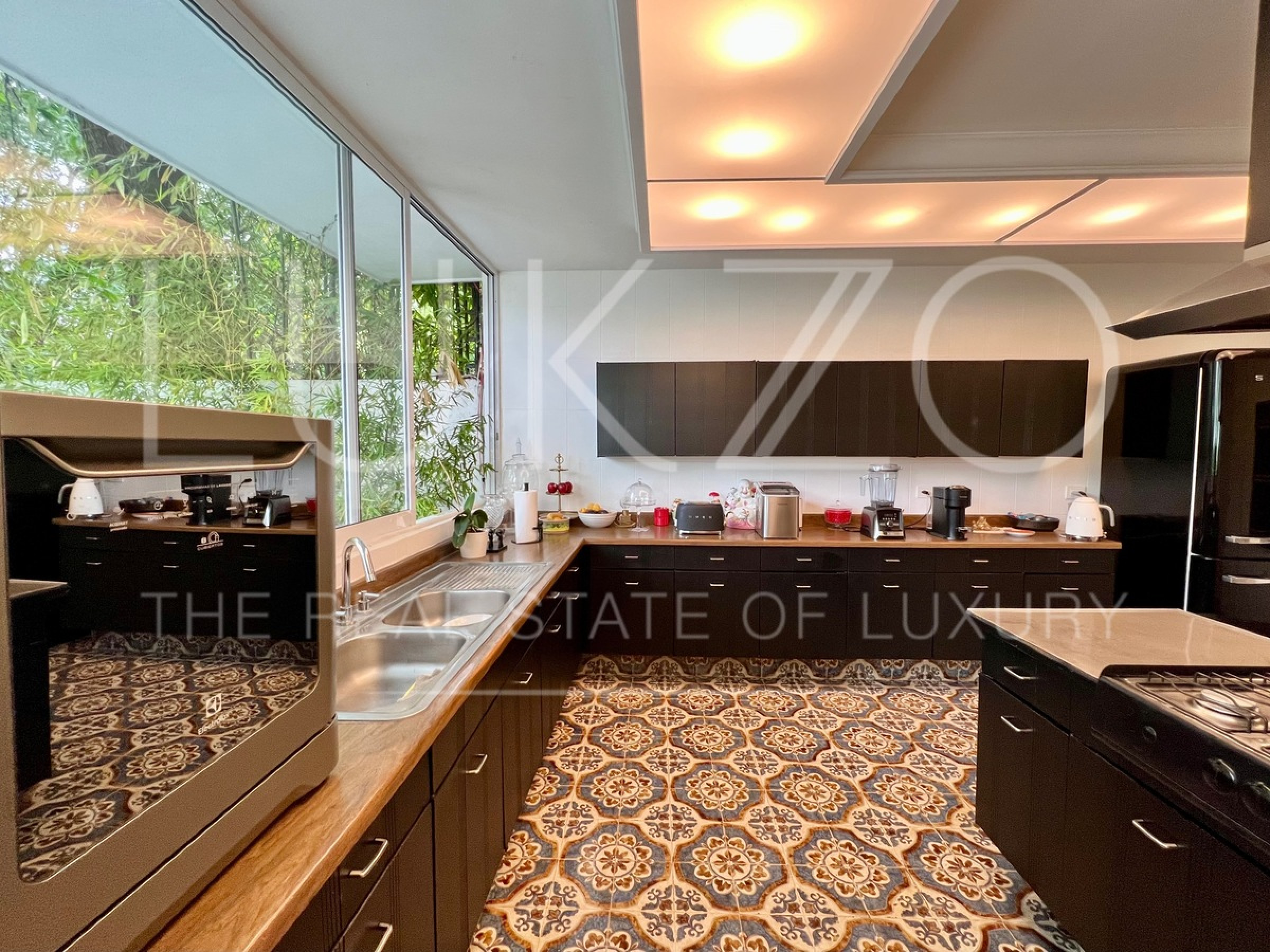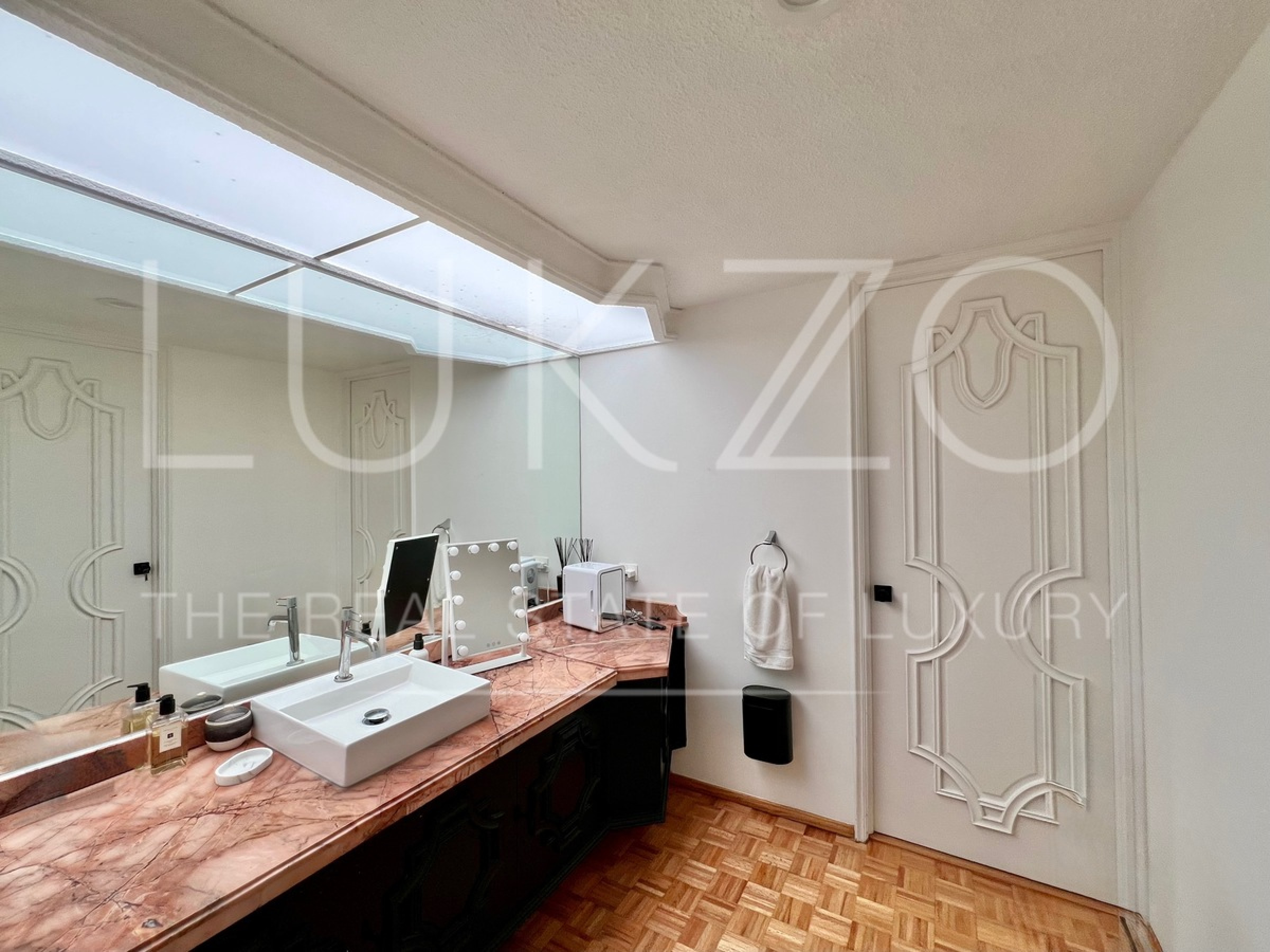 La propiedad cuenta con cuatro habitaciones, incluyendo una suite principal con vestidor y baño completo, ideal para el descanso y la privacidad. Los espacios sociales, como la cocina integral con barra, la sala de TV están diseñados para convivencias memorables. Los acabados, como pisos de mármol y techos altos, junto con detalles funcionales como cochera para tres autos y cuarto de servicio, elevan la experiencia de vivir aquí.
