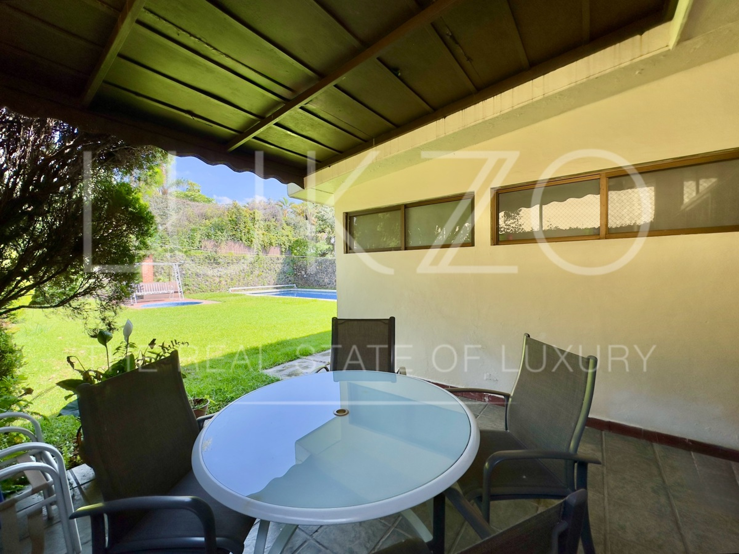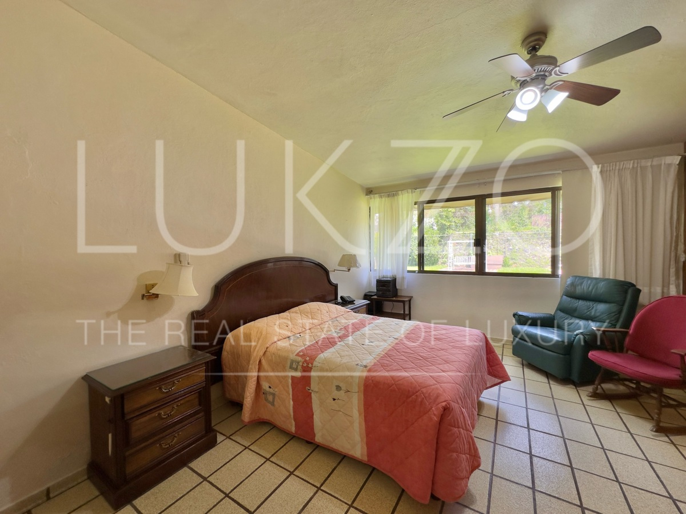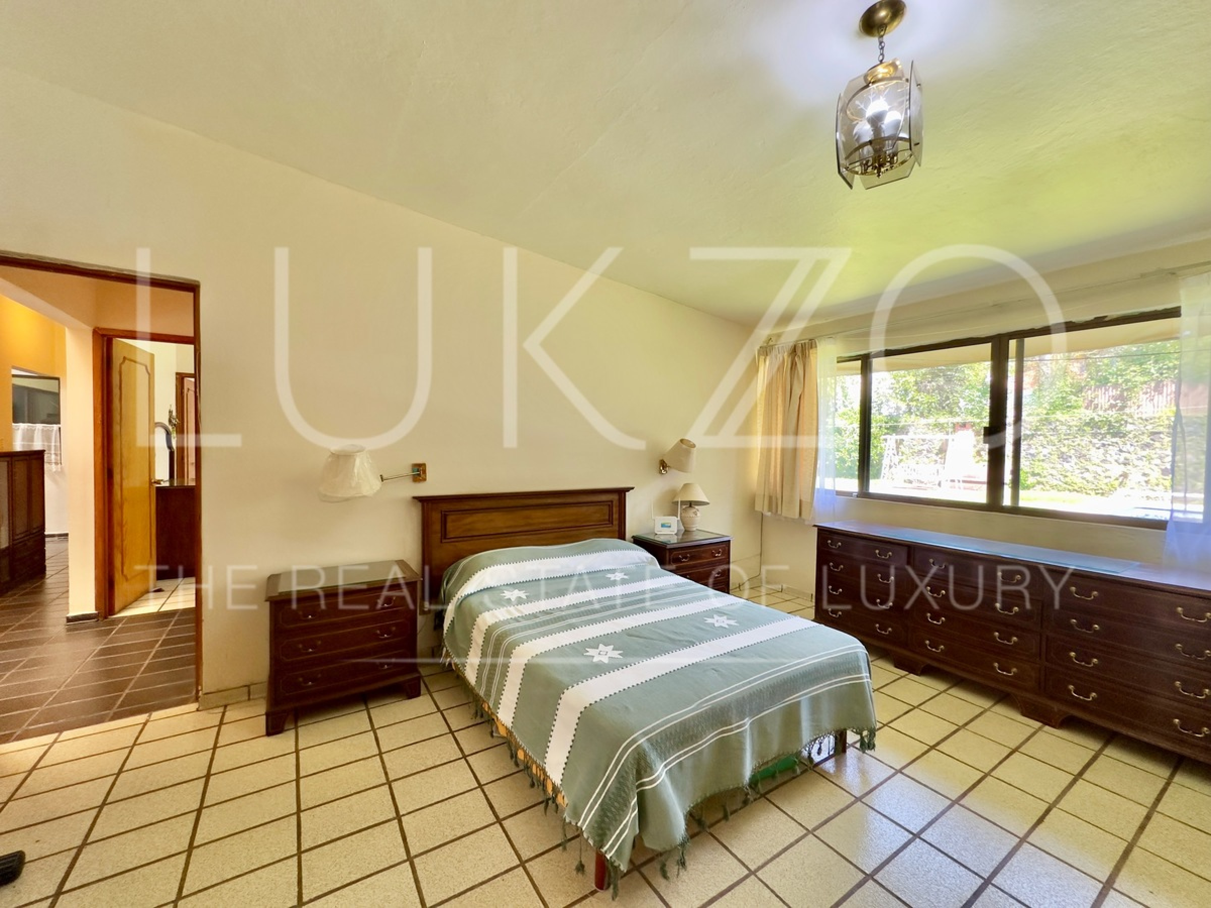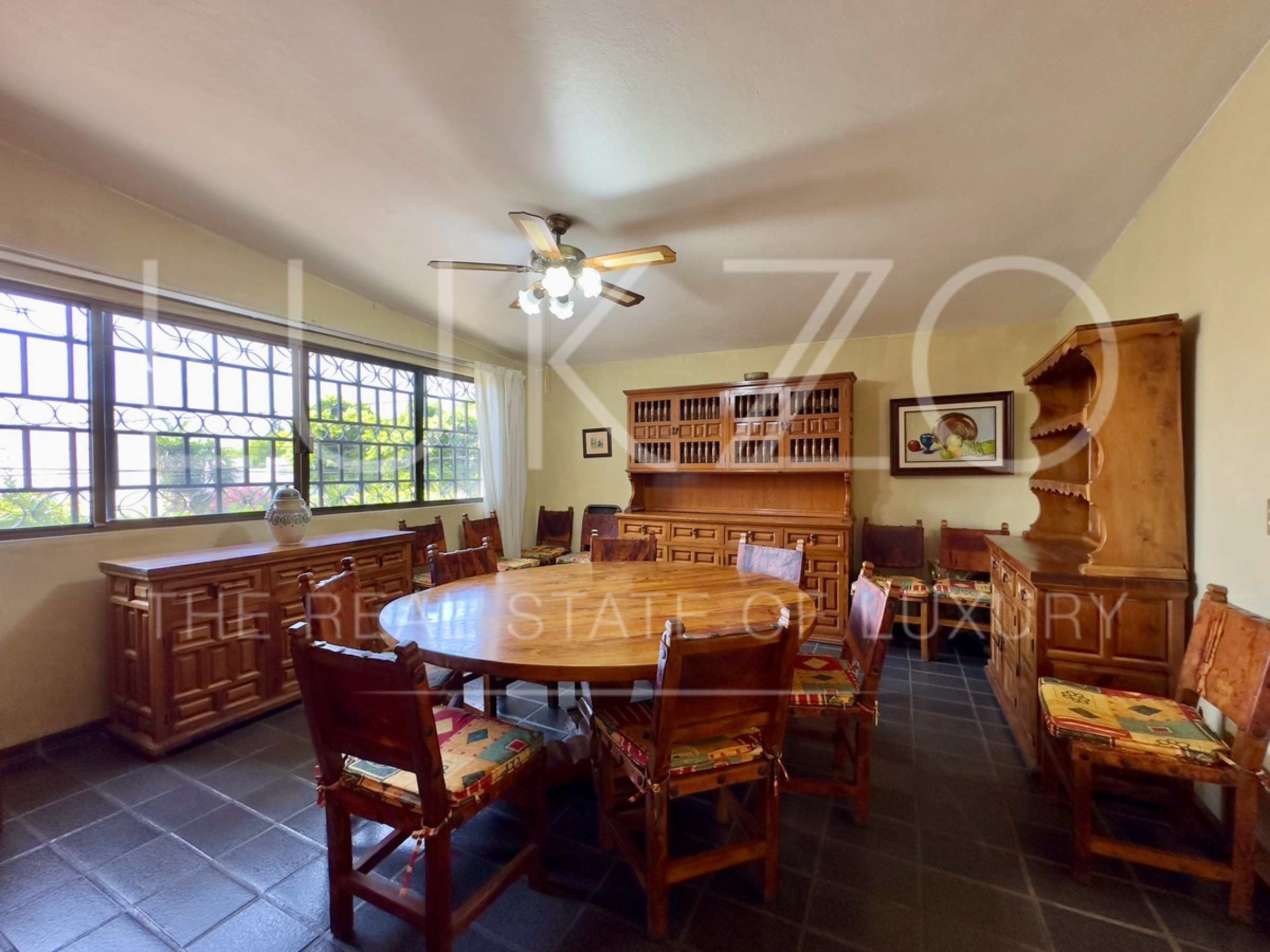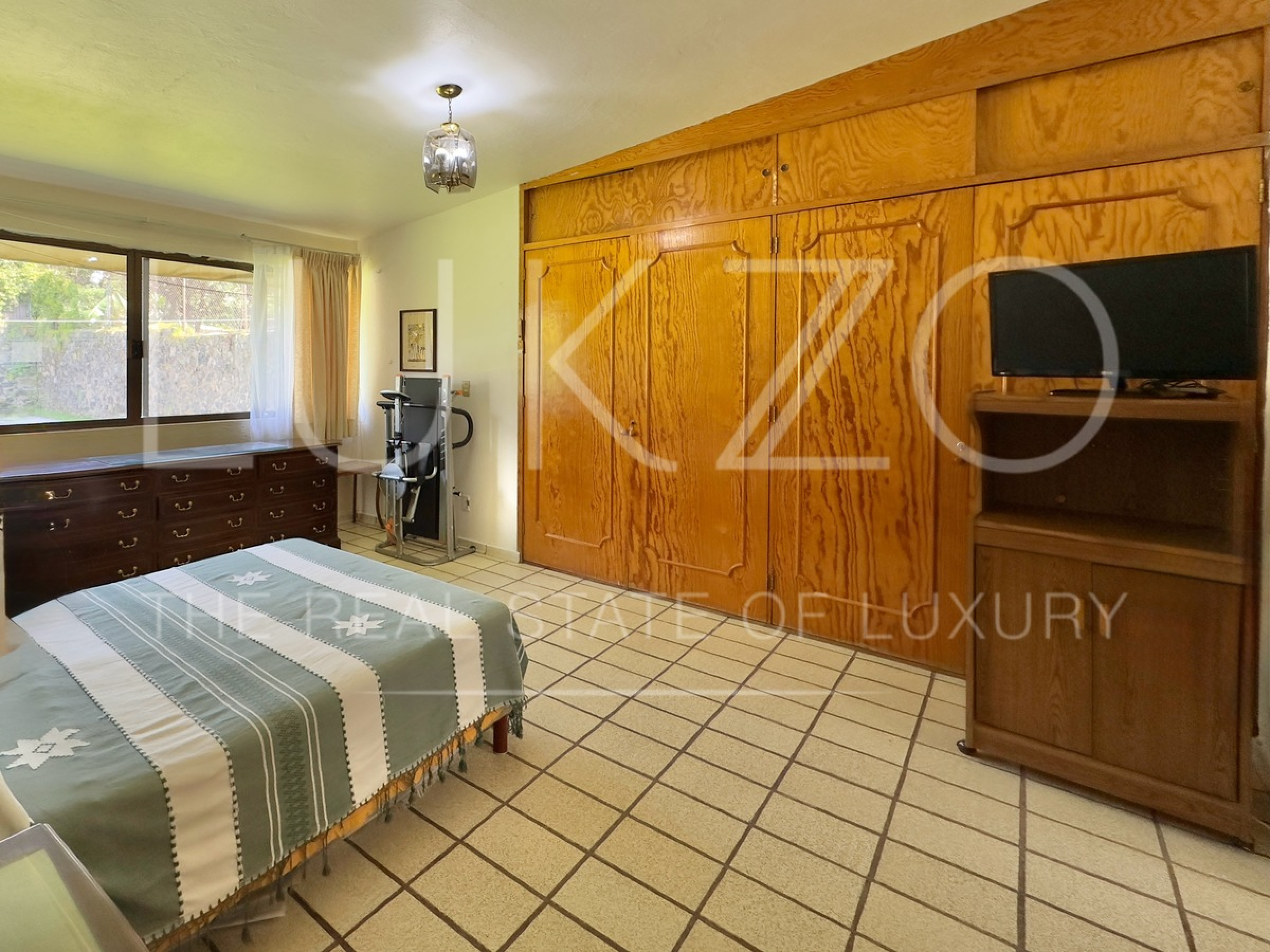 En la zona de norte de Cuernavaca, Morelos, se encuentra esta residencia de estilo conservador que ofrece comodidad y amplitud en sus 602 m² de terreno y 313 m² de construcción distribuidos en un solo nivel. En buen estado de conservación, cuenta con sala y comedor, un acogedor antecomedor integrado a la cocina equipada y tres recámaras, cada una con su baño, además de medio baño adicional. Se complementa con closets, alacena, closet de blancos, cuarto de TV, lavandería, bodega y dos bungalows con baño. En el exterior, destaca un amplio jardín con sistema de riego por aspersión, alberca, jacuzzi, terraza y estacionamiento para tres autos. La casa está equipada con cisterna de 10 000 litros, gas estacionario, portón eléctrico y paneles solares fotovoltaicos que aportan eficiencia y sustentabilidad, además de contar con agua potable y admitir mascotas.