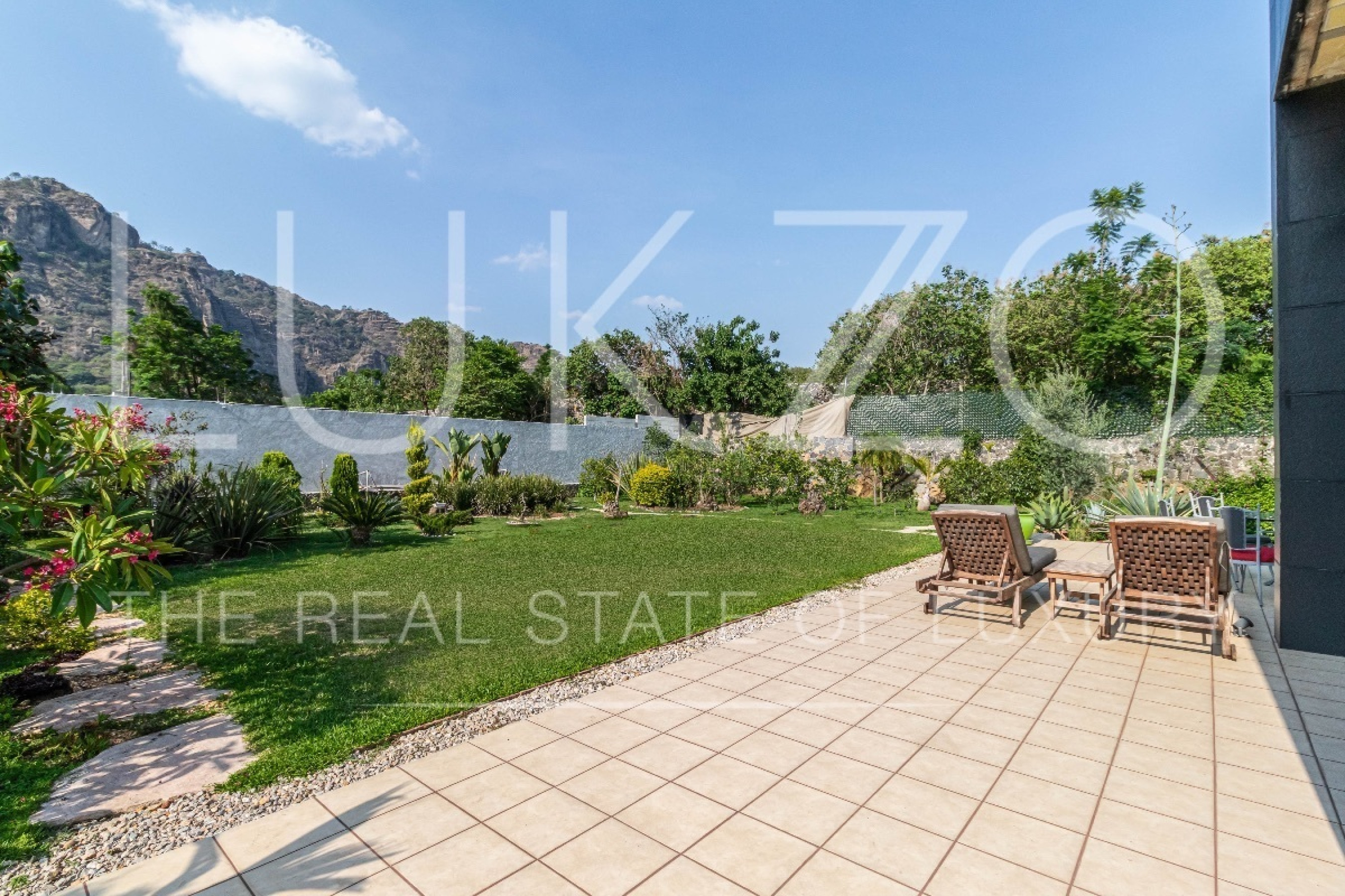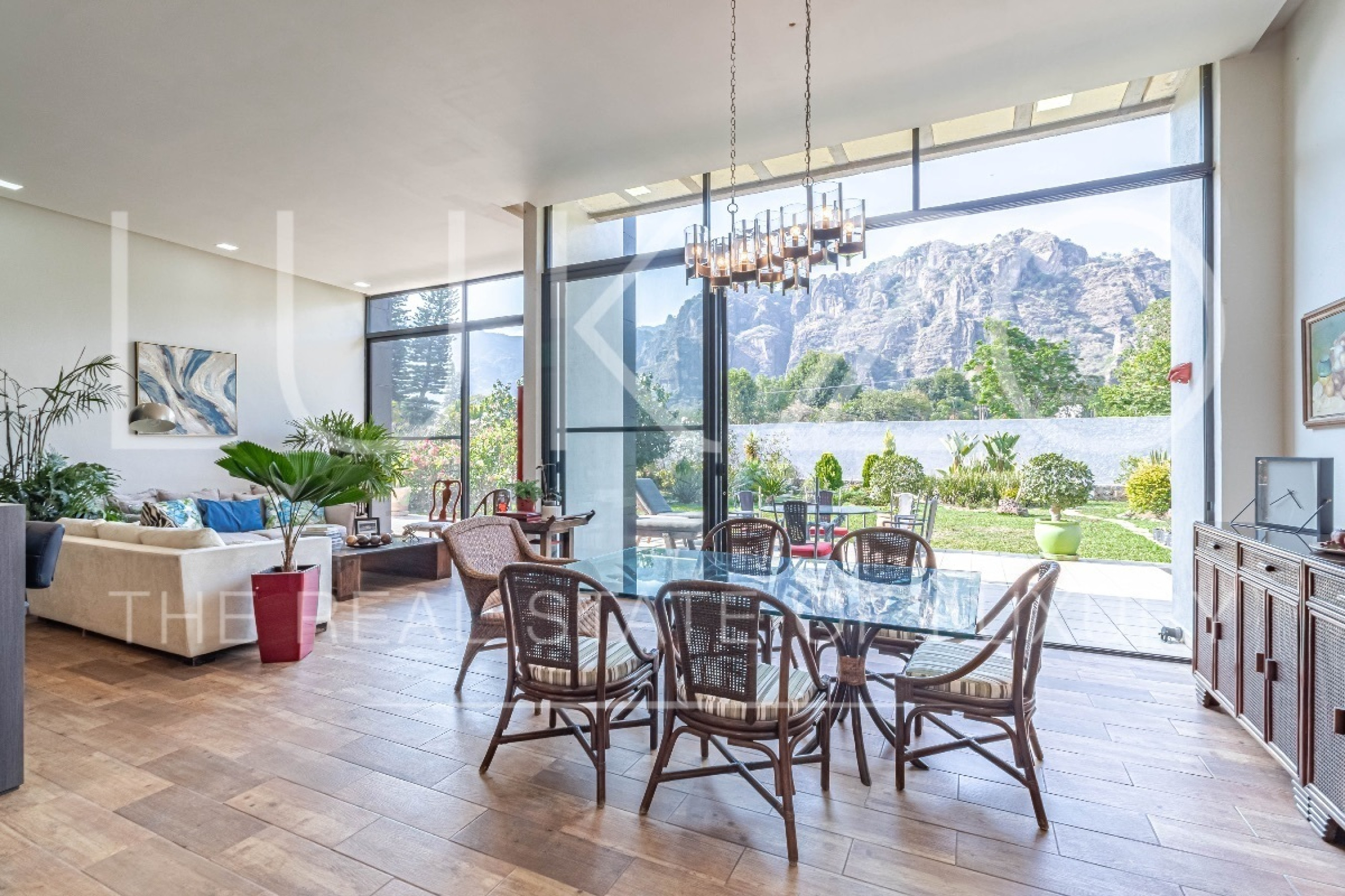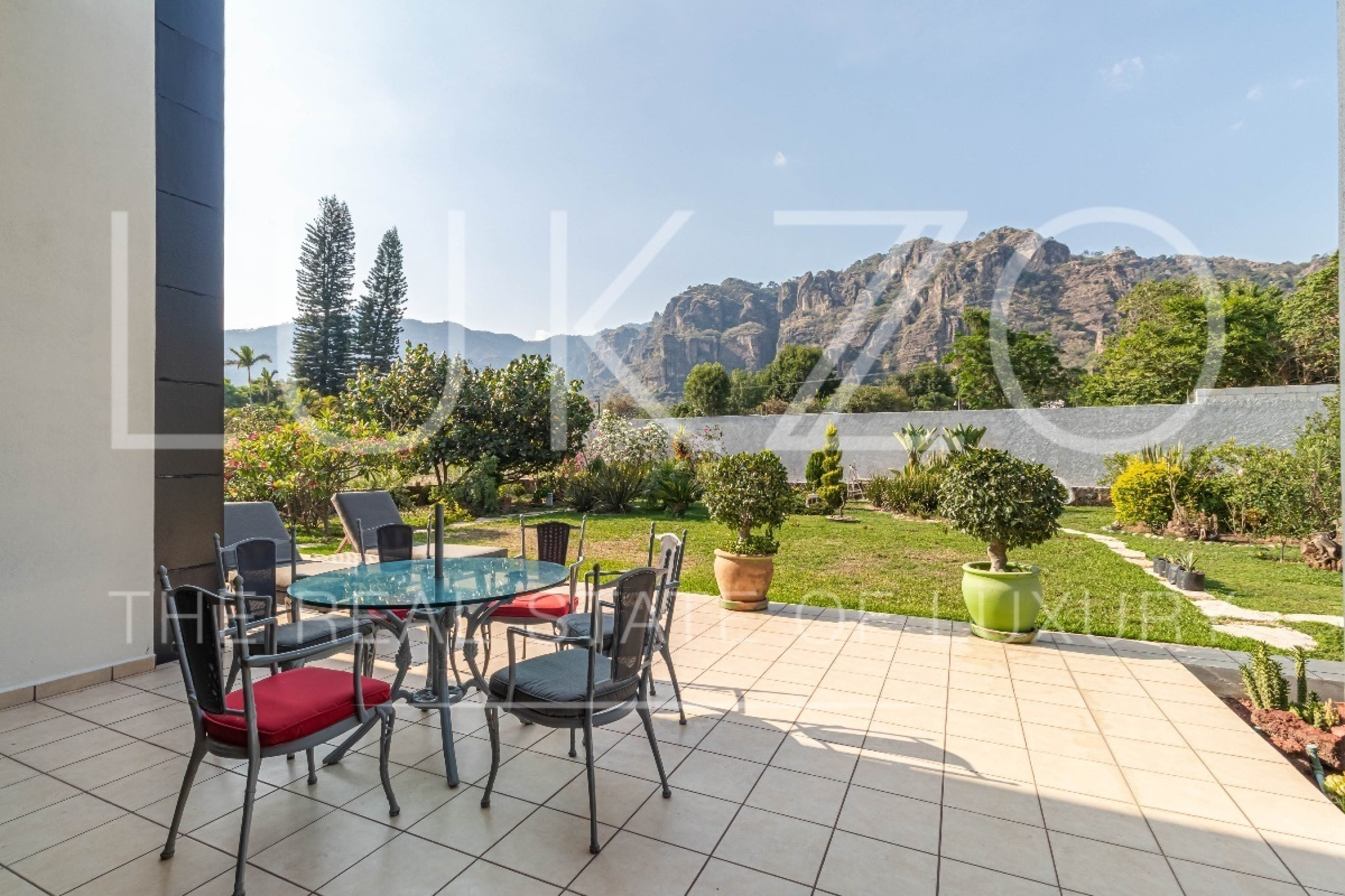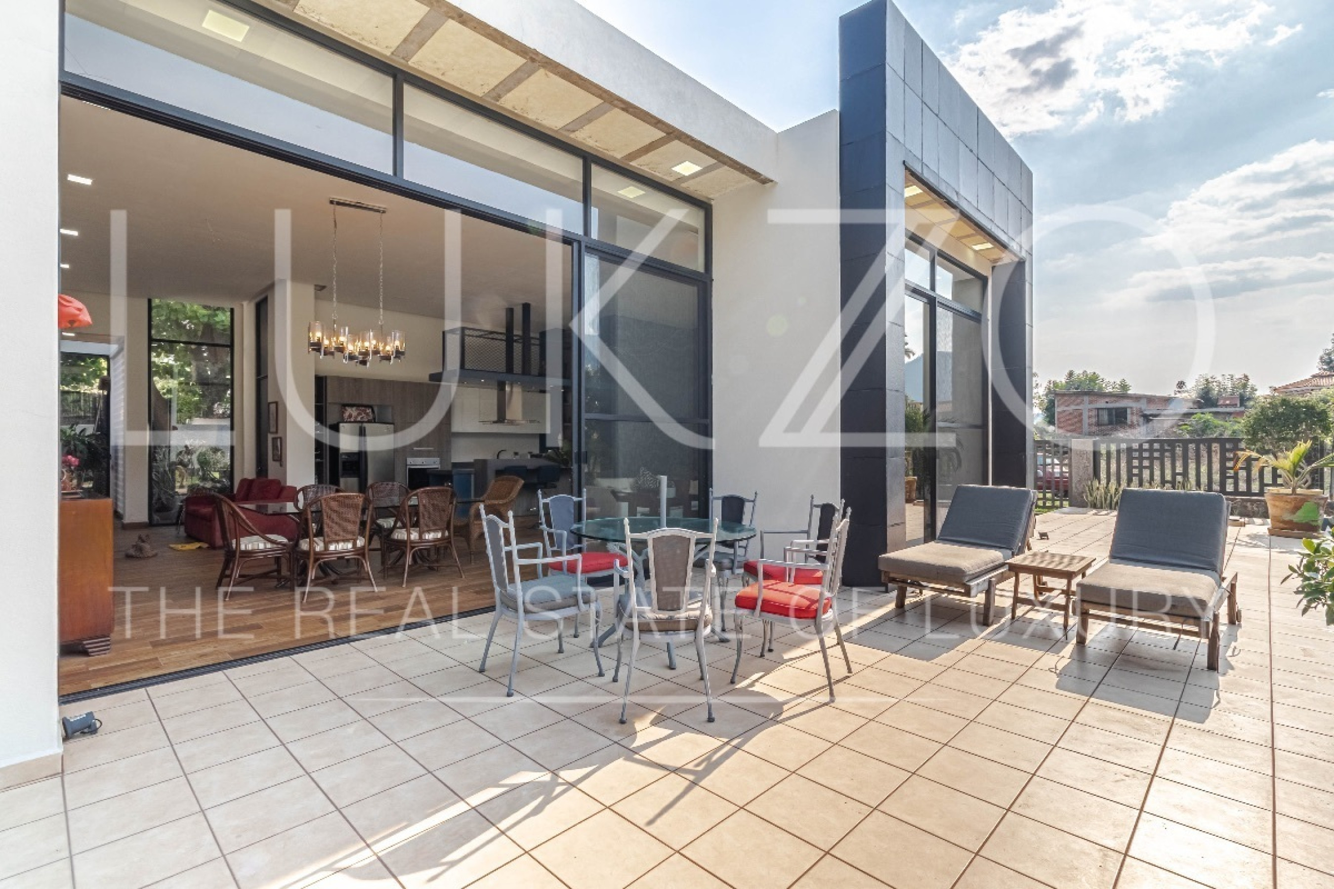 La casa cuenta con un jardín de 600 m2 donde se puede contemplar la vista a las montañas. Además, tiene un antecomedor, sala, comedor y una terraza para disfrutar de la tranquilidad del lugar. La casa incluye bodega, lavandería y estacionamiento para 3 autos.