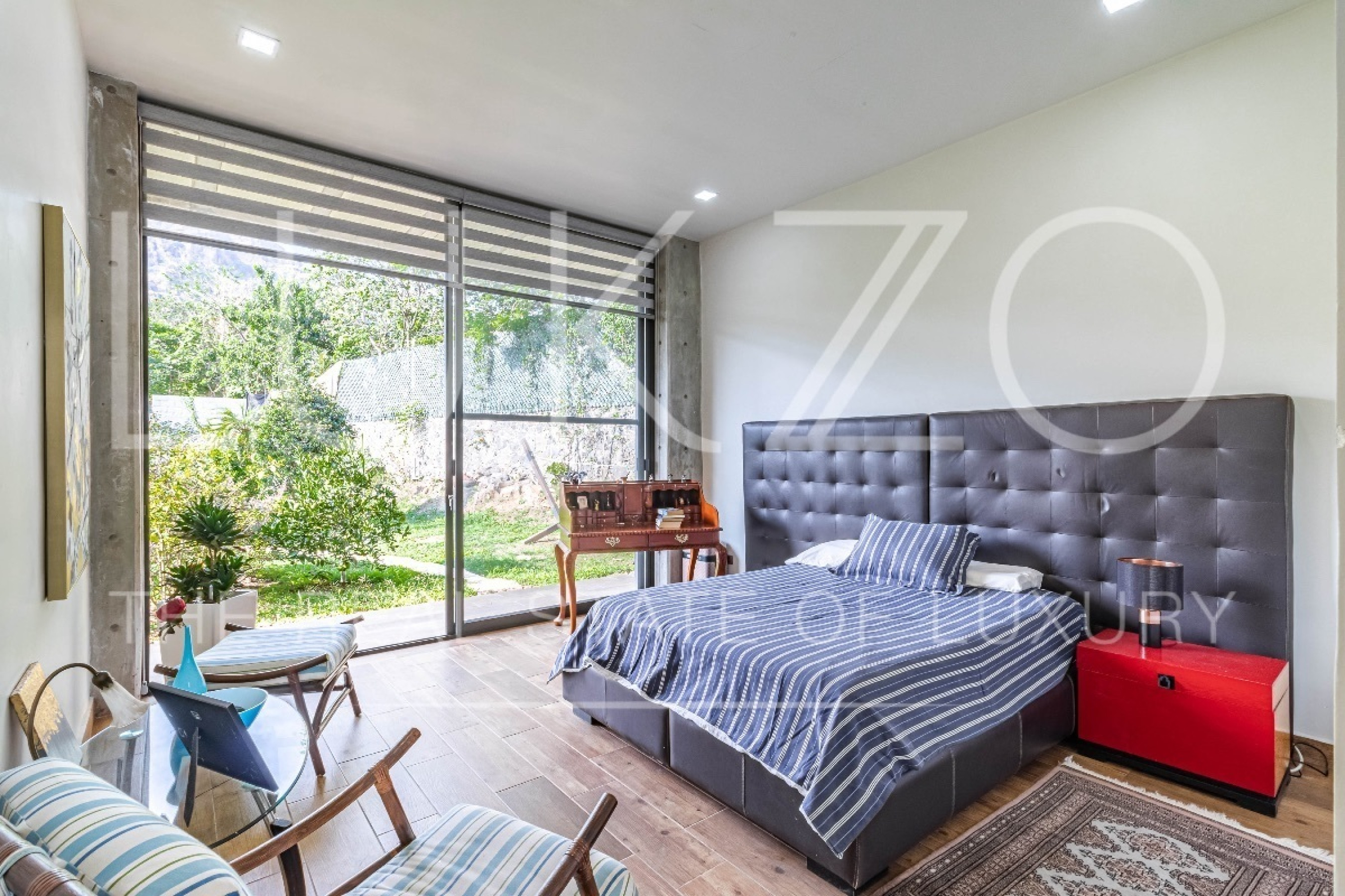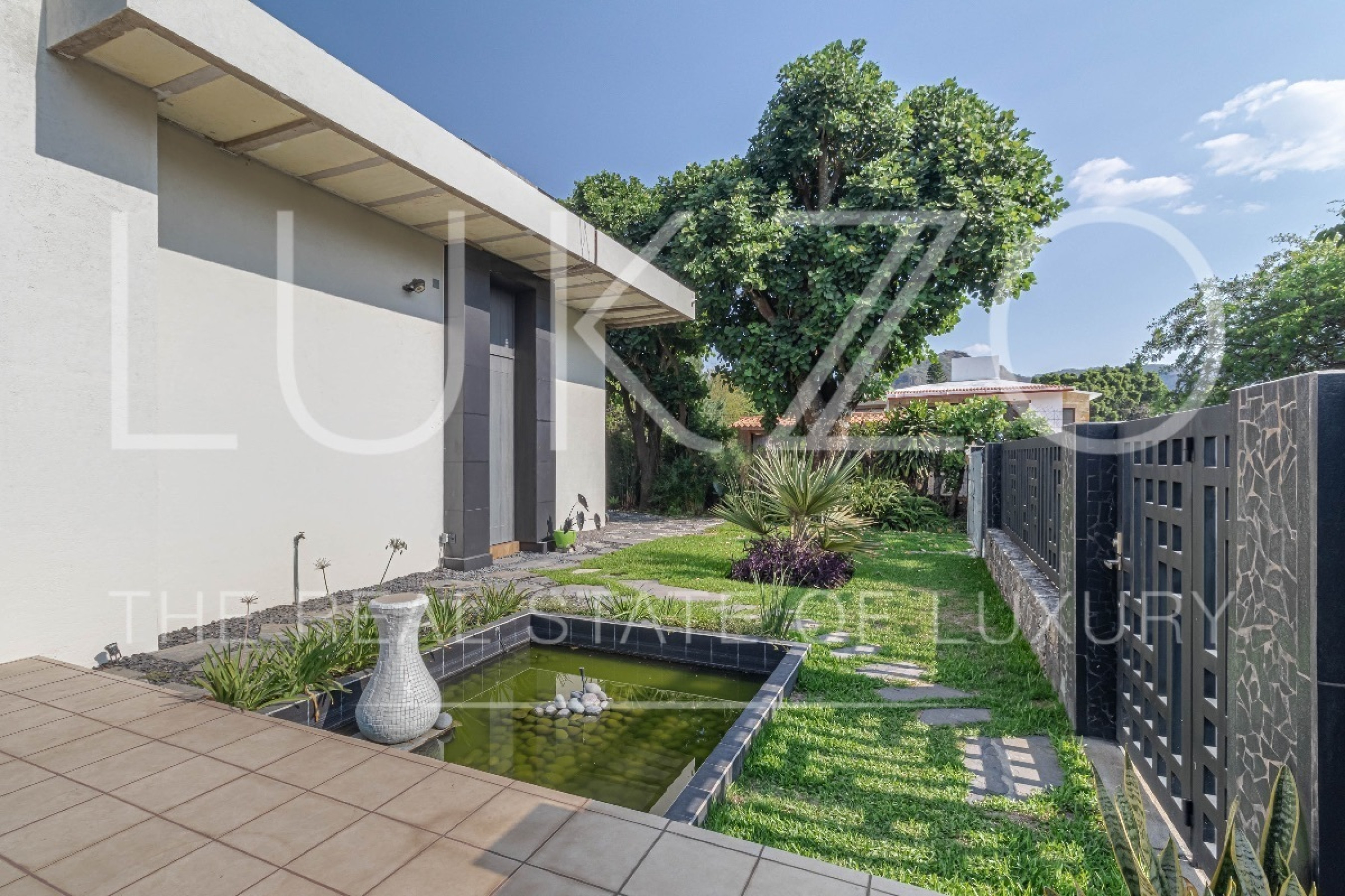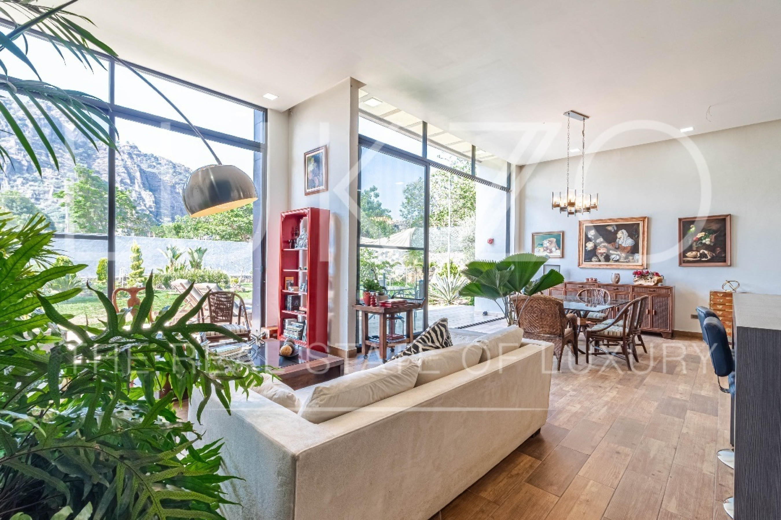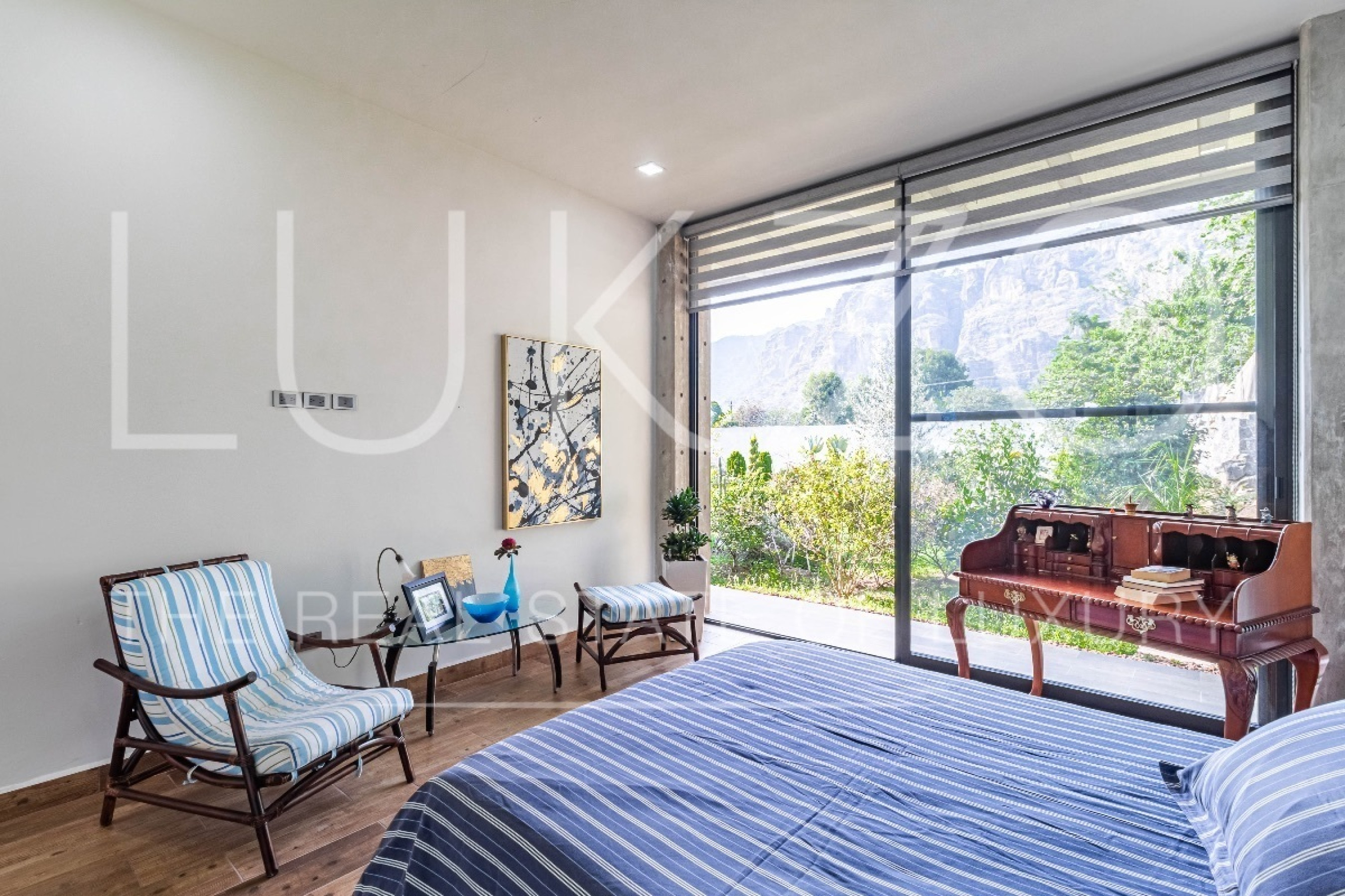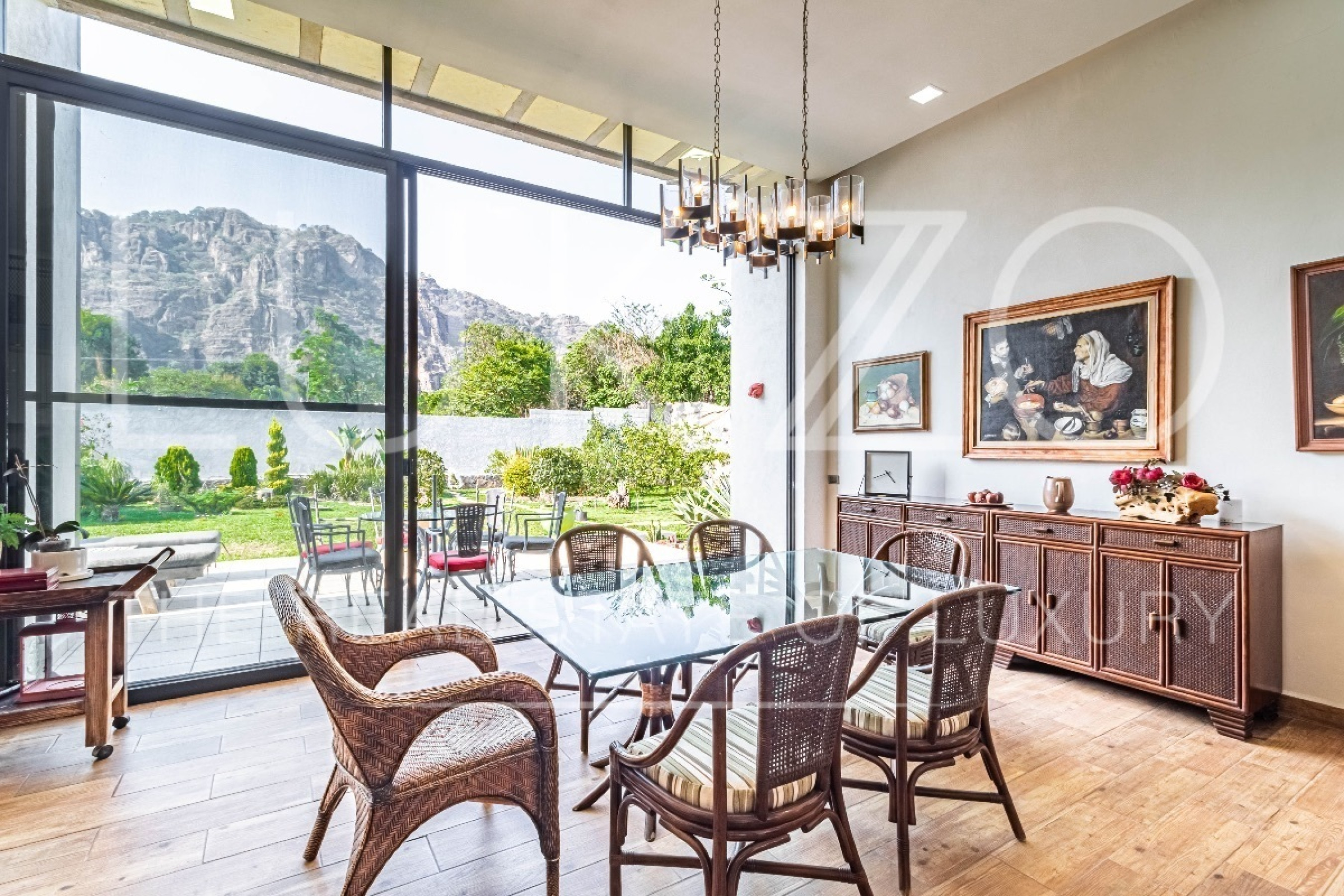 La casa cuenta con un jardín de 600 m2 donde se puede contemplar la vista a las montañas. Además, tiene un antecomedor, sala, comedor y una terraza para disfrutar de la tranquilidad del lugar. La casa incluye bodega, lavandería y estacionamiento para 3 autos.