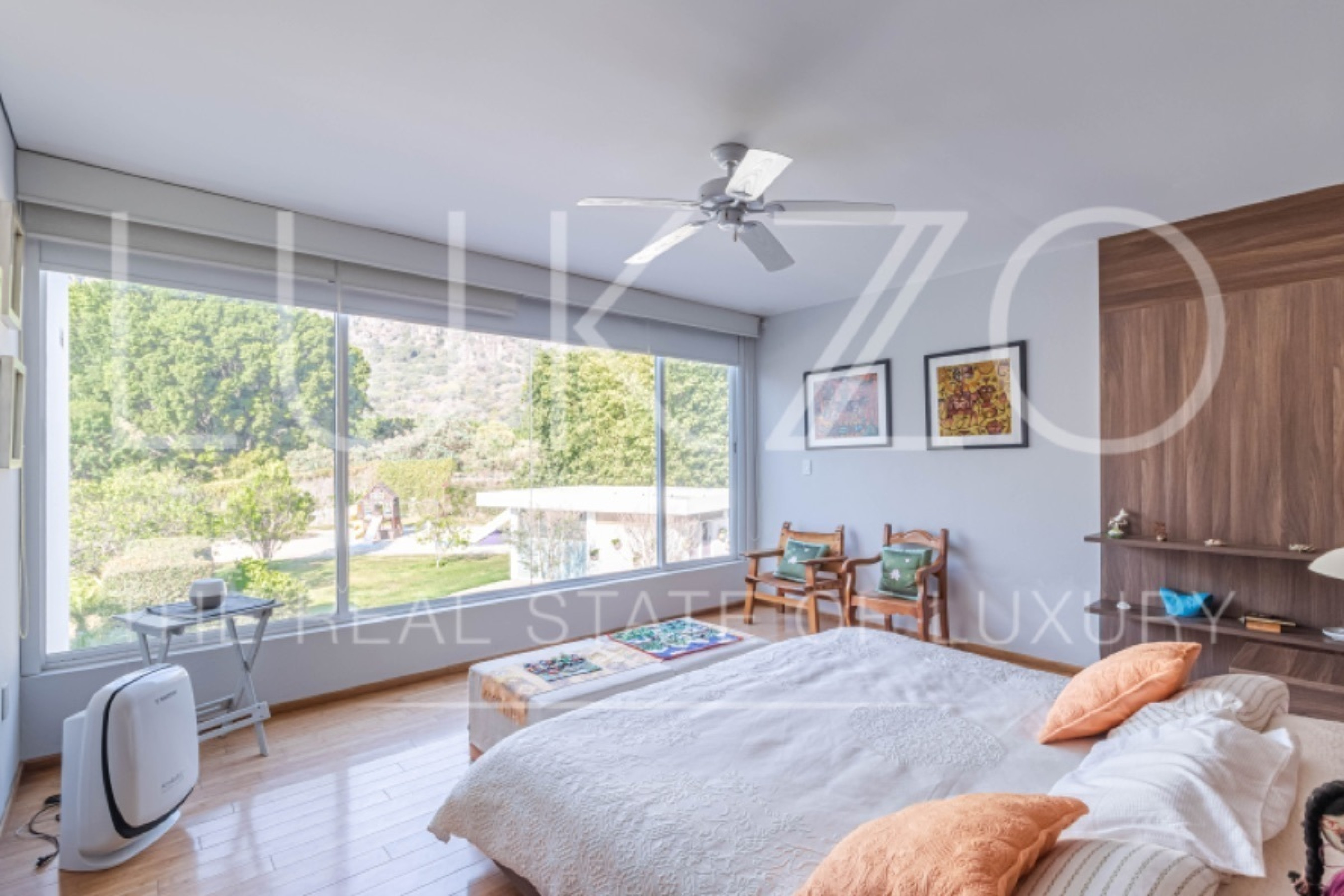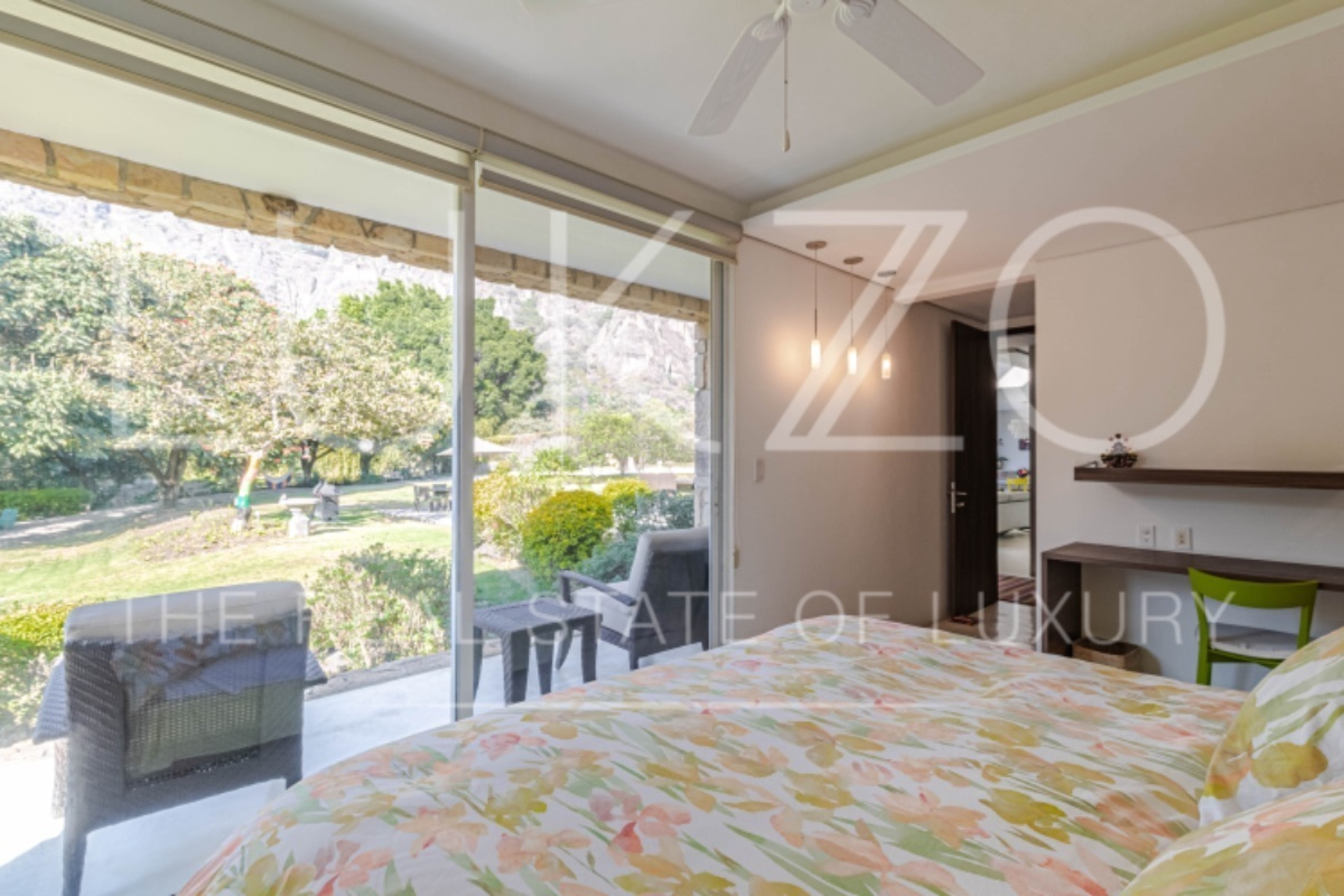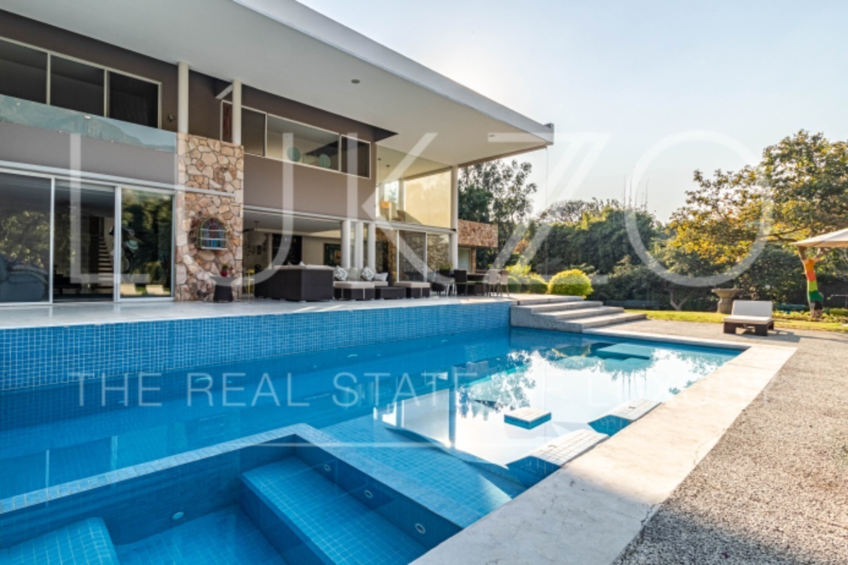 Consta de casa principal y casa de visitas. Gimnasio, sistema de sonido y camaras de vigilancia. Cortina automatica en terraza para proteccion solar. Una de las recamaras de la casa principal esta en planta baja lo que la hace ideal para personas mayores o con discapacidad.
