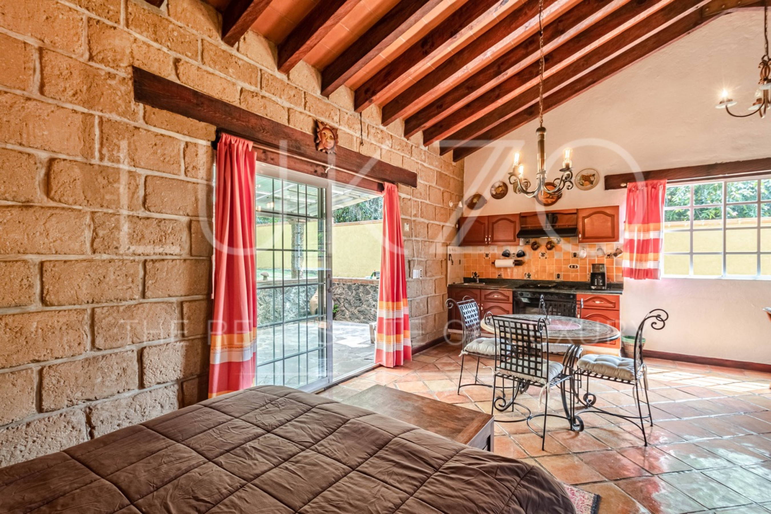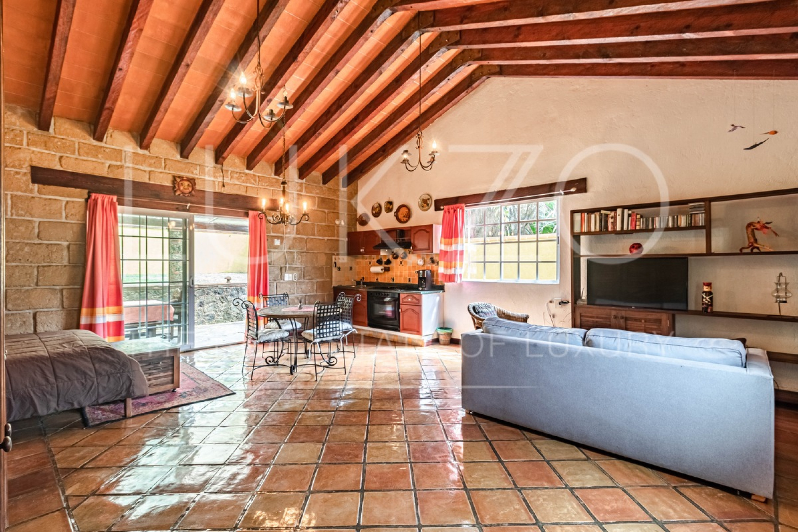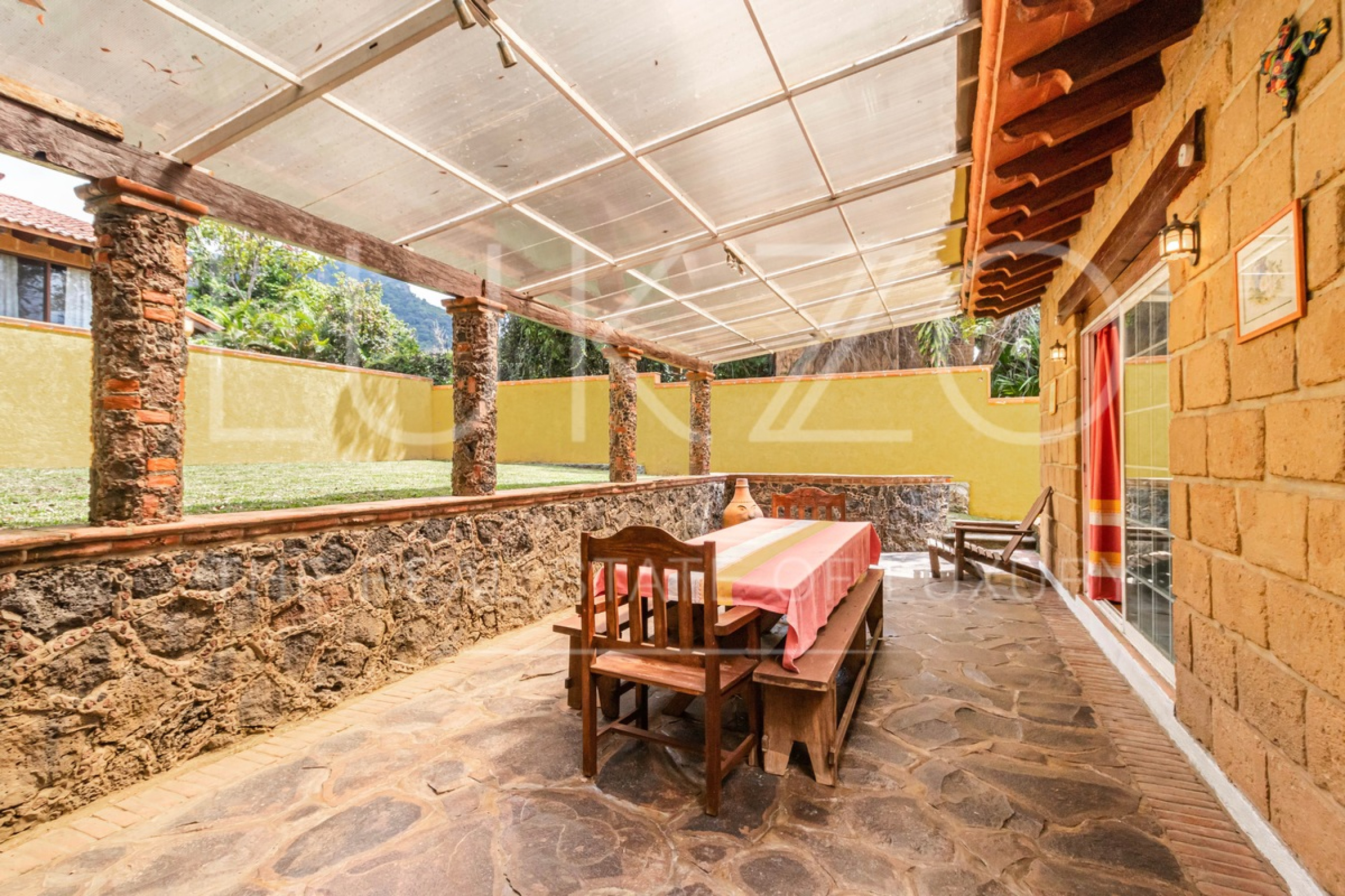 En venta, propiedad en Tepoztlán, Morelos, que combina amplitud, privacidad y encanto natural. Con más de 3,470 m² de terreno y una construcción de 299 m², esta residencia de dos construcciones, ofrece un entorno ideal para vivir rodeado de naturaleza sin renunciar a la comodidad. La casa principal, edificada en 2015, cuenta con dos recámaras, tres baños completos, sala, comedor, cocina equipada y un tapanco que puede funcionar como tercera recámara. El bungalow independiente, construido en 2003 y separado por una barda, brinda privacidad y es perfecto para recibir visitas, rentar o destinar a un espacio de trabajo o descanso. El jardín plano y extenso, junto con las vistas típicas de Tepoztlán, crean una atmósfera de serenidad y conexión con el entorno. La propiedad incluye terraza doble, estacionamiento para seis autos, portón eléctrico, sistema hidroneumático, cisterna, gas estacionario y toma de agua potable. Su excelente estado de conservación y su ubicación en el tranquilo Barrio San Pedro hacen de esta casa una oportunidad única para quienes buscan un hogar cómodo y versátil, ya sea para vivir de forma permanente o como refugio de fin de semana. Cuenta con escrituras.