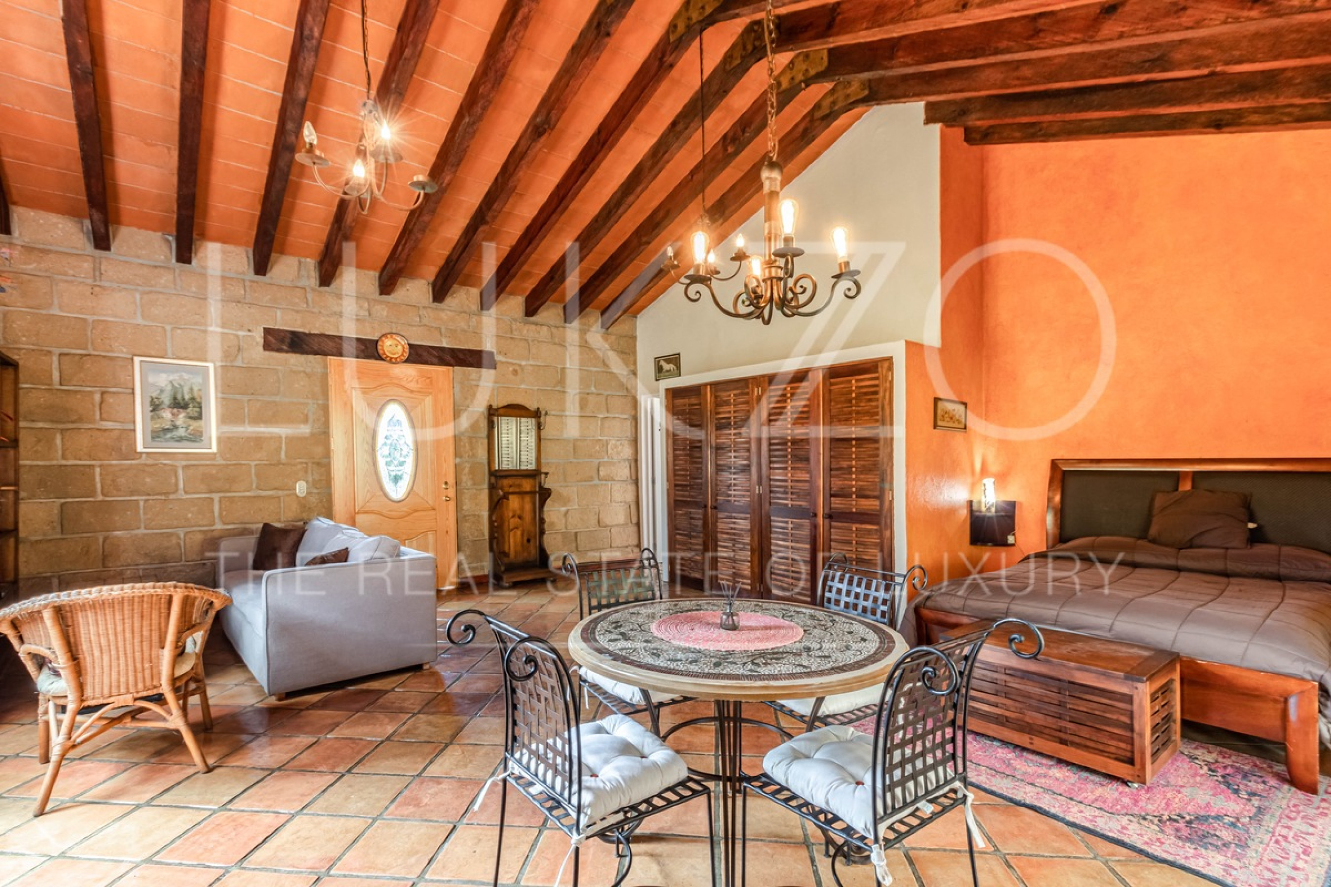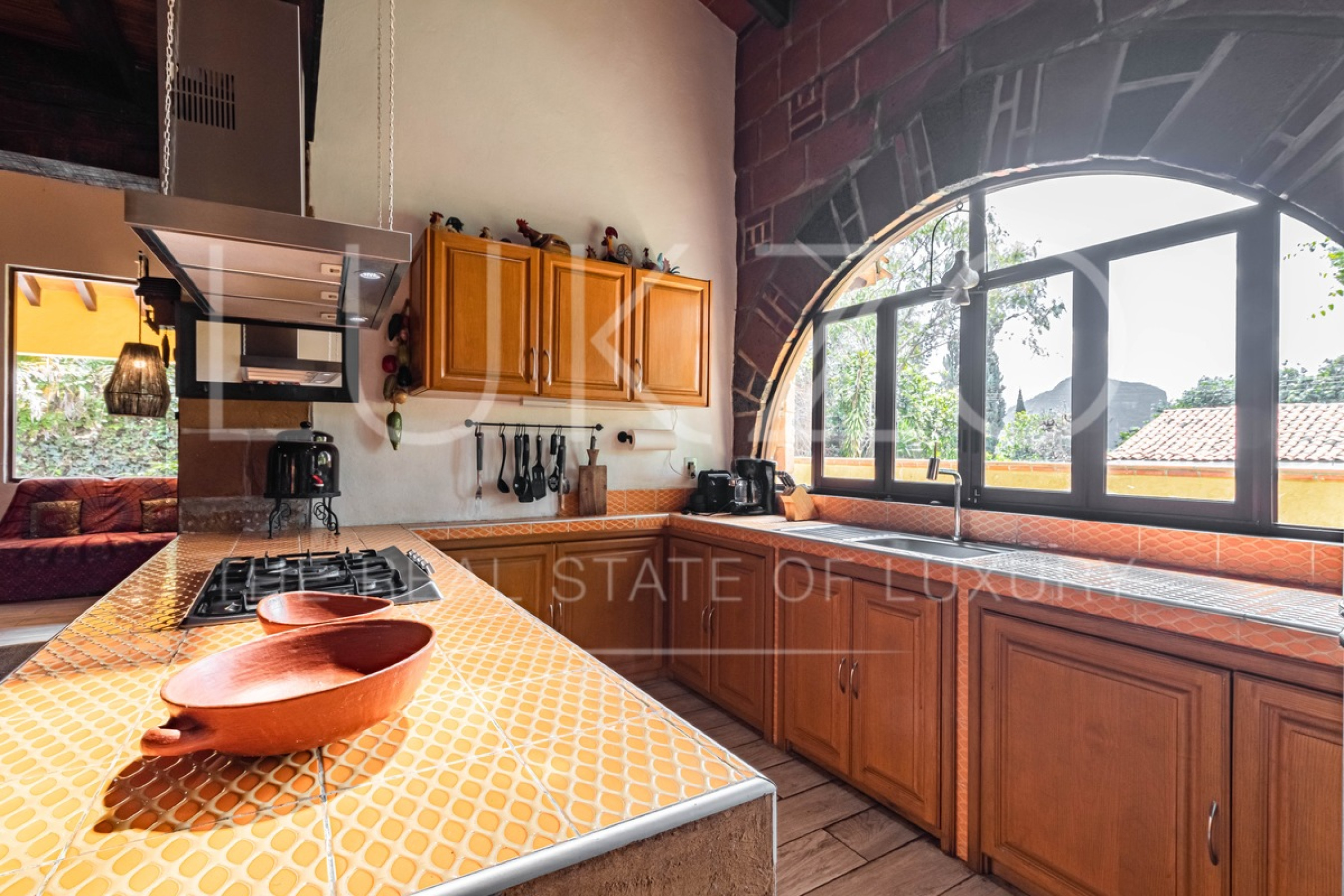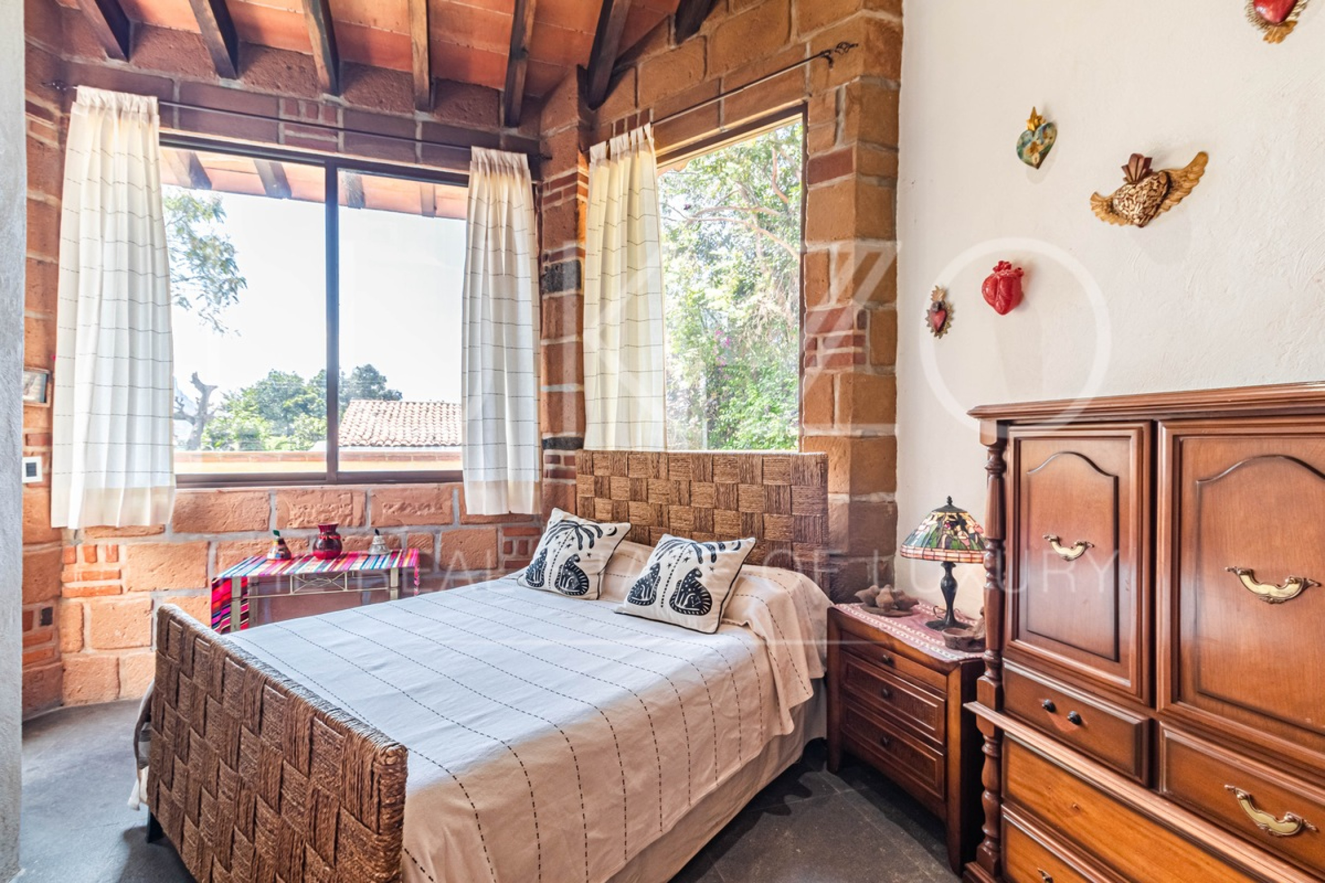 En venta, propiedad en Tepoztlán, Morelos, que combina amplitud, privacidad y encanto natural. Con más de 3,470 m² de terreno y una construcción de 299 m², esta residencia de dos construcciones, ofrece un entorno ideal para vivir rodeado de naturaleza sin renunciar a la comodidad. La casa principal, edificada en 2015, cuenta con dos recámaras, tres baños completos, sala, comedor, cocina equipada y un tapanco que puede funcionar como tercera recámara. El bungalow independiente, construido en 2003 y separado por una barda, brinda privacidad y es perfecto para recibir visitas, rentar o destinar a un espacio de trabajo o descanso. El jardín plano y extenso, junto con las vistas típicas de Tepoztlán, crean una atmósfera de serenidad y conexión con el entorno. La propiedad incluye terraza doble, estacionamiento para seis autos, portón eléctrico, sistema hidroneumático, cisterna, gas estacionario y toma de agua potable. Su excelente estado de conservación y su ubicación en el tranquilo Barrio San Pedro hacen de esta casa una oportunidad única para quienes buscan un hogar cómodo y versátil, ya sea para vivir de forma permanente o como refugio de fin de semana. Cuenta con escrituras.