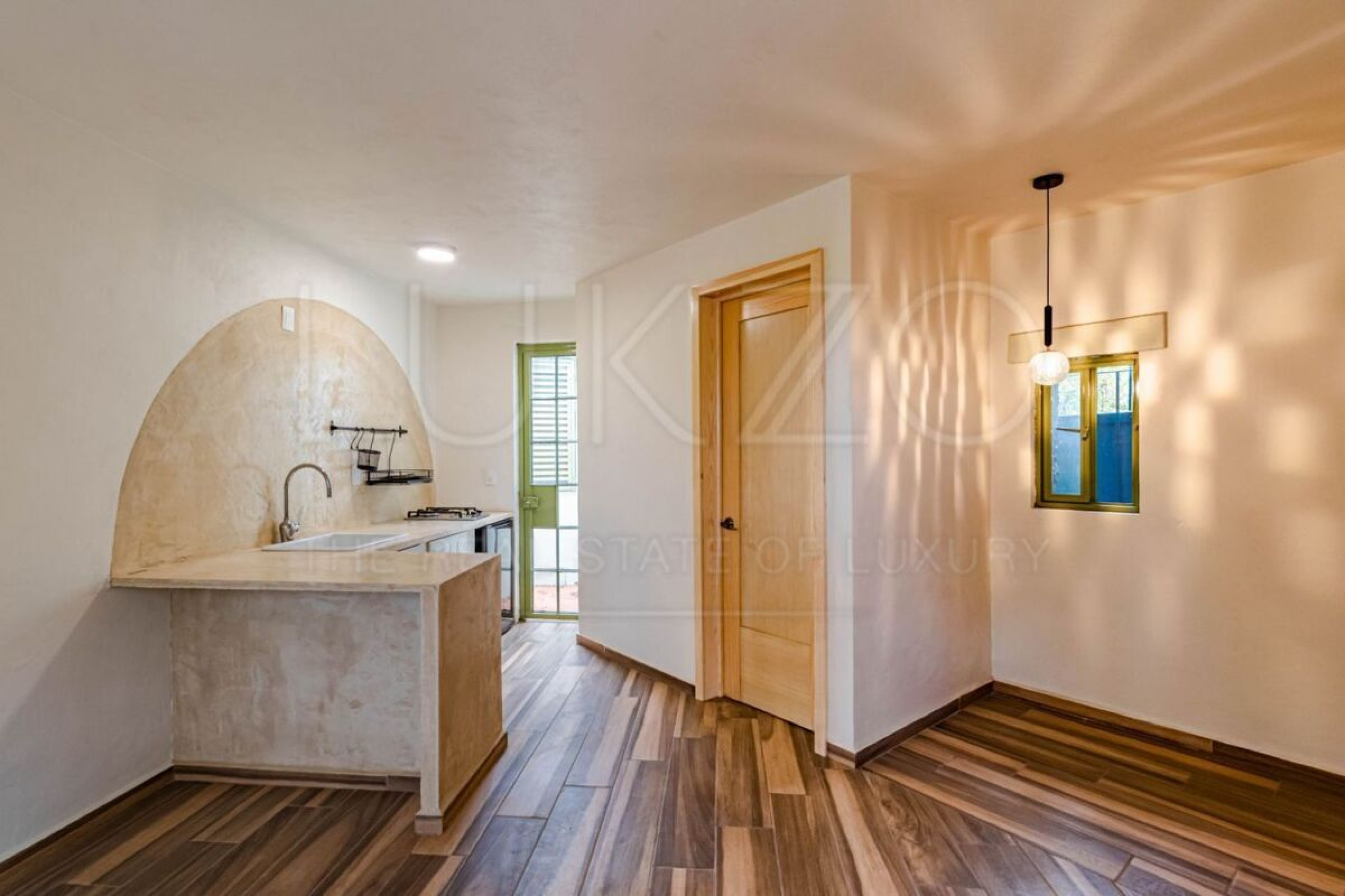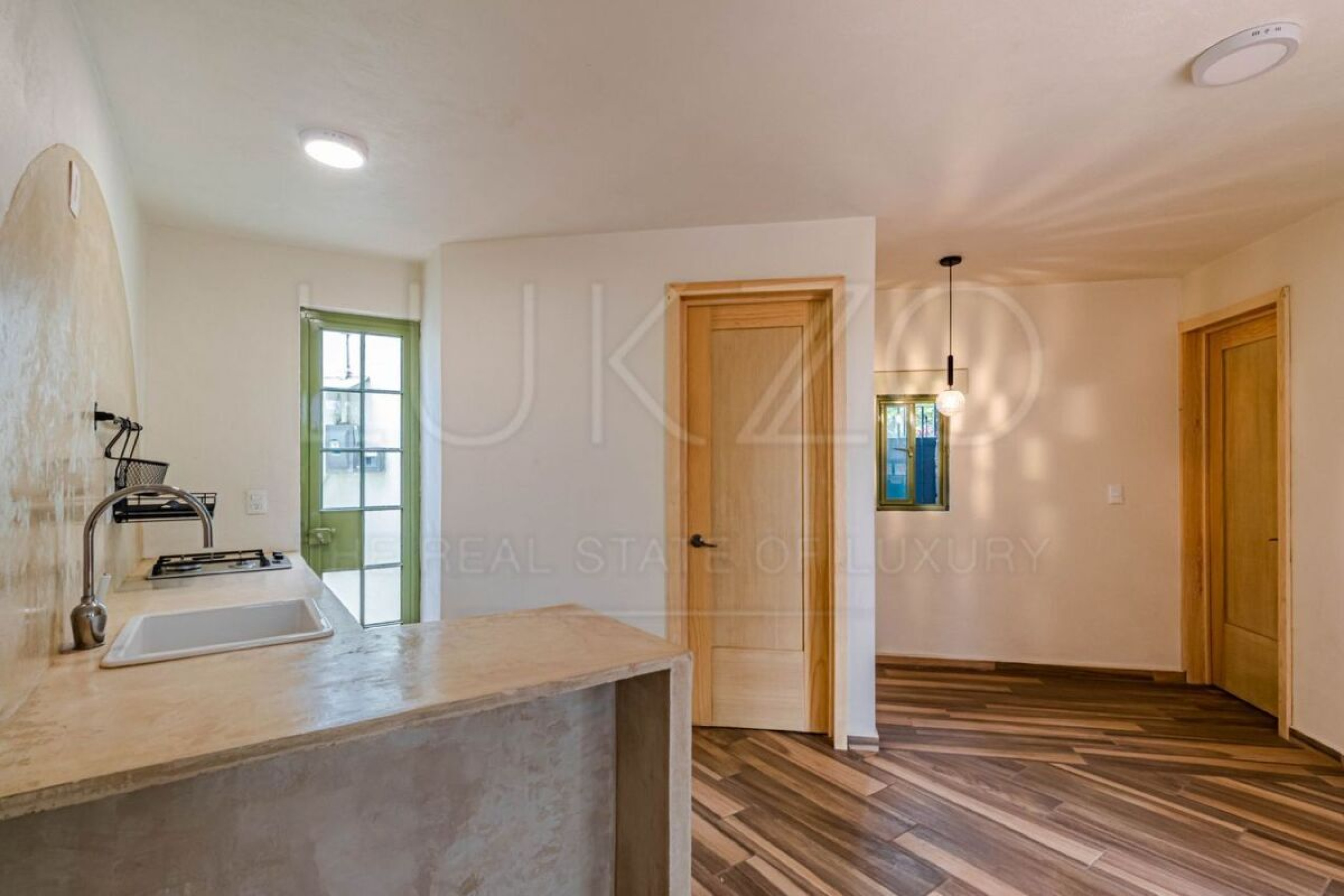 El desarrollo tiene dos niveles, y cuenta con dos recámaras con baño en planta alta, sala, comedor, cocina abierta, terraza exterior con comedor y balcón orientado hacia el oeste para disfrutar el atardecer.