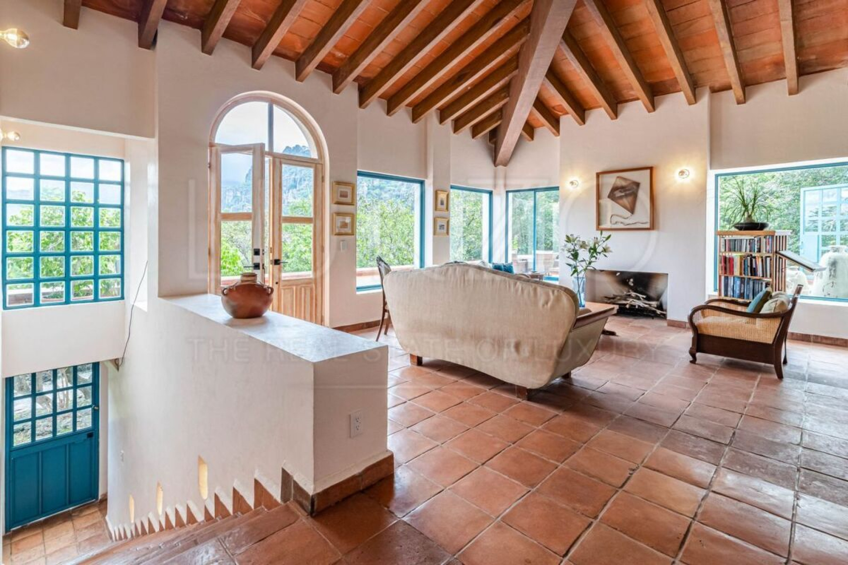 Casa sola en el campo cerca de la montaña de Tepoztlán con alberca y búngalo. De arquitectura novedosa, es una casa única en estos momentos en la región porque tiene una arquitectura novedosa, muy distinta a la convencional. Recientemente remodelada a profundidad, con una vista extraordinaria hacia el pueblo de Tepoztlán y la cordillera del valle de Atongo.