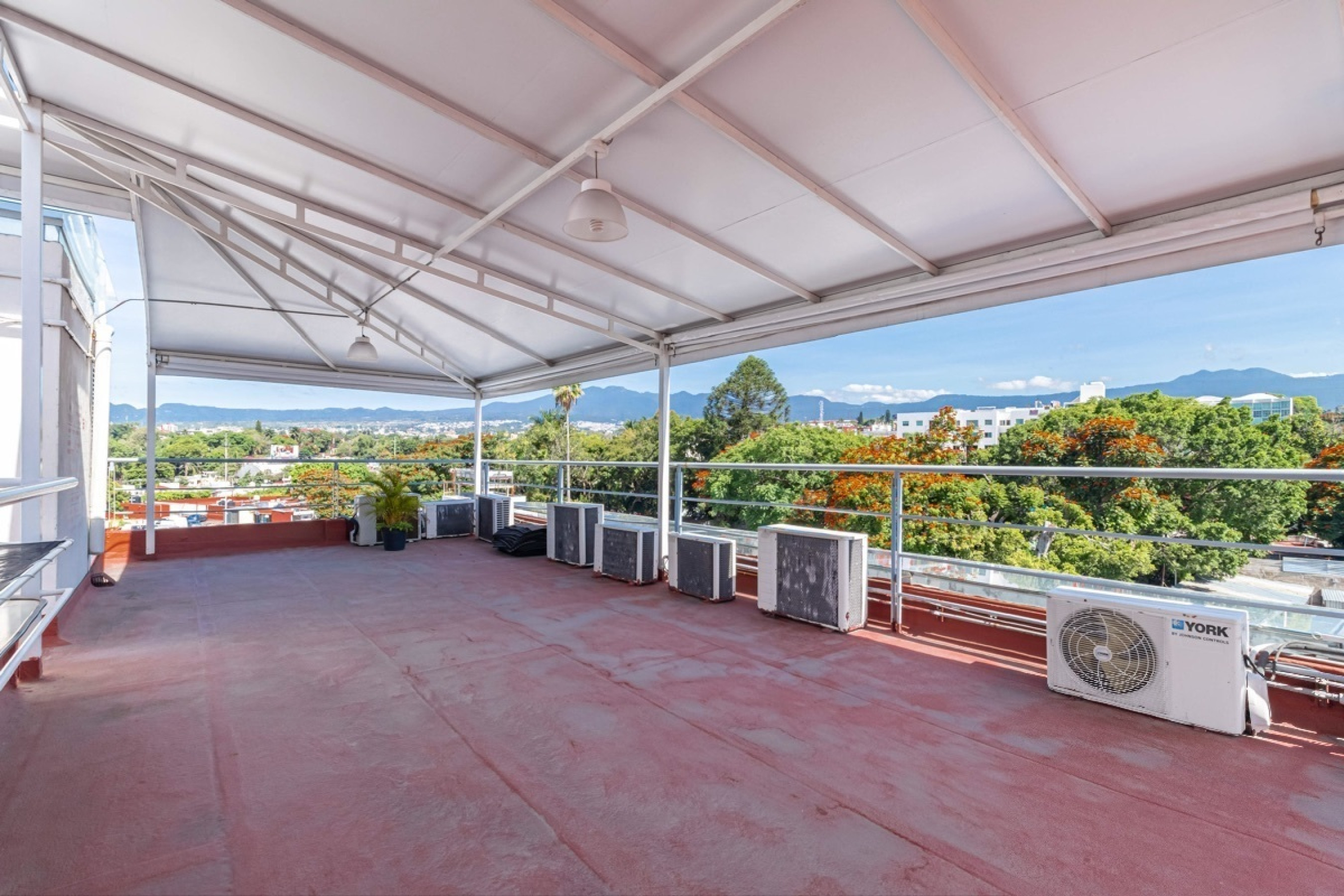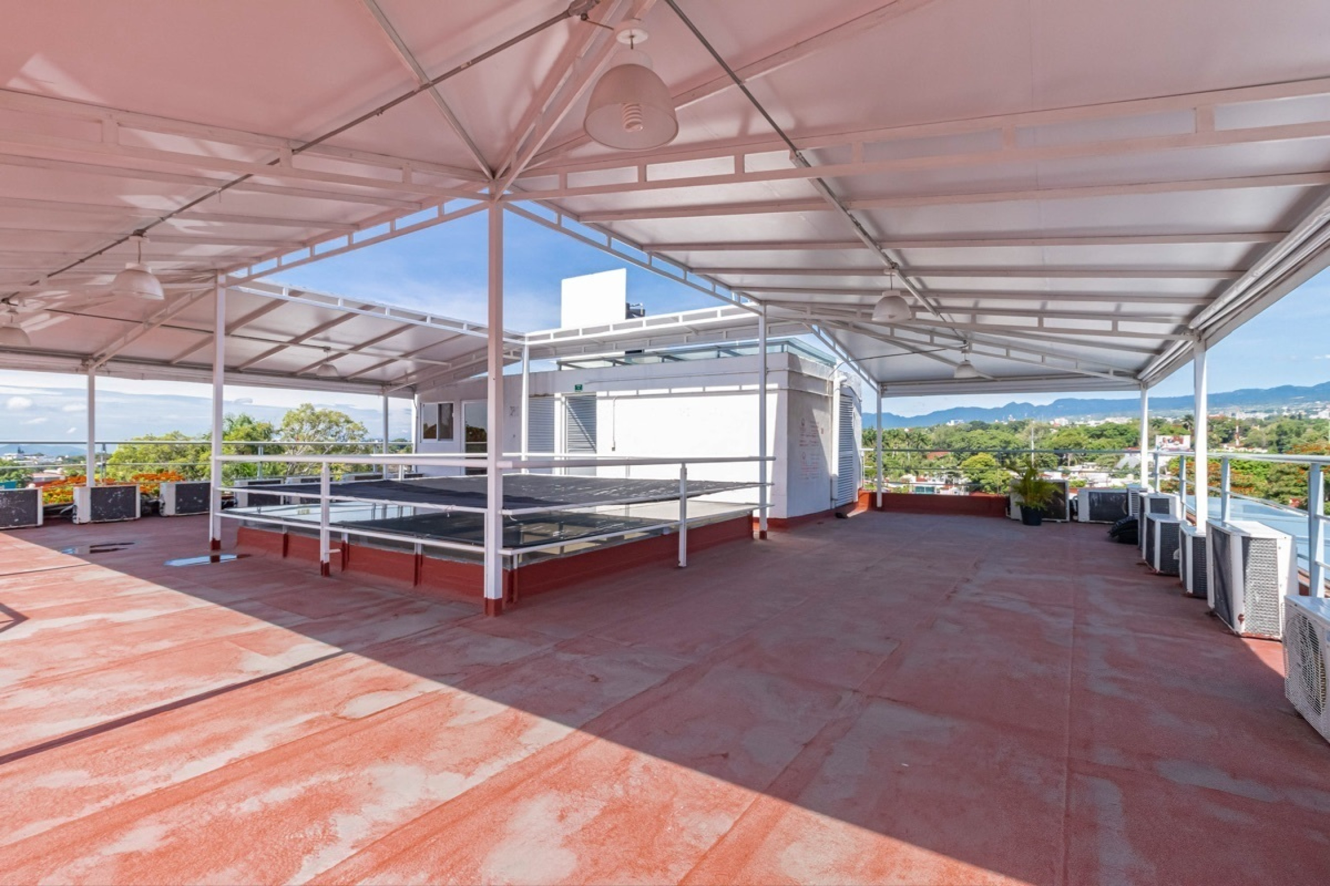 El roof garden tiene dos cocinas y toldo. Perfecto para comedor de empleados o area de descanso.