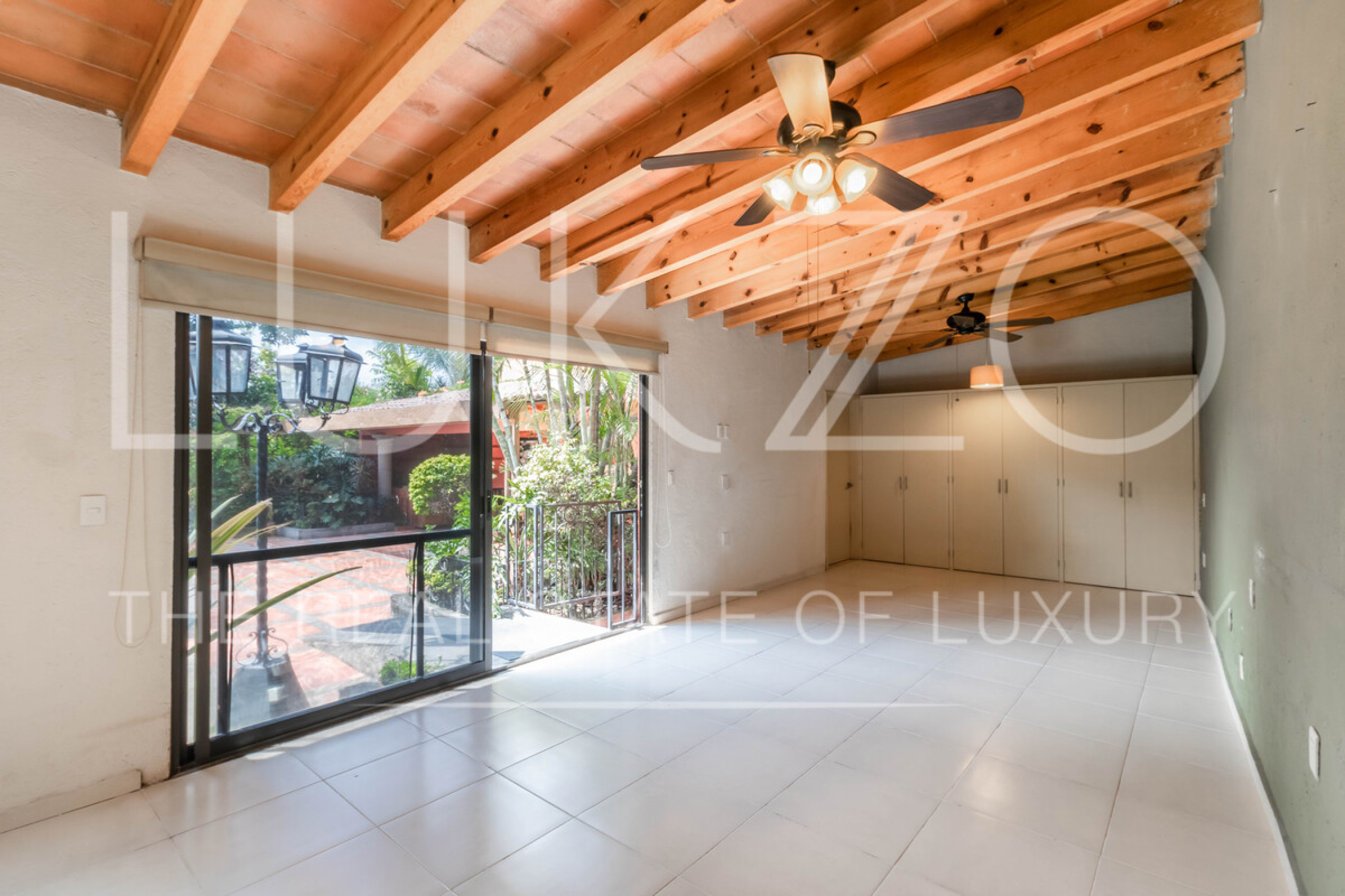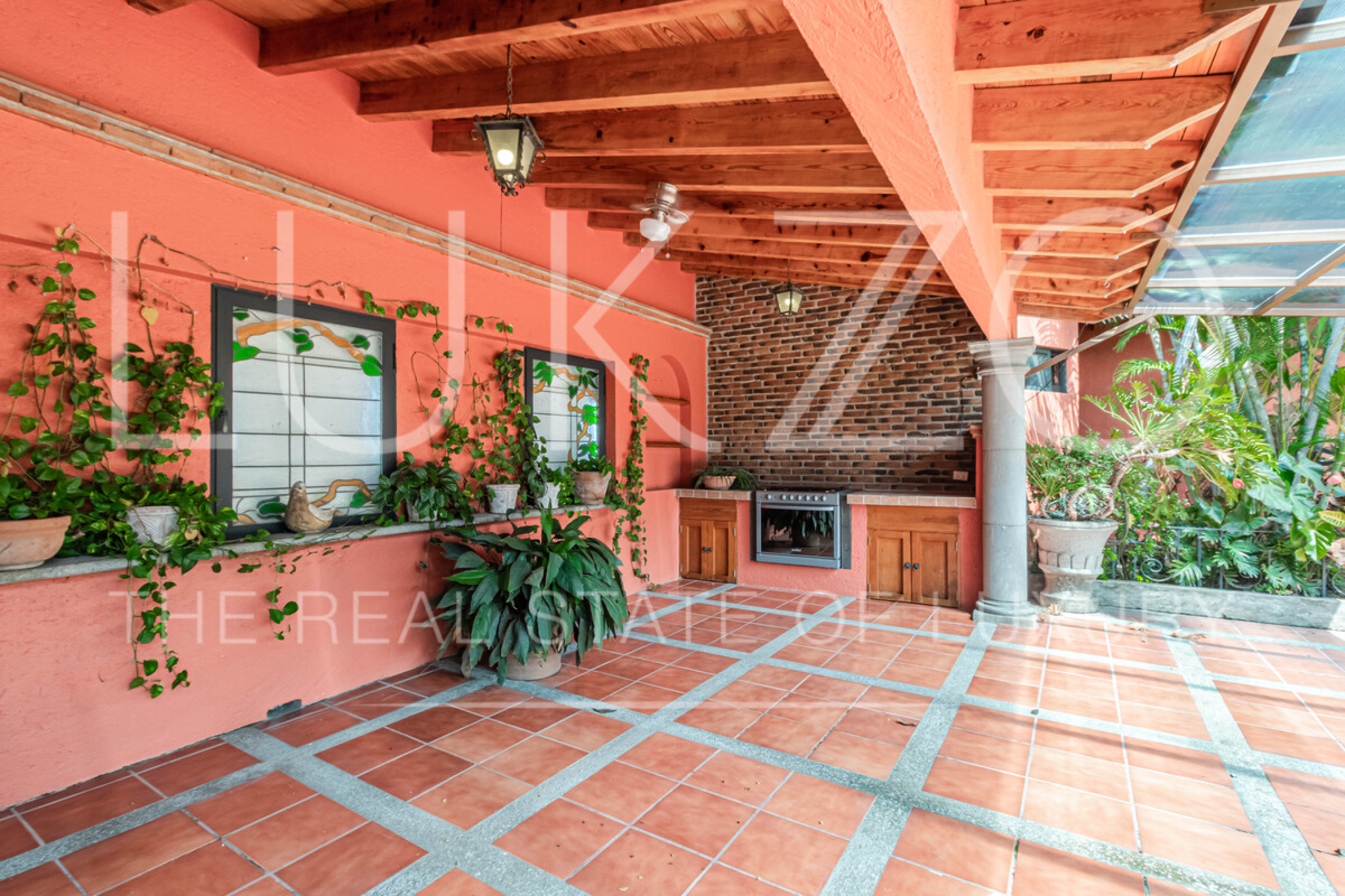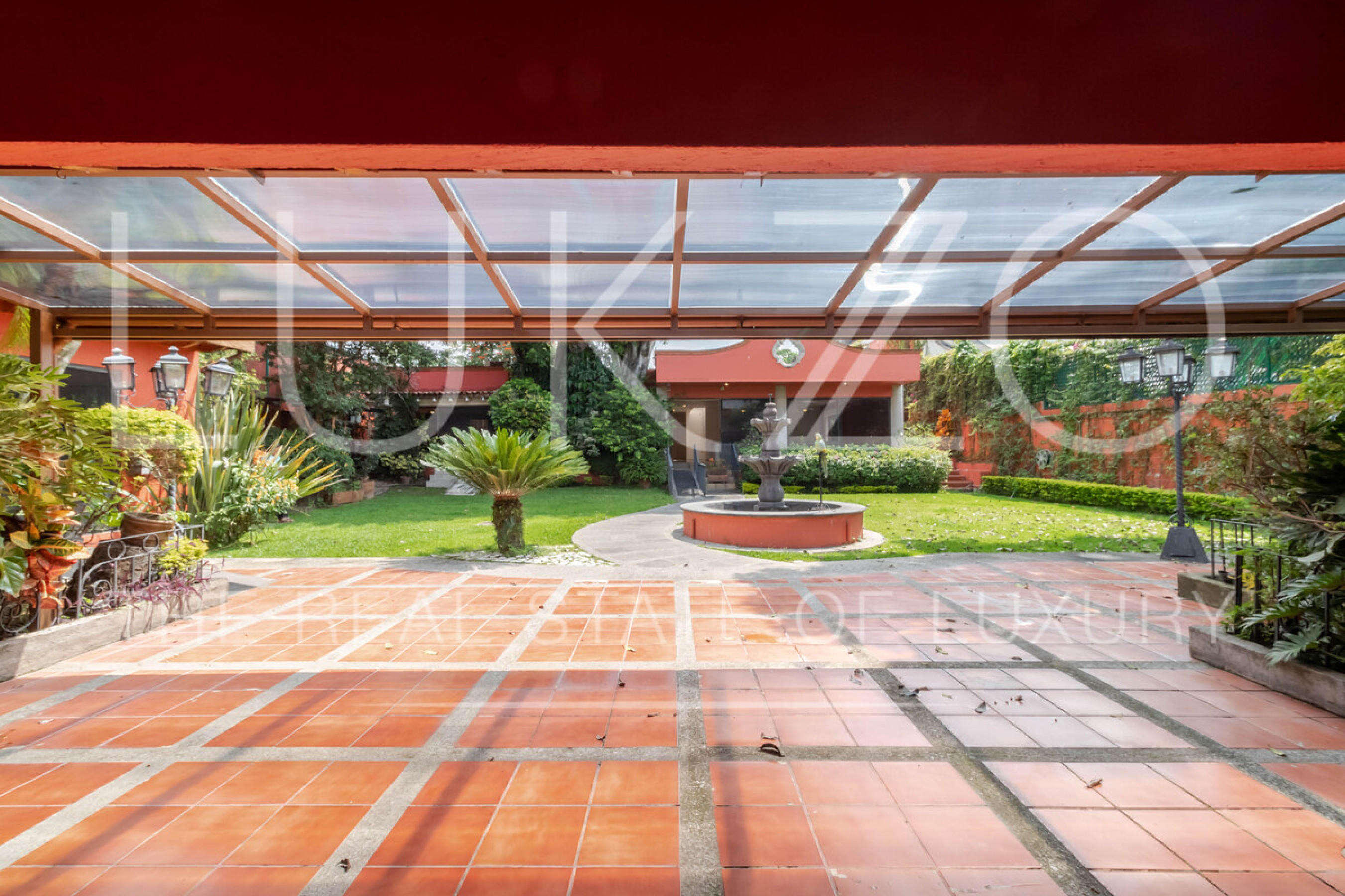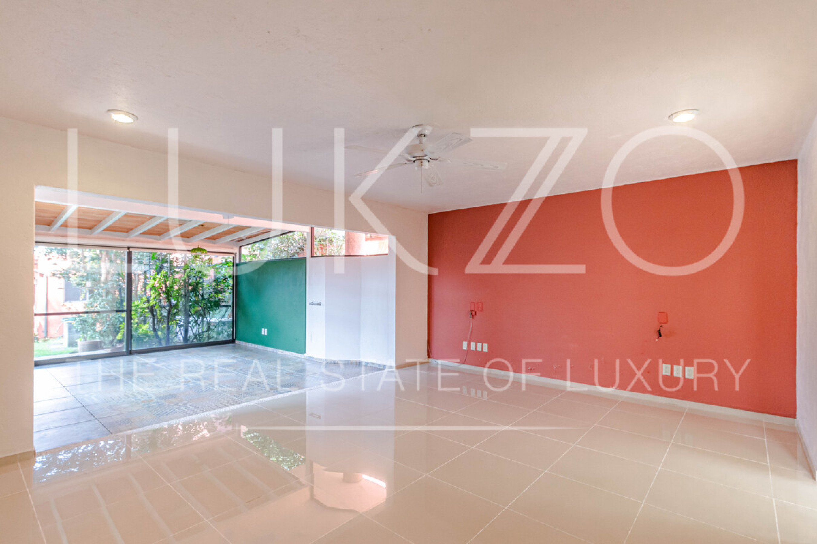 Residencia estilo mexicano ubicada en Palmira, Cuernavaca, sobre un terreno de 1,086 m² con ligera pendiente, construida en un solo nivel y en excelente estado de conservación. La casa cuenta con espacios amplios y luminosos: sala, comedor, antecomedor y una cocina equipada, distribuidos equilibradamente para la convivencia y el confort. Dispone de cinco recámaras, cada una con su baño propio, además de medio baño para visitas. Entre sus amenidades destacan varios espacios de servicio: cuarto de servicio con baño, lavandería, tres bodegas, estudio, bungalow independiente, terraza con barra y jardín extenso con sistema de riego por aspersión. Asimismo se encuentran estacionamiento para seis autos, portón eléctrico, sistema hidroneumático, agua potable con dos tomas, closet de blancos, closet de visitas, clima instalado por medio de cinco minisplits y adaptaciones que permiten tener mascotas. Esta propiedad, construida aproximadamente en el año 2000, ofrece privacidad, funcionalidad y un ambiente ideal para quienes buscan confort y elegancia en una sola planta.