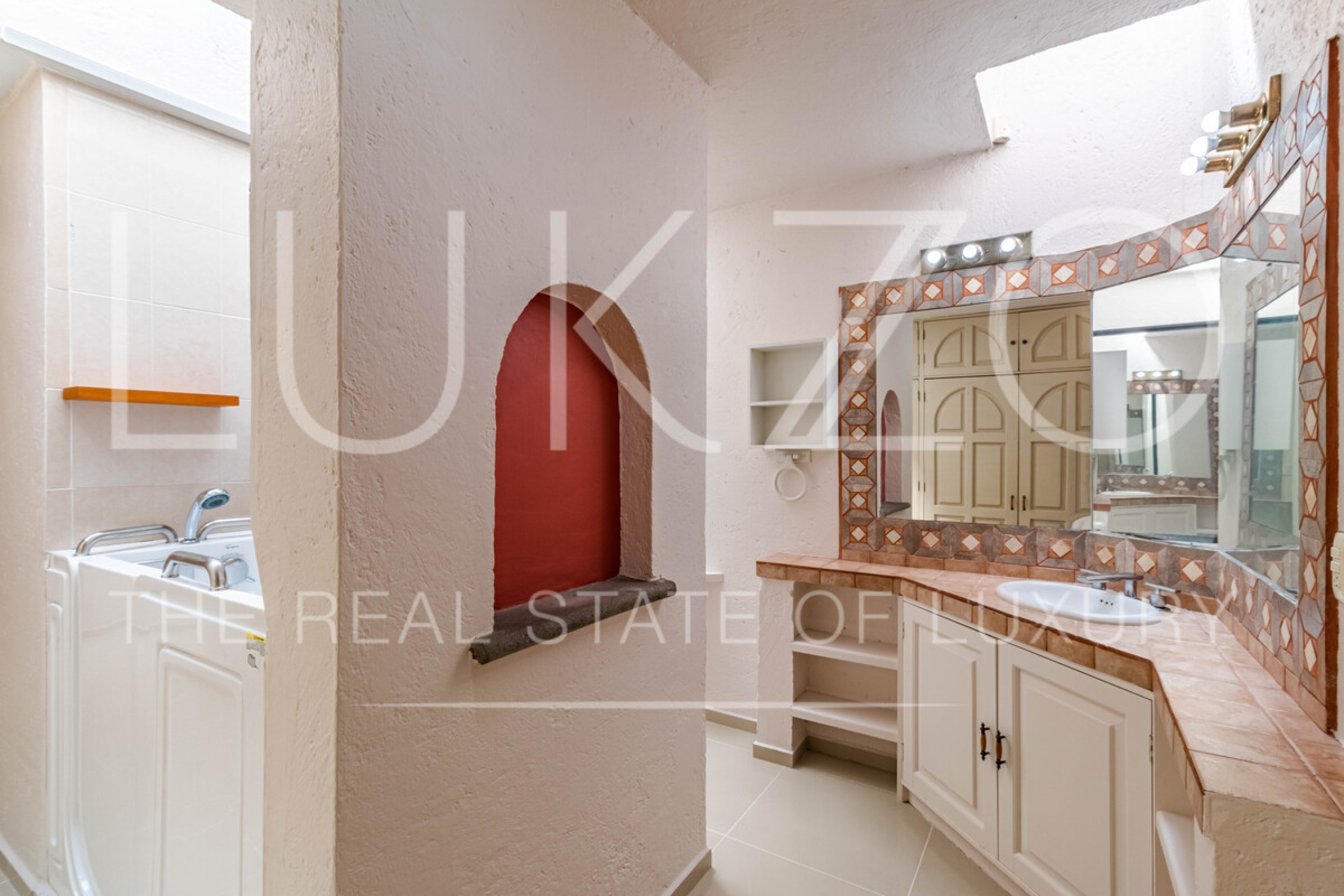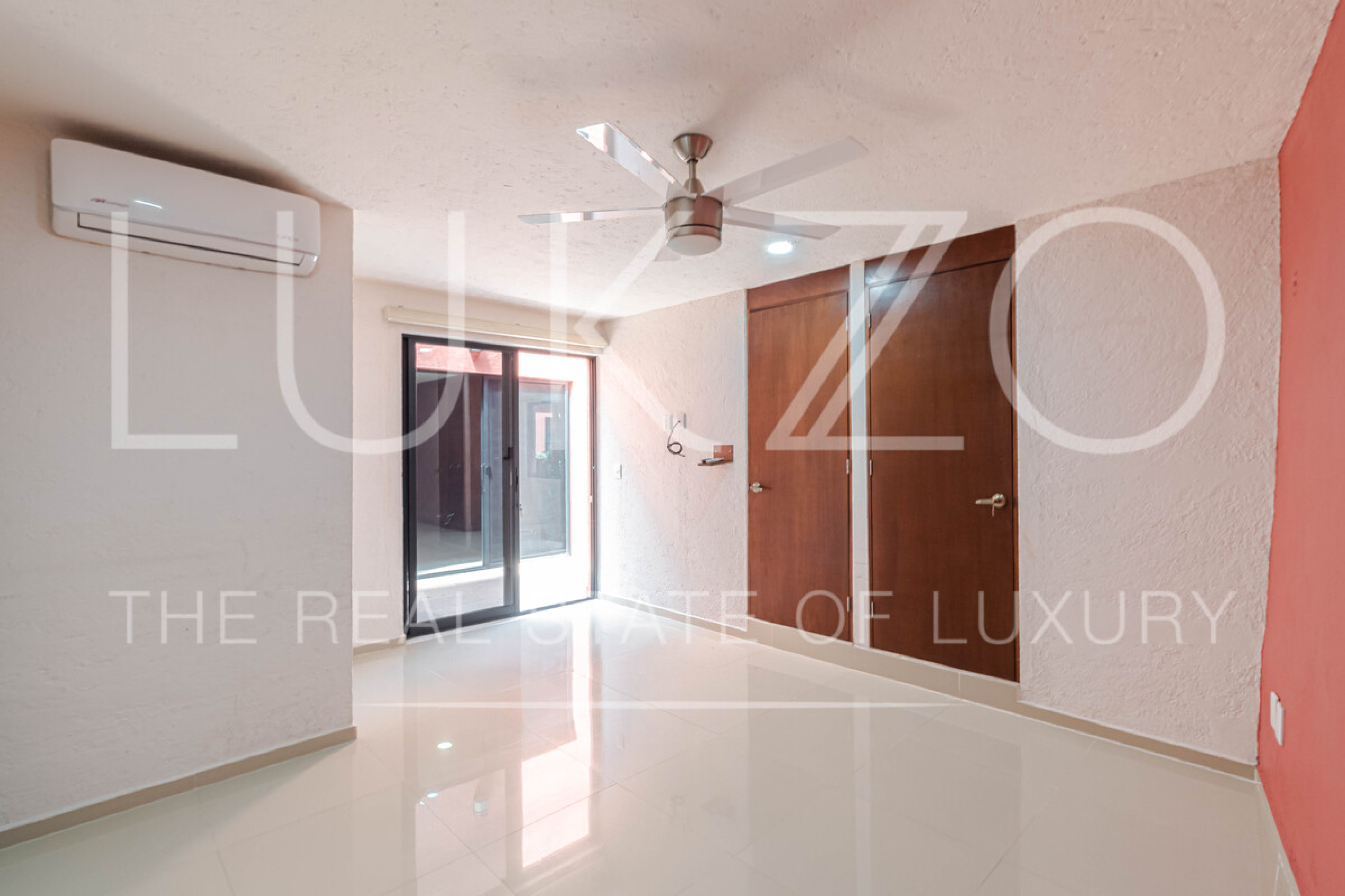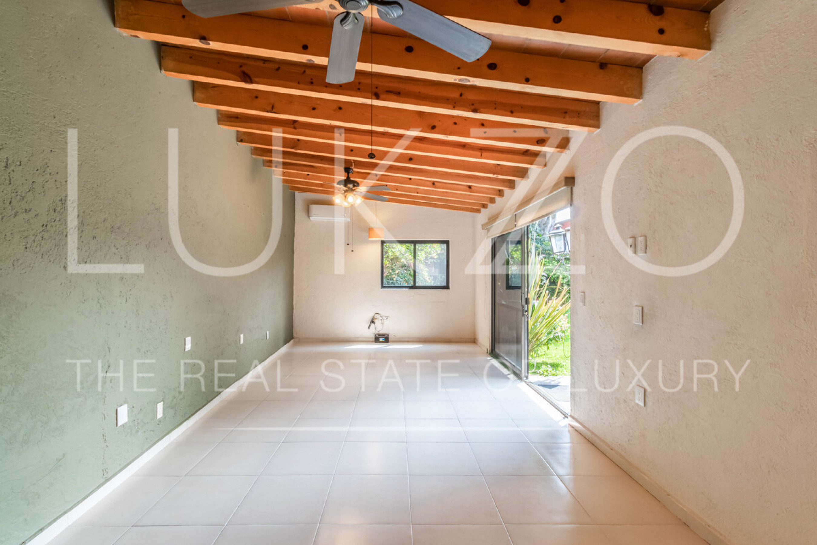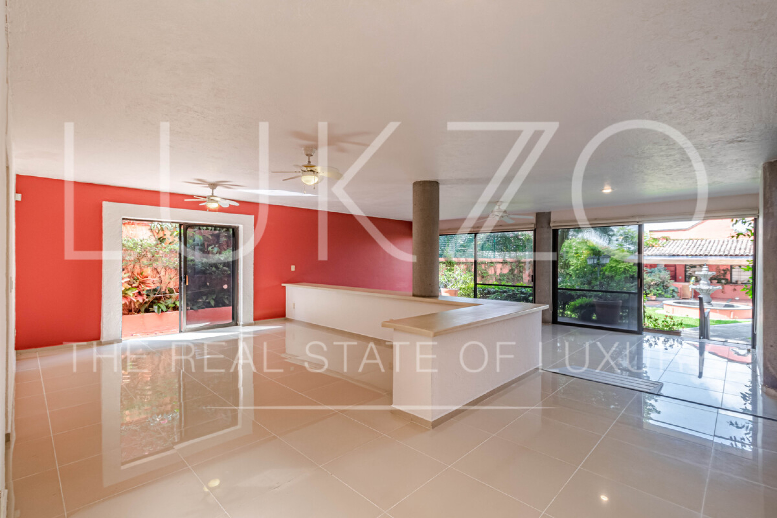 Residencia estilo mexicano ubicada en Palmira, Cuernavaca, sobre un terreno de 1,086 m² con ligera pendiente, construida en un solo nivel y en excelente estado de conservación. La casa cuenta con espacios amplios y luminosos: sala, comedor, antecomedor y una cocina equipada, distribuidos equilibradamente para la convivencia y el confort. Dispone de cinco recámaras, cada una con su baño propio, además de medio baño para visitas. Entre sus amenidades destacan varios espacios de servicio: cuarto de servicio con baño, lavandería, tres bodegas, estudio, bungalow independiente, terraza con barra y jardín extenso con sistema de riego por aspersión. Asimismo se encuentran estacionamiento para seis autos, portón eléctrico, sistema hidroneumático, agua potable con dos tomas, closet de blancos, closet de visitas, clima instalado por medio de cinco minisplits y adaptaciones que permiten tener mascotas. Esta propiedad, construida aproximadamente en el año 2000, ofrece privacidad, funcionalidad y un ambiente ideal para quienes buscan confort y elegancia en una sola planta.