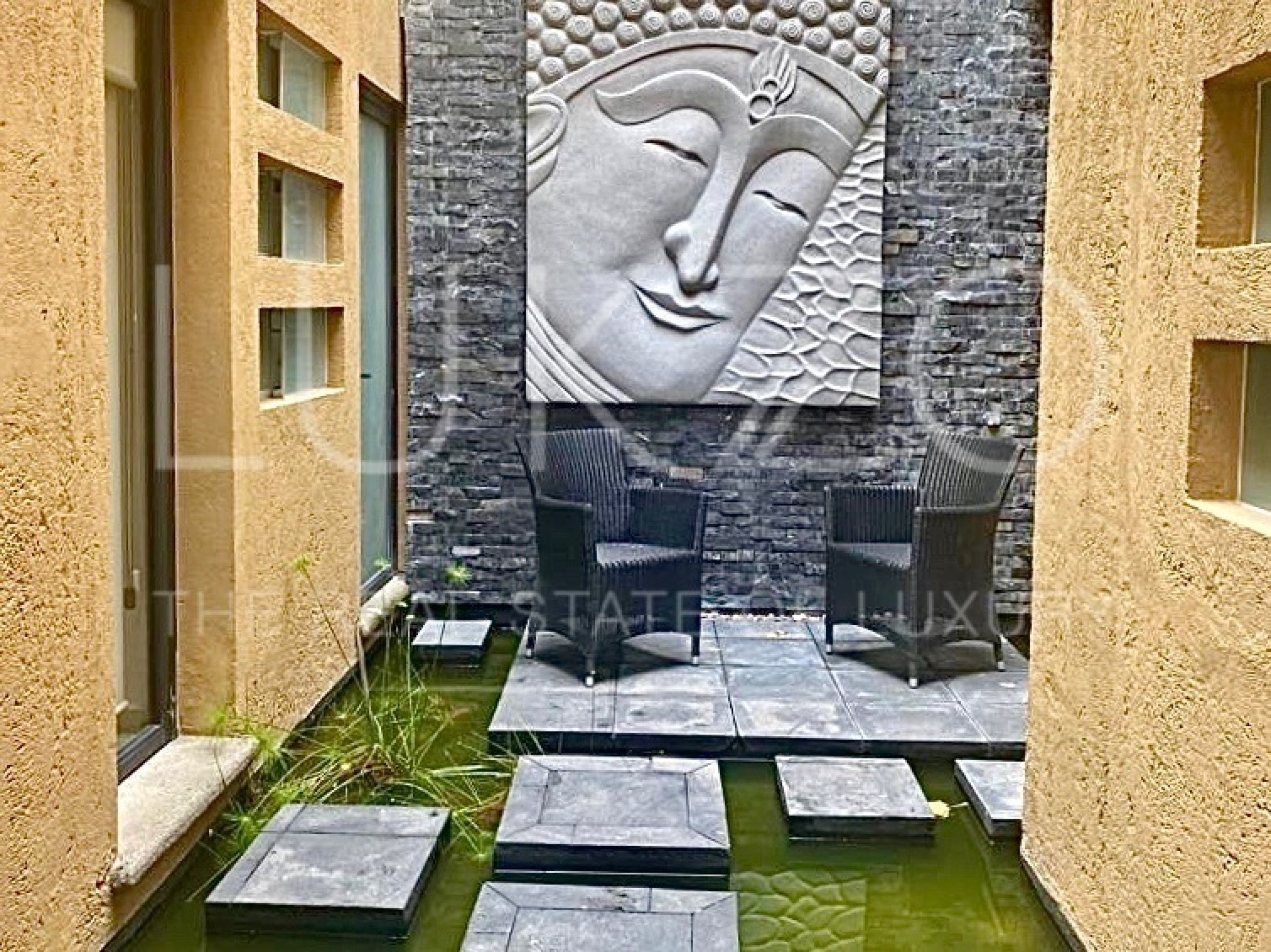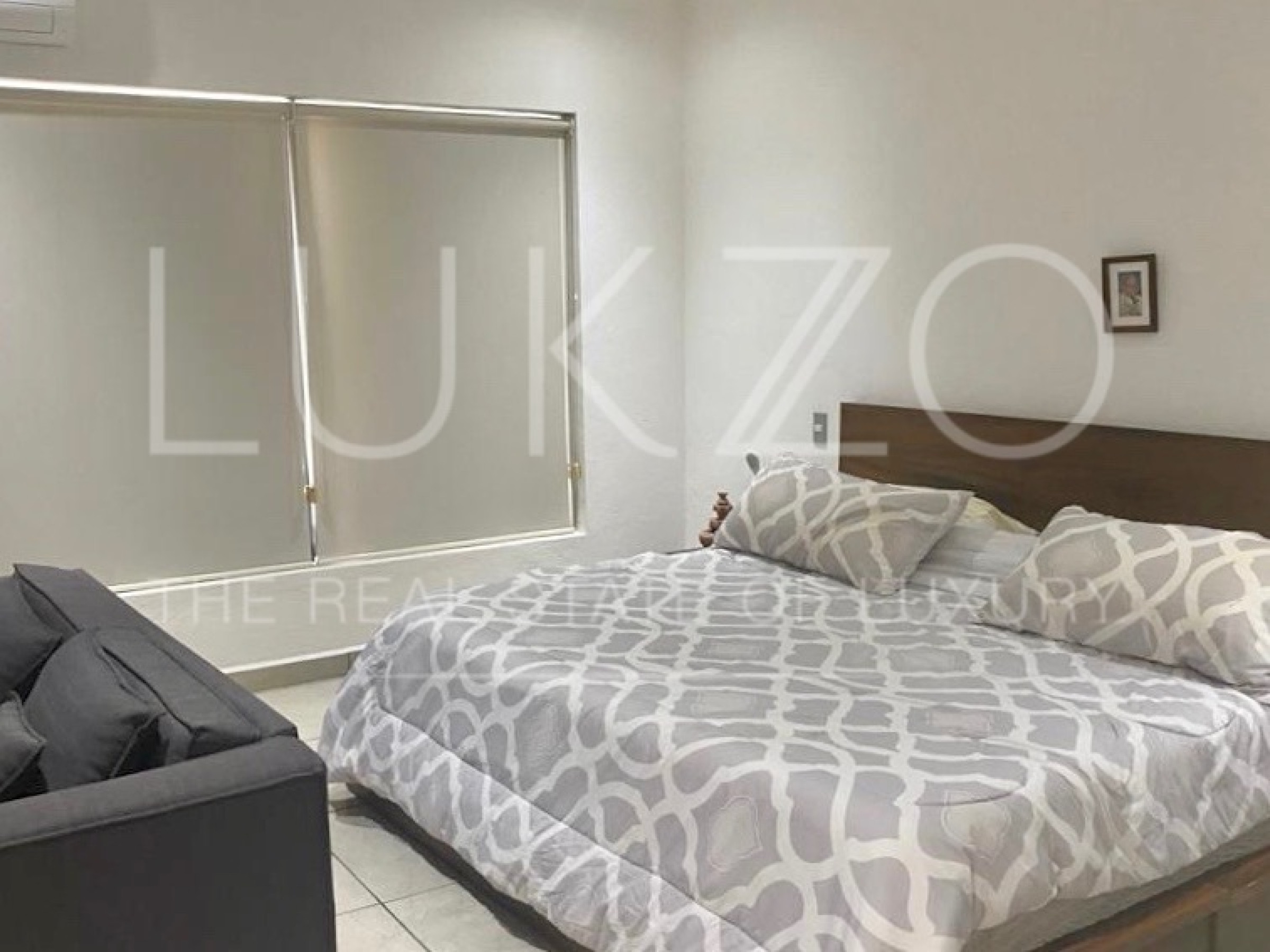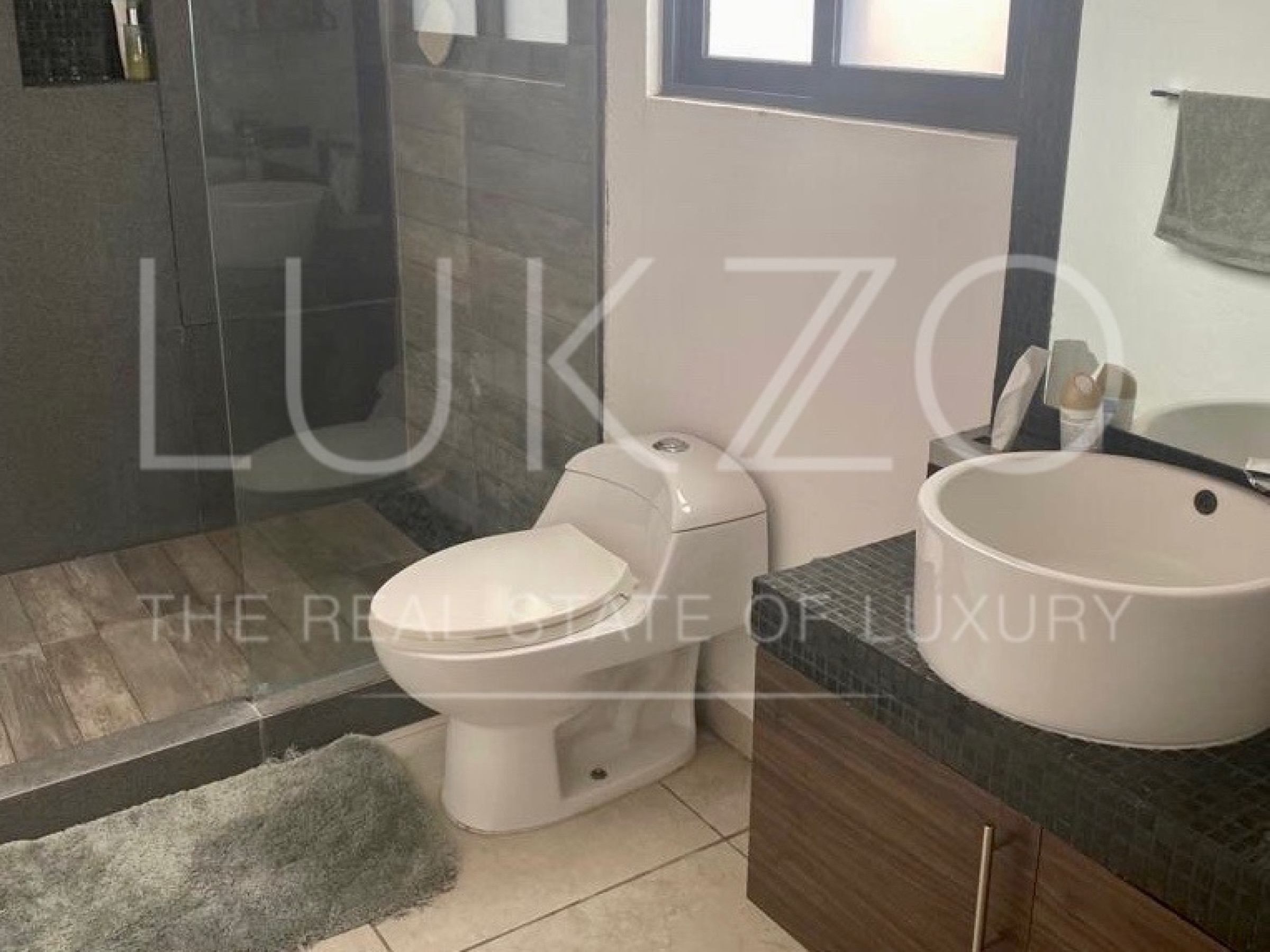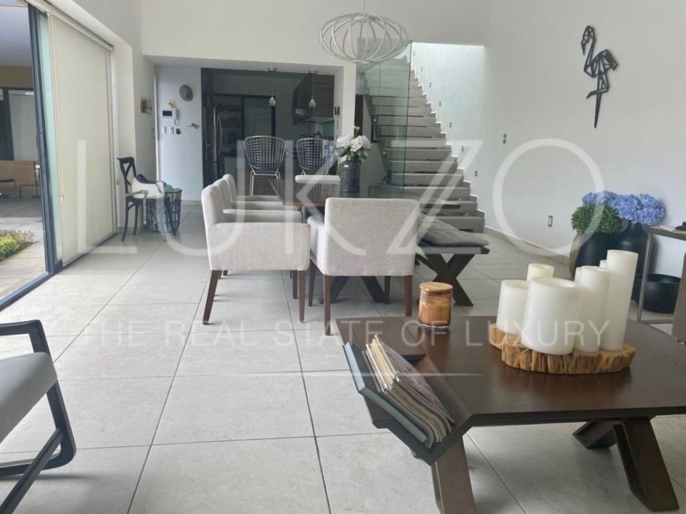 En el interior de la casa encontrarás una sala, comedor y cocina equipada con barra. En planta baja encontrarás 2 recámaras, cada una con su propio baño, además de un medio baño de visitas. En la planta alta, hay tres recámaras más, todas con baño. La recámara principal cuenta con un vestidor para mayor comodidad.