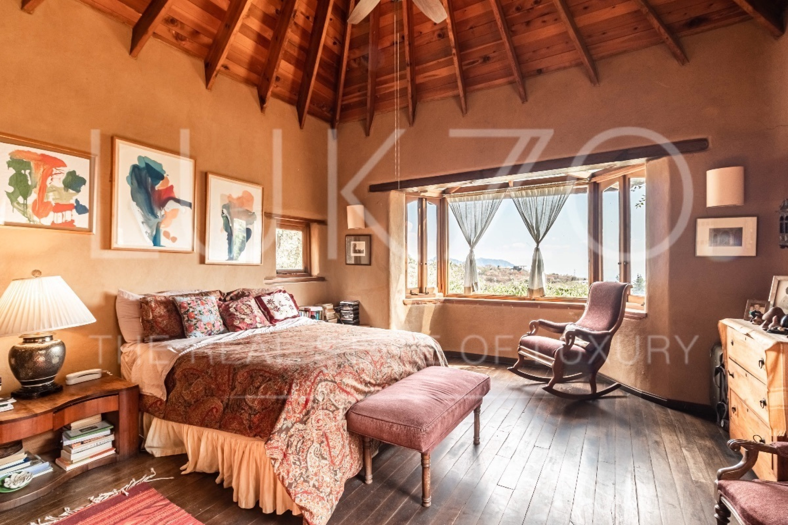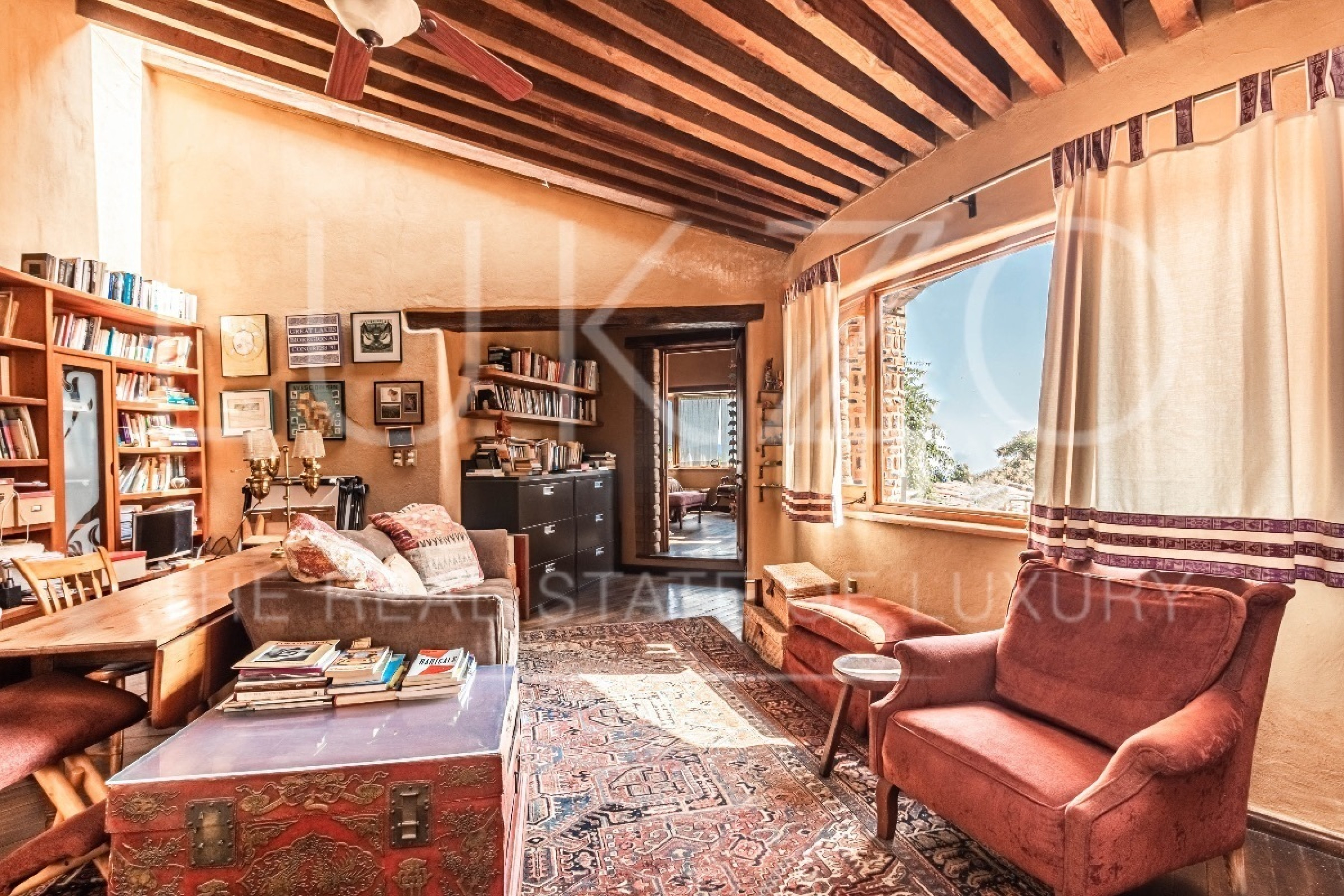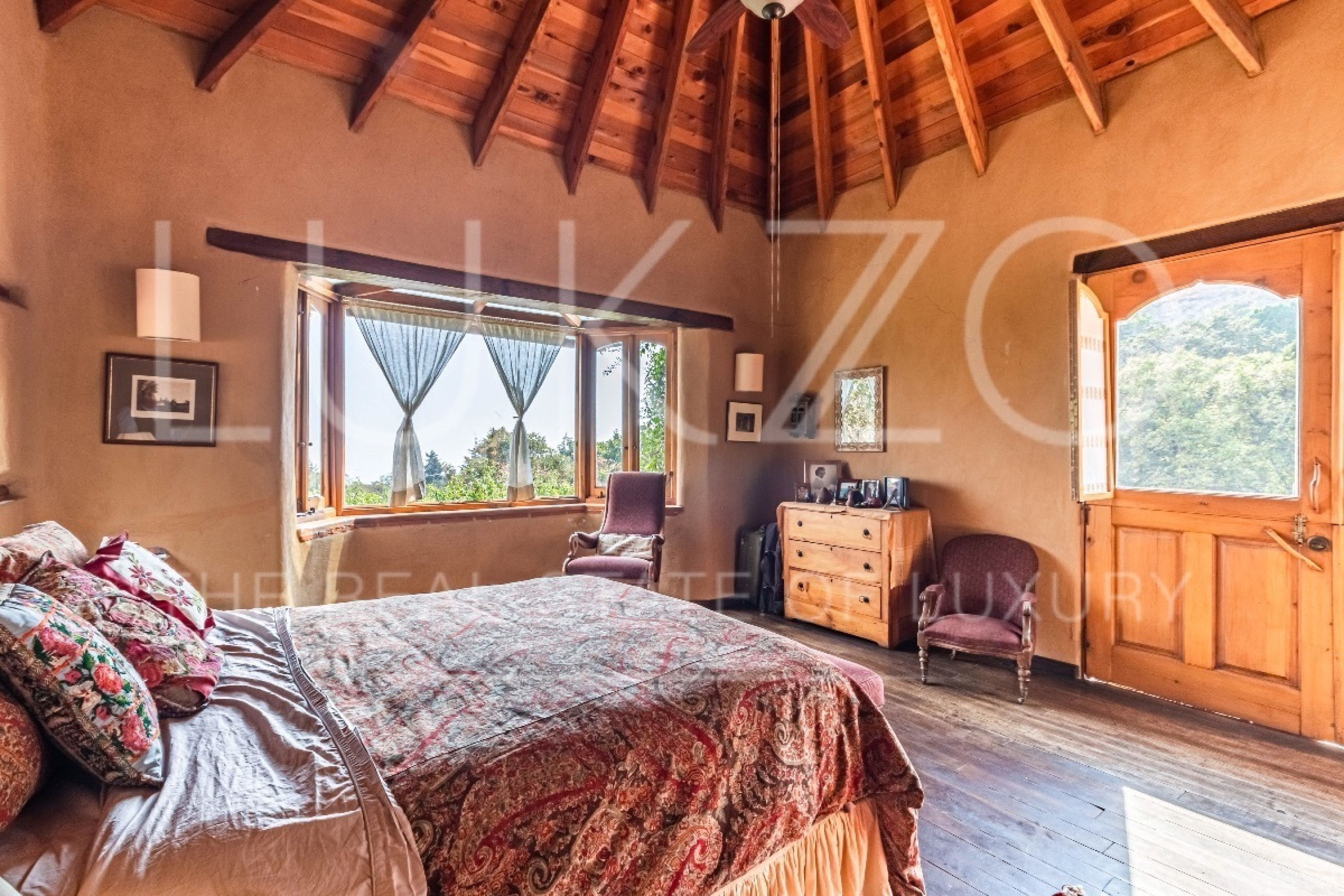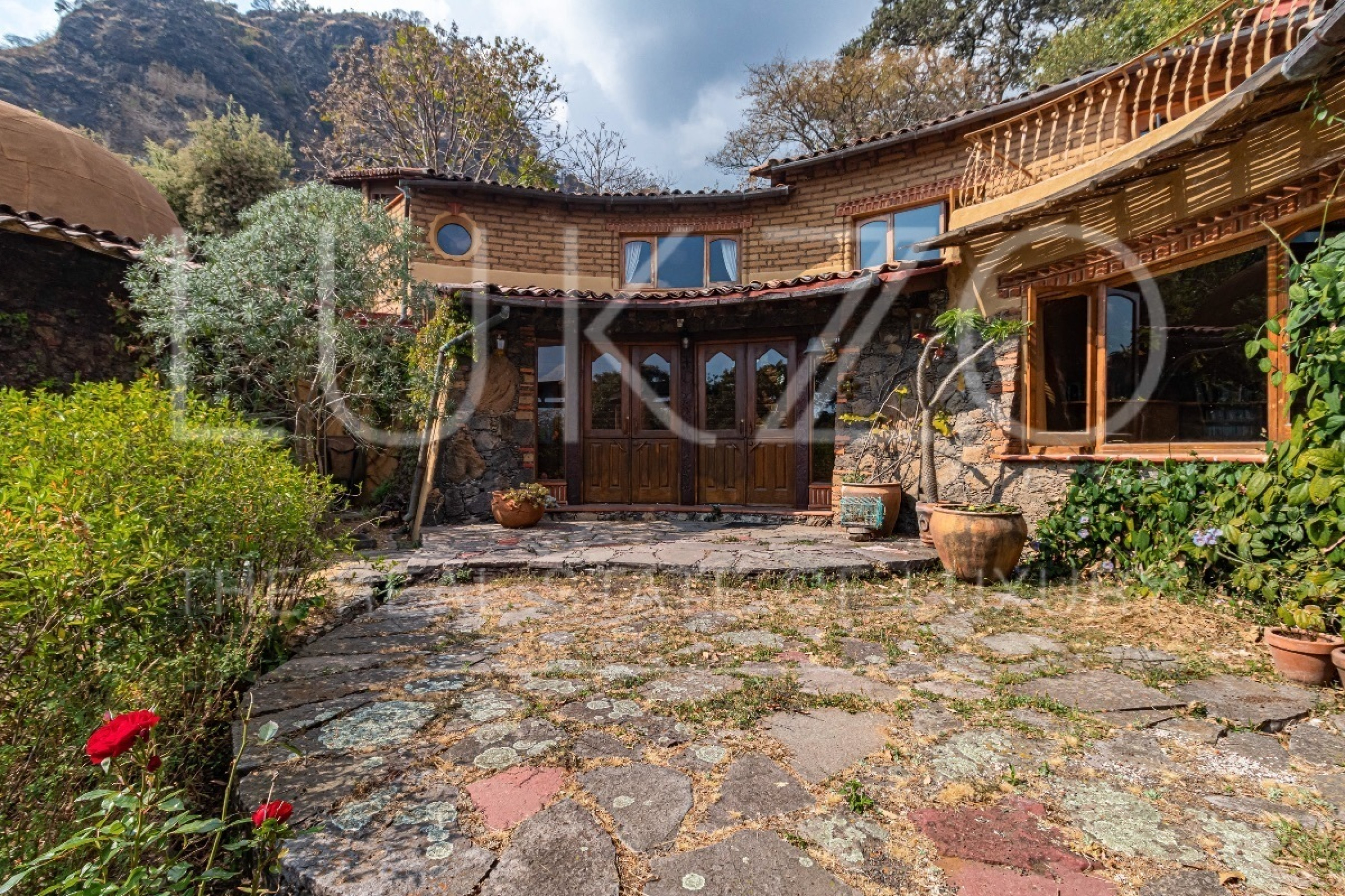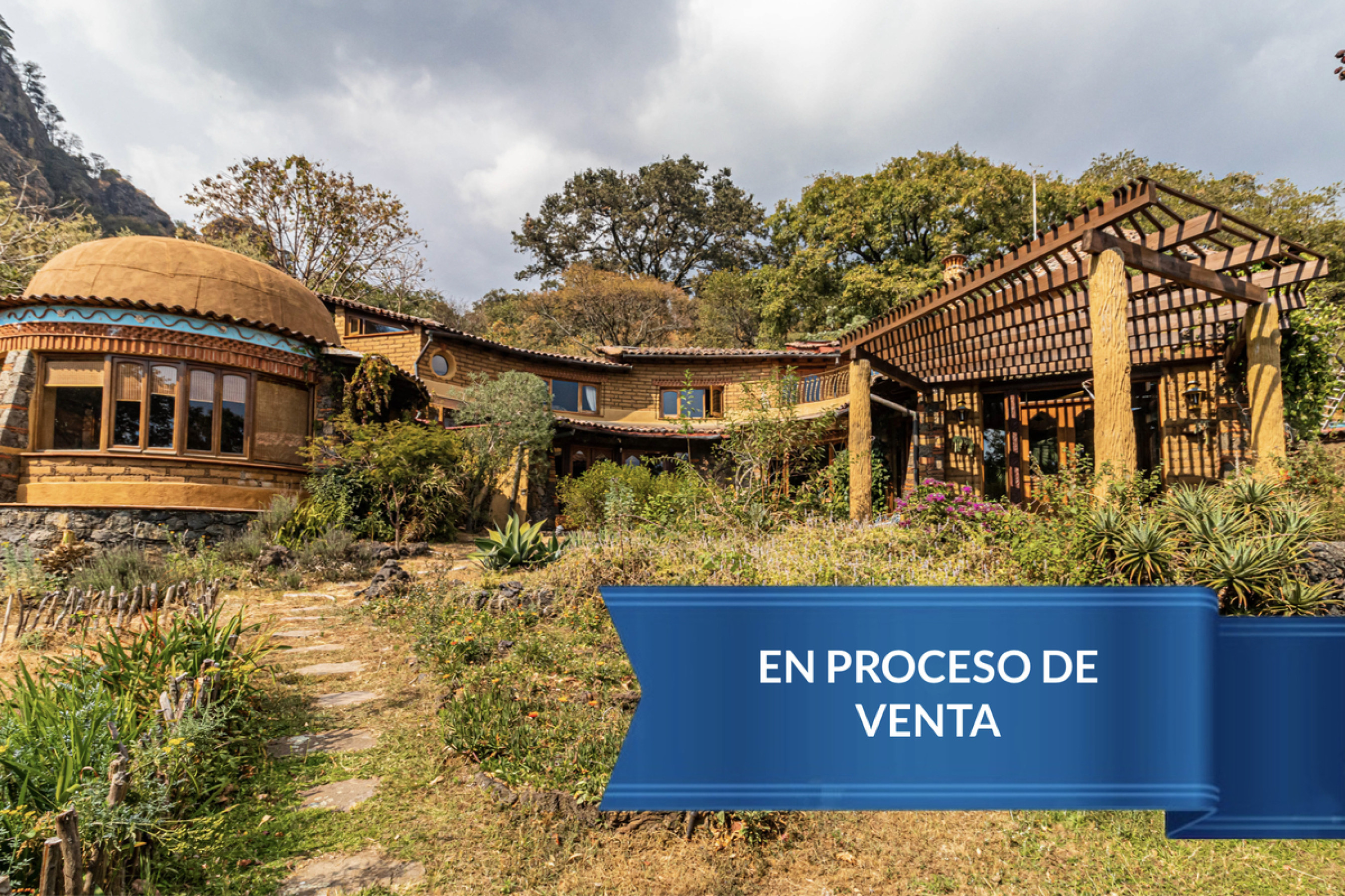 Diseñada por el arquitecto mexicano Michel Lewis, la casa está construida con piedra local y adobe, con techos altos, vigas de madera y vistas en todas las direcciones. Construida en una forma distintiva de media luna, la casa tiene tres dormitorios, tres baños, sala de estar, comedor, oficina y cocina. Los pisos son de baldosas tradicionales o de madera. Los espacios al aire libre, todo rodeado de jardines y árboles. Patio cercano a la cocina, perfecto para tomar un café por la mañana. Terraza cubierta afuera del comedor. Terraza en el segundo piso para tomar el sol y observar la luna. Una zona detrás de la casa, ideal para leer y tomar el té de la tarde. Ecovillage Huehuecoyotl es una comunidad asentada en una superficie de 20,797 m en la que se construyeron 14 residencias. Por su cercanía en la montaña, su entorno de bosque y acceso a casi 15,000 m de áreas comunes en las que se han implementado huertos, cocina comunitaria, salón de trabajo y área de jardín para eventos. Cesión de derechos.