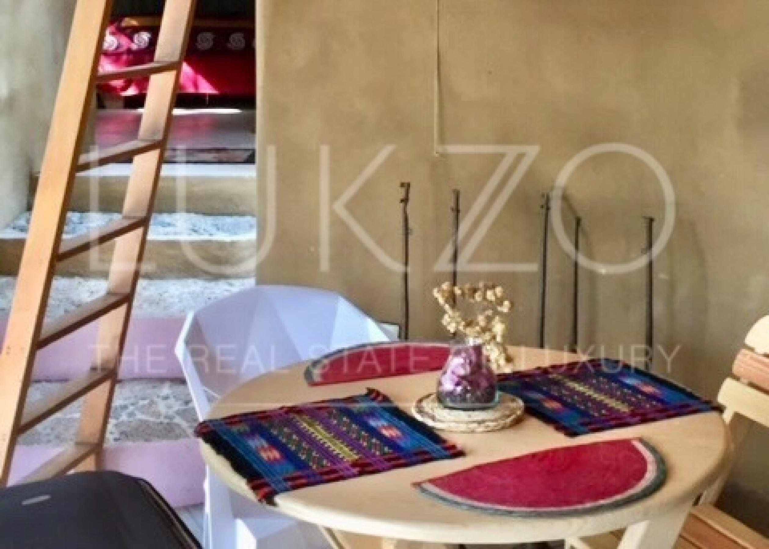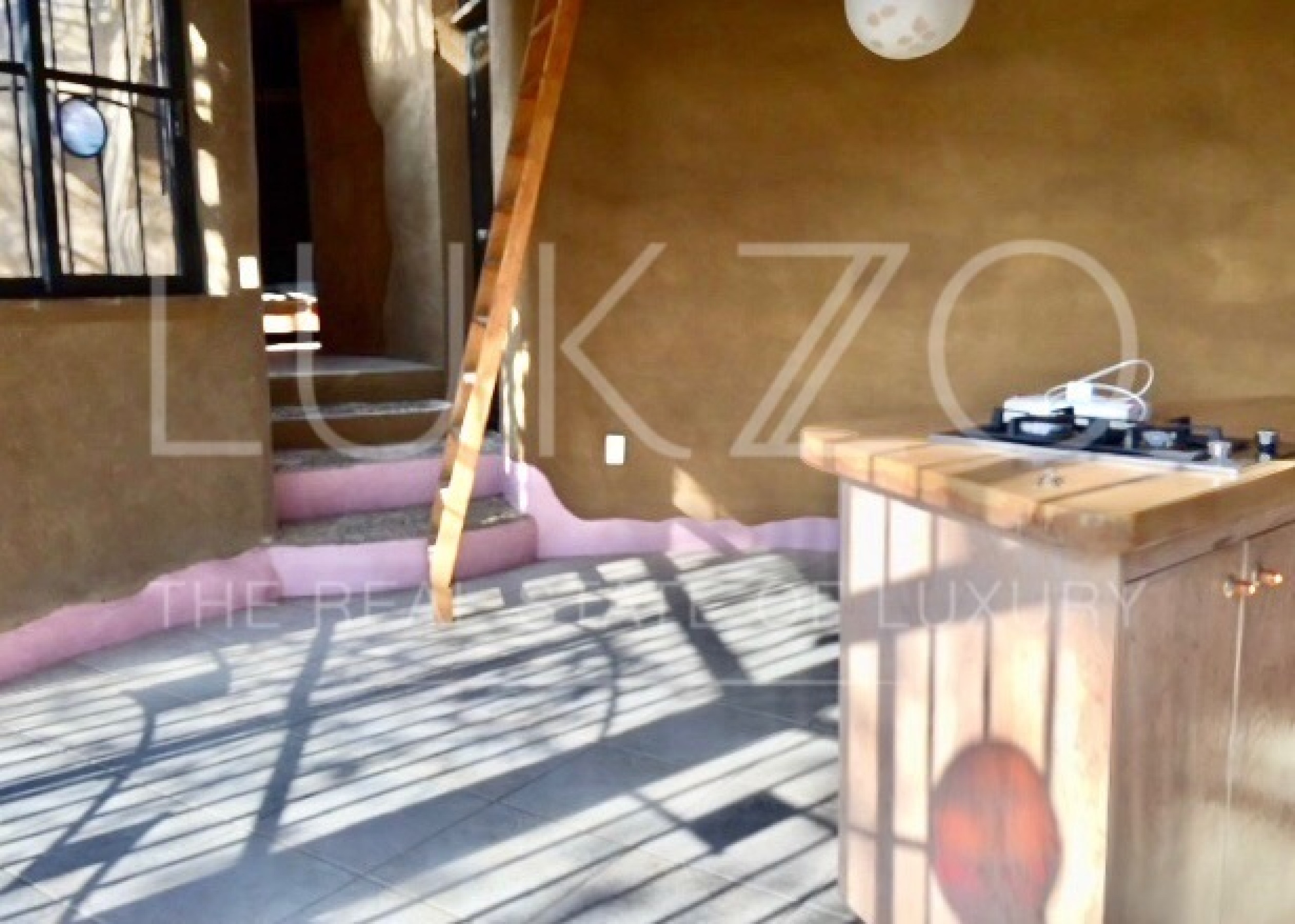 La casa consta de un espacio abierto con sala, comedor, cocina y tapanco. Un luminoso pasillo conduce a la recámara, redonda y con cúpula de adobe. El tapanco funciona para segunda recámara o área de esparcimiento.