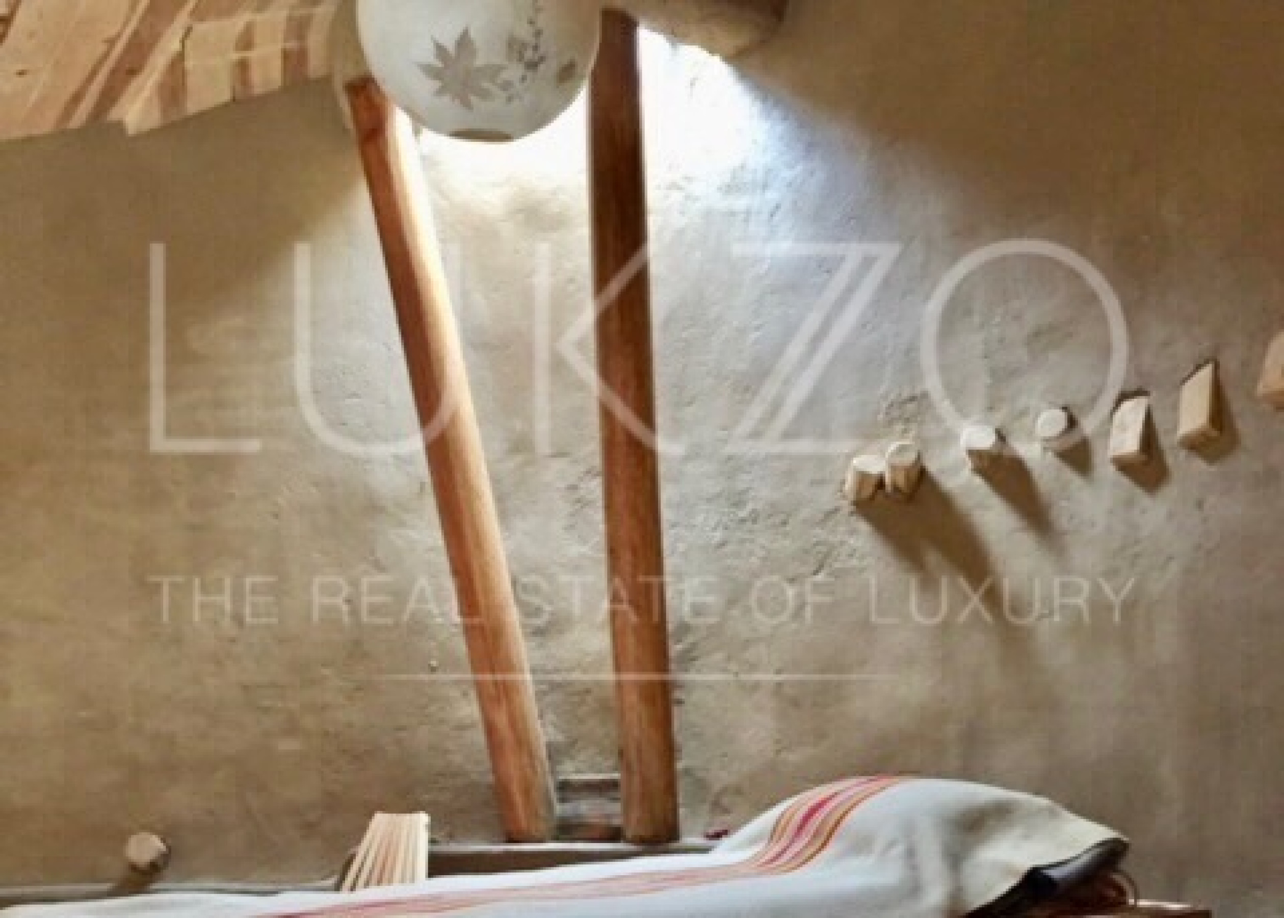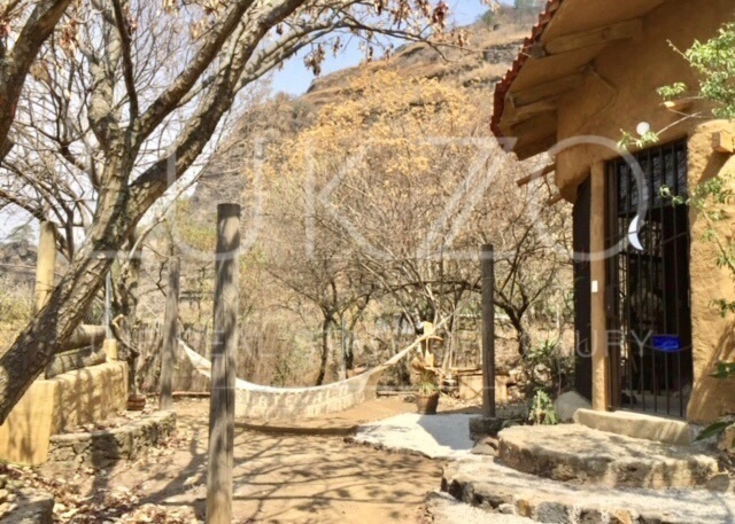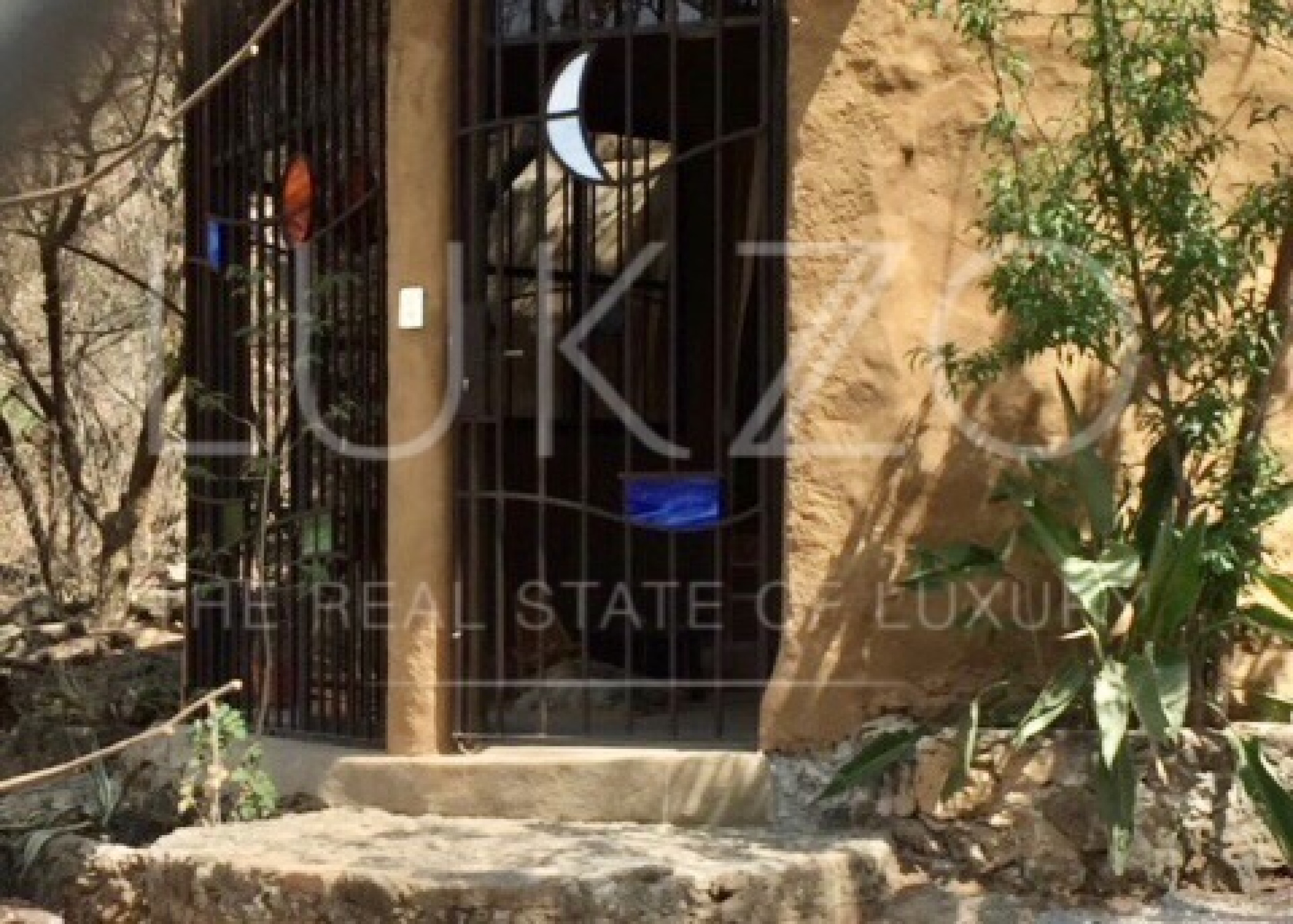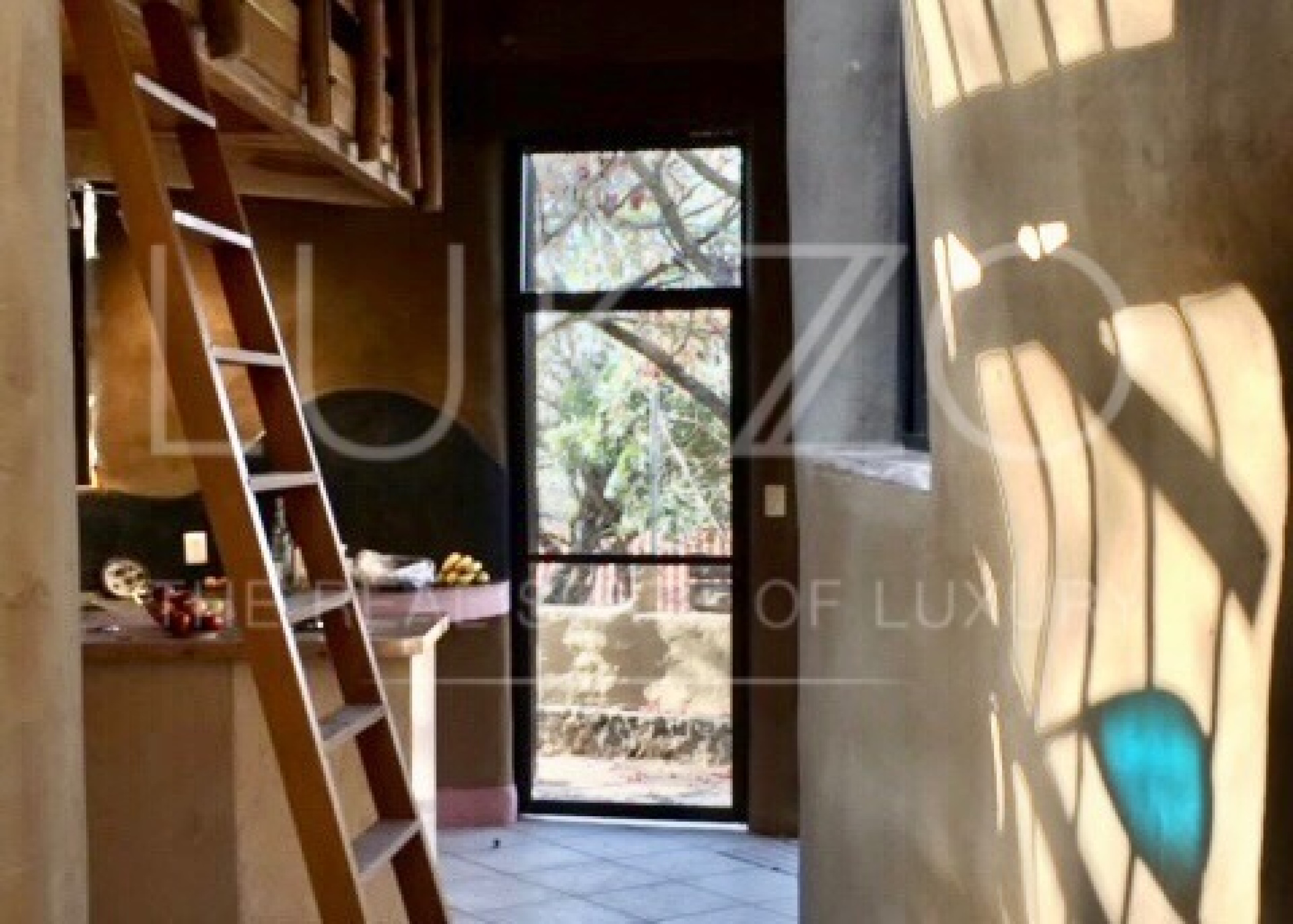 Original y única, construcción de superadobe y madera. Respetando el entorno natural, la casa está construida alrededor de un Árbol de Copal y las fachadas replican la silueta de las montañas.