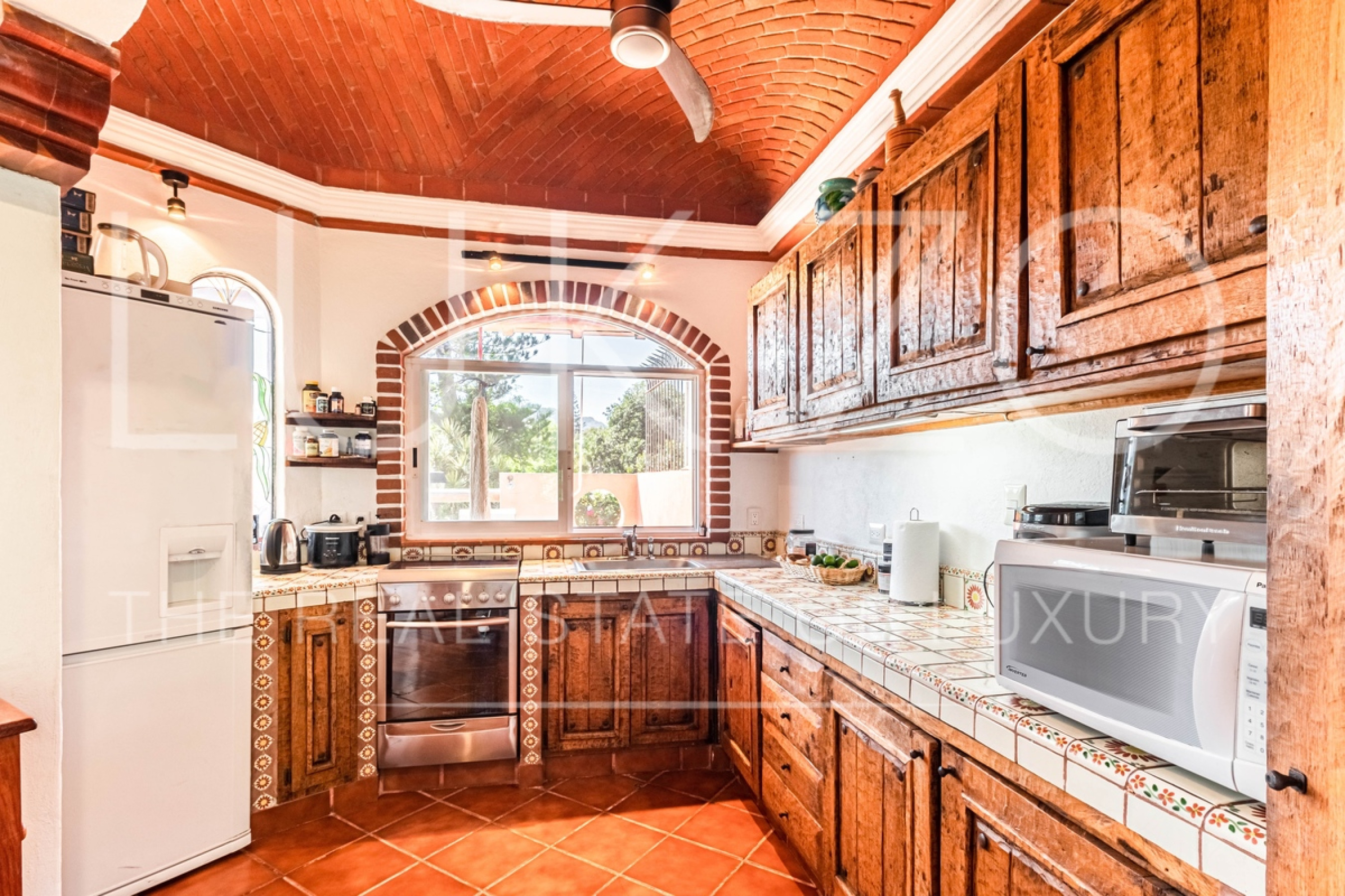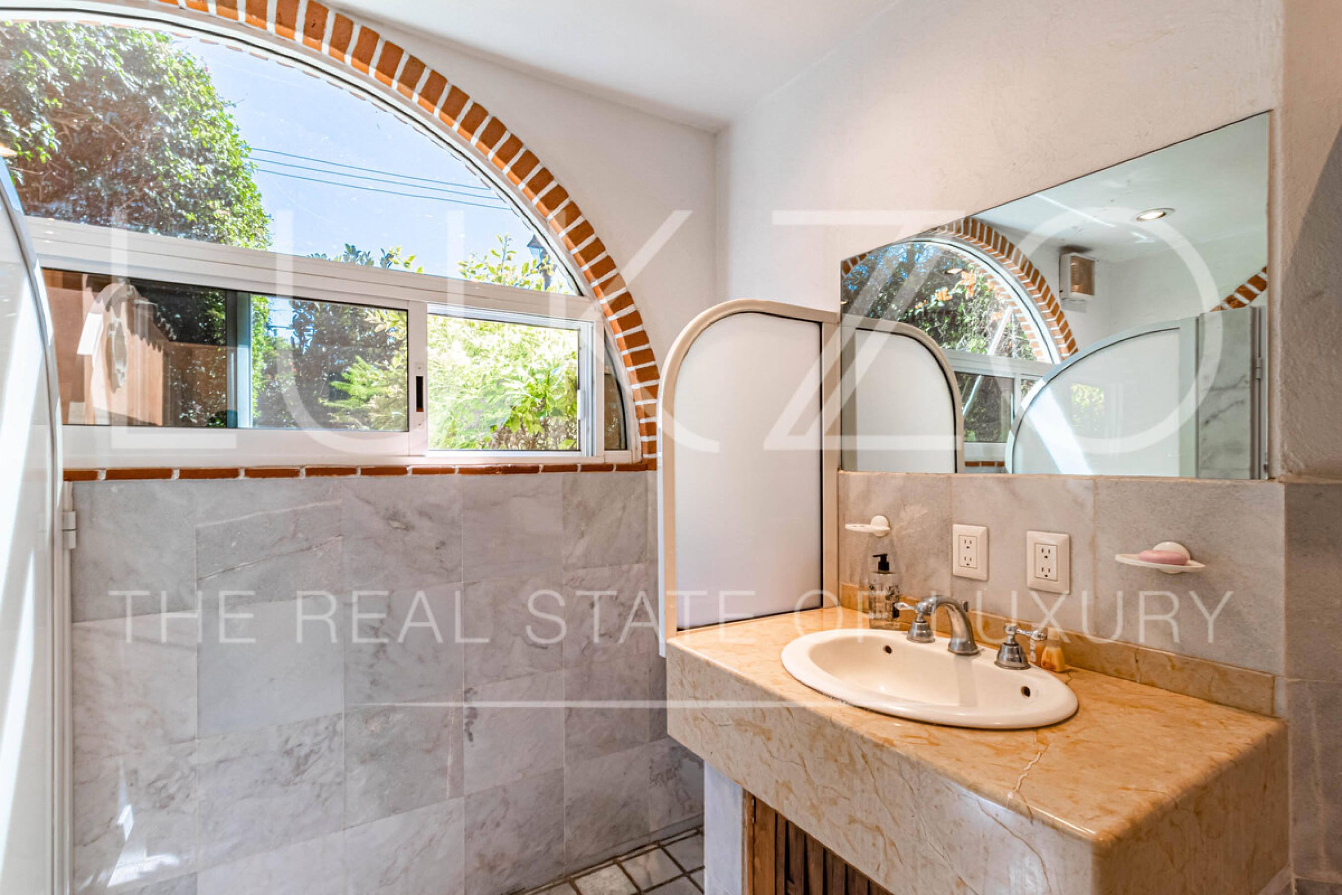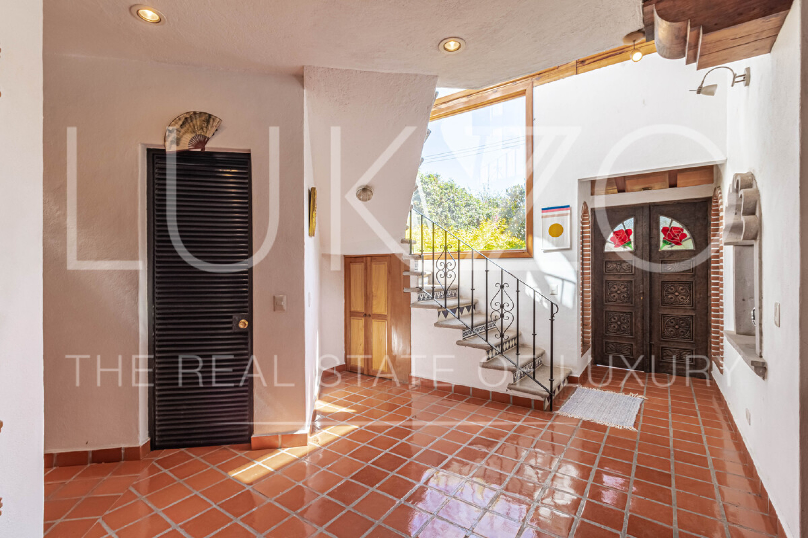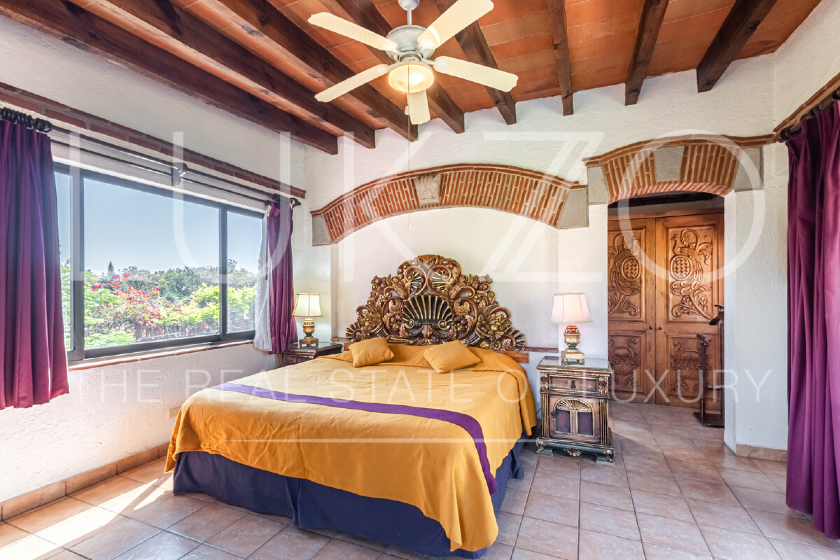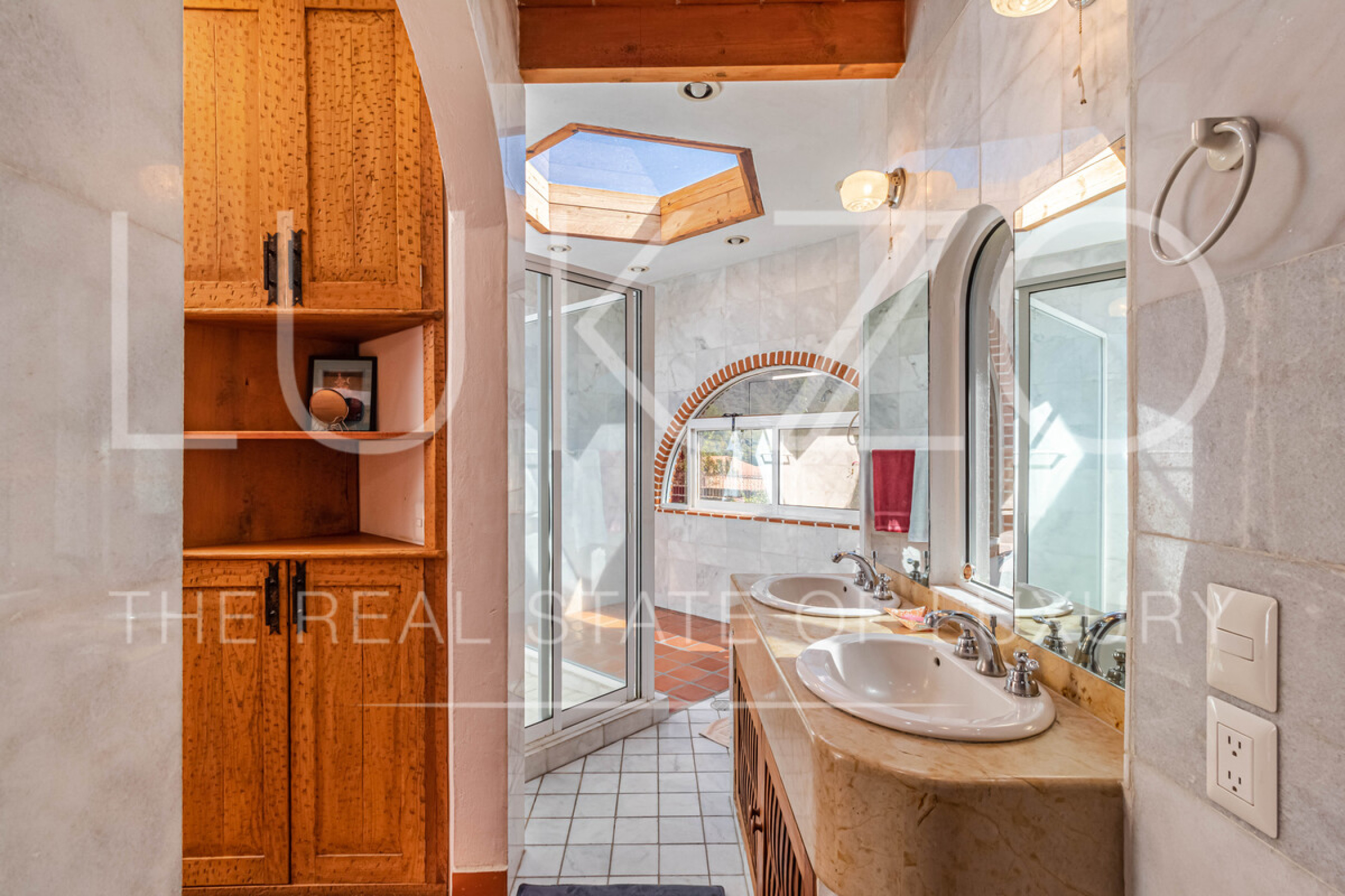 La segunda casa es de dos pisos con techos altos de ladrillo, pisos de mármol y de madera. Vitrales, frescos, y un jardín con fuente. En esta casa hay tres recámaras con baños completos. Terraza o sala al aire libre con chimenea con vista al jardín. Cuenta con cocina integral.
