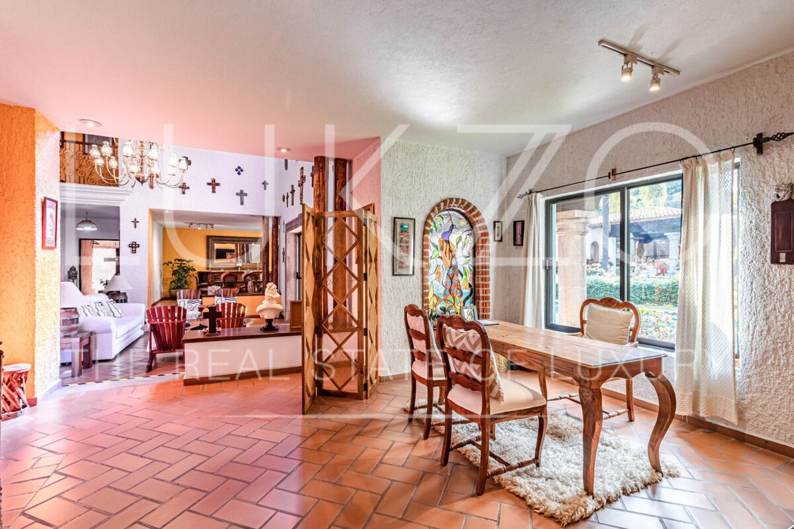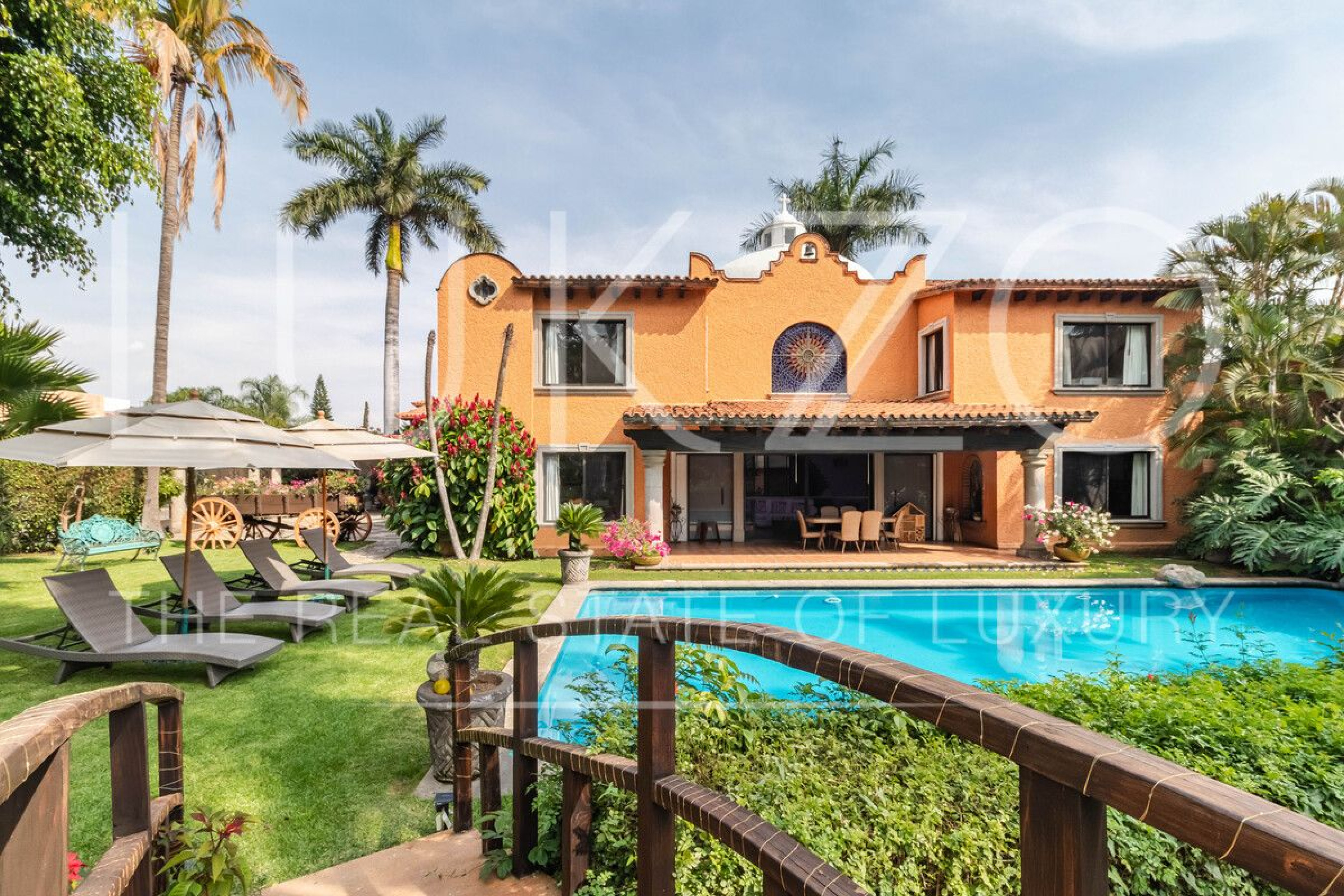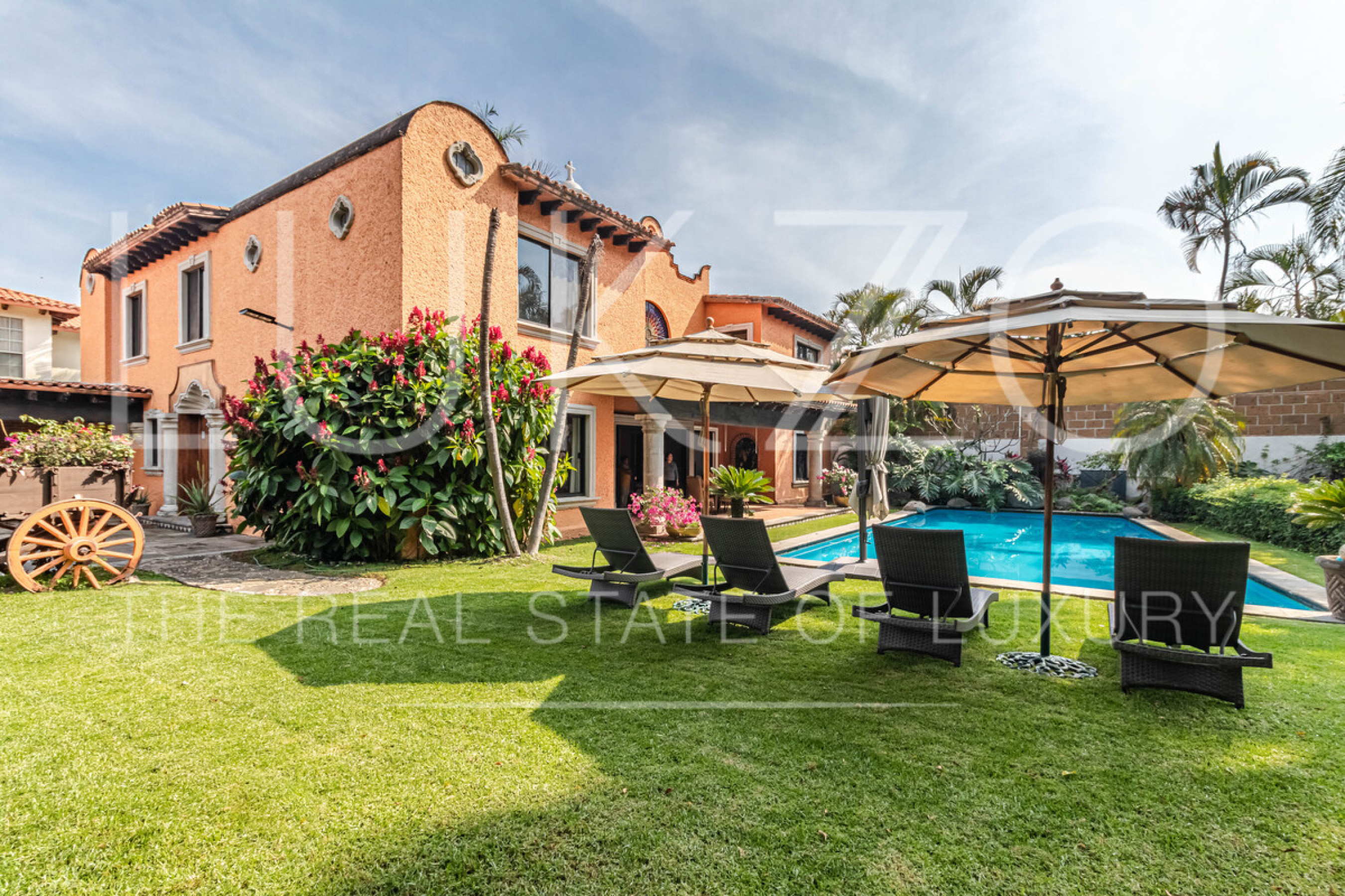 Esta propiedad de estilo colonial mexicano, ubicada en una de las zonas más solicitadas de Jiutepec, ofrece un espacio único para vivir en armonía y tranquilidad. Con una construcción de 782.00m² en un terreno de 1,441.00m² más 497.83 m2 e terreno área común, esta casa de 2 niveles cuenta con 5 recámaras, 4 dentro de la casa y una en el bungalow, 4 baños completos, 2 medios baños, sala, comedor, cocina equipada, alberca, jardín y terraza, perfectos para tener reuniones con amigos y familia. Cuenta con estacionamiento para 5 autos. El fraccionamiento cuenta con lago artificial con patos y es muy agradable para salir a caminar o hacer ejercicio.