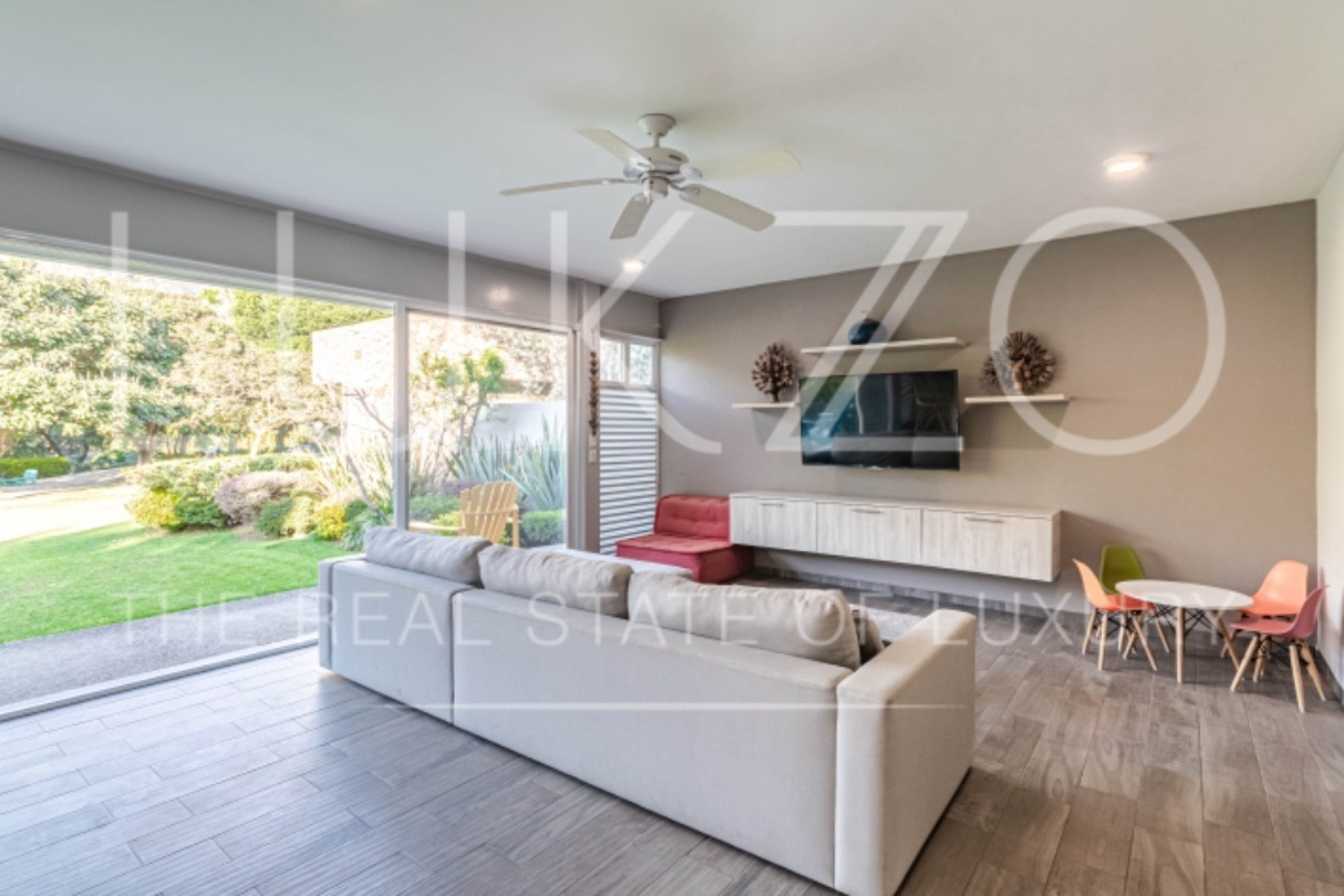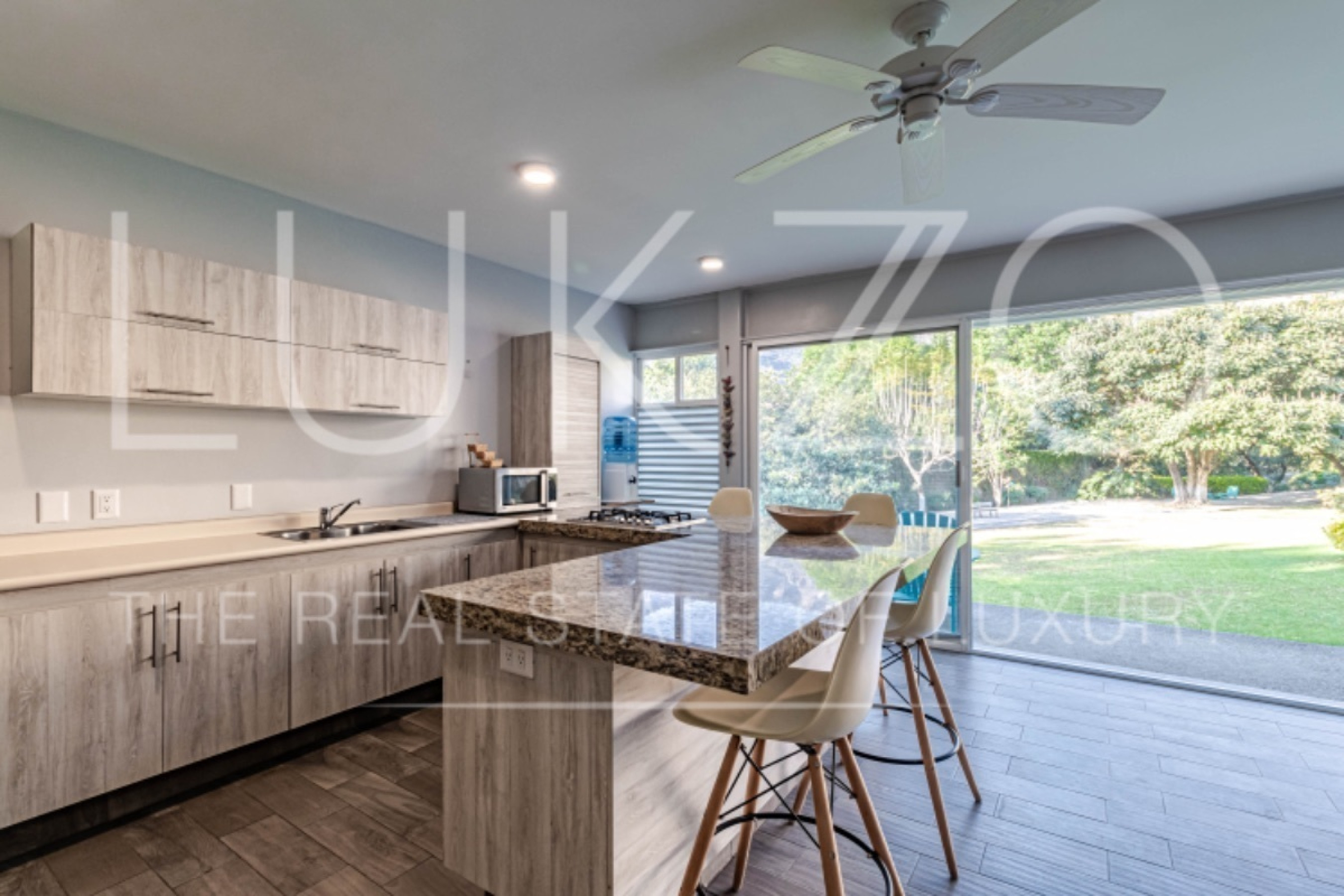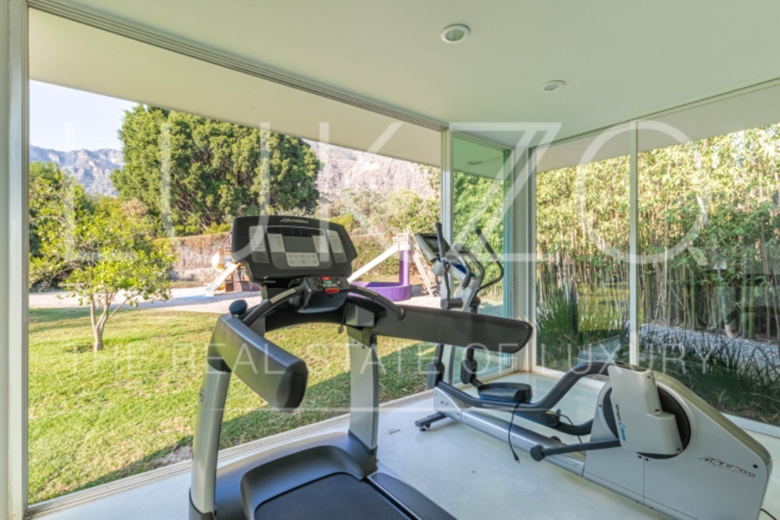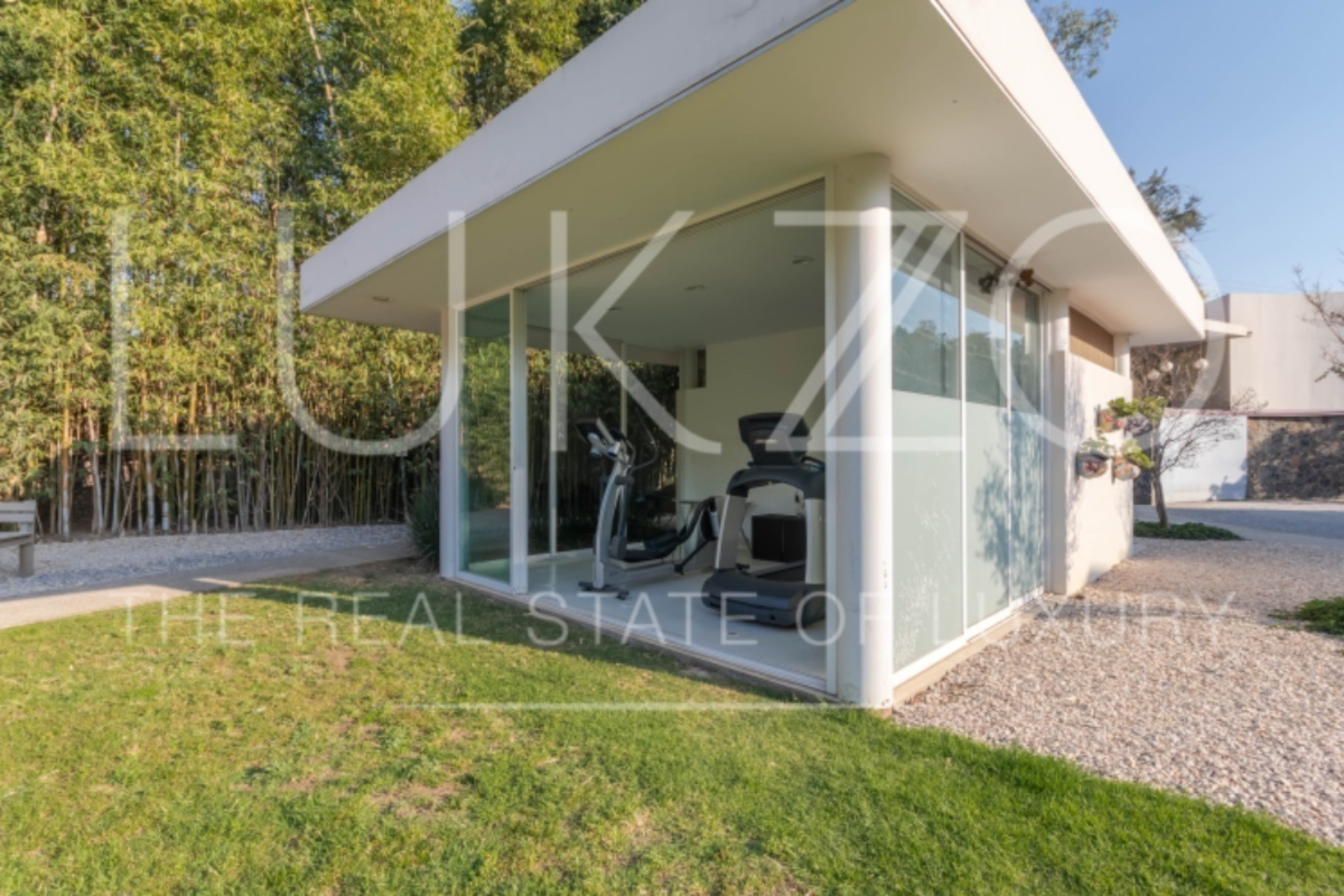 Consta de casa principal y casa de visitas. Gimnasio, sistema de sonido y camaras de vigilancia. Cortina automatica en terraza para proteccion solar. Una de las recamaras de la casa principal esta en planta baja lo que la hace ideal para personas mayores o con discapacidad.