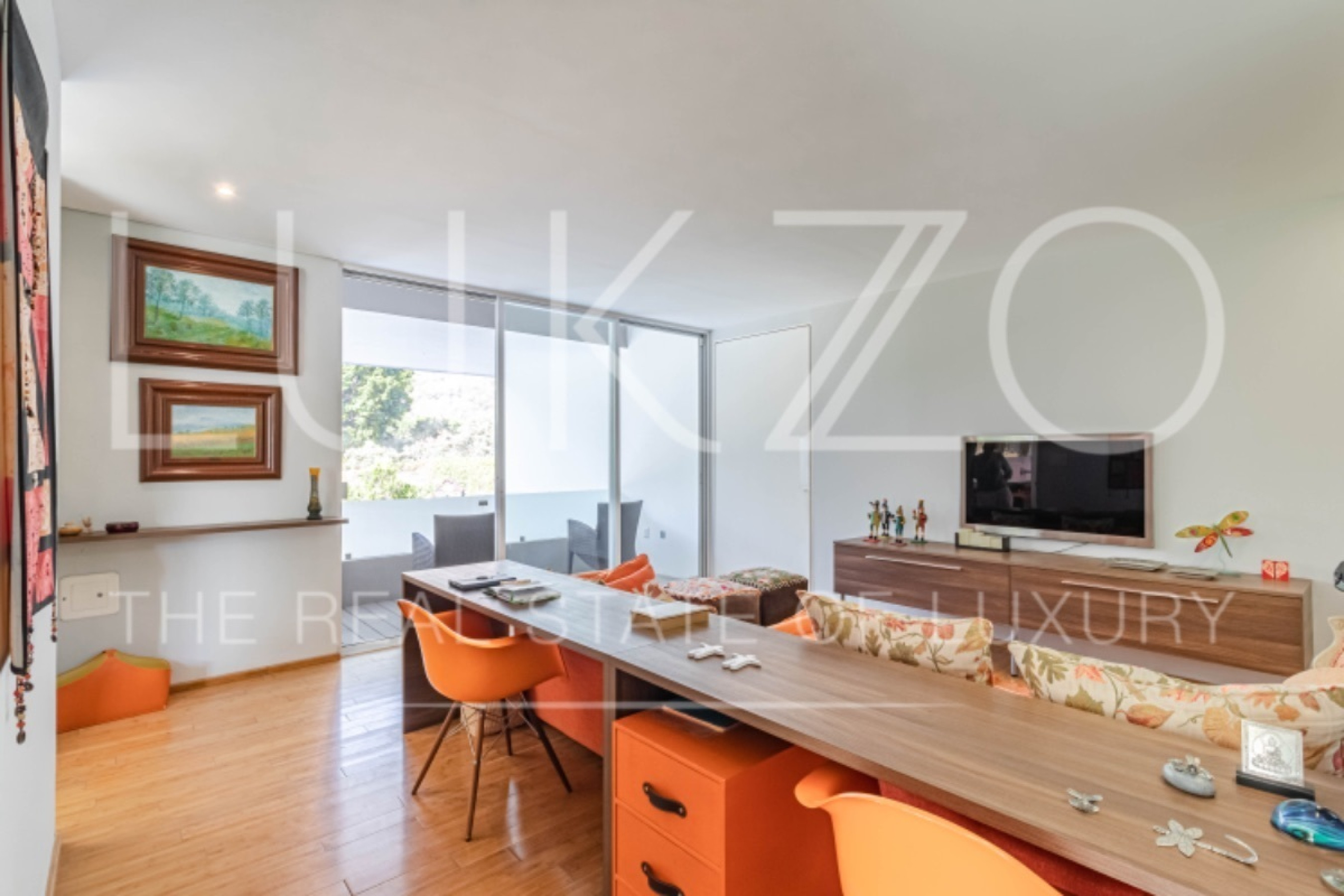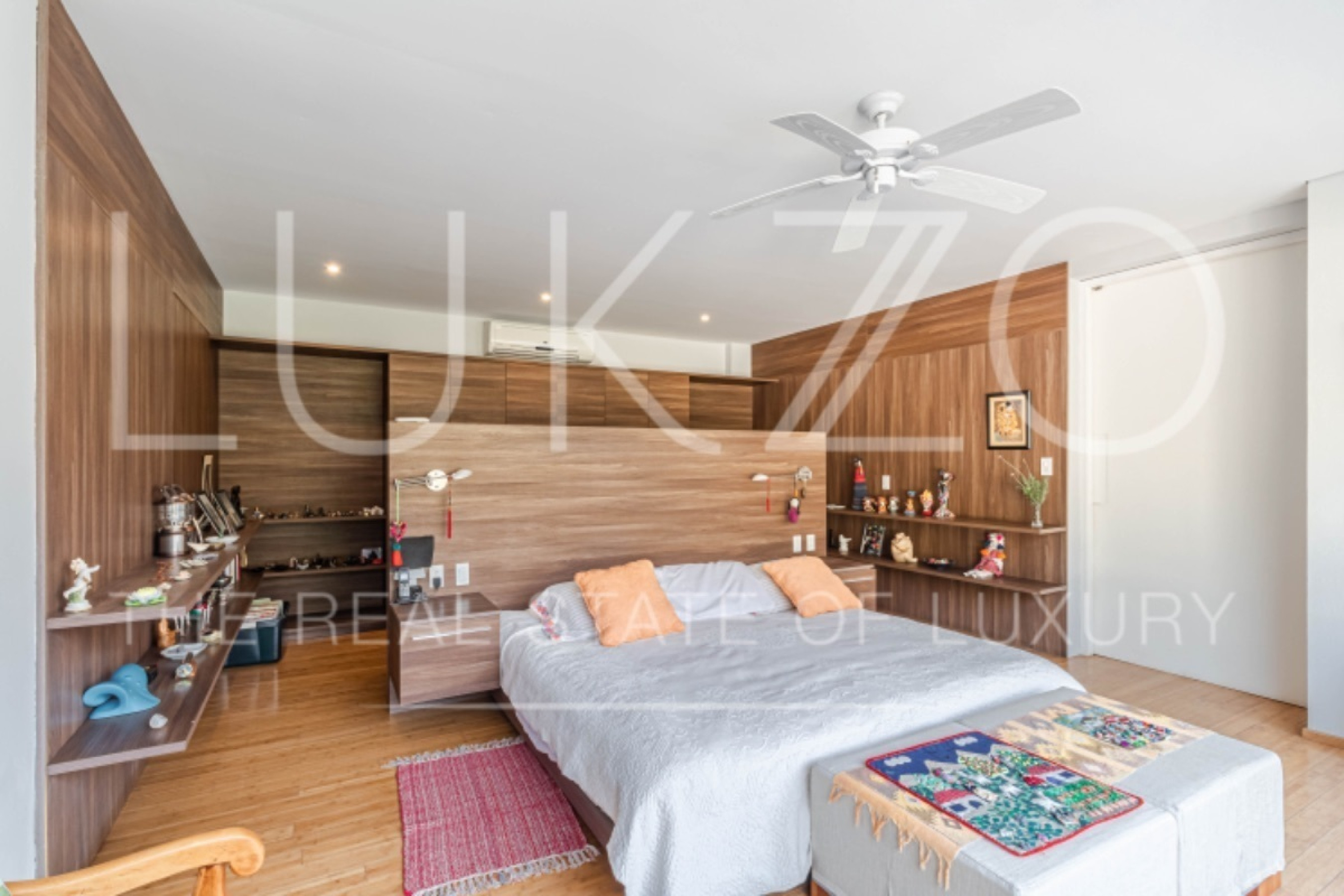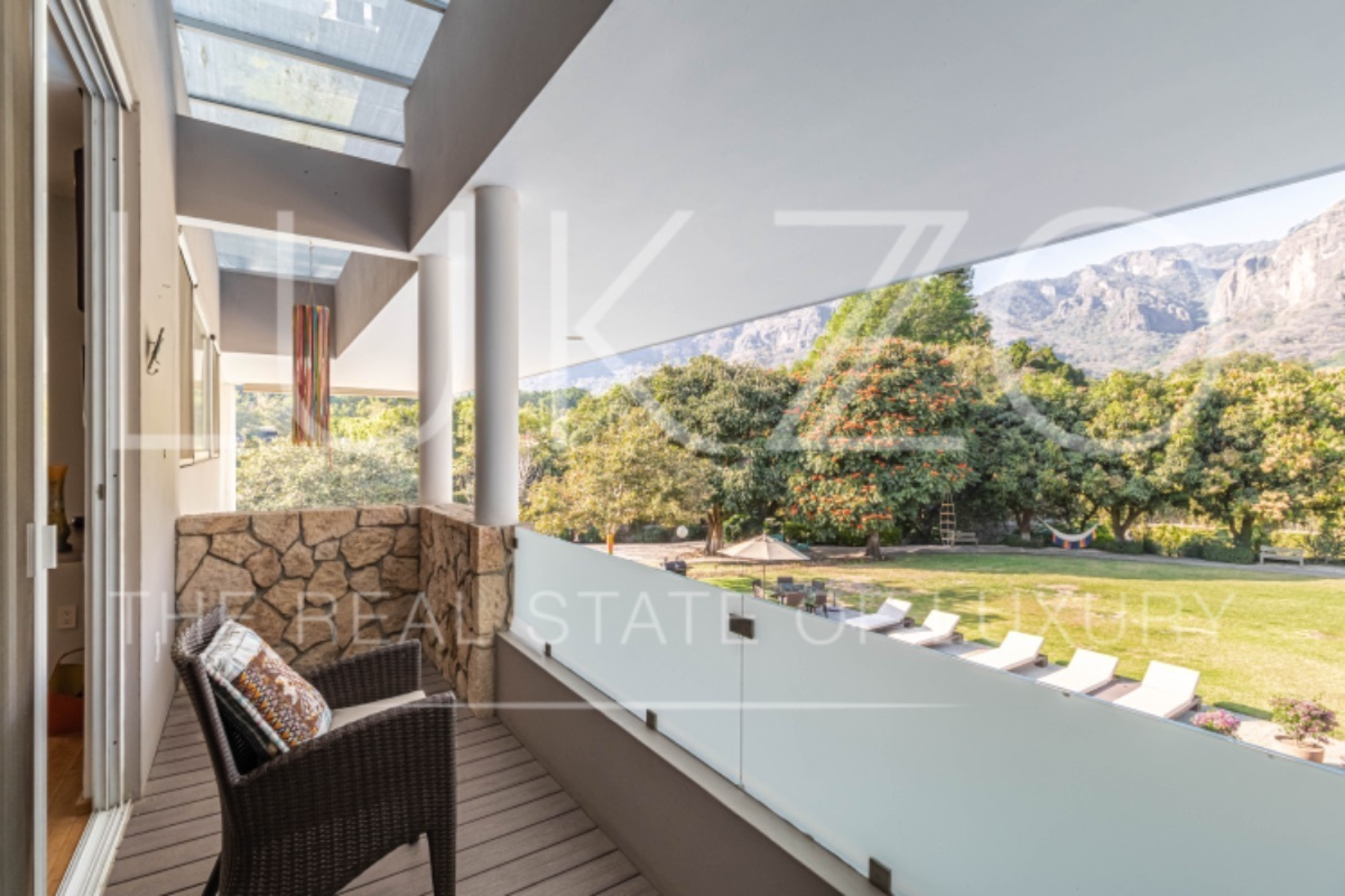 Consta de casa principal y casa de visitas. Gimnasio, sistema de sonido y camaras de vigilancia. Cortina automatica en terraza para proteccion solar. Una de las recamaras de la casa principal esta en planta baja lo que la hace ideal para personas mayores o con discapacidad.