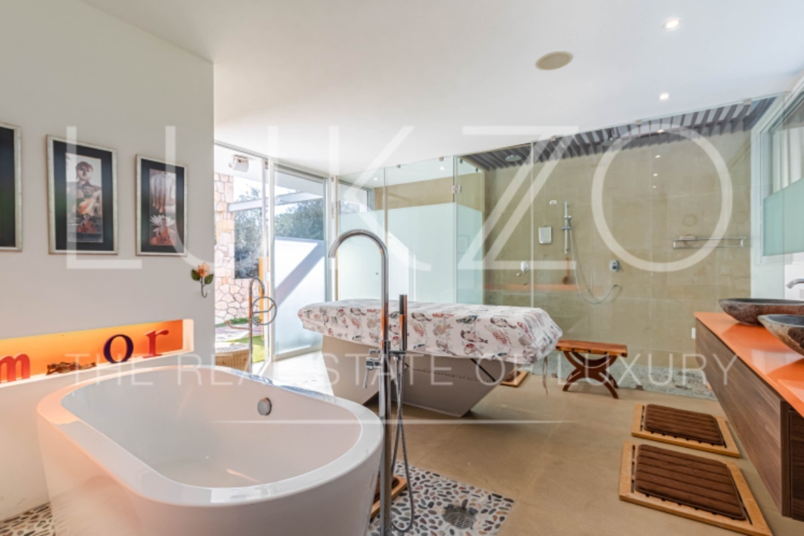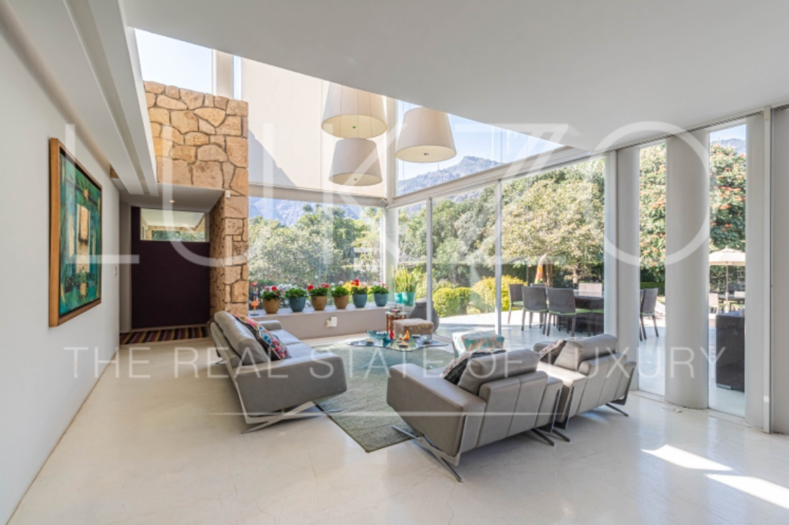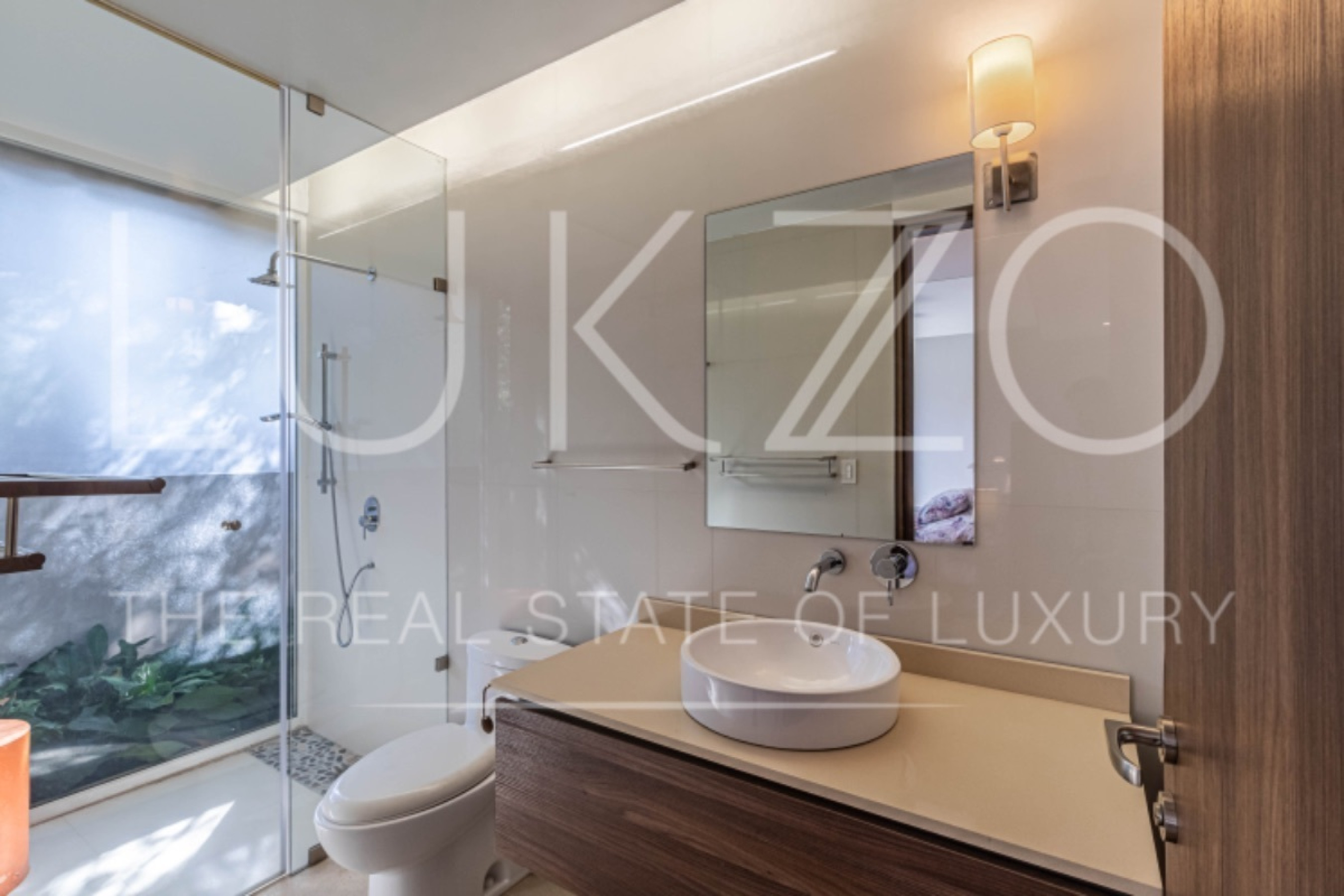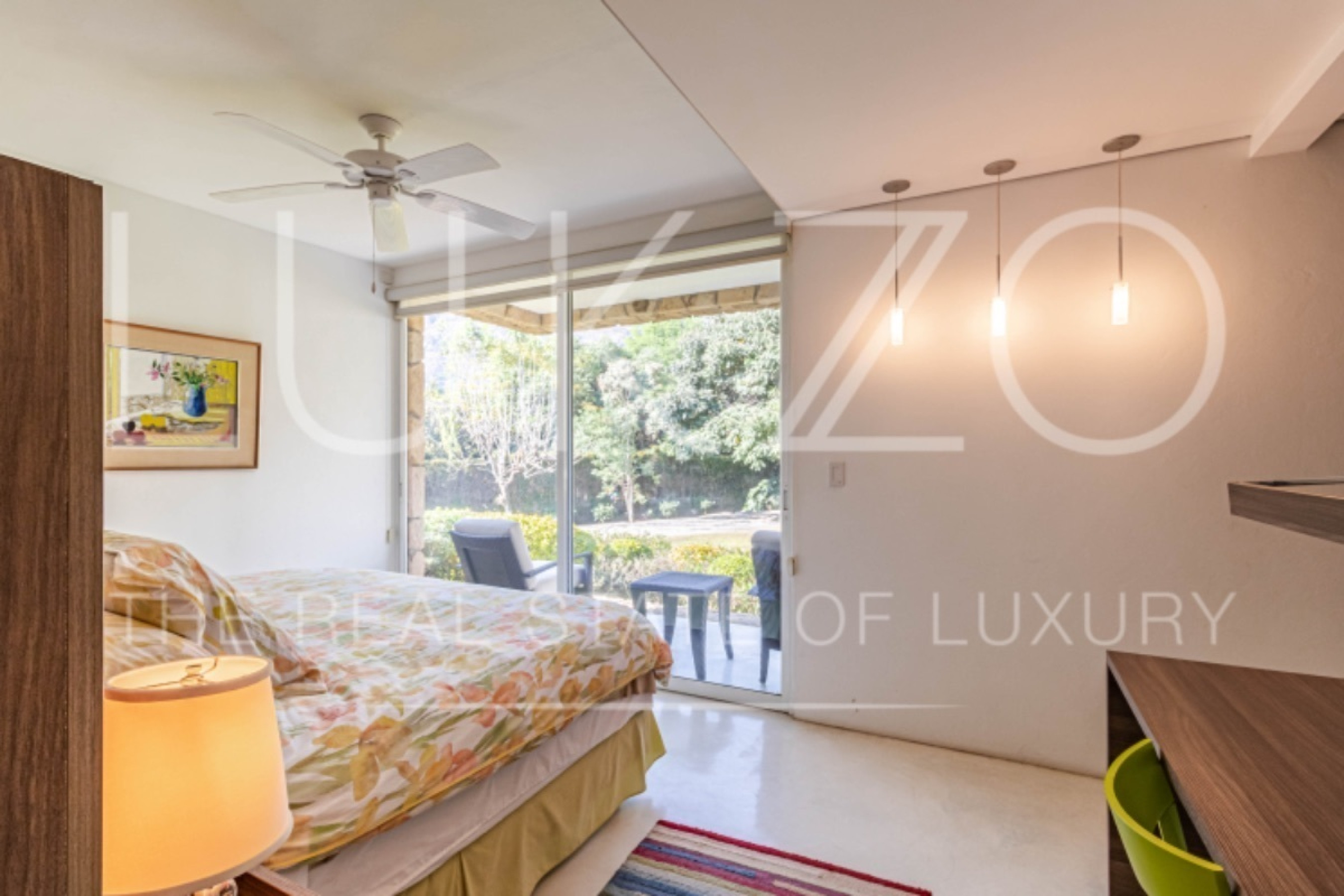 Consta de casa principal y casa de visitas. Gimnasio, sistema de sonido y camaras de vigilancia. Cortina automatica en terraza para proteccion solar. Una de las recamaras de la casa principal esta en planta baja lo que la hace ideal para personas mayores o con discapacidad.