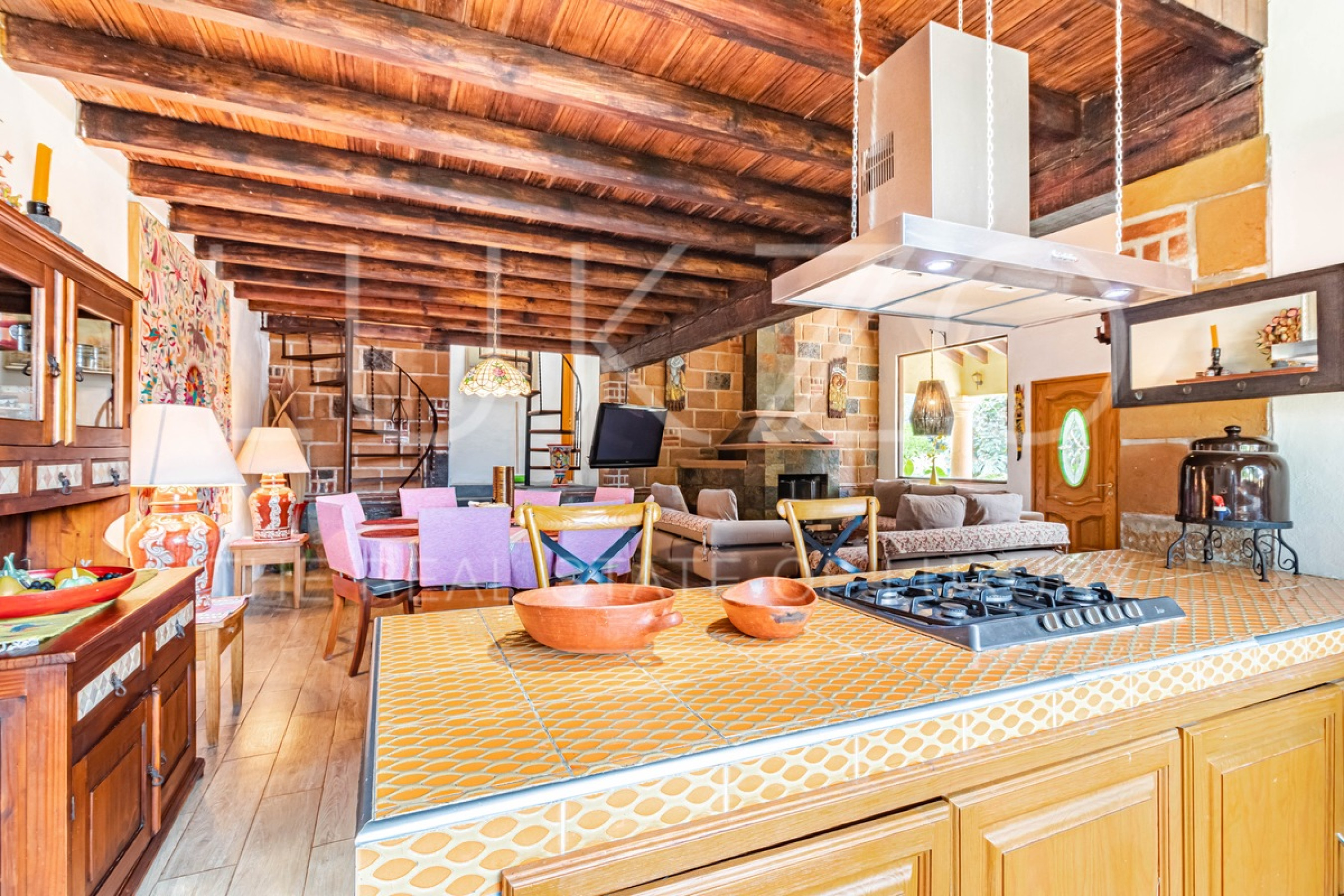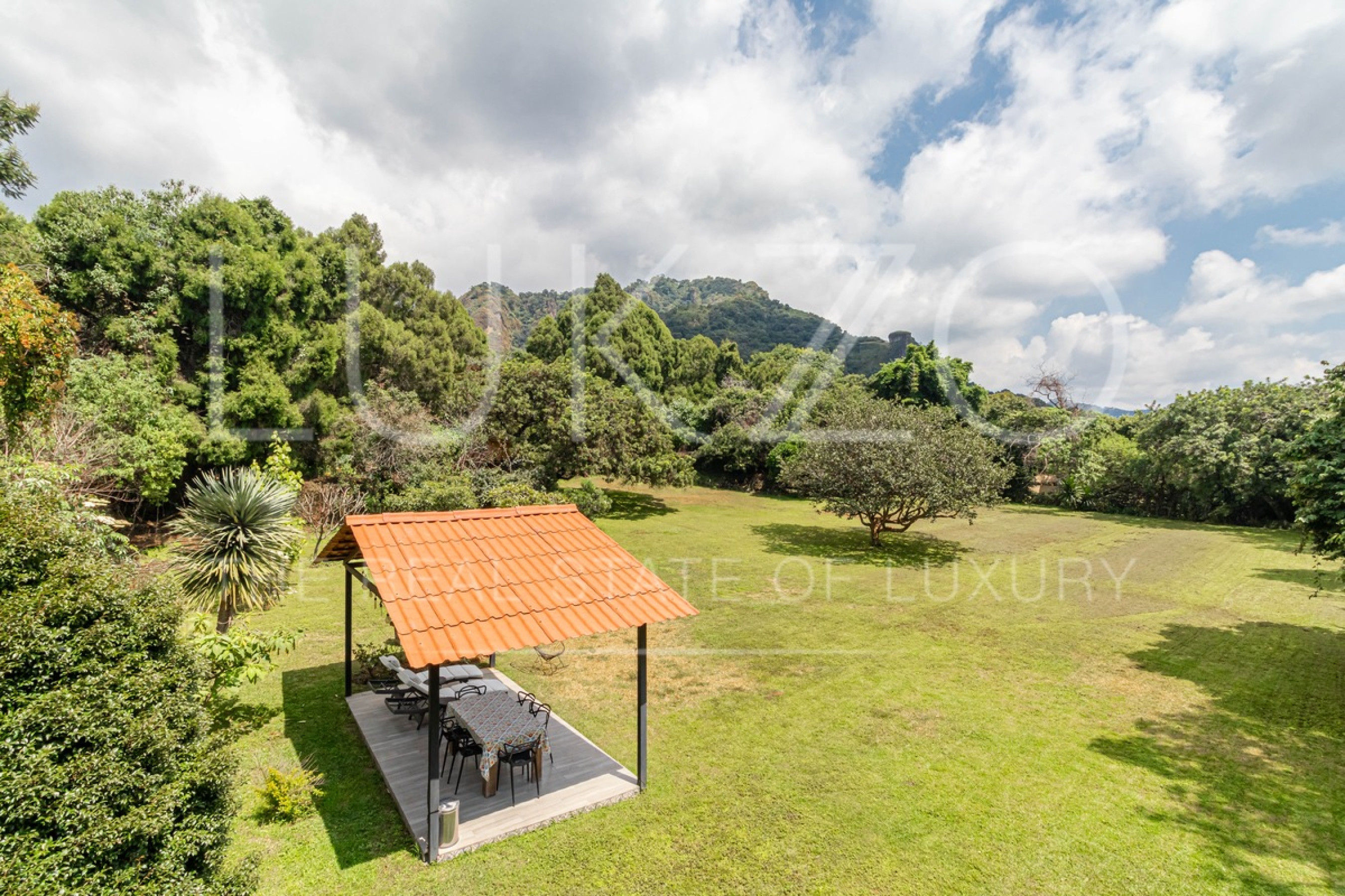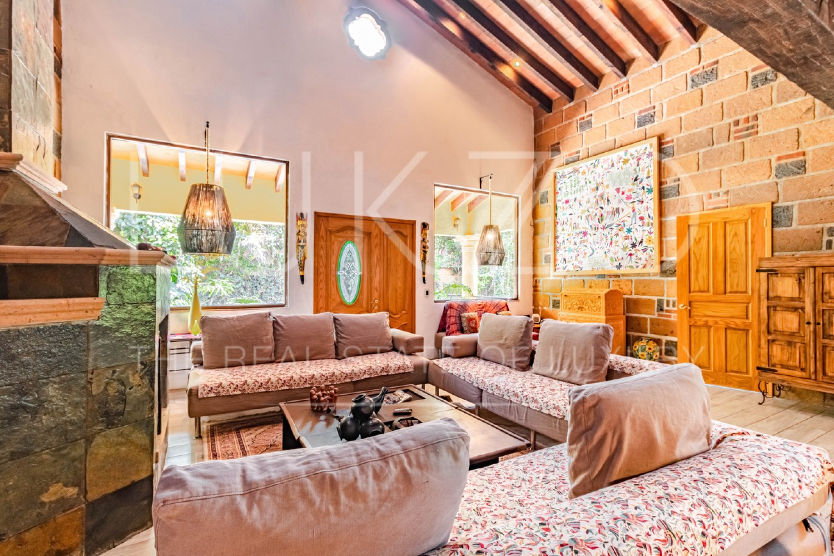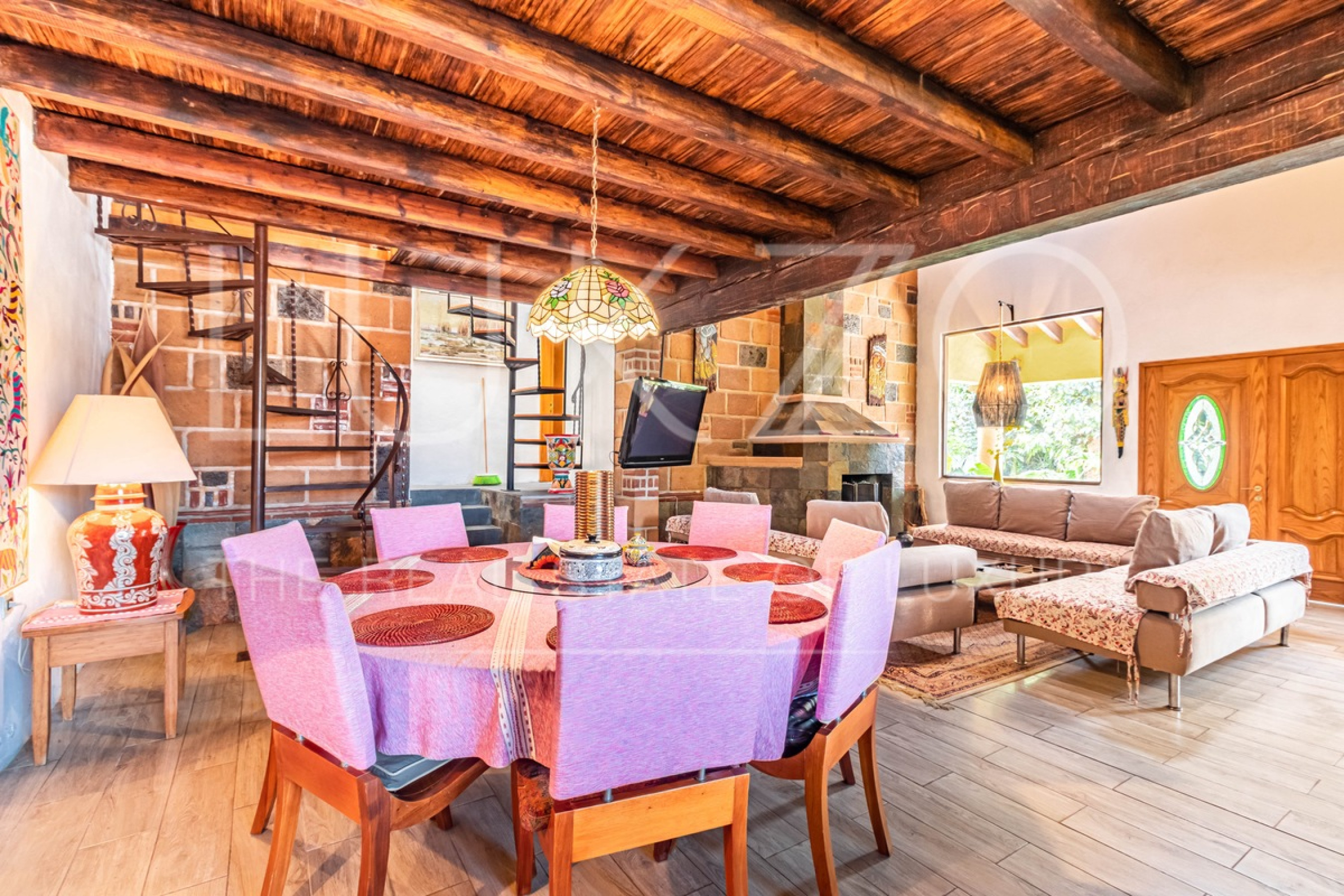 En venta, propiedad en Tepoztlán, Morelos, que combina amplitud, privacidad y encanto natural. Con más de 3,470 m² de terreno y una construcción de 299 m², esta residencia de dos construcciones, ofrece un entorno ideal para vivir rodeado de naturaleza sin renunciar a la comodidad. La casa principal, edificada en 2015, cuenta con dos recámaras, tres baños completos, sala, comedor, cocina equipada y un tapanco que puede funcionar como tercera recámara. El bungalow independiente, construido en 2003 y separado por una barda, brinda privacidad y es perfecto para recibir visitas, rentar o destinar a un espacio de trabajo o descanso. El jardín plano y extenso, junto con las vistas típicas de Tepoztlán, crean una atmósfera de serenidad y conexión con el entorno. La propiedad incluye terraza doble, estacionamiento para seis autos, portón eléctrico, sistema hidroneumático, cisterna, gas estacionario y toma de agua potable. Su excelente estado de conservación y su ubicación en el tranquilo Barrio San Pedro hacen de esta casa una oportunidad única para quienes buscan un hogar cómodo y versátil, ya sea para vivir de forma permanente o como refugio de fin de semana. Cuenta con escrituras.