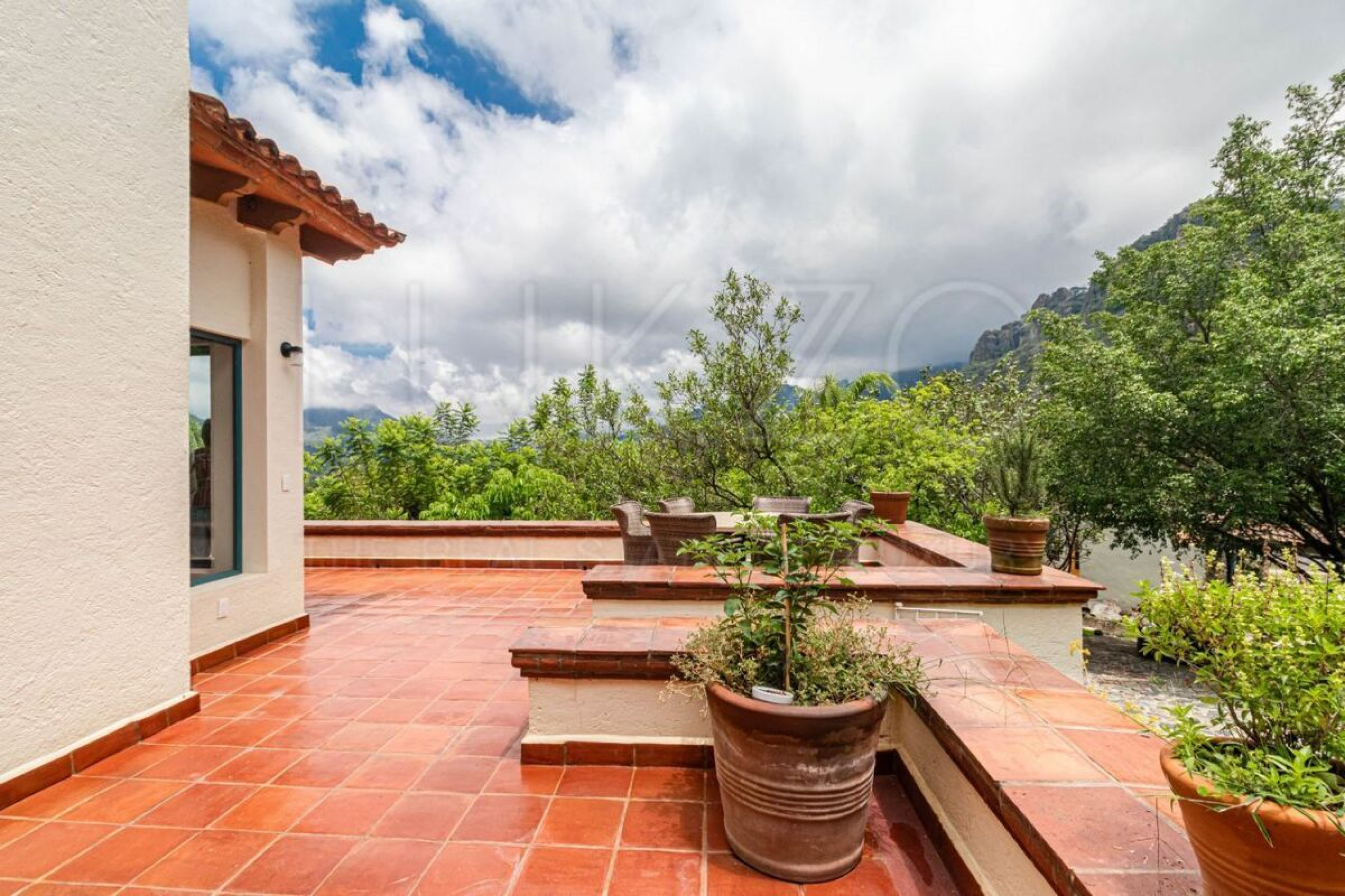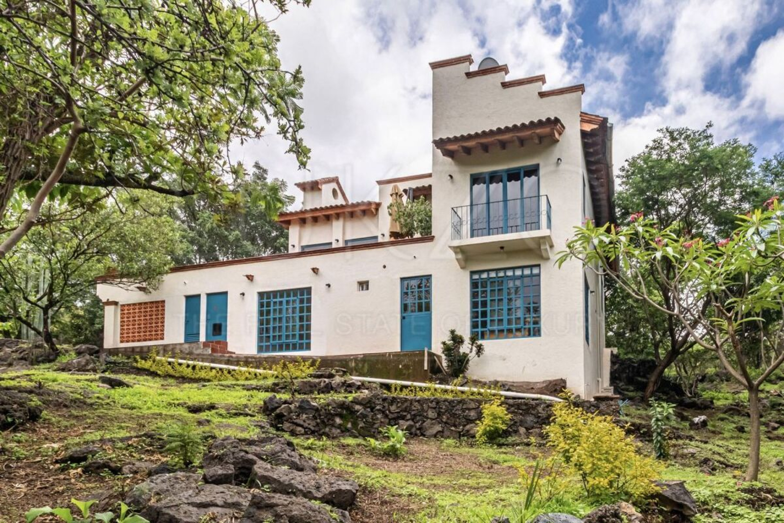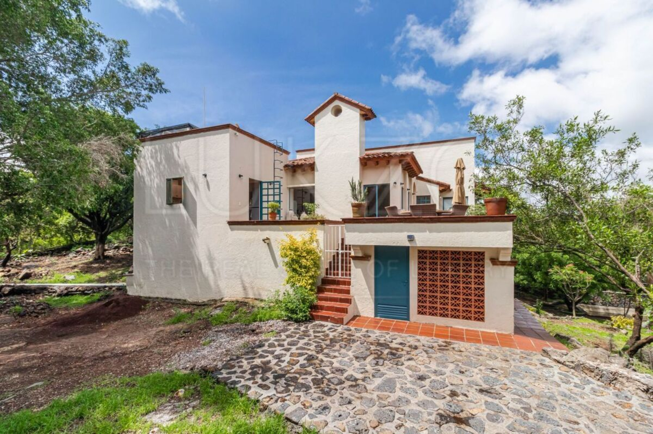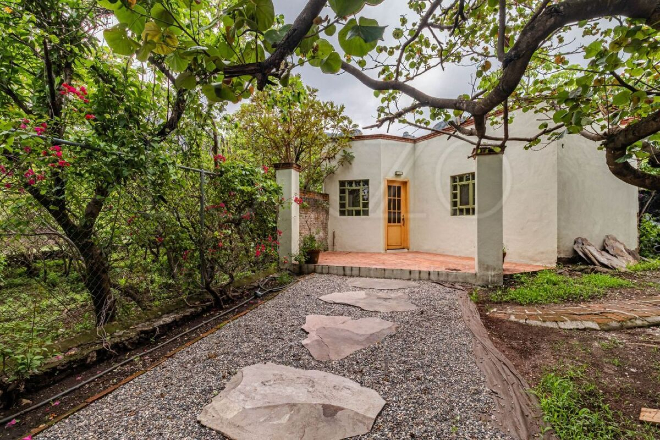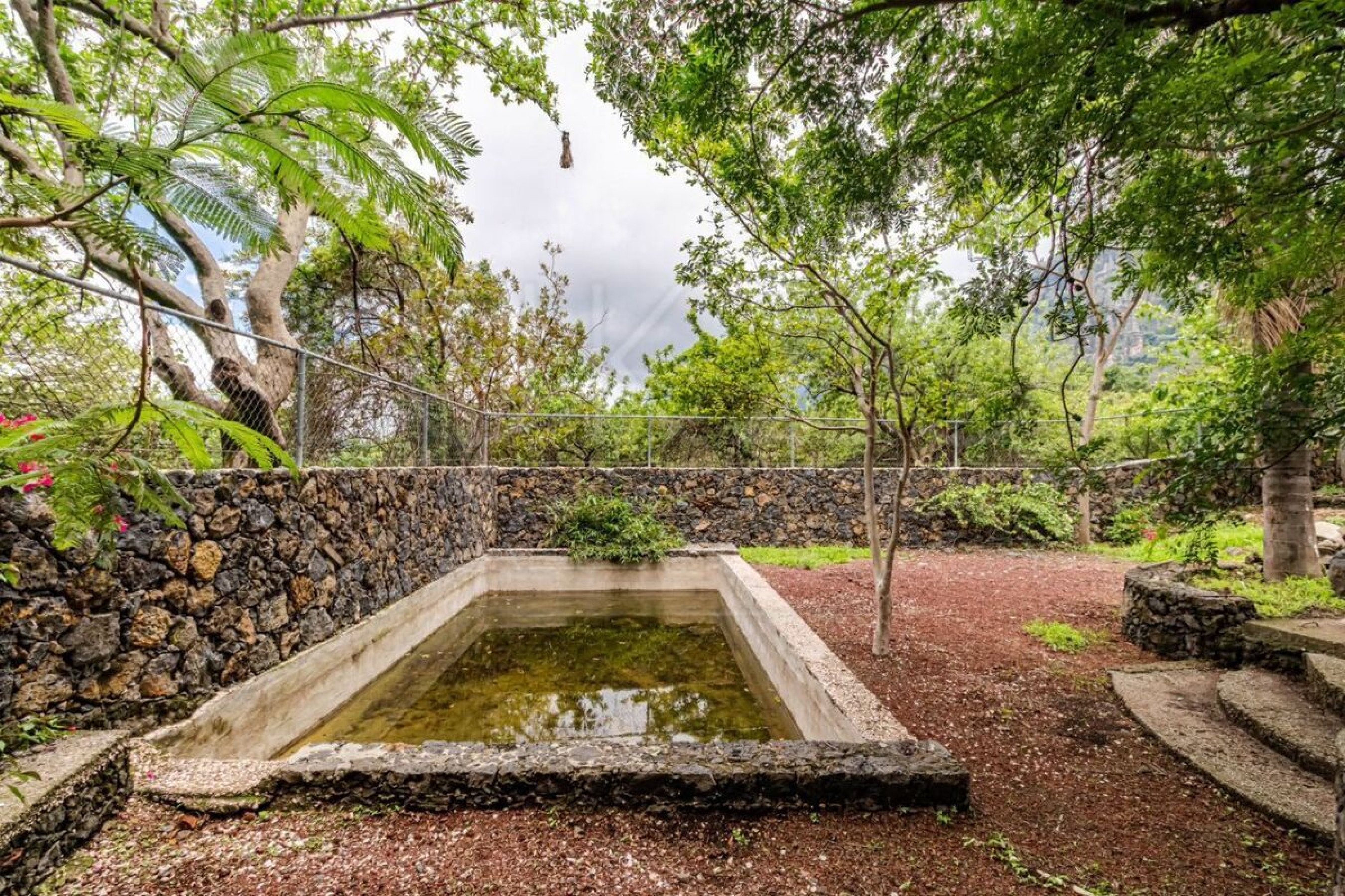 En el exterior, en la parte baja del predio, hay una alberca sin equipamiento en la parte rodeada de árboles maduros, endémicos.