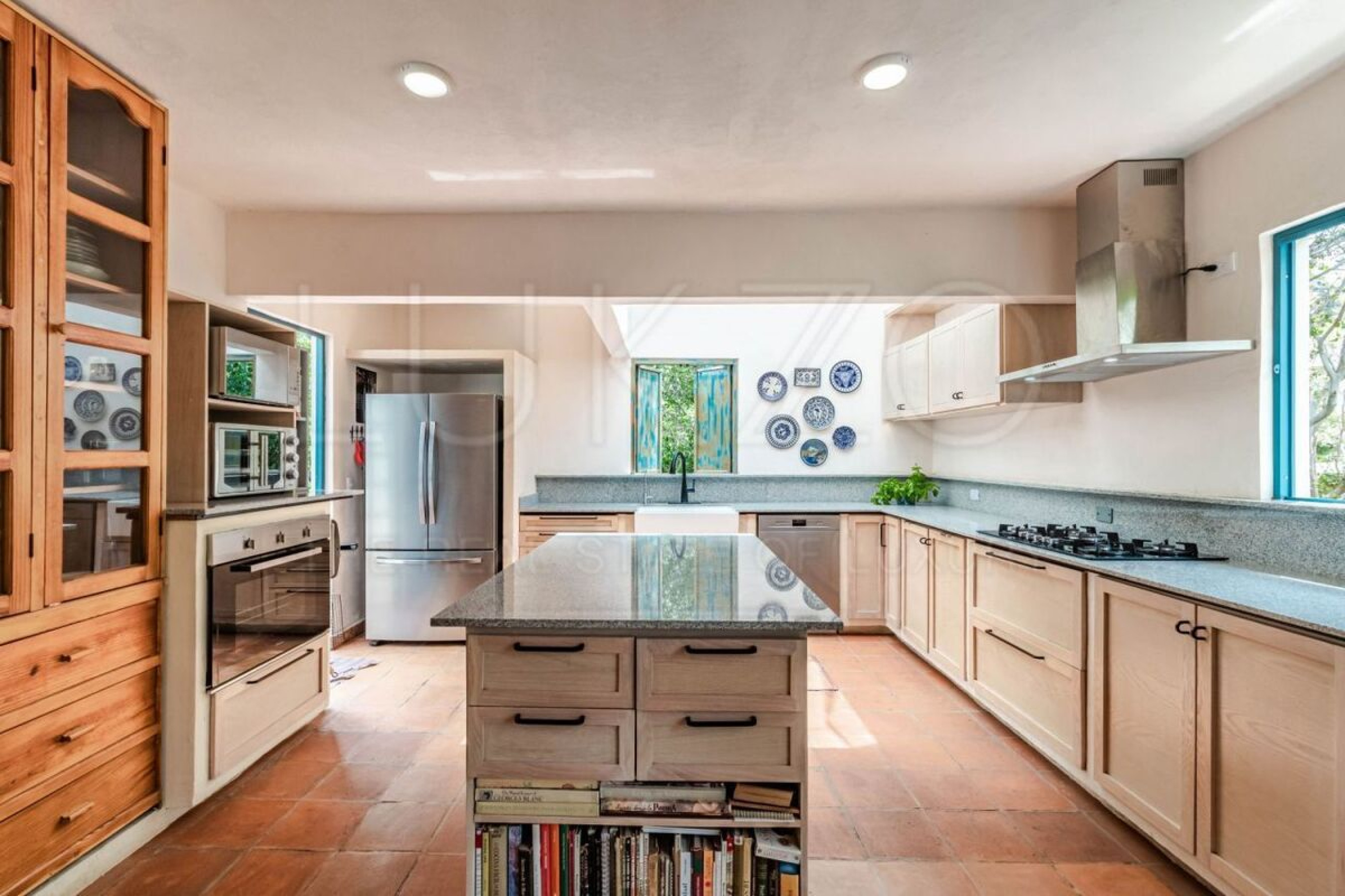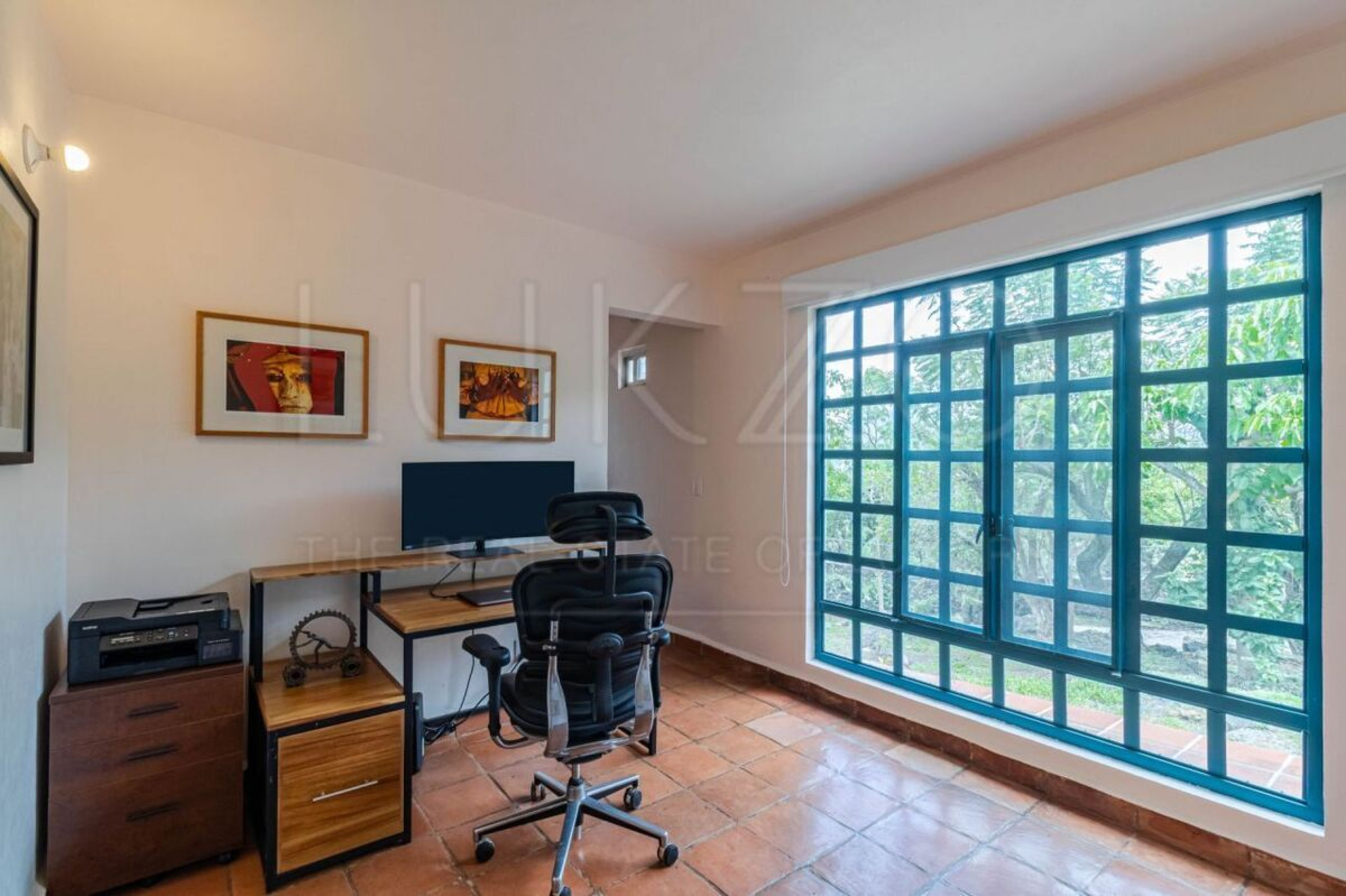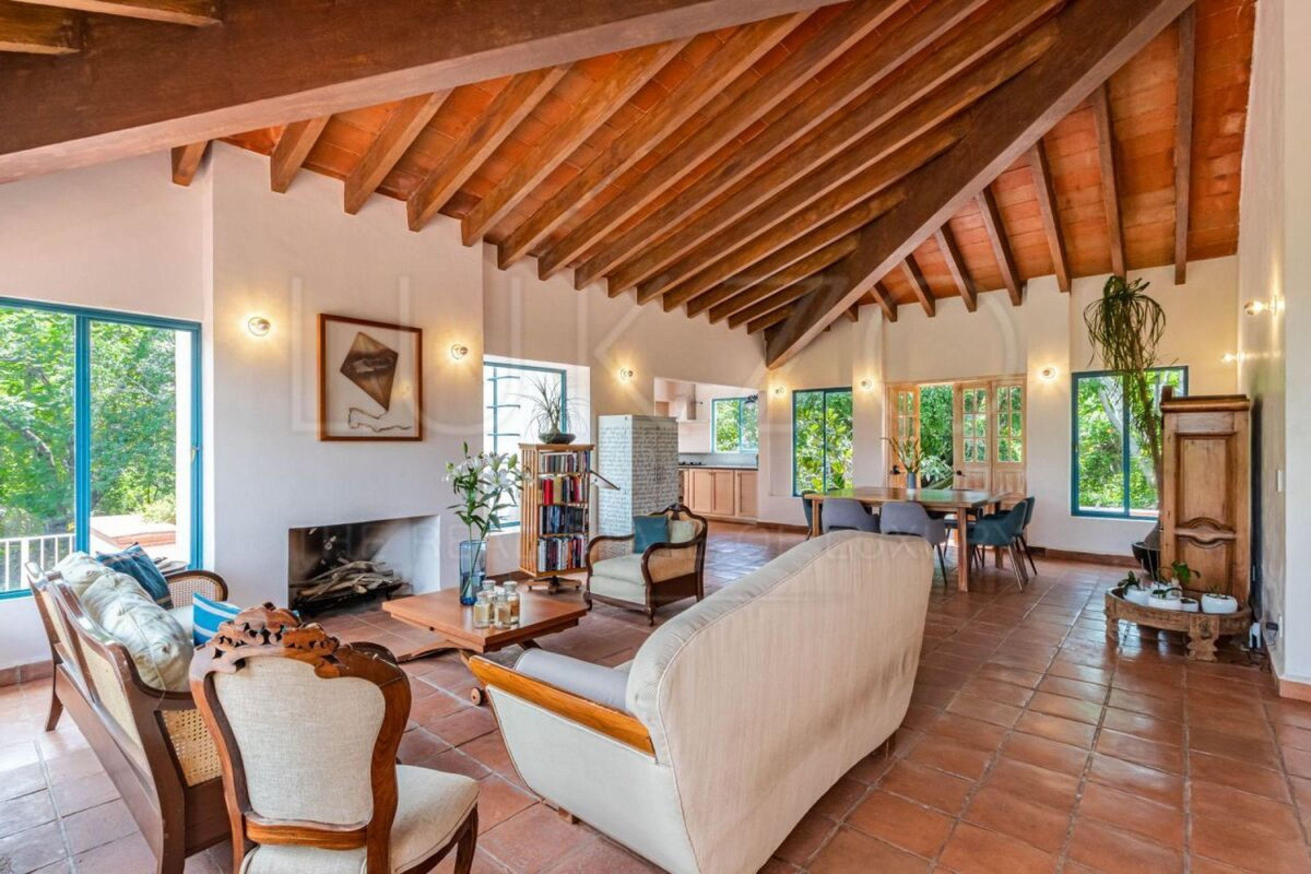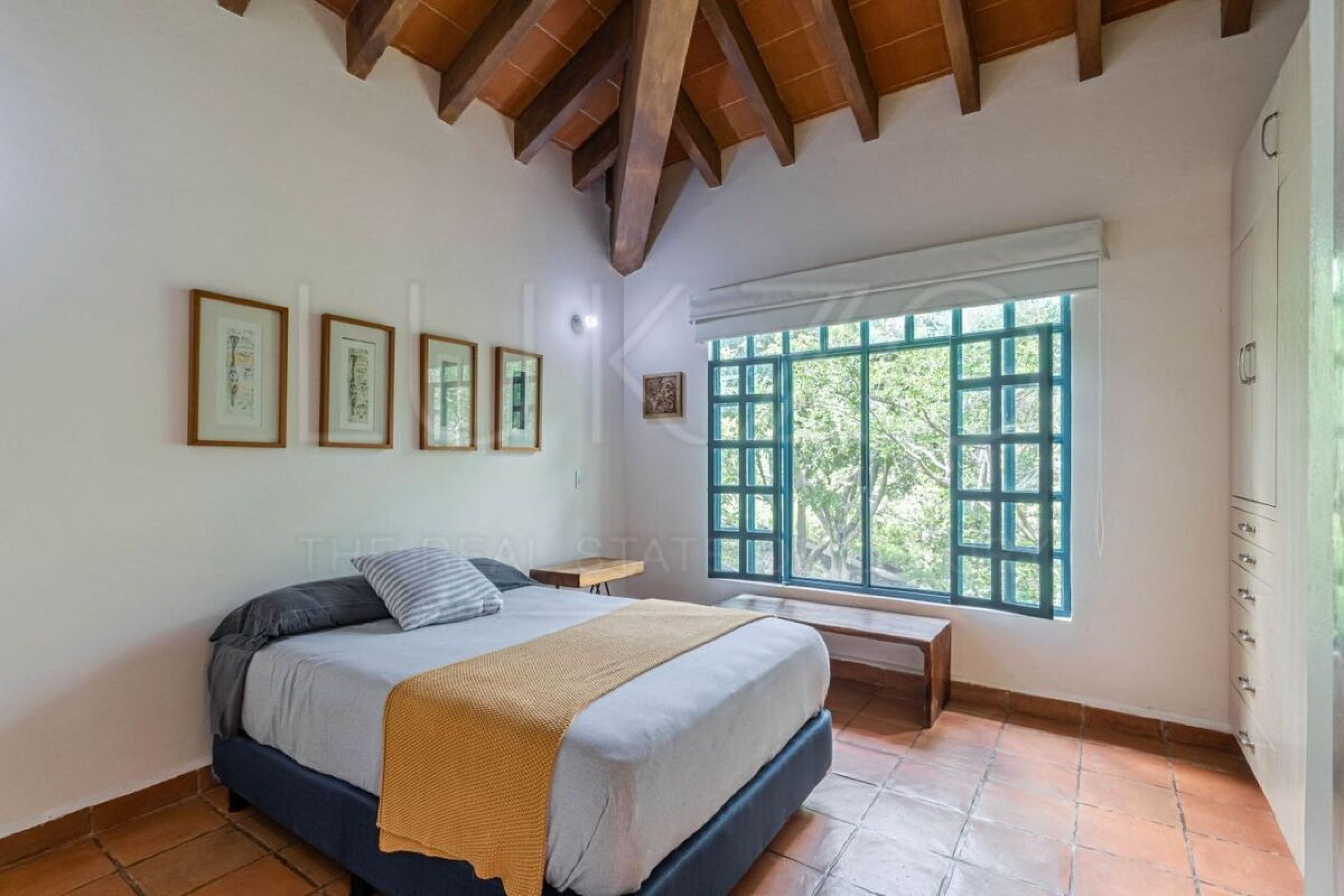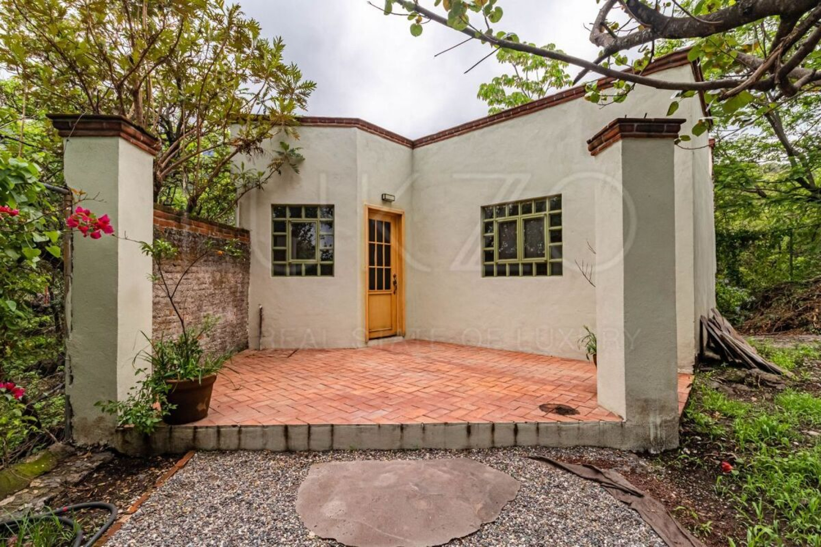 En el exterior, en la parte baja del predio, hay una alberca sin equipamiento en la parte rodeada de árboles maduros, endémicos.
