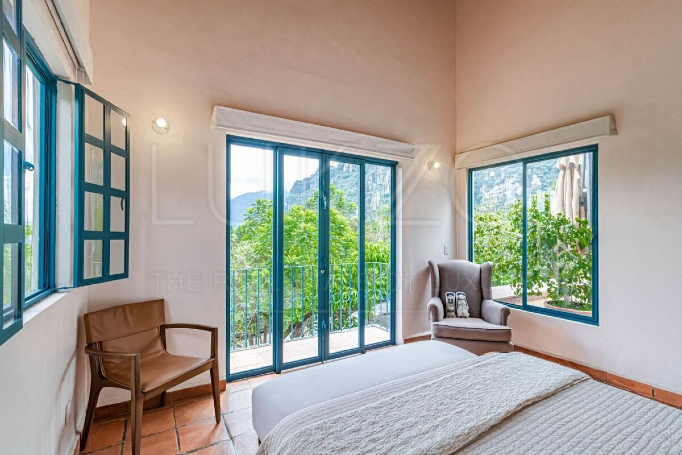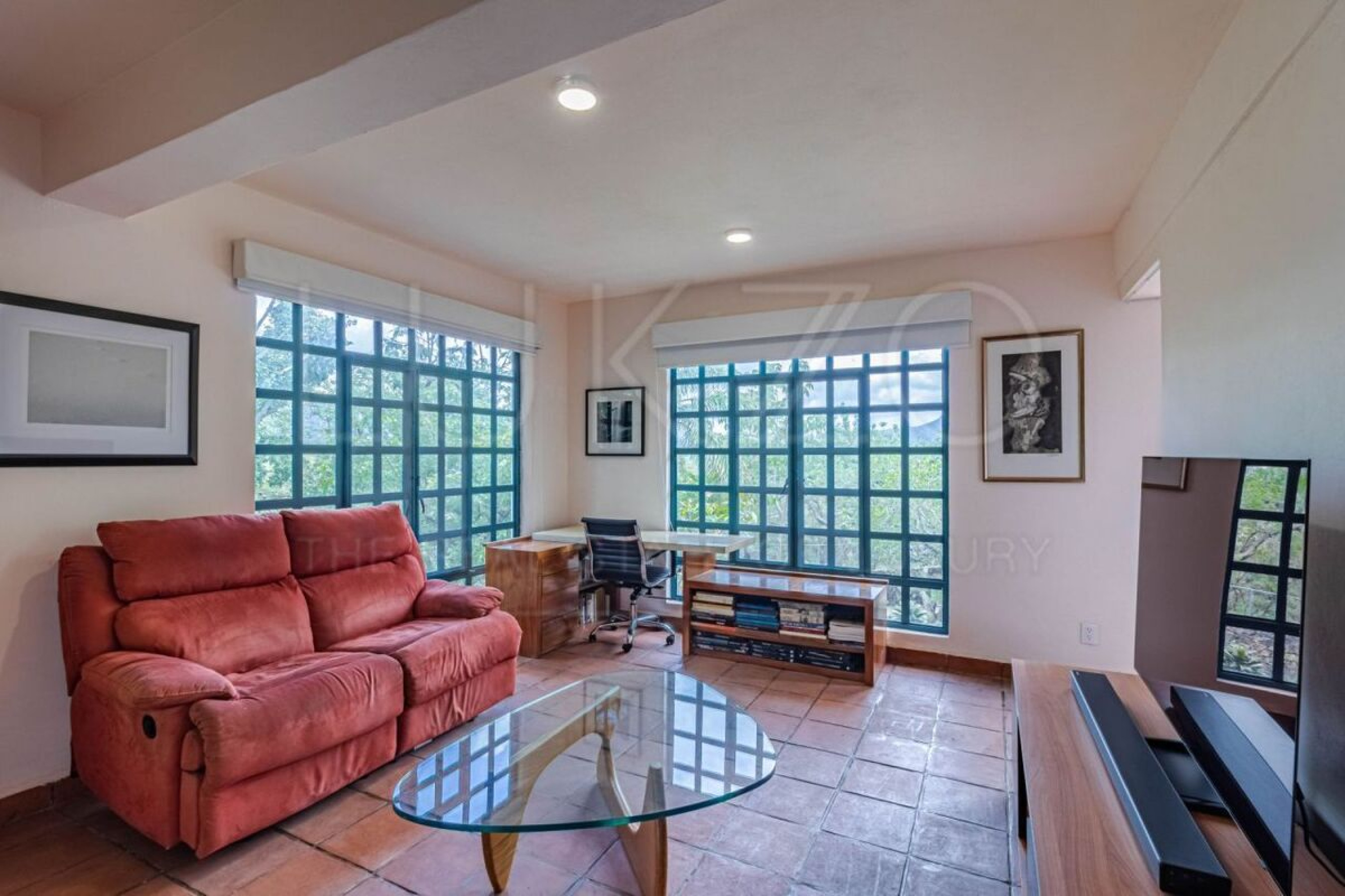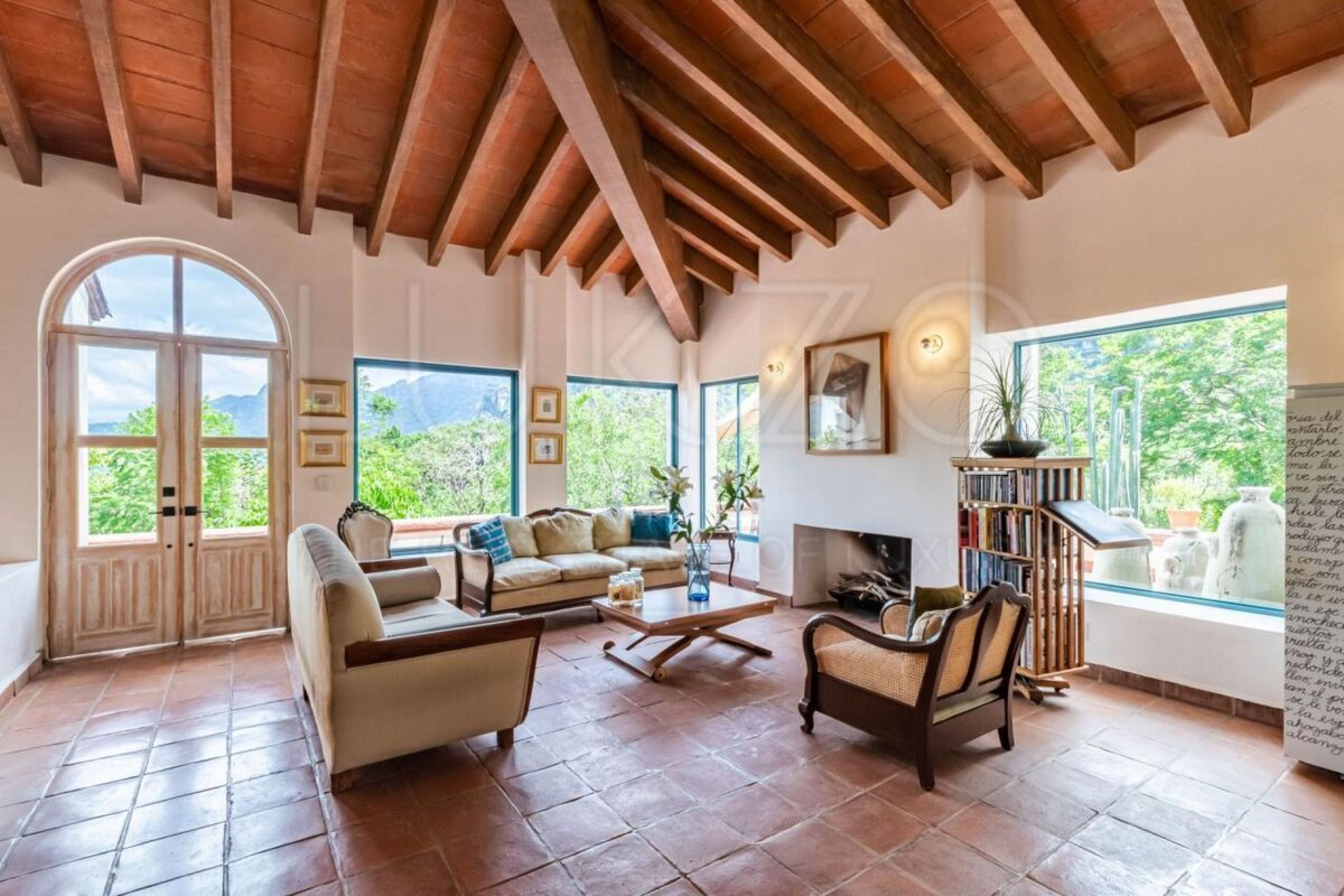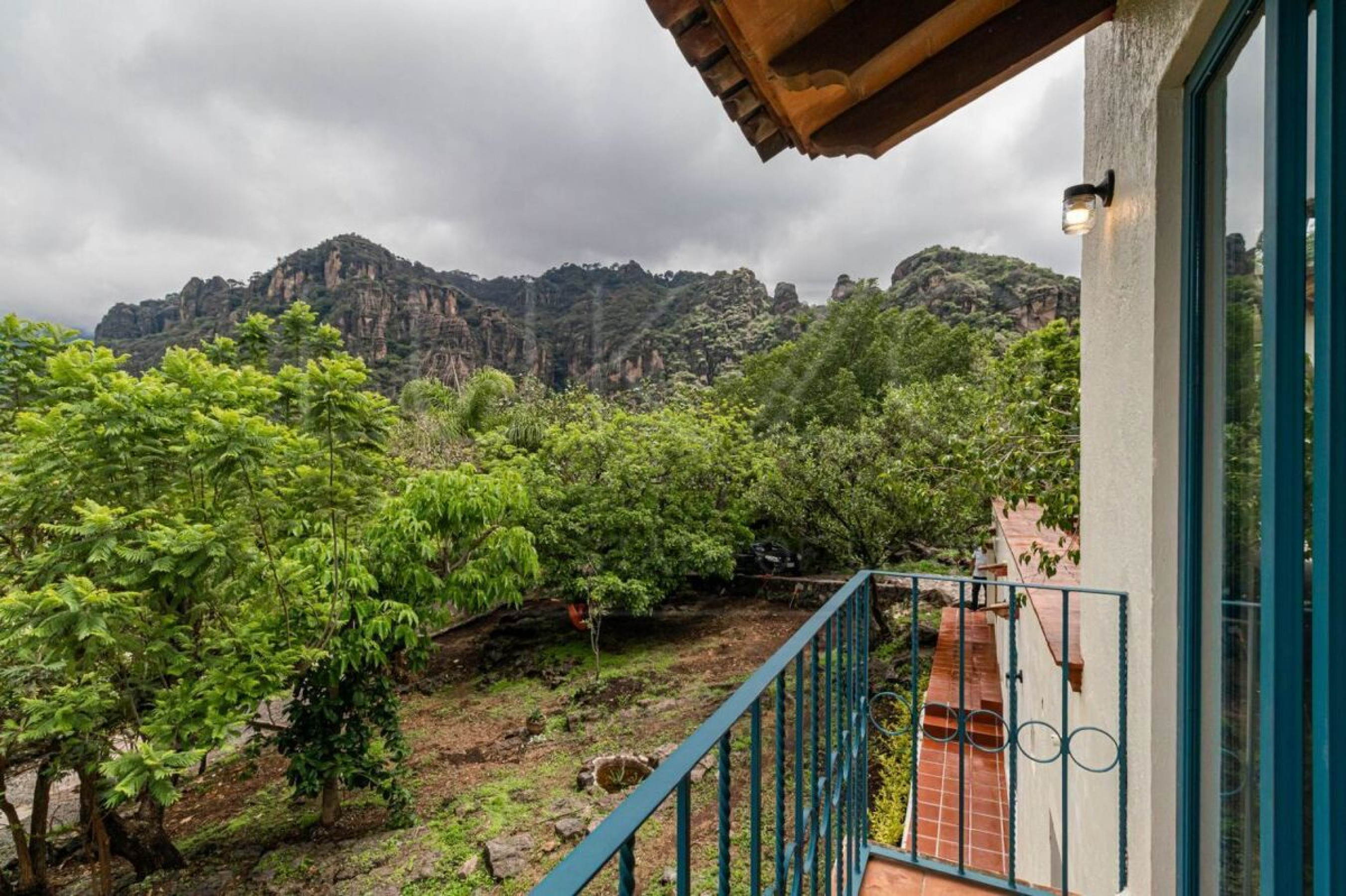 Casa sola en el campo cerca de la montaña de Tepoztlán con alberca y búngalo. De arquitectura novedosa, es una casa única en estos momentos en la región porque tiene una arquitectura novedosa, muy distinta a la convencional. Recientemente remodelada a profundidad, con una vista extraordinaria hacia el pueblo de Tepoztlán y la cordillera del valle de Atongo.