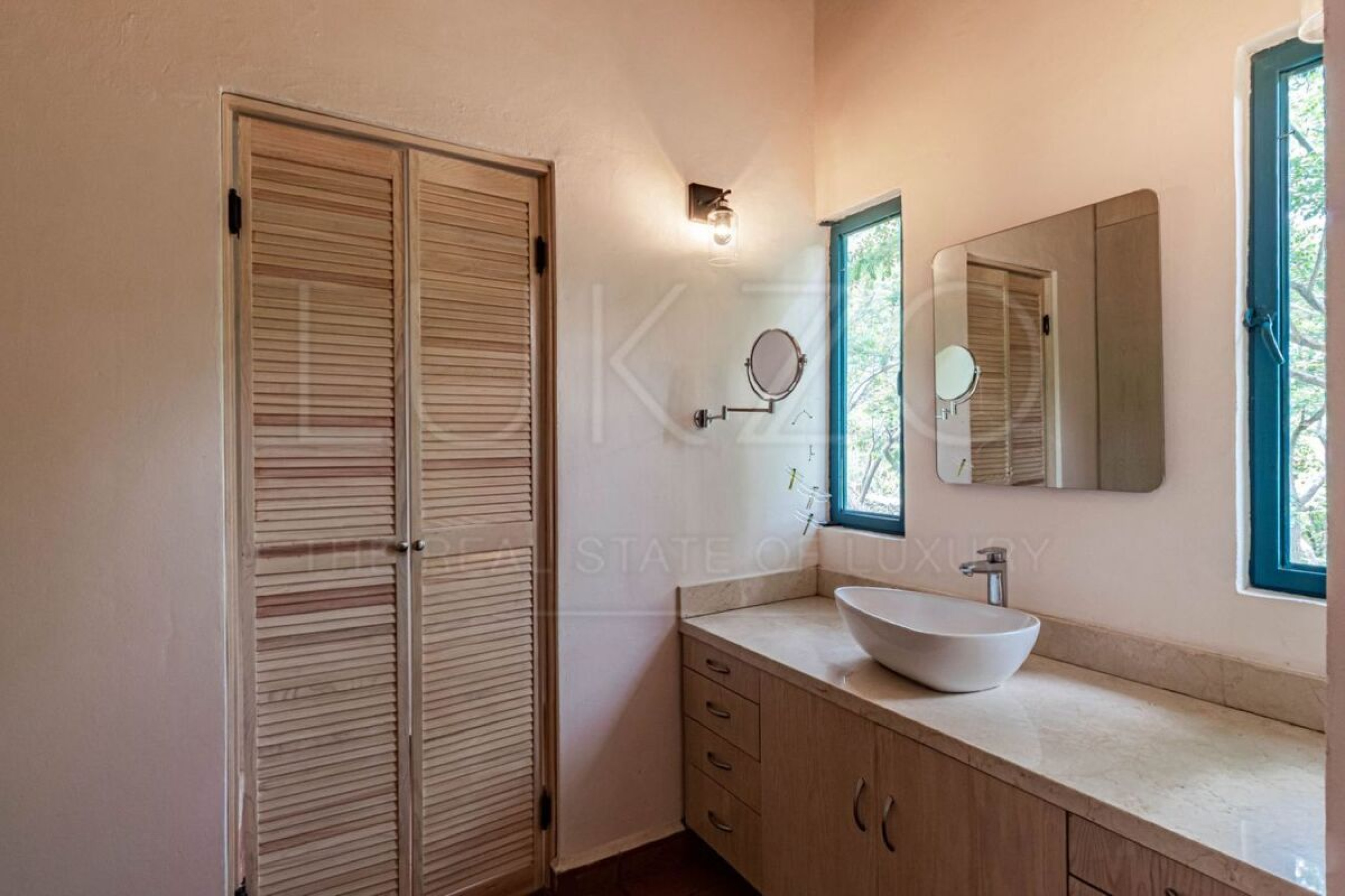 En la planta baja, dos recámaras con dos baños completos. El búngalo tiene una recámara, baño completo, estancia con cocineta y comedor.