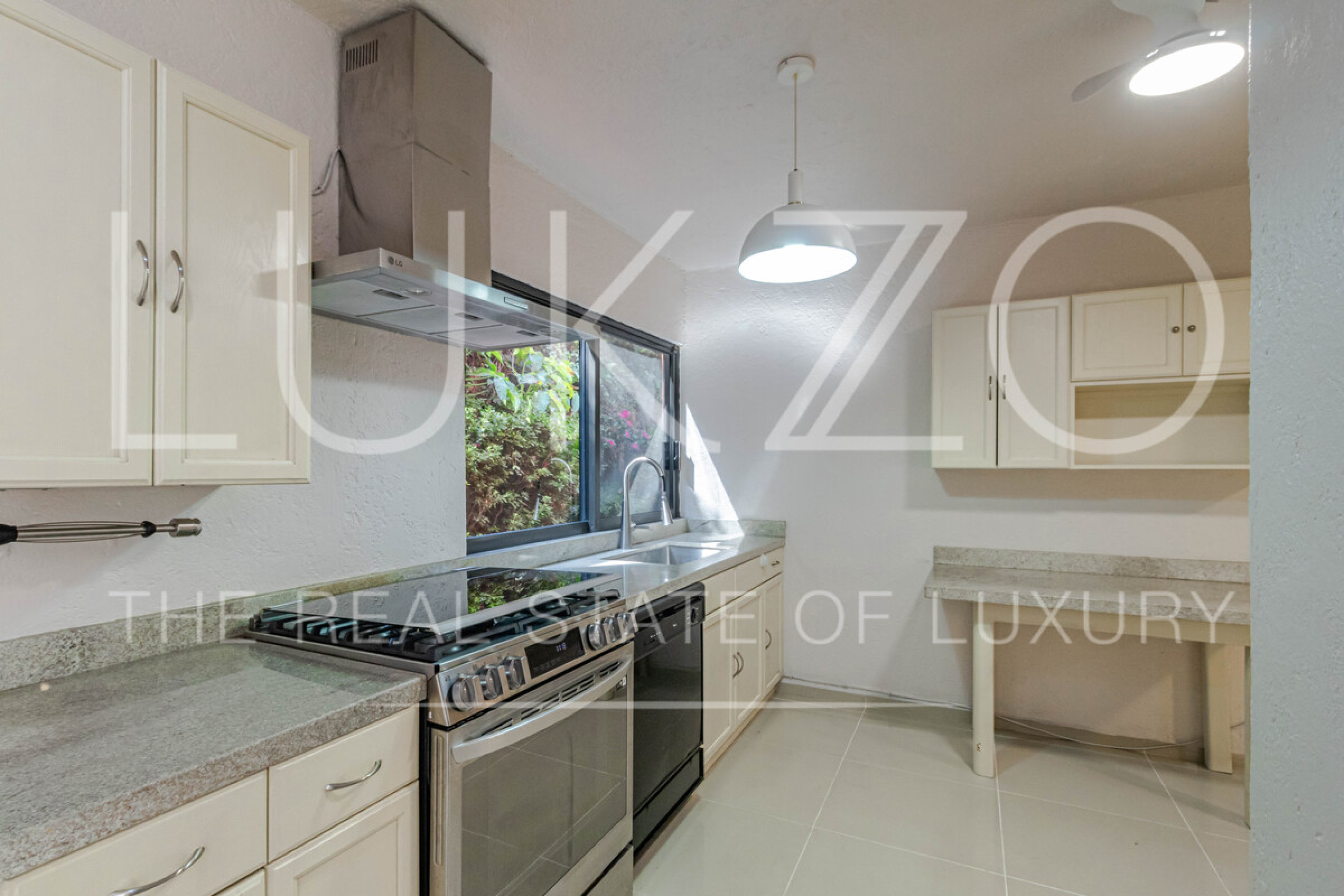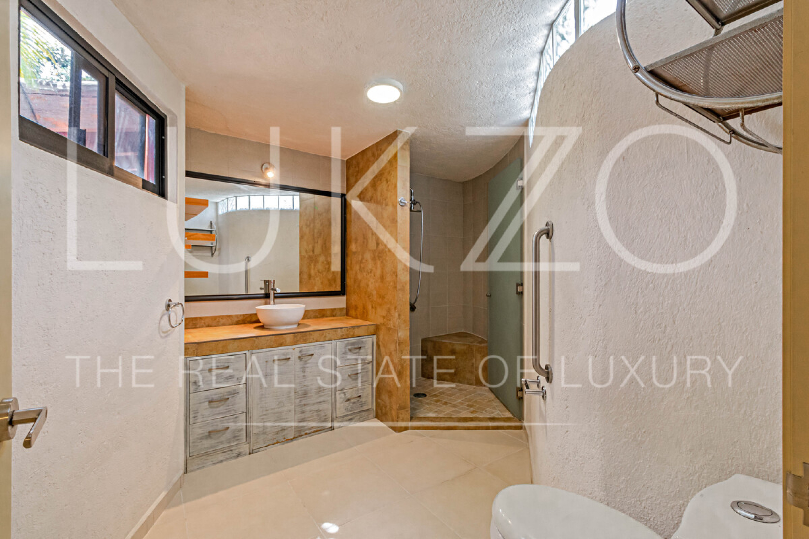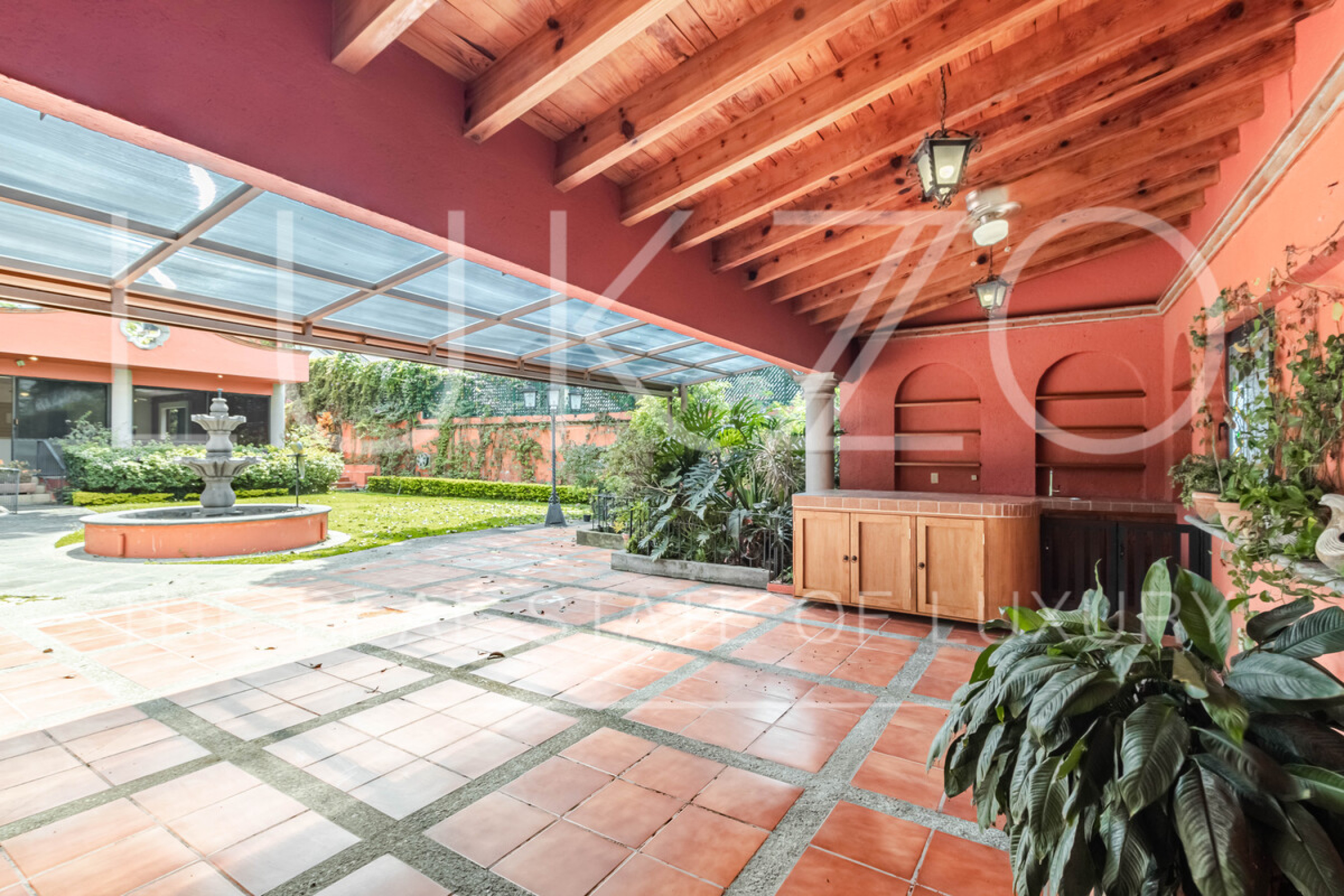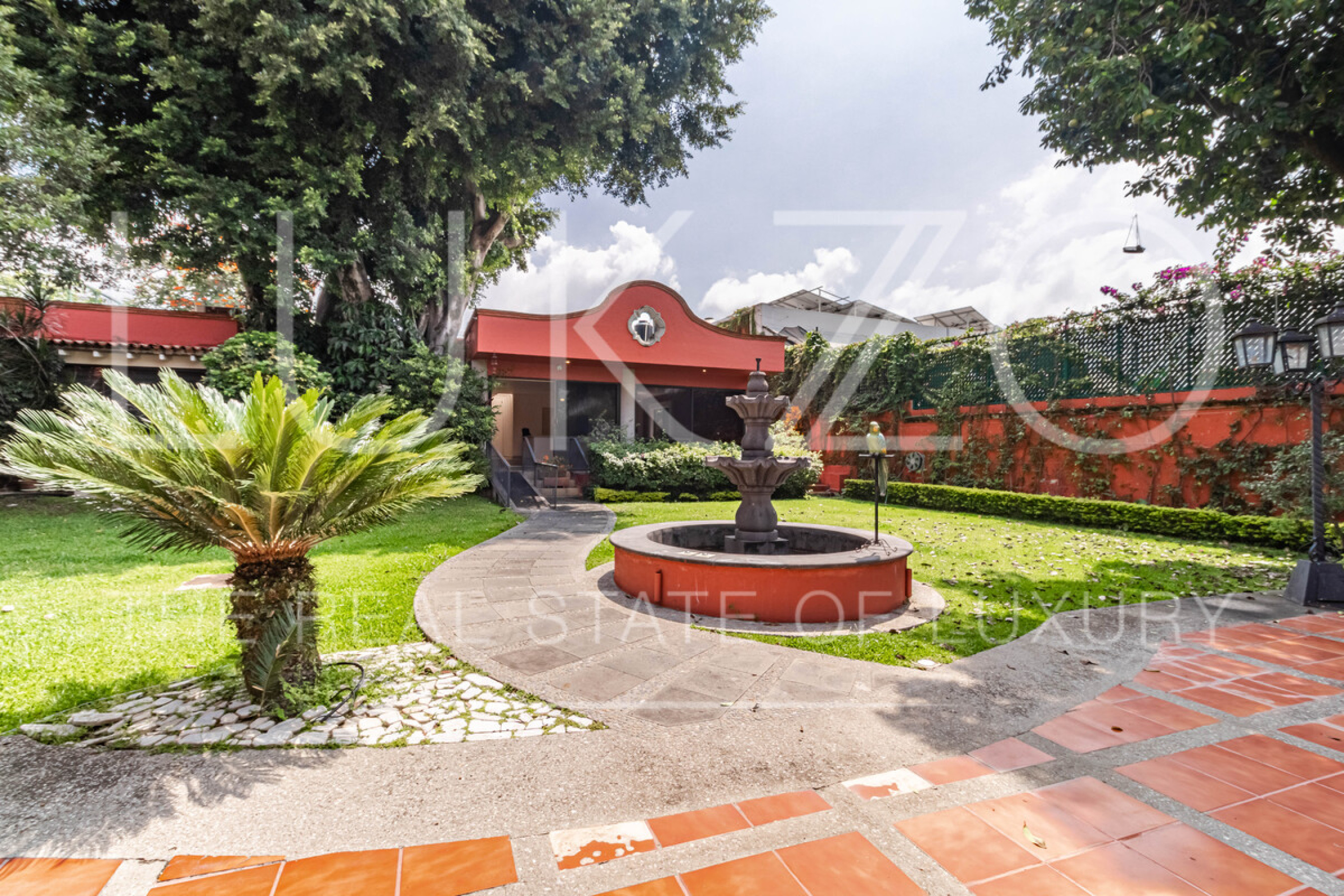 Residencia estilo mexicano ubicada en Palmira, Cuernavaca, sobre un terreno de 1,086 m² con ligera pendiente, construida en un solo nivel y en excelente estado de conservación. La casa cuenta con espacios amplios y luminosos: sala, comedor, antecomedor y una cocina equipada, distribuidos equilibradamente para la convivencia y el confort. Dispone de cinco recámaras, cada una con su baño propio, además de medio baño para visitas. Entre sus amenidades destacan varios espacios de servicio: cuarto de servicio con baño, lavandería, tres bodegas, estudio, bungalow independiente, terraza con barra y jardín extenso con sistema de riego por aspersión. Asimismo se encuentran estacionamiento para seis autos, portón eléctrico, sistema hidroneumático, agua potable con dos tomas, closet de blancos, closet de visitas, clima instalado por medio de cinco minisplits y adaptaciones que permiten tener mascotas. Esta propiedad, construida aproximadamente en el año 2000, ofrece privacidad, funcionalidad y un ambiente ideal para quienes buscan confort y elegancia en una sola planta.