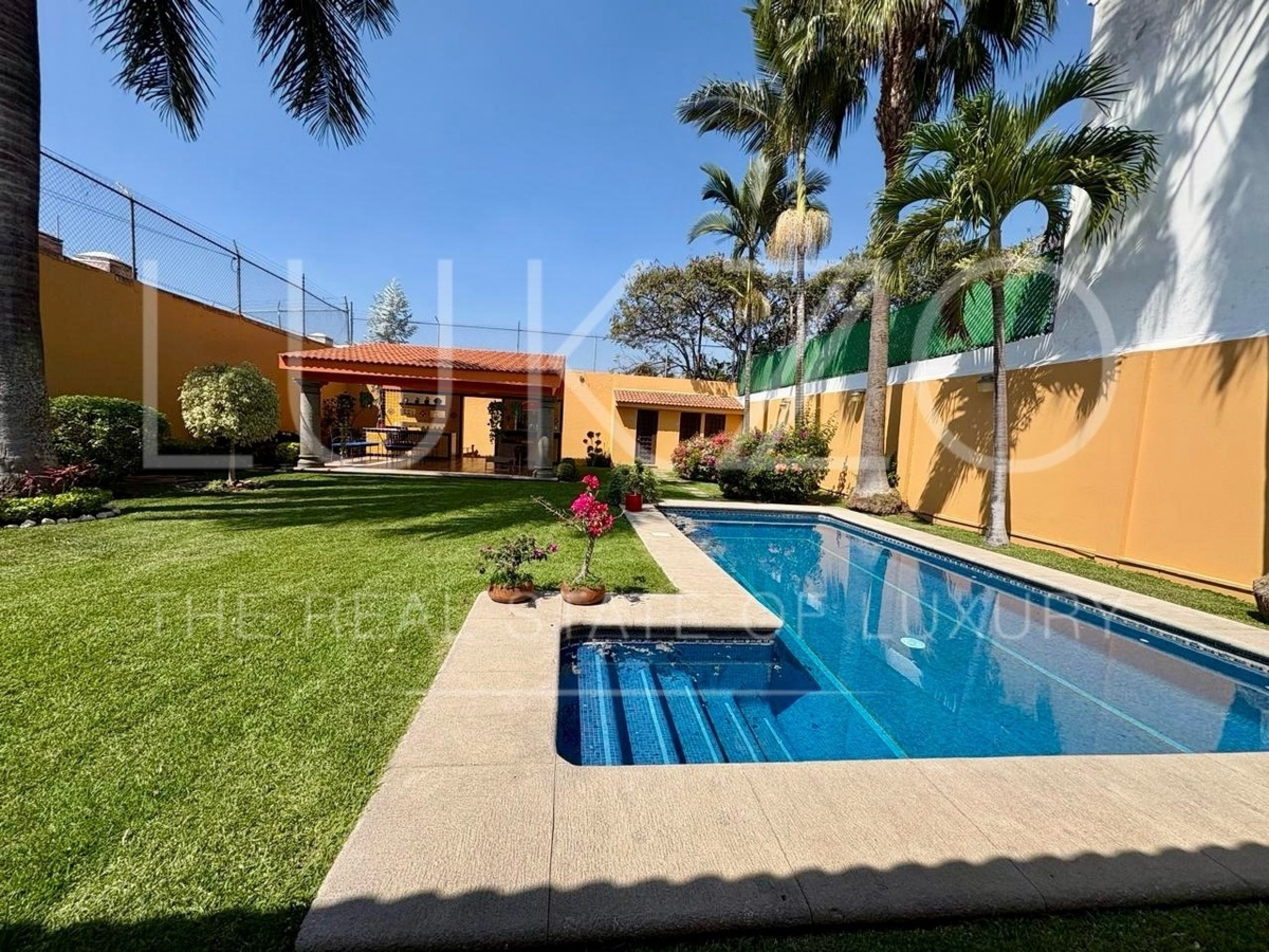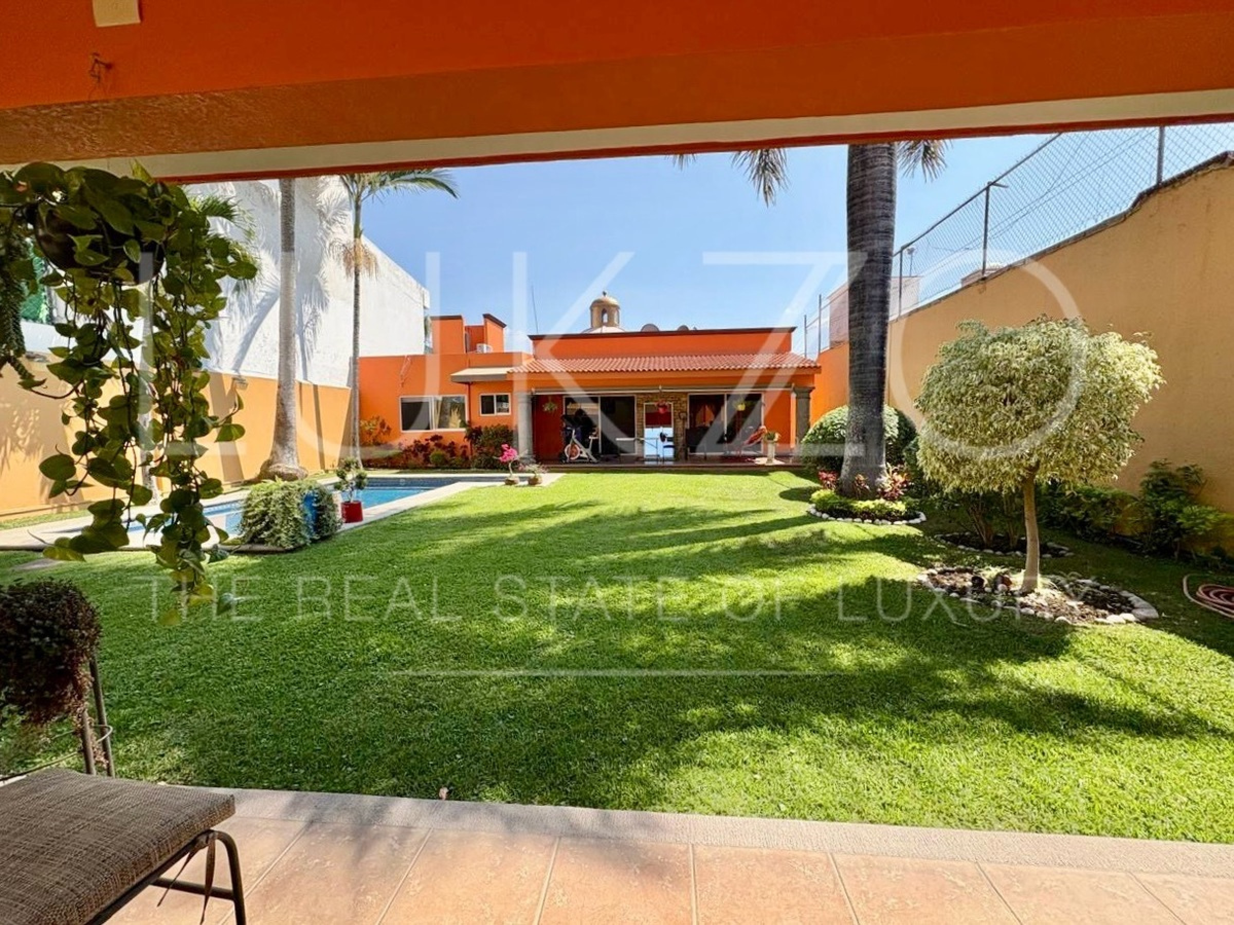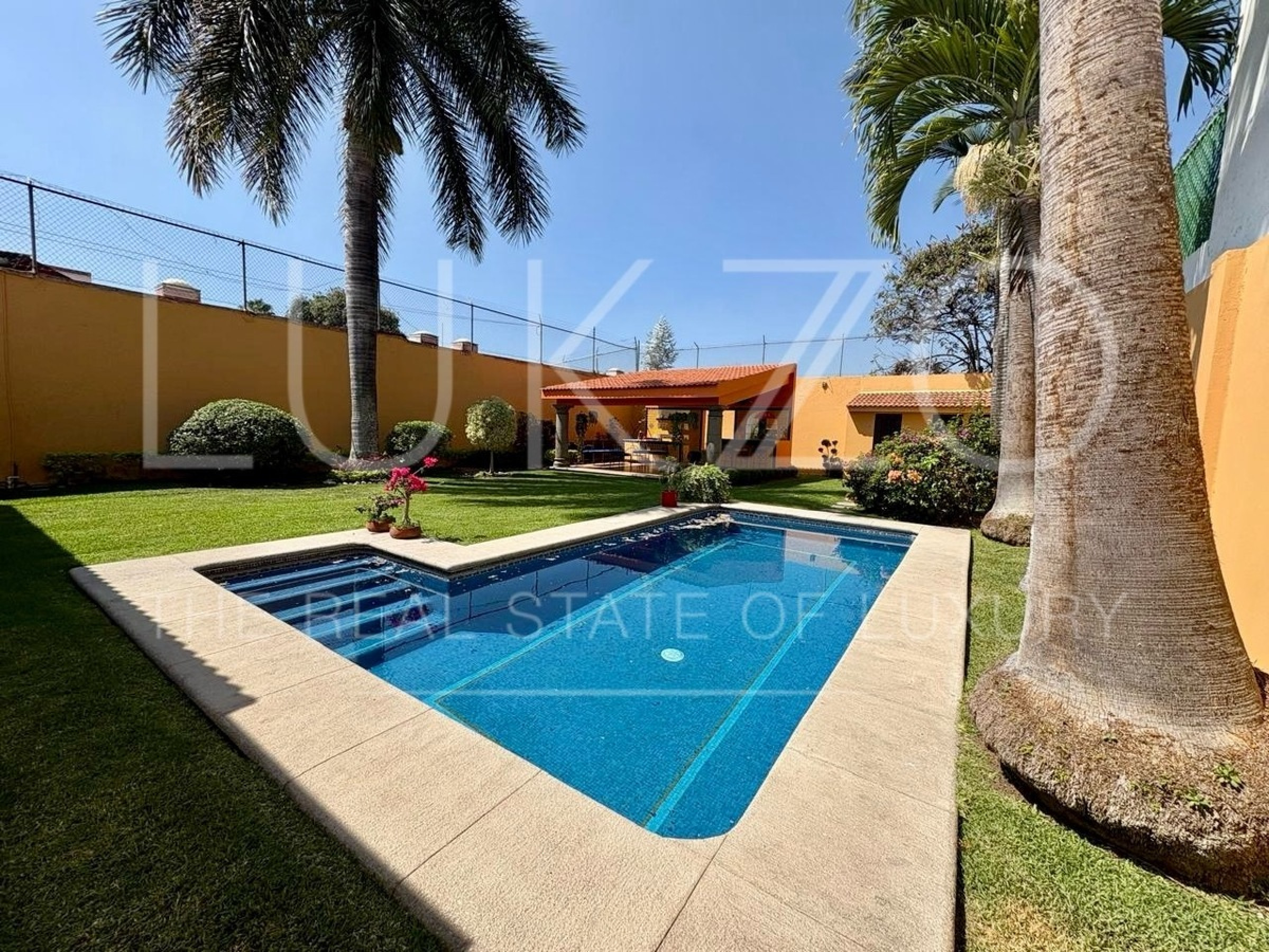 Disfruta de dos terrazas, una conectada a la estancia y otra en el fondo del jardín con dos medios baños. El jardín incluye una alberca equipada con celdas solares para tu disfrute y relajación.