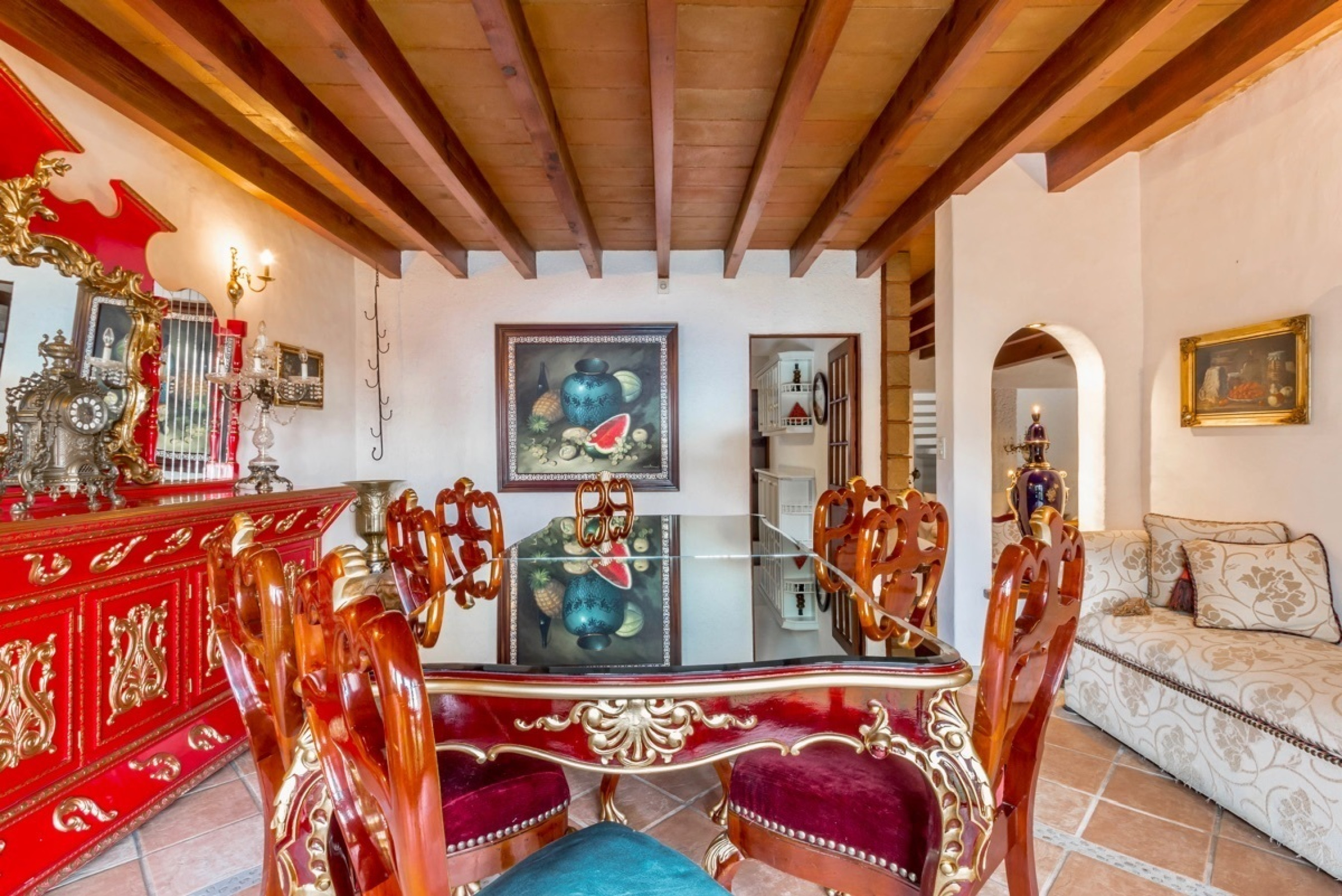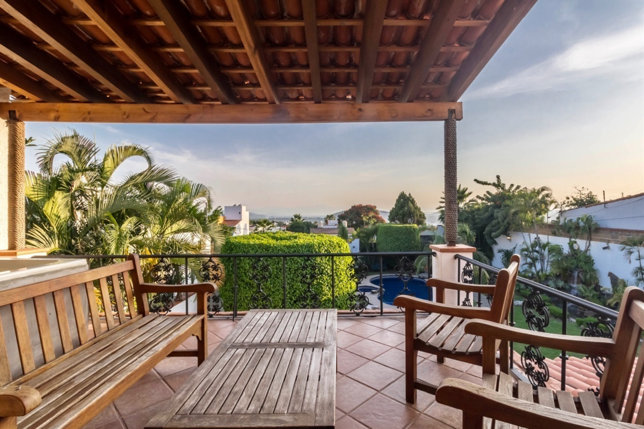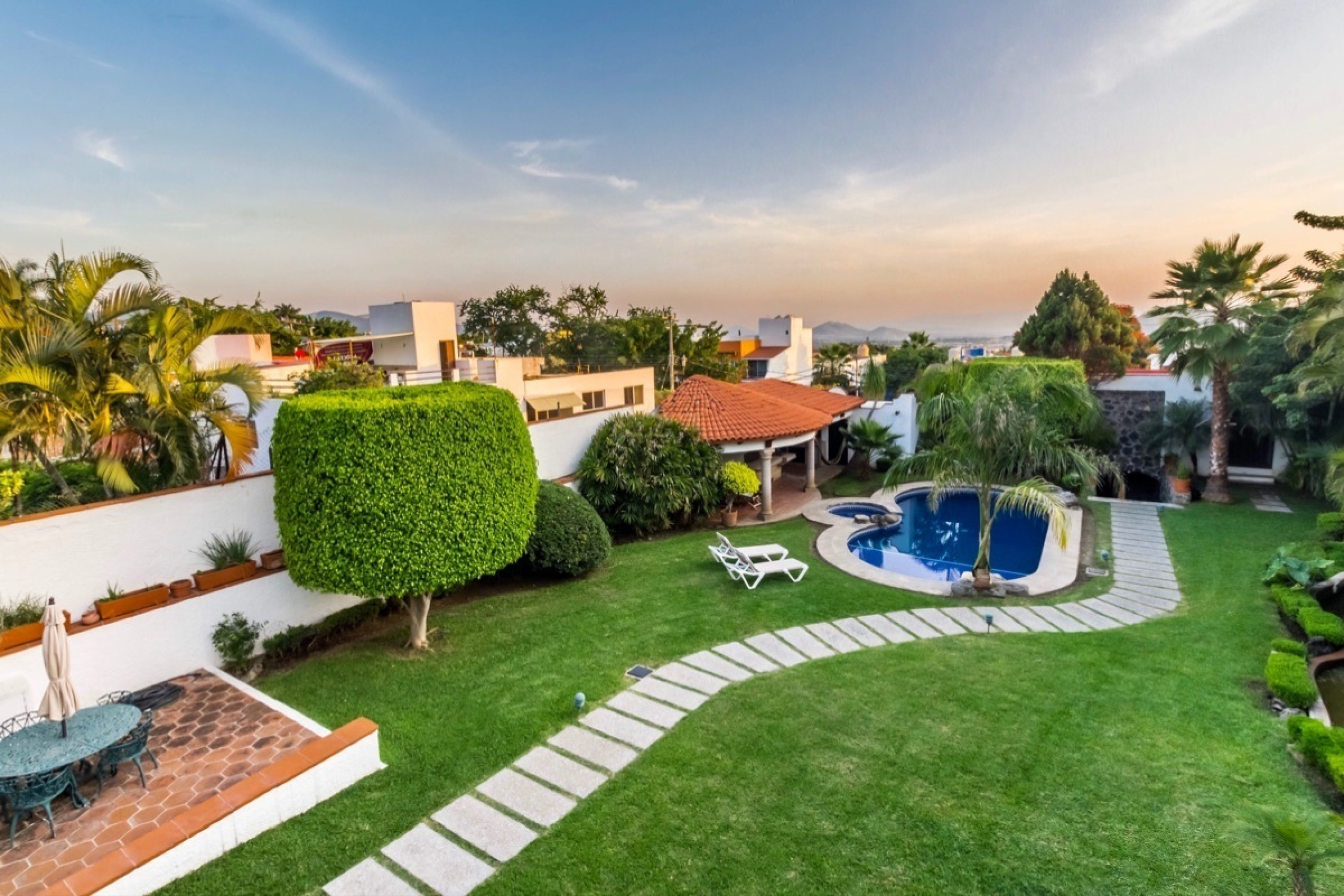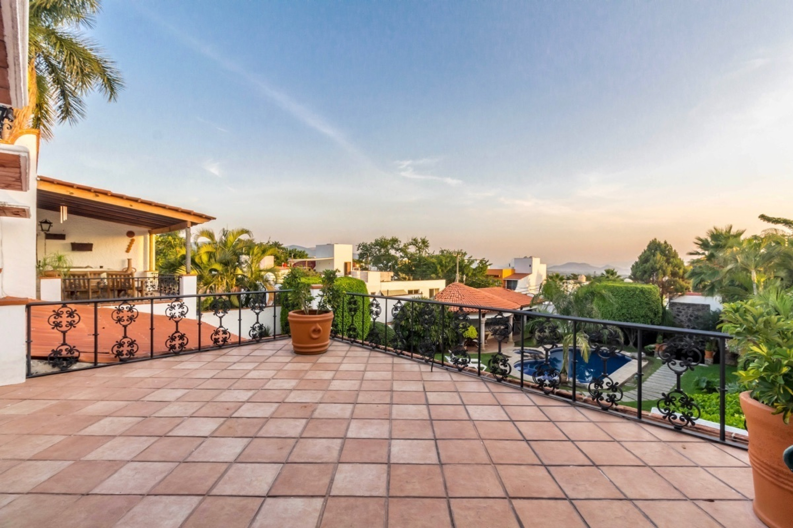 Residencia estilo colonial mexicano, ubicada en fraccionamientos en Temixco. La casa cuenta con bovedas, un patio interior con fuente, vigas de madera en techos y canceleria de madera en las ventanas. Los baños son modernos y las regaderas con canceles de cristal templado. La cocina y tiene barra para desayuno. La terraza cuenta con plancha de Tepanyaki, asador, horno y un rosticero vertical. Es perfecta para disfrutar reuniones con familiares y amigos. El jardin tiene plantas maduras y el sonido de la cascada exterior invita a meditar o pasar la tarde leyendo un buen libro. El bungalow con una recamara y baño completo es ideal para recibir invitados. Por la autopista es muy facil llegar a centros comerciales como Forum o Averanda.