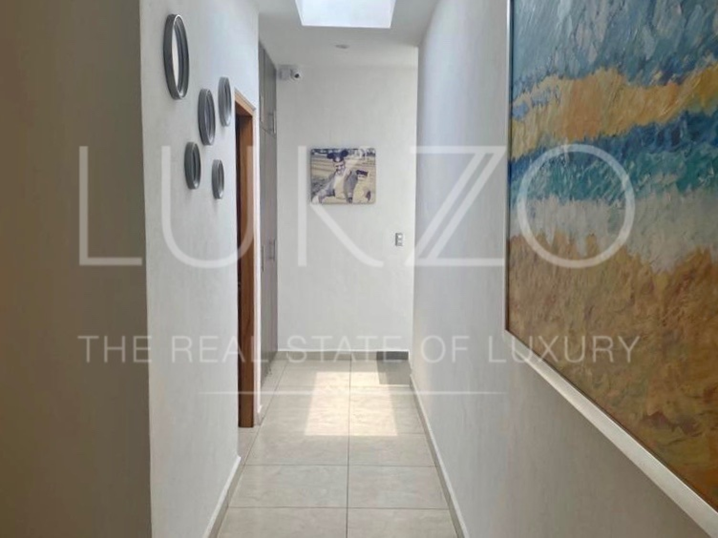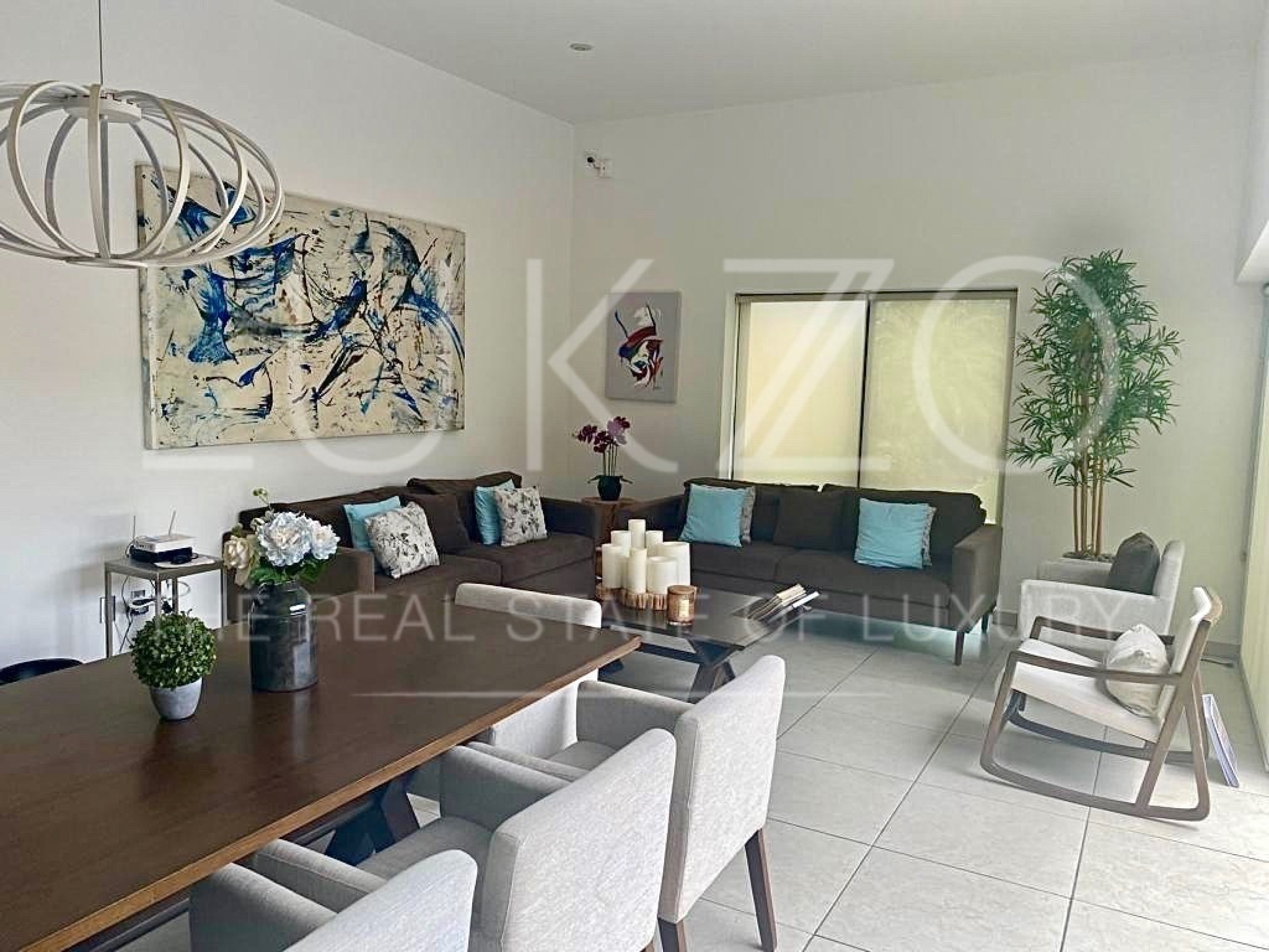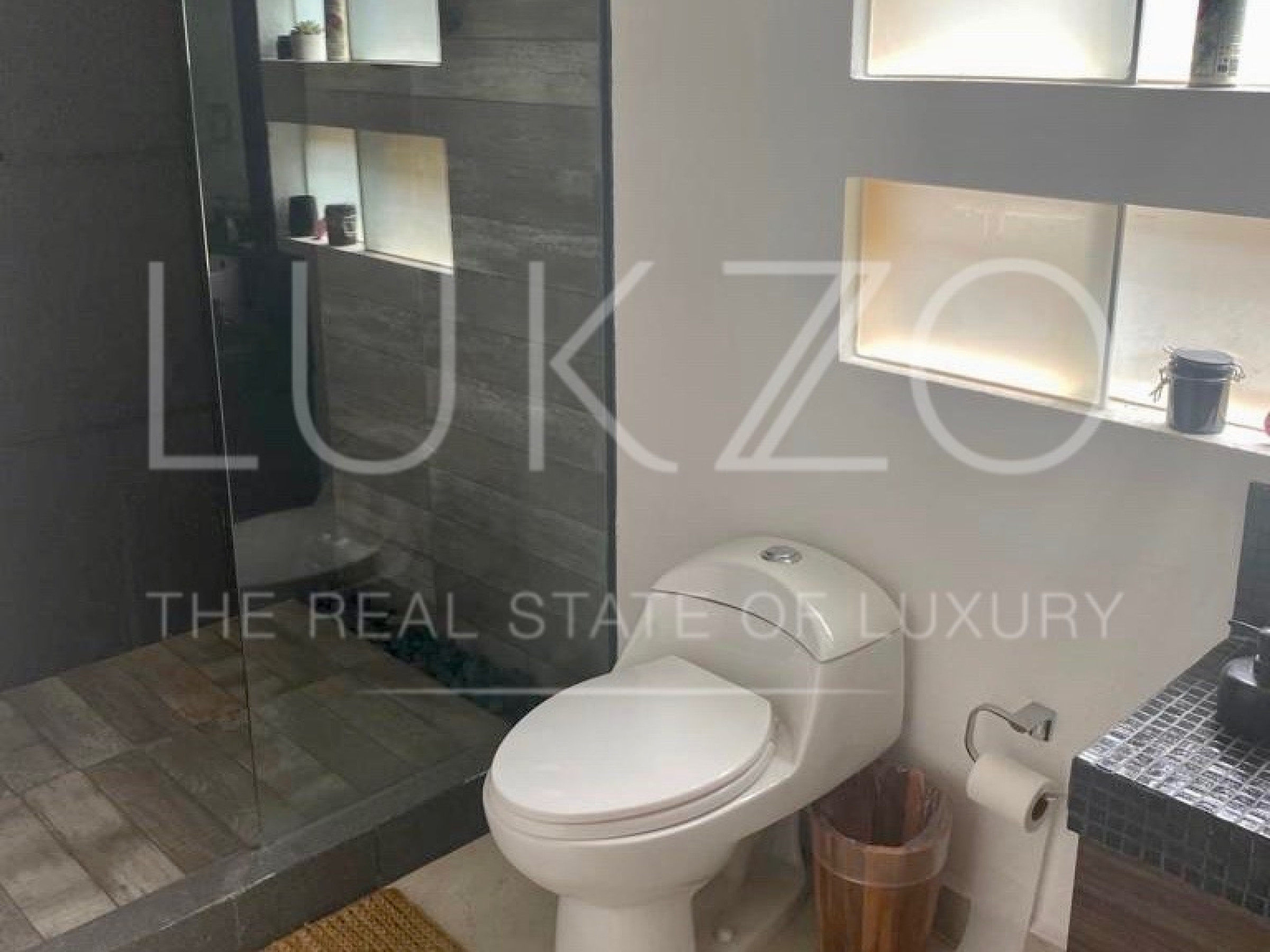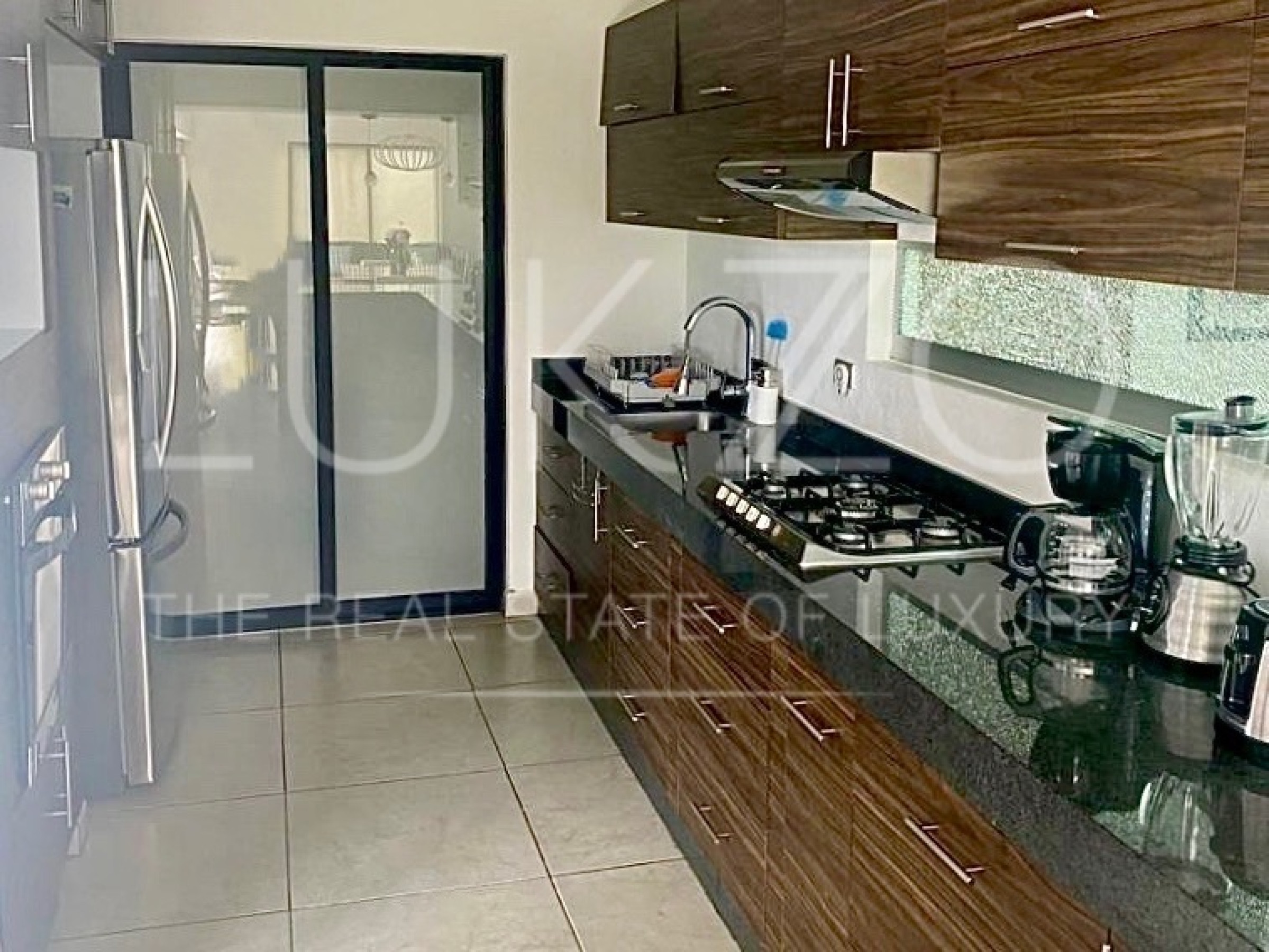 En el interior de la casa encontrarás una sala, comedor y cocina equipada con barra. En planta baja encontrarás 2 recámaras, cada una con su propio baño, además de un medio baño de visitas. En la planta alta, hay tres recámaras más, todas con baño. La recámara principal cuenta con un vestidor para mayor comodidad.