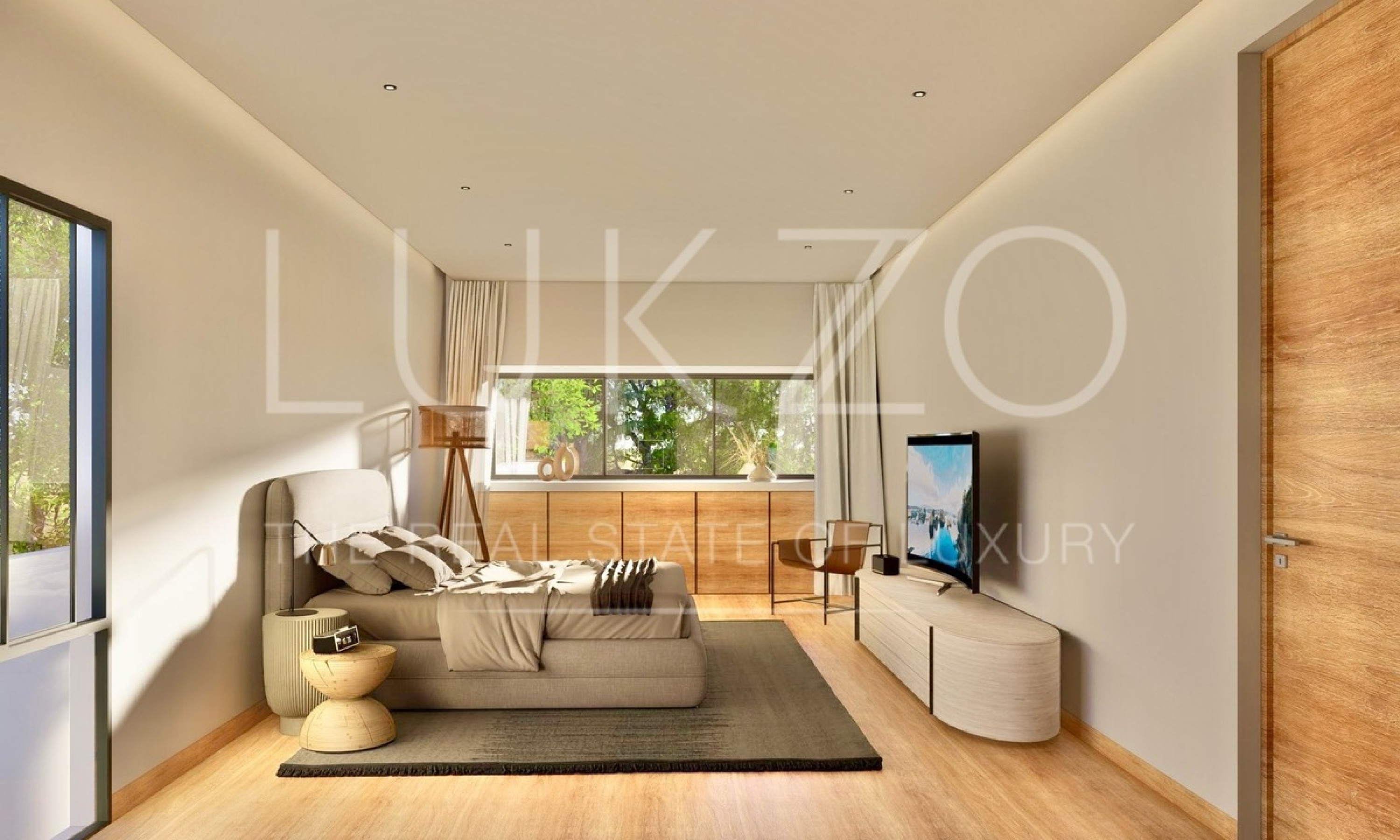 Cuenta con cuatro recámaras, todas con vestidor y baño completo, destacando una recámara en planta baja, perfecta para quienes buscan practicidad y comodidad. El área social es amplia y luminosa, con una sala y comedor de doble altura que dan una sensación de amplitud y conexión con el exterior.