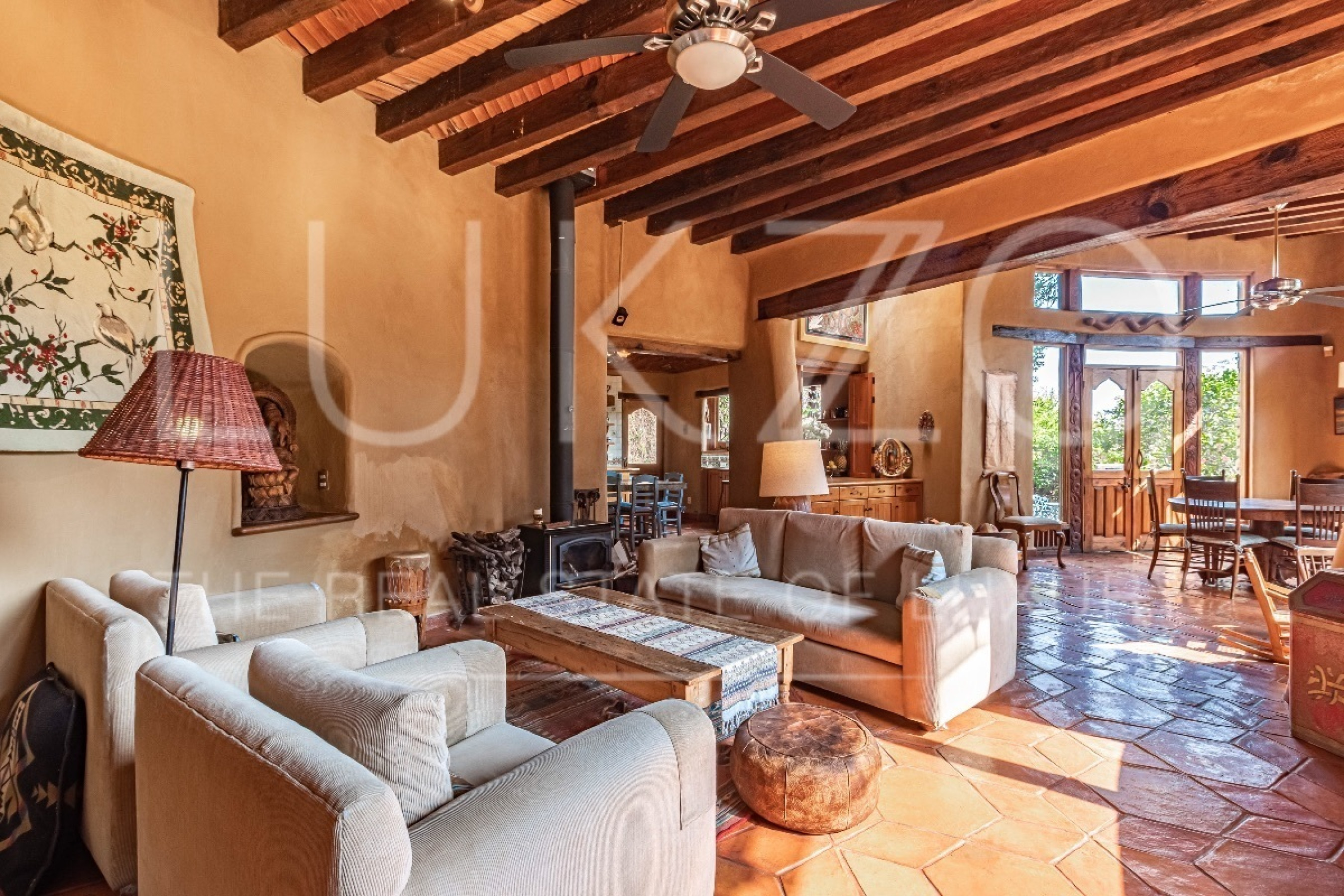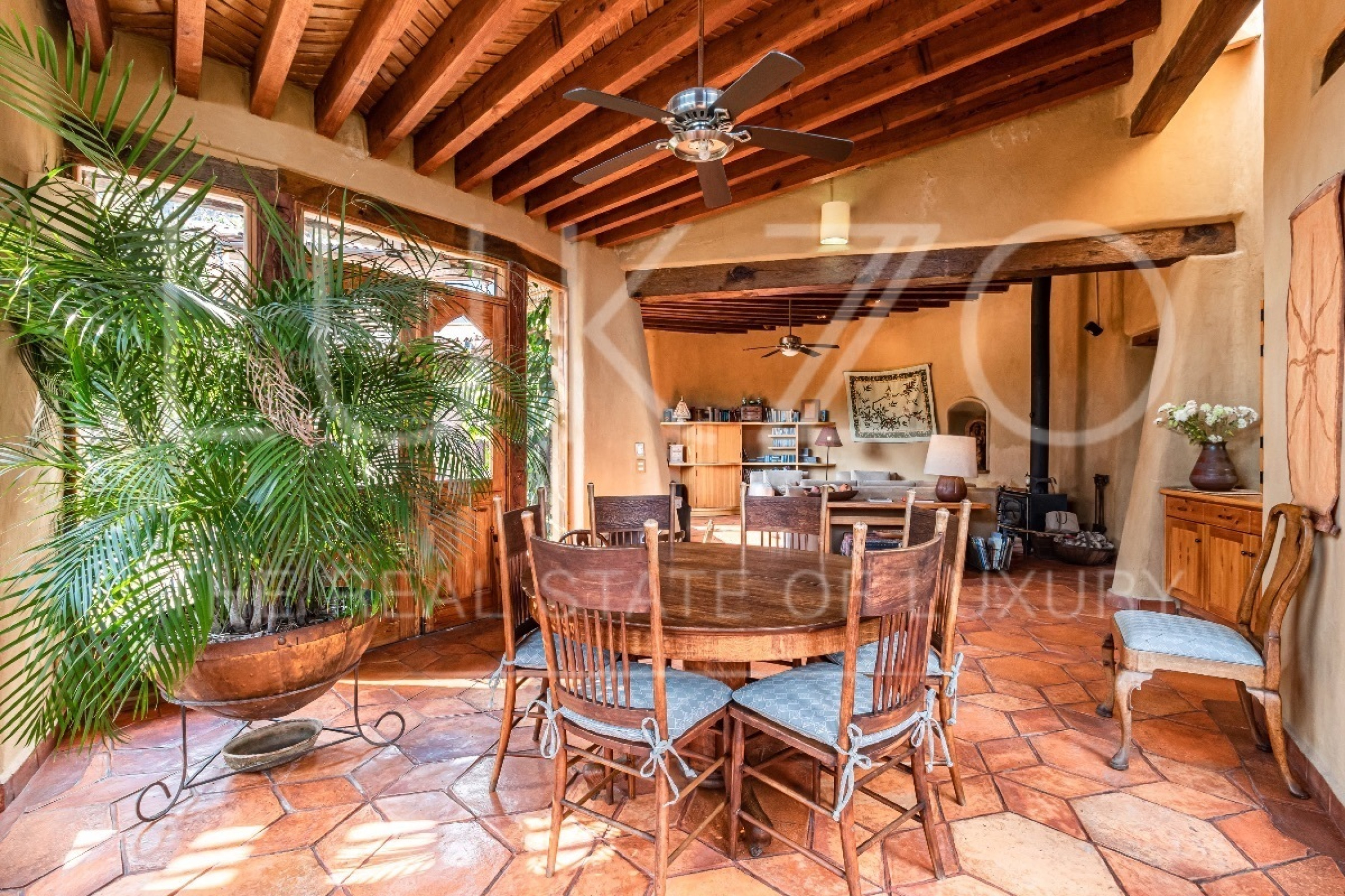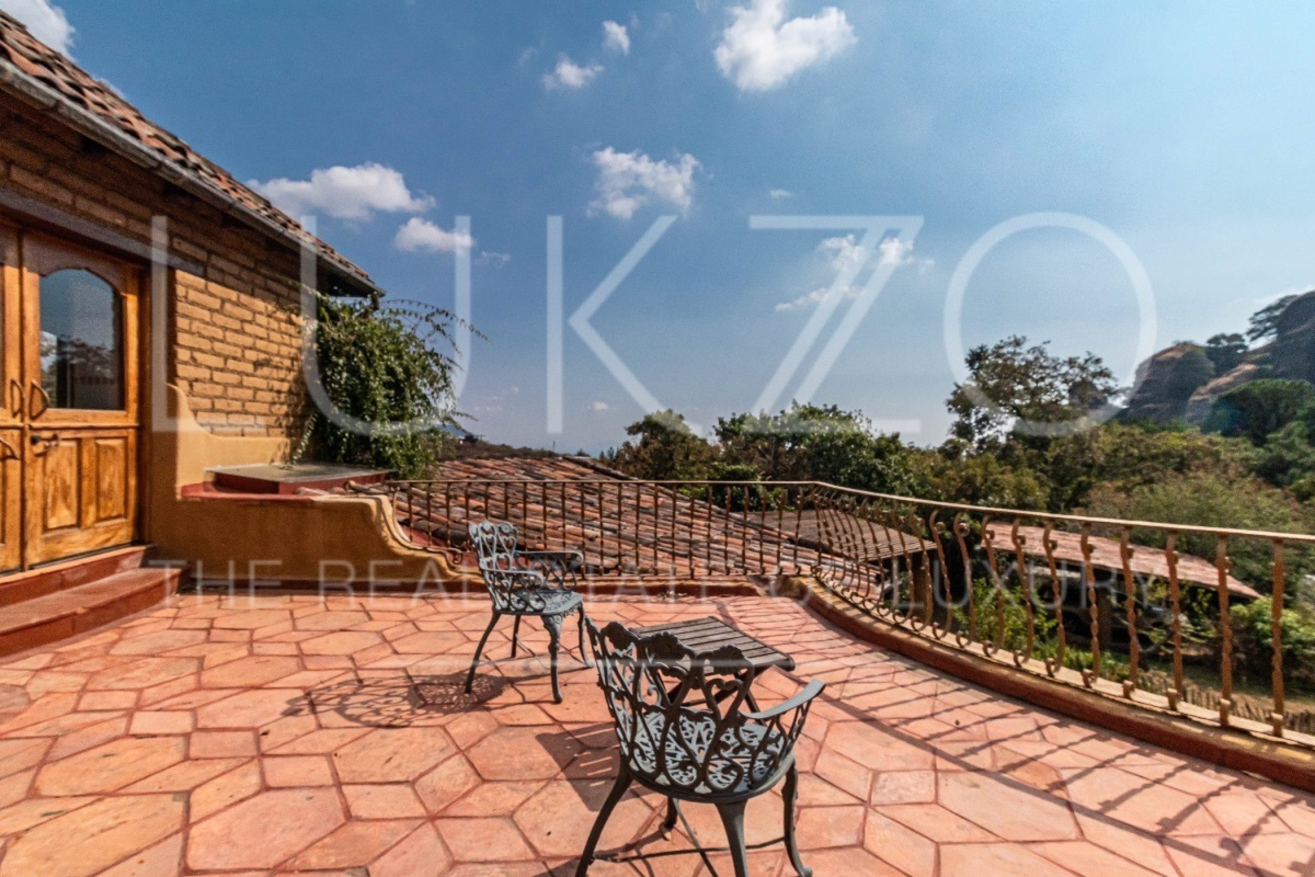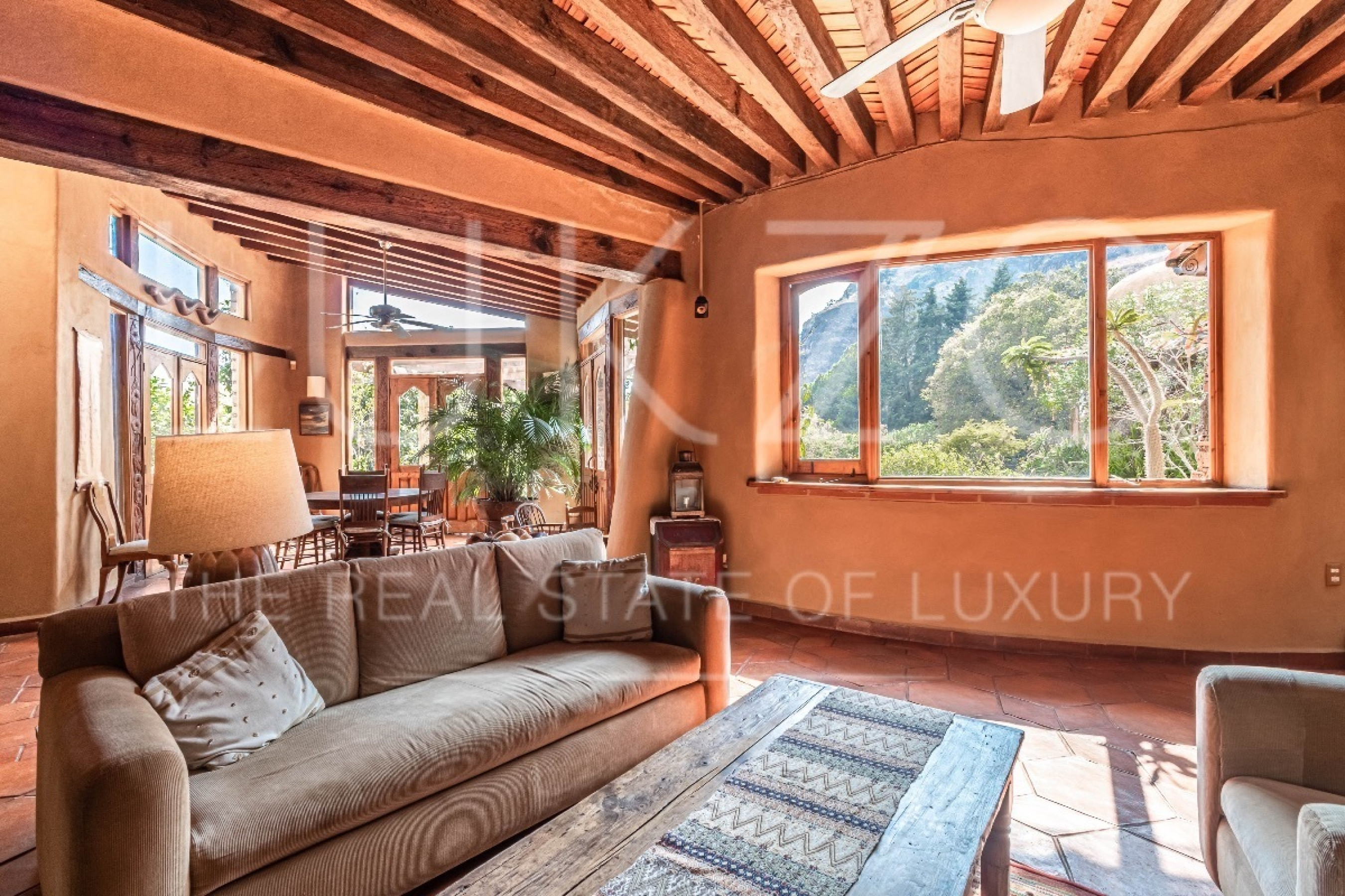 Diseñada por el arquitecto mexicano Michel Lewis, la casa está construida con piedra local y adobe, con techos altos, vigas de madera y vistas en todas las direcciones. Construida en una forma distintiva de media luna, la casa tiene tres dormitorios, tres baños, sala de estar, comedor, oficina y cocina. Los pisos son de baldosas tradicionales o de madera. Los espacios al aire libre, todo rodeado de jardines y árboles. Patio cercano a la cocina, perfecto para tomar un café por la mañana. Terraza cubierta afuera del comedor. Terraza en el segundo piso para tomar el sol y observar la luna. Una zona detrás de la casa, ideal para leer y tomar el té de la tarde. Ecovillage Huehuecoyotl es una comunidad asentada en una superficie de 20,797 m en la que se construyeron 14 residencias. Por su cercanía en la montaña, su entorno de bosque y acceso a casi 15,000 m de áreas comunes en las que se han implementado huertos, cocina comunitaria, salón de trabajo y área de jardín para eventos. Cesión de derechos.
