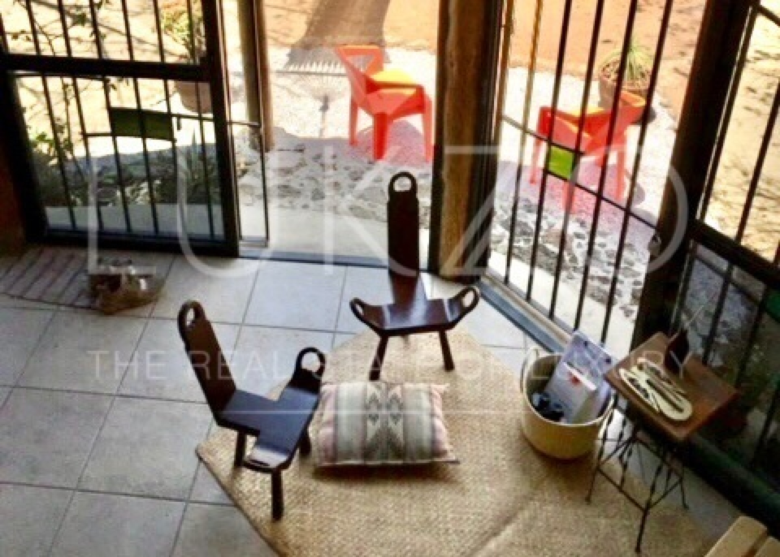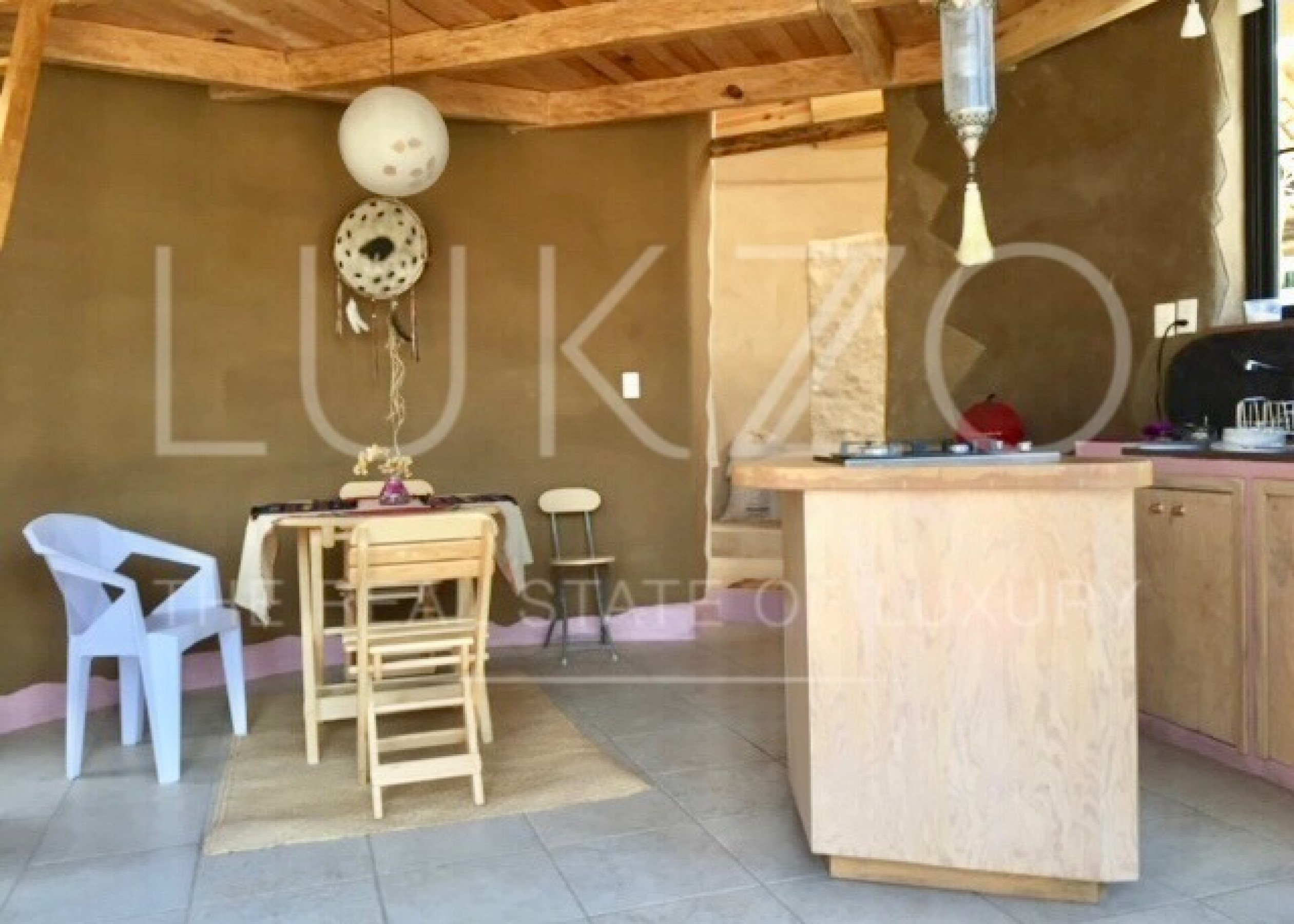 La casa consta de un espacio abierto con sala, comedor, cocina y tapanco. Un luminoso pasillo conduce a la recámara, redonda y con cúpula de adobe. El tapanco funciona para segunda recámara o área de esparcimiento.