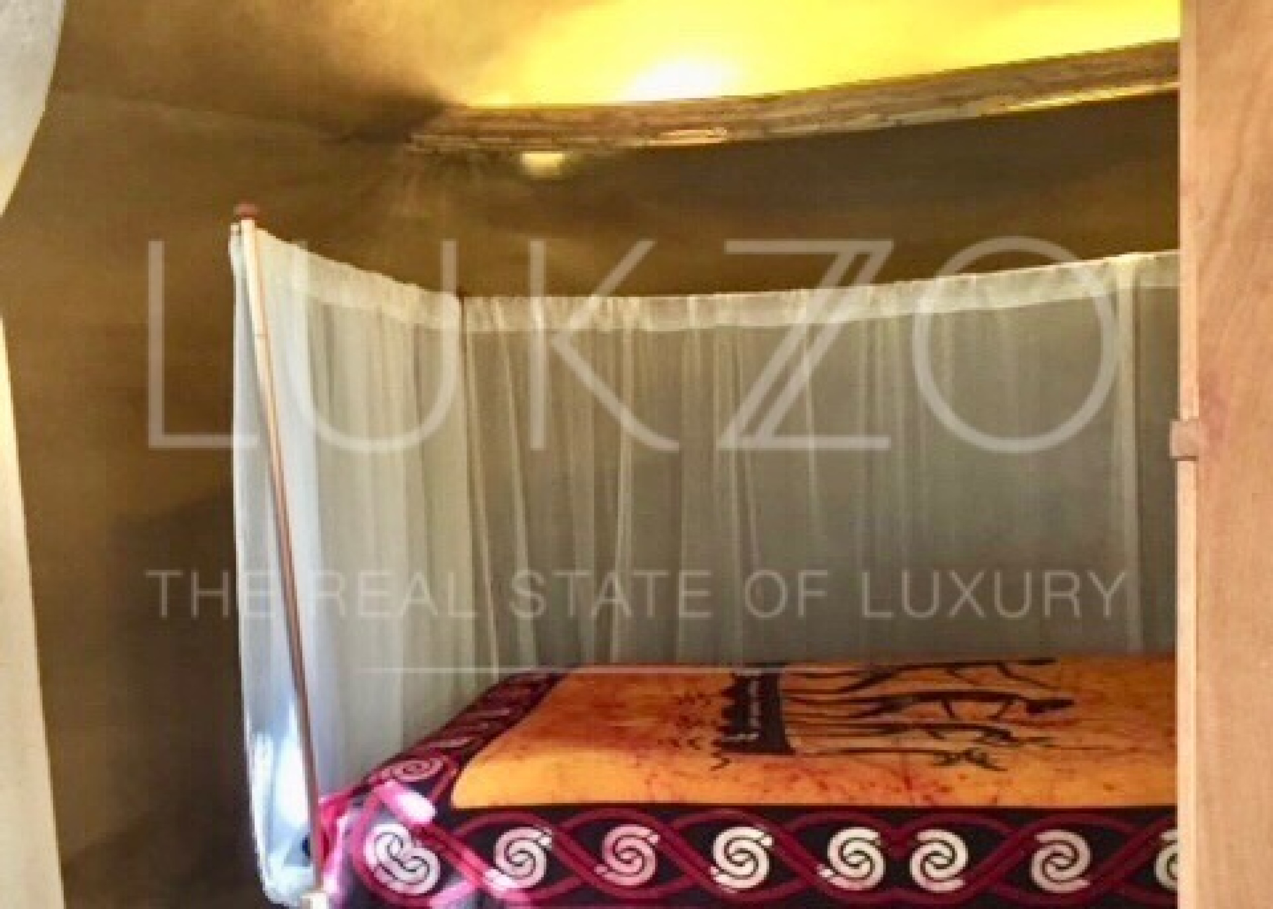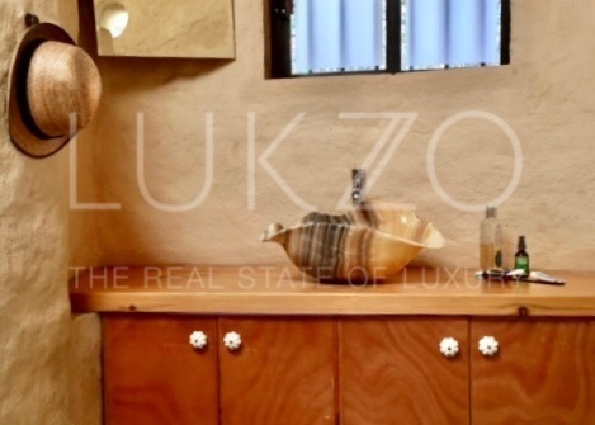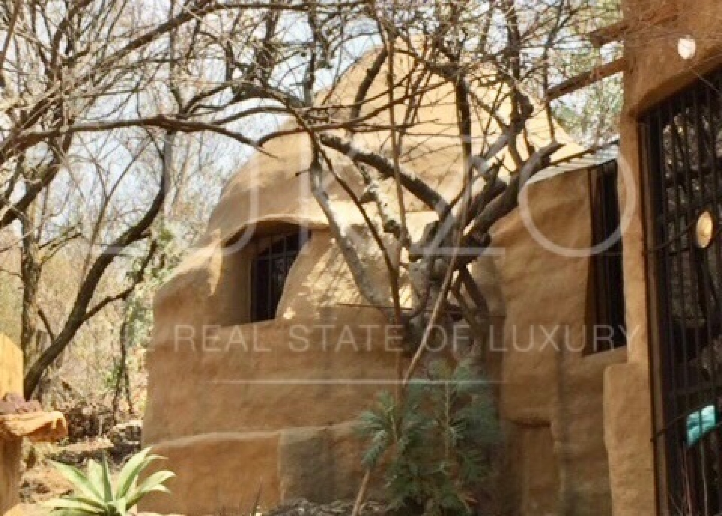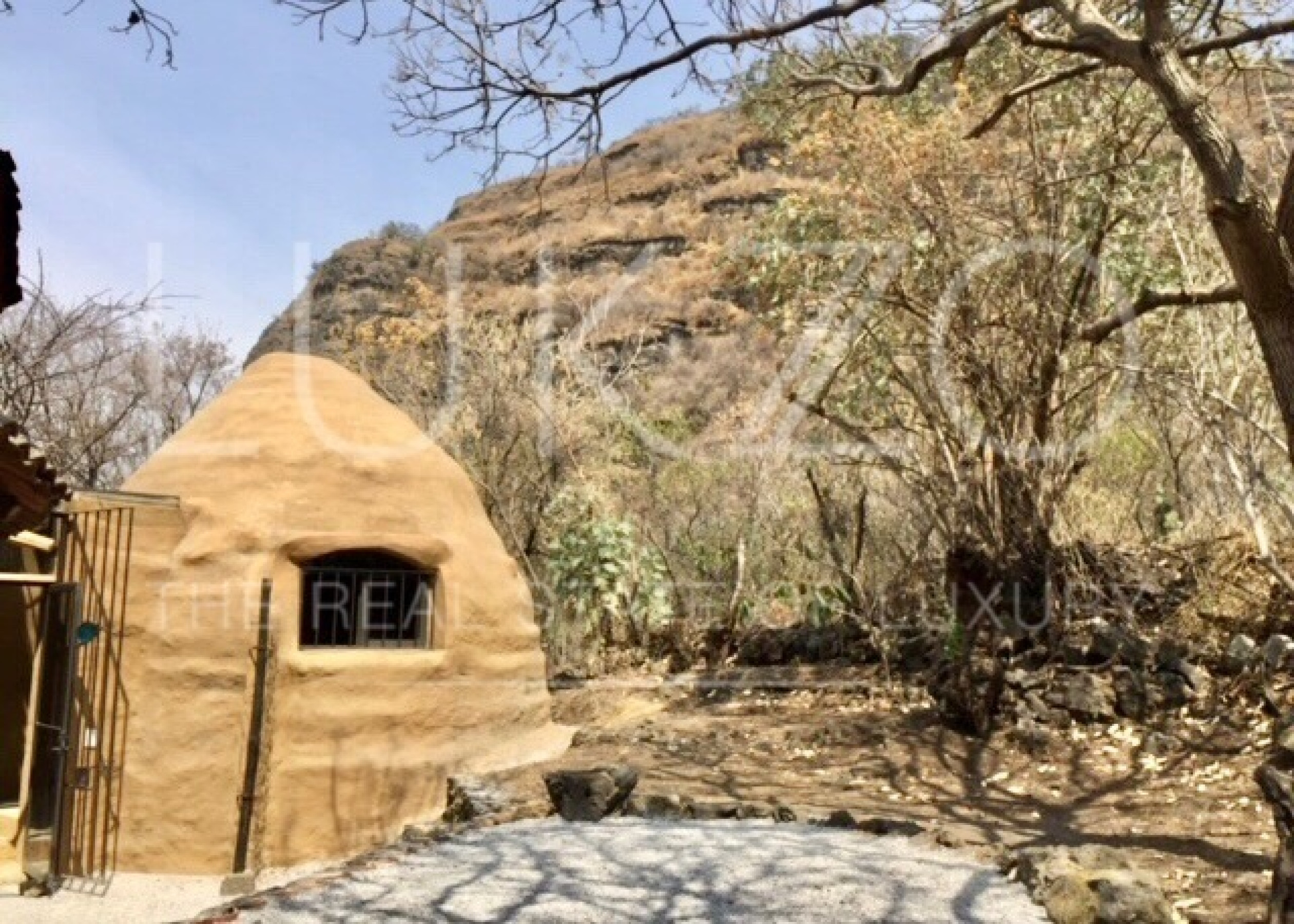 Original y única, construcción de superadobe y madera. Respetando el entorno natural, la casa está construida alrededor de un Árbol de Copal y las fachadas replican la silueta de las montañas.