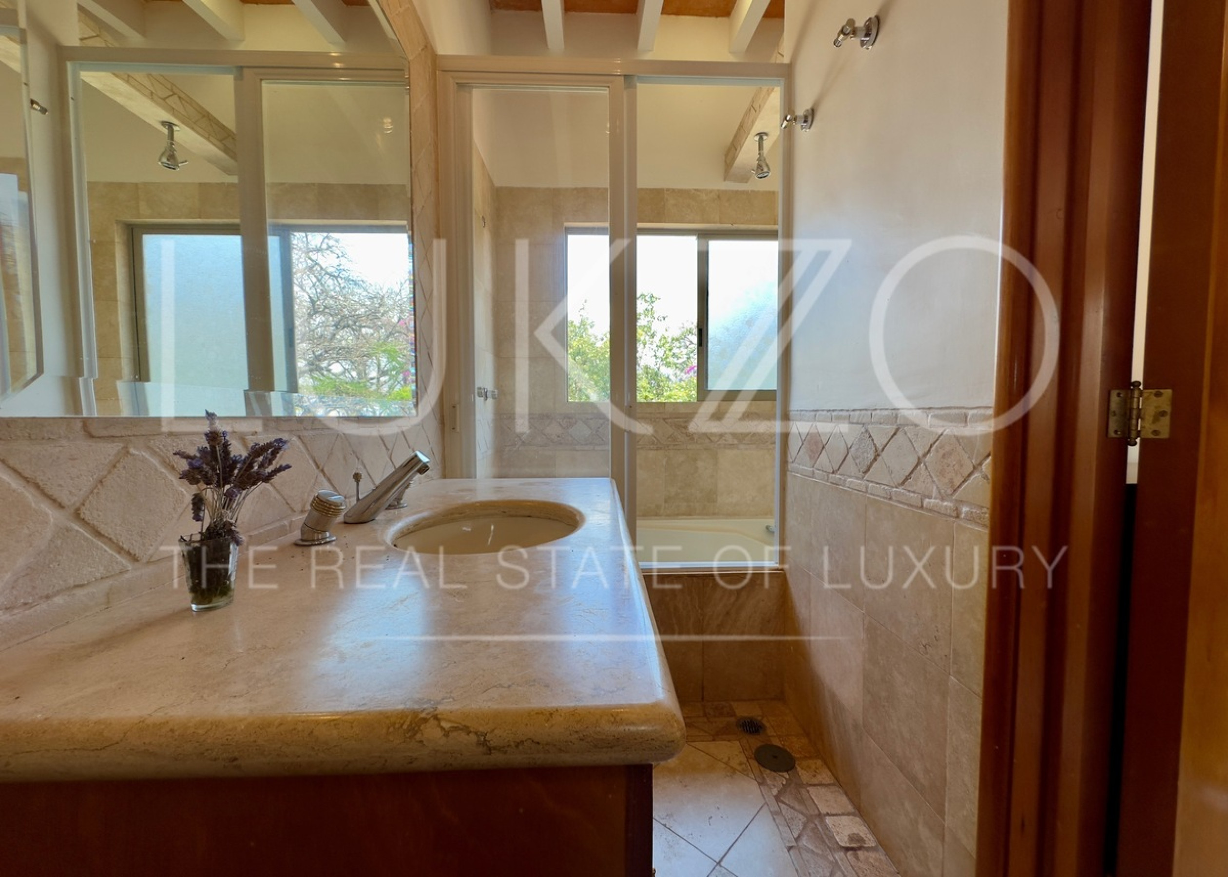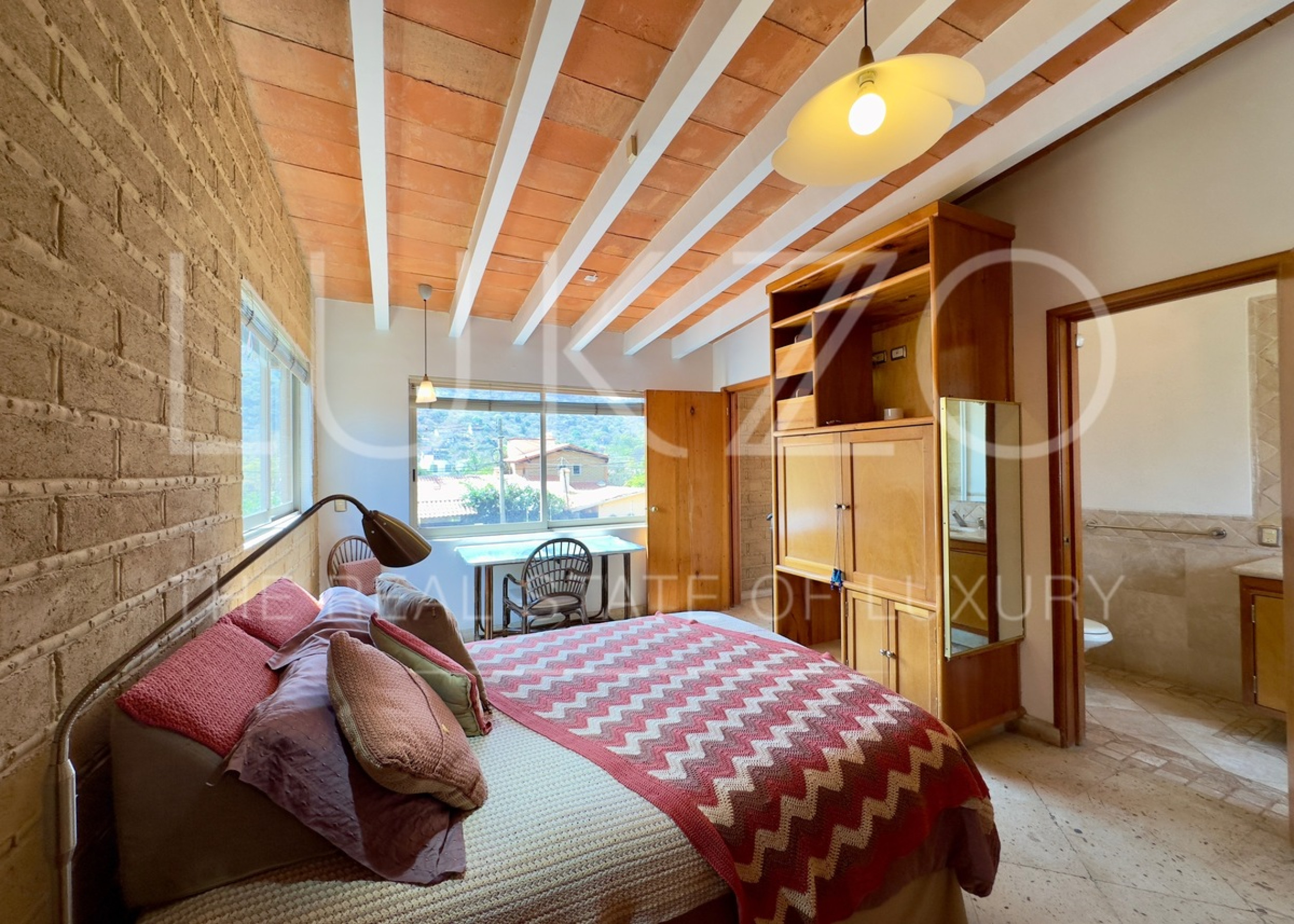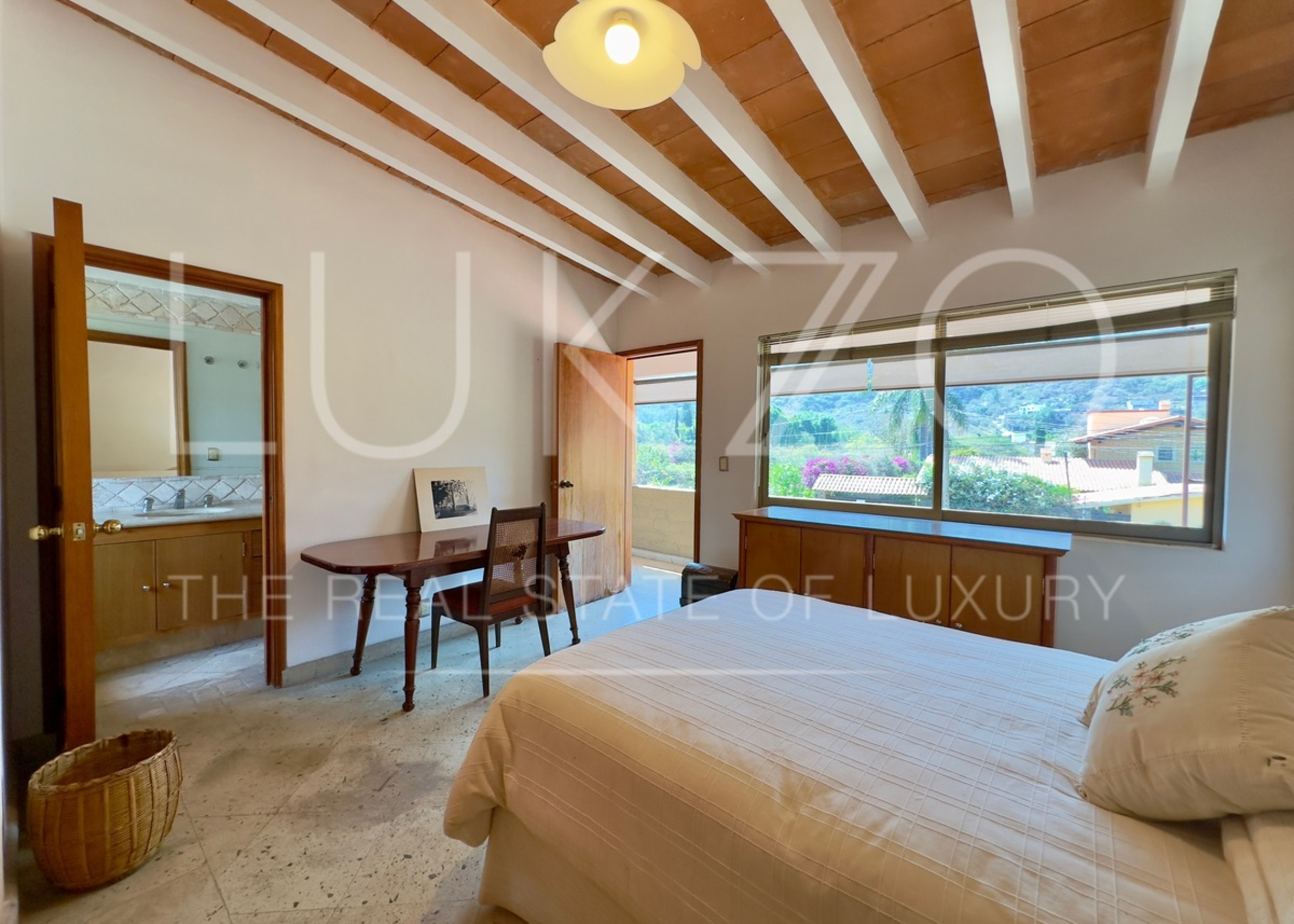 En planta baja encuentras la cocina con luz natural, sala, comedor, recámara con baño completo que también puede ser sala de TV. Las tres habitaciones están en planta alta, cada una con su baño completo. En esta misma planta está el estudio.