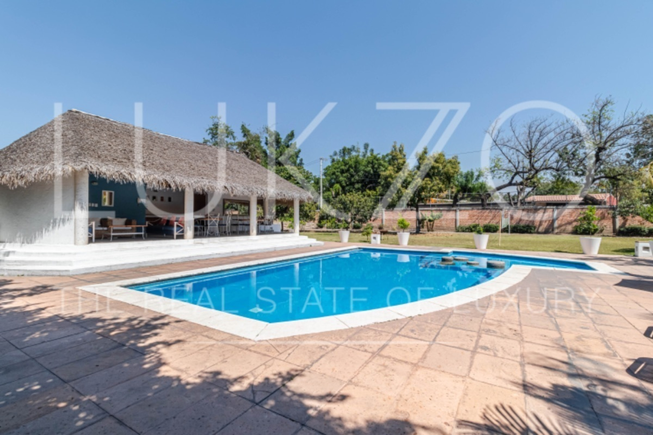 Casa familiar en un nivel con alberca en zona fresca de Yautepec. Árboles maduros. Palapa y alberca ideales para reuniones con familia y amigos.