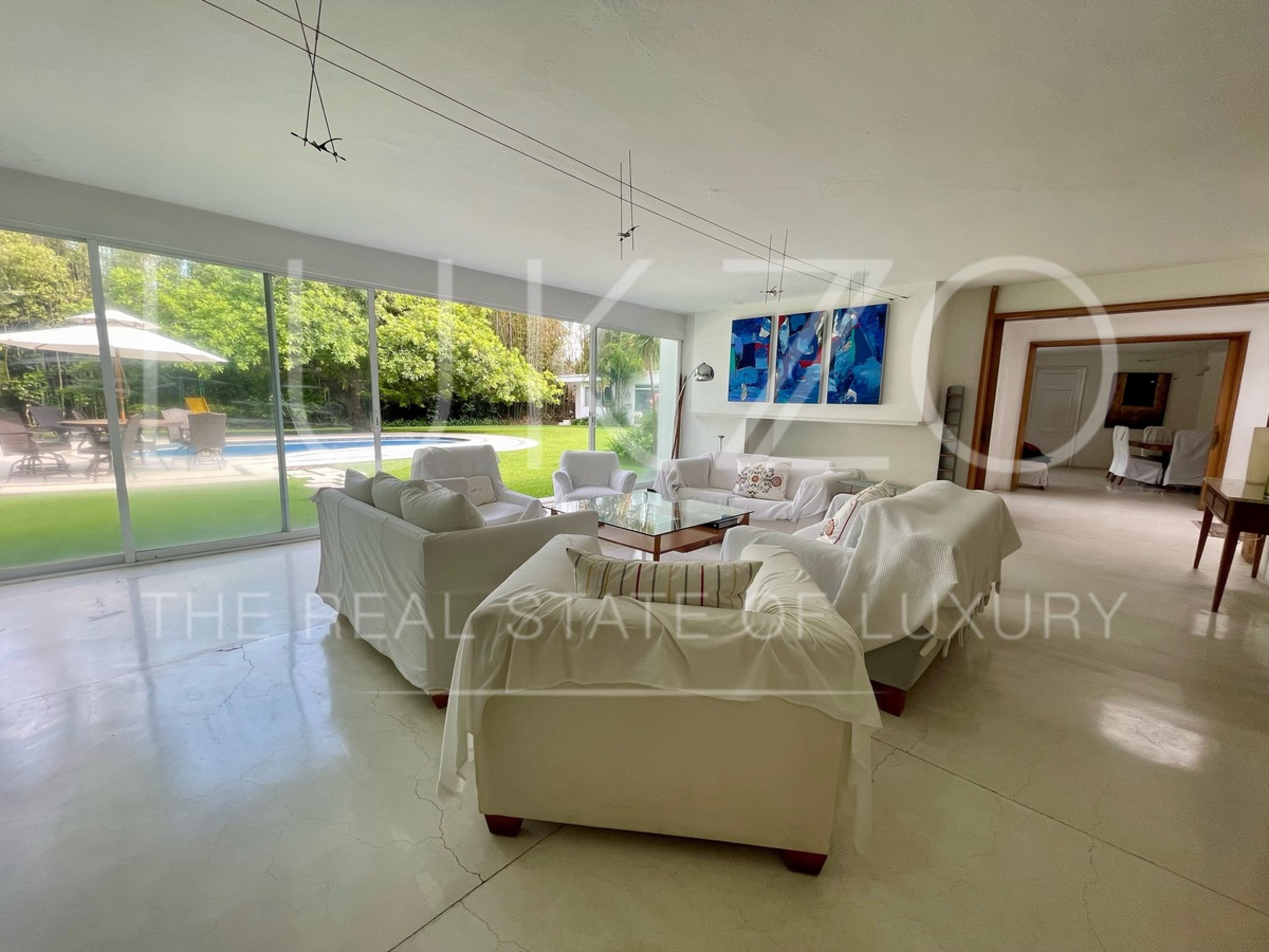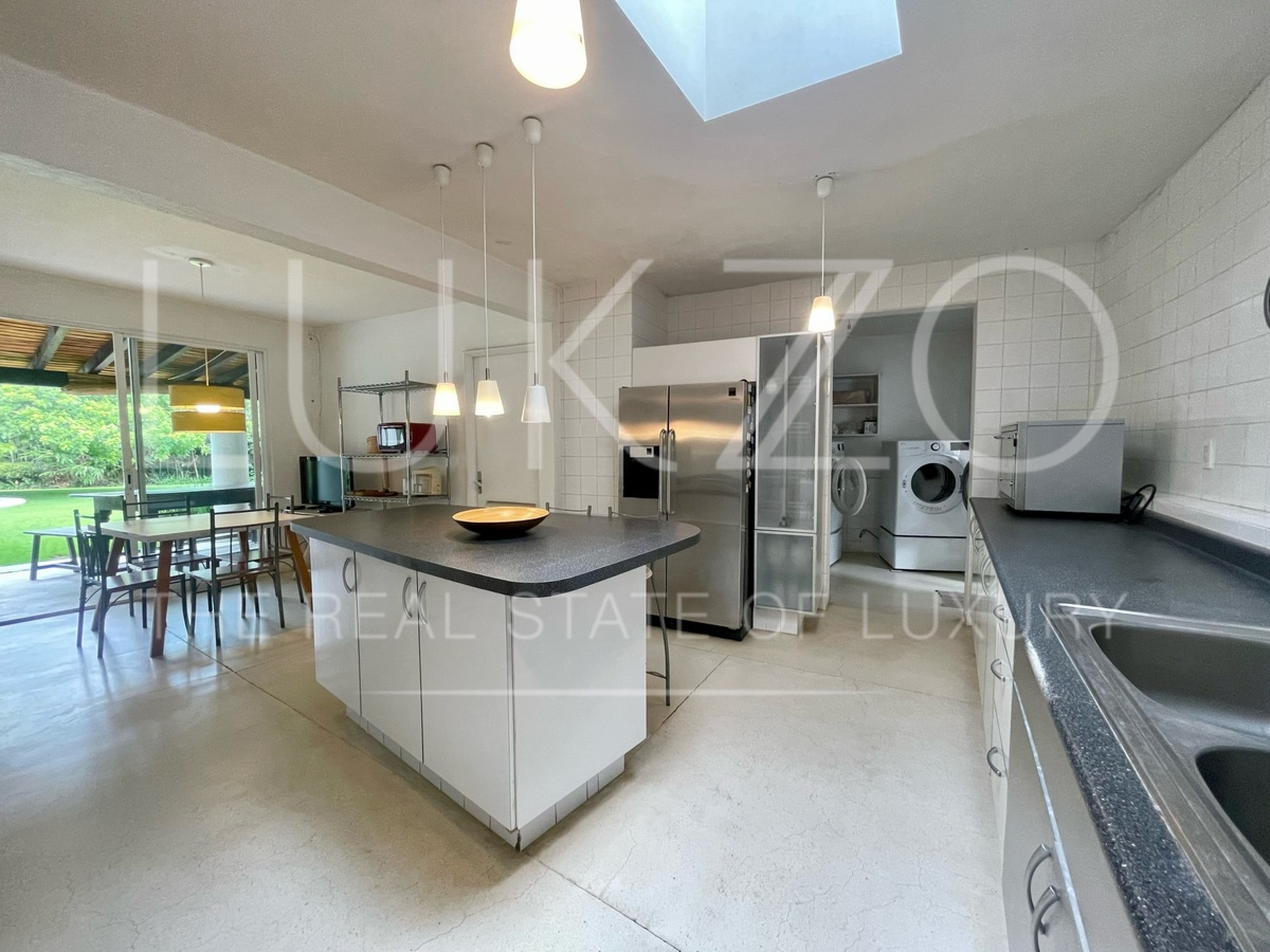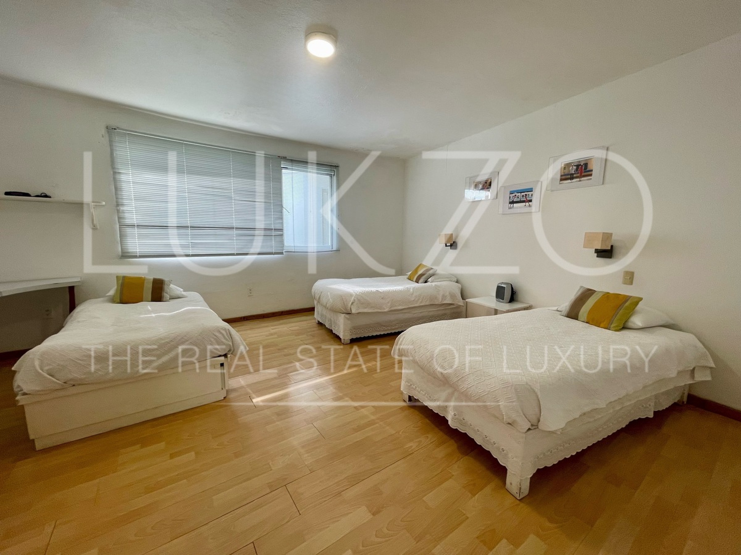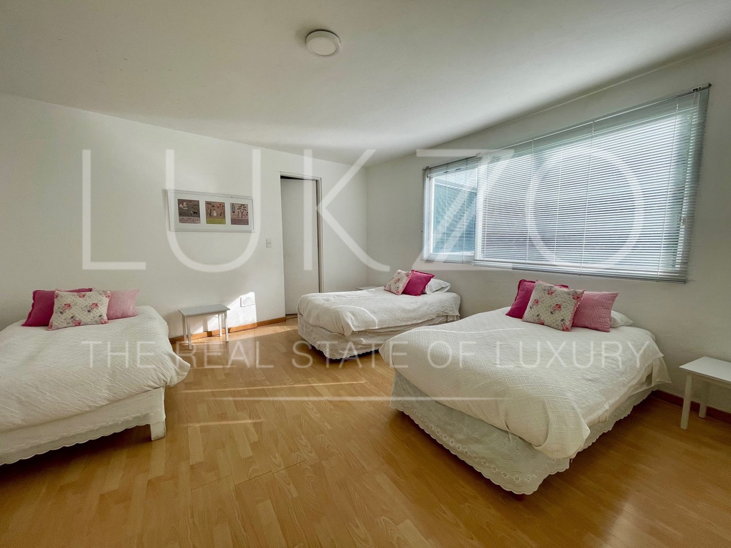 Con un terreno de 2,200 m² y 730 m² de construcción, la casa cuenta con cinco recámaras, cuatro baños y medio, sala y comedor espaciosos, cocina equipada con barra, terraza y un jardín maduro que se convierte en el escenario perfecto para disfrutar de reuniones familiares o momentos de descanso. Además, incluye estacionamiento para cuatro autos, área de lavandería, dos cuartos de servicio y es perfecta para recibir a tus mascotas.