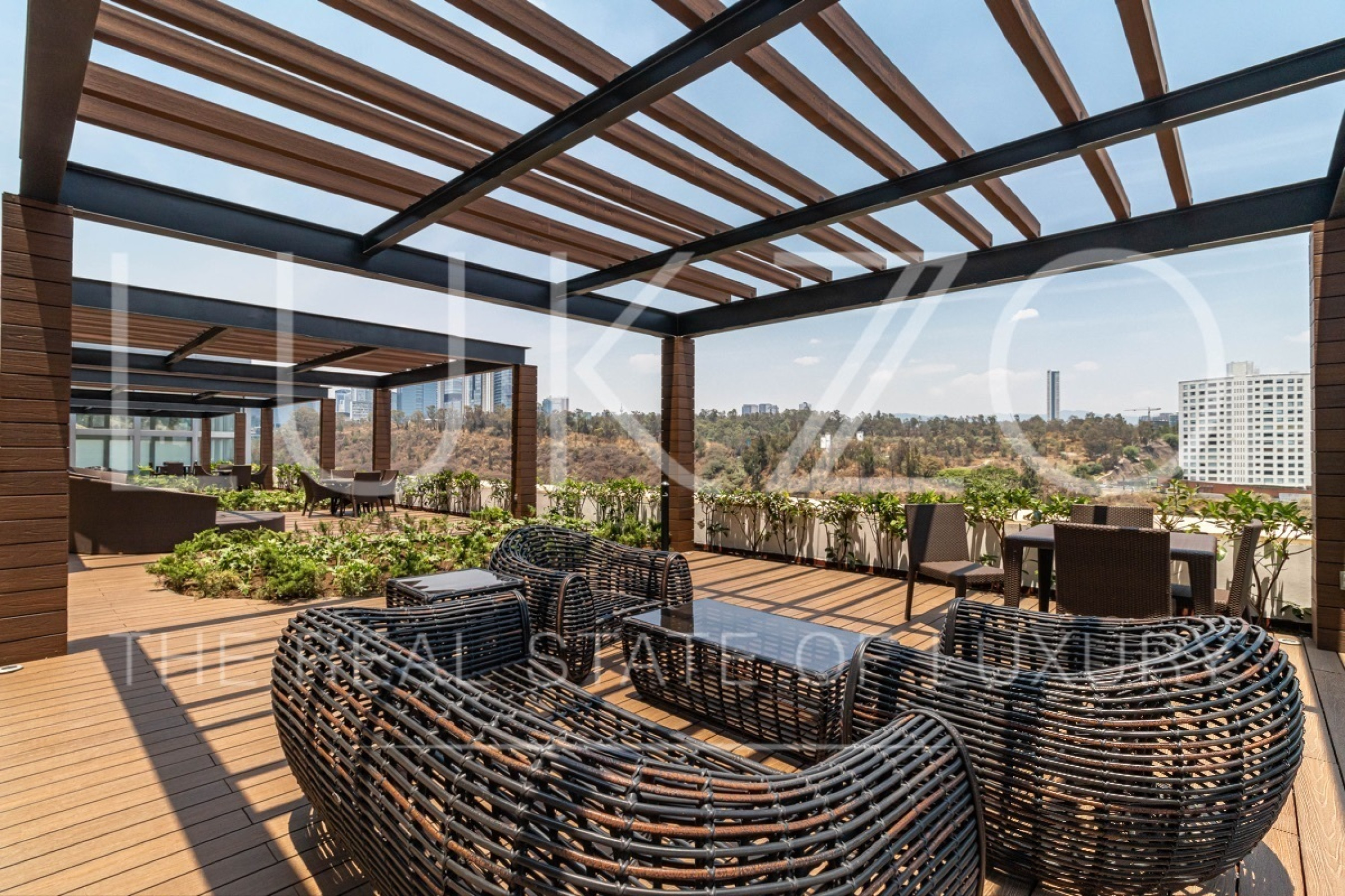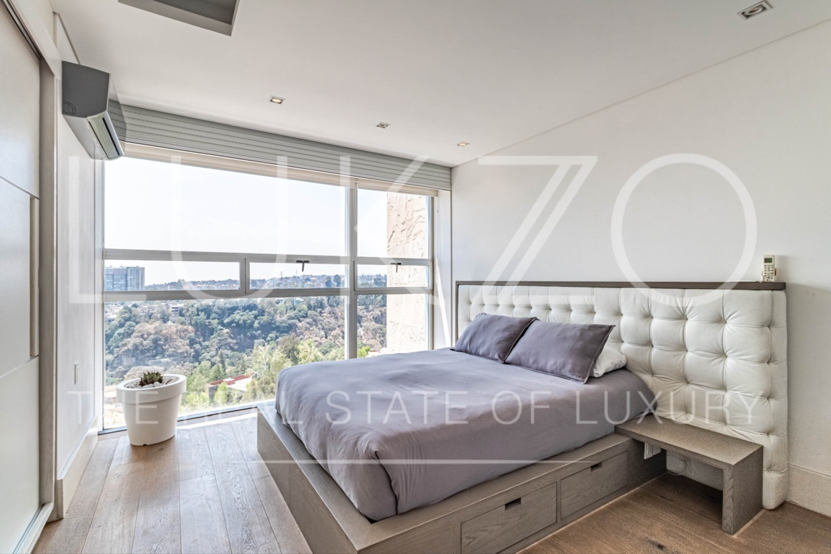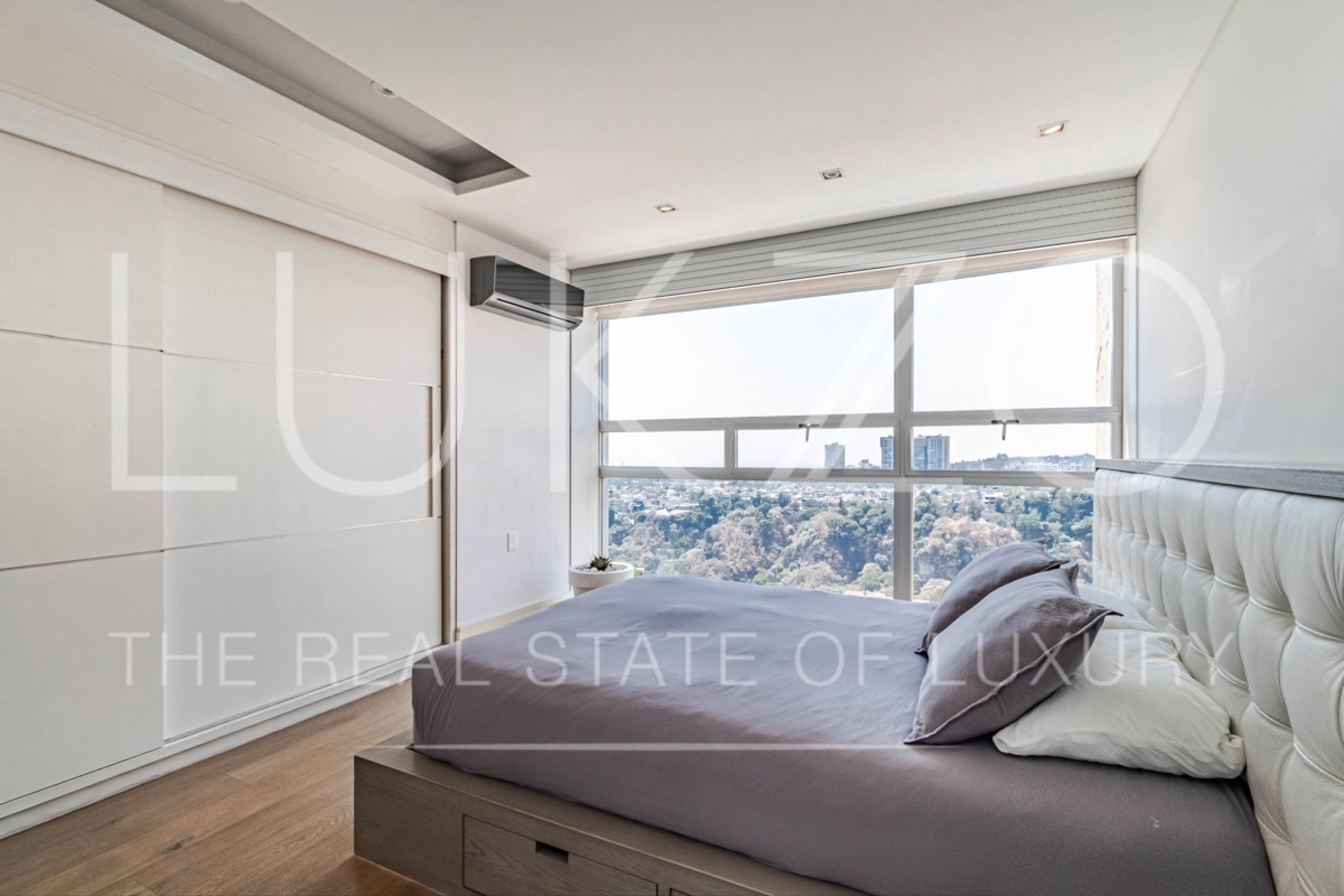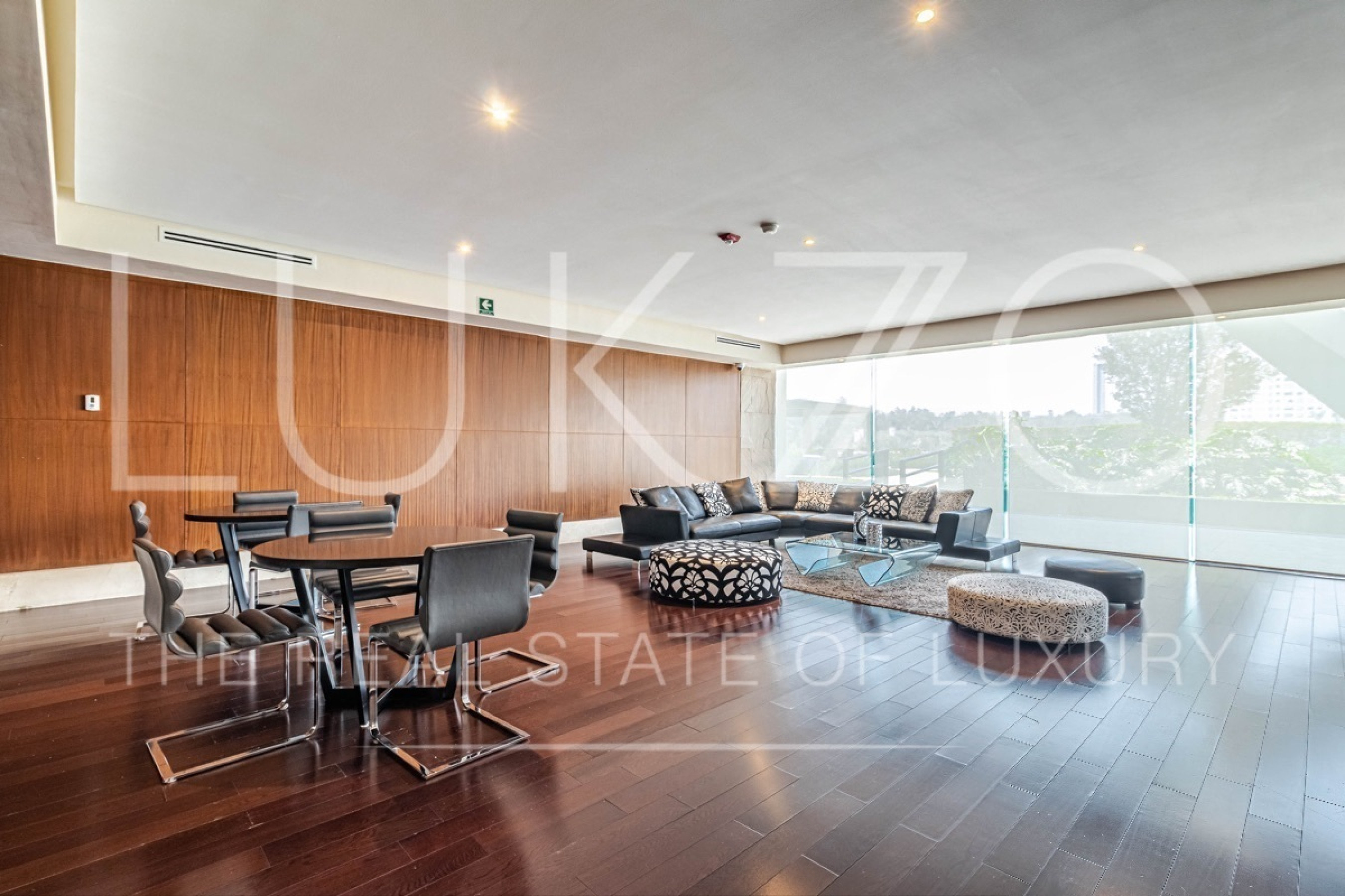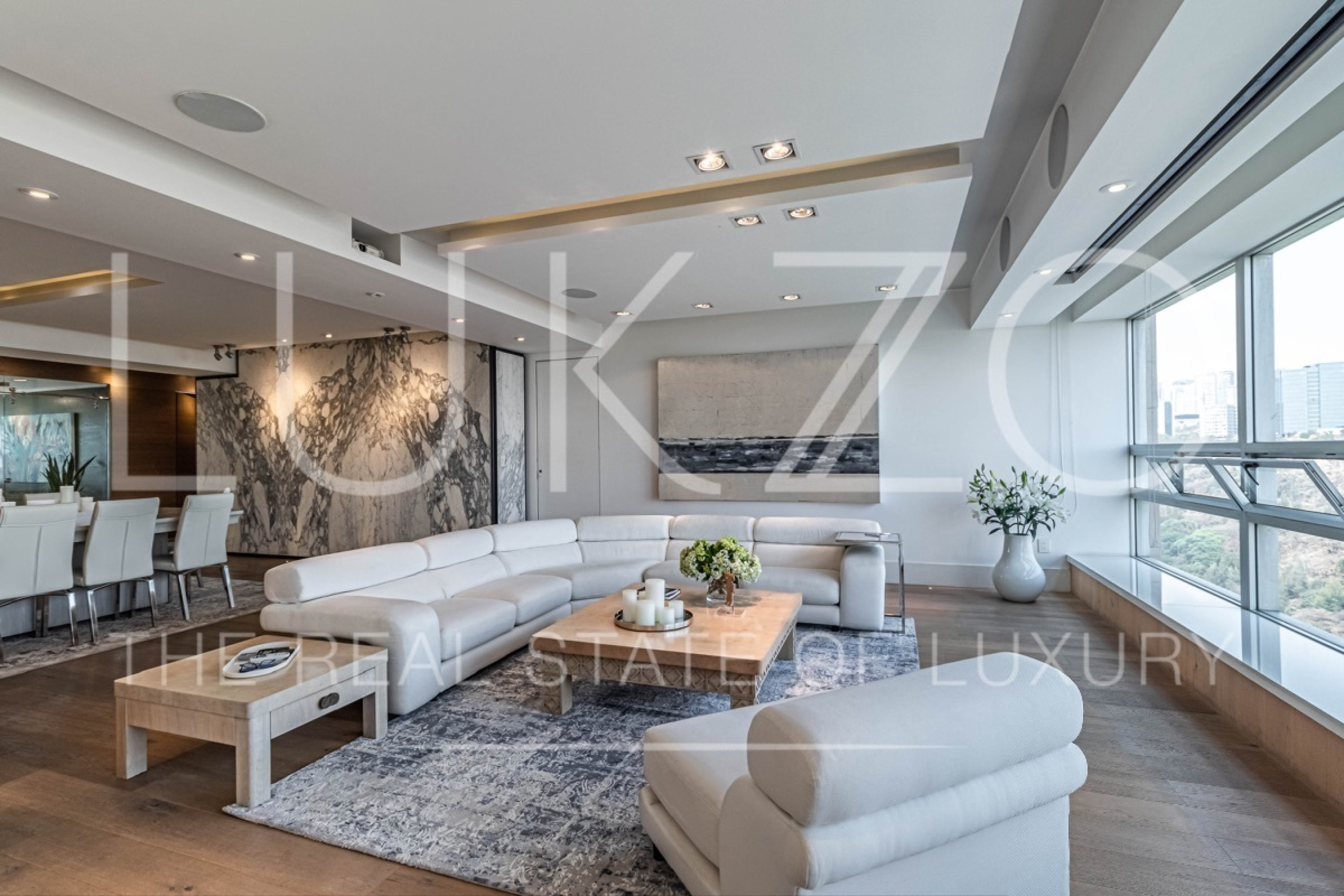 Departamento ubicado en Santa Fe, en la zona poniente de la Ciudad de México. Grandes ventanales hacen que sea muy iluminado. Las tres recamaras cuentan con baño. Sala comedor perfecta para comer y relajarse. En la sala hay una pantalla que se esconde en el techo y home theater. La cocina equipada ideal para disfrutar preparando nuevas recetas. Tiene horno, microondas, lavavajillas y estufa.