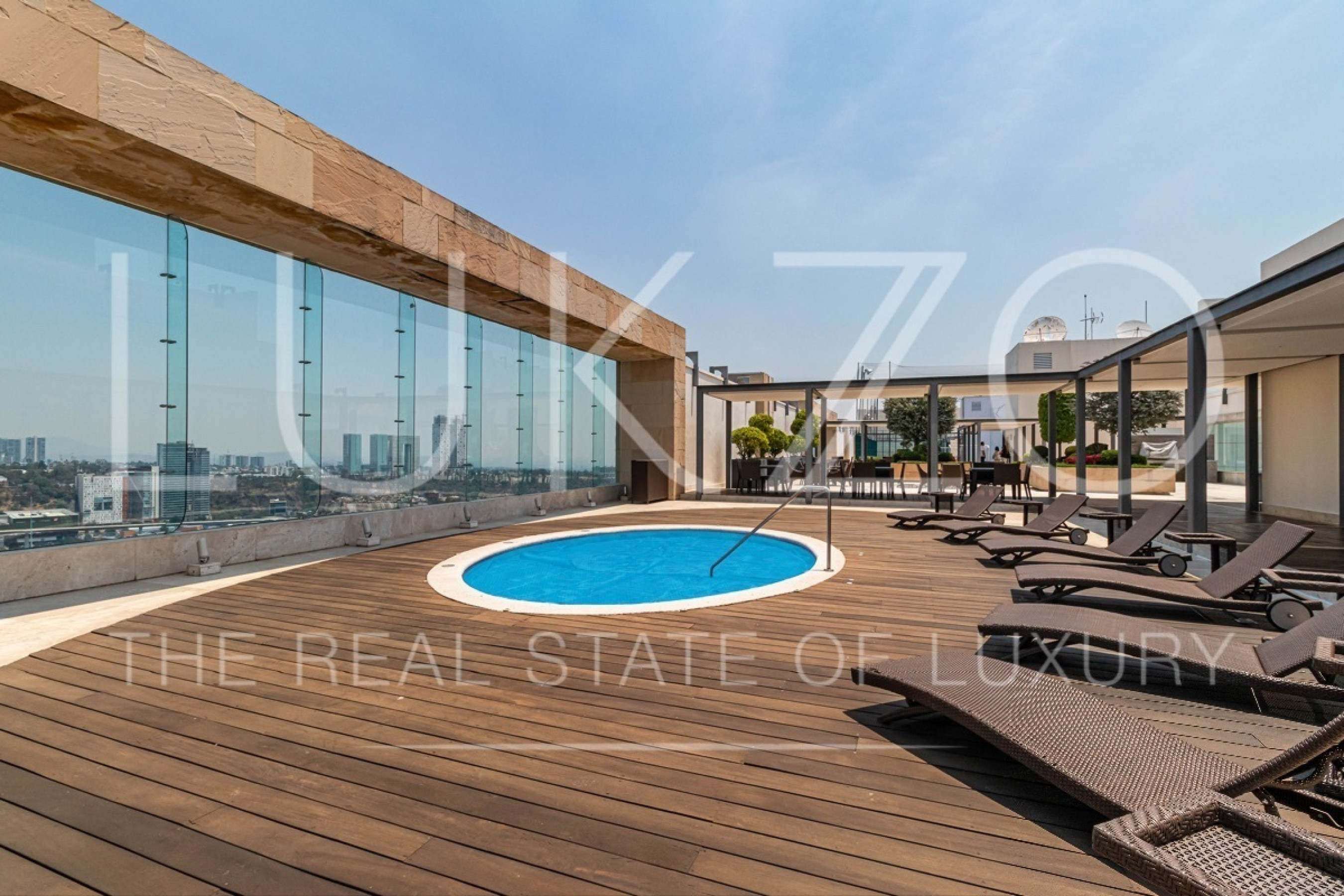 El edificio cuenta con dos albercas. Una interior y otra exterior, Sauna-vapor y jardínes, jacuzzi, zona de asadores perfecto para hacer reuniones con familia y amigos, cine, ludoteca, salon de ventos. En la zona hay todo lo necesario para vivir confortablemente sin salir de la colonia. Restaurantes, tiendas, centros comerciales, bancos, escuelas y universidades. El acceso a la autopista urbana es fácil.