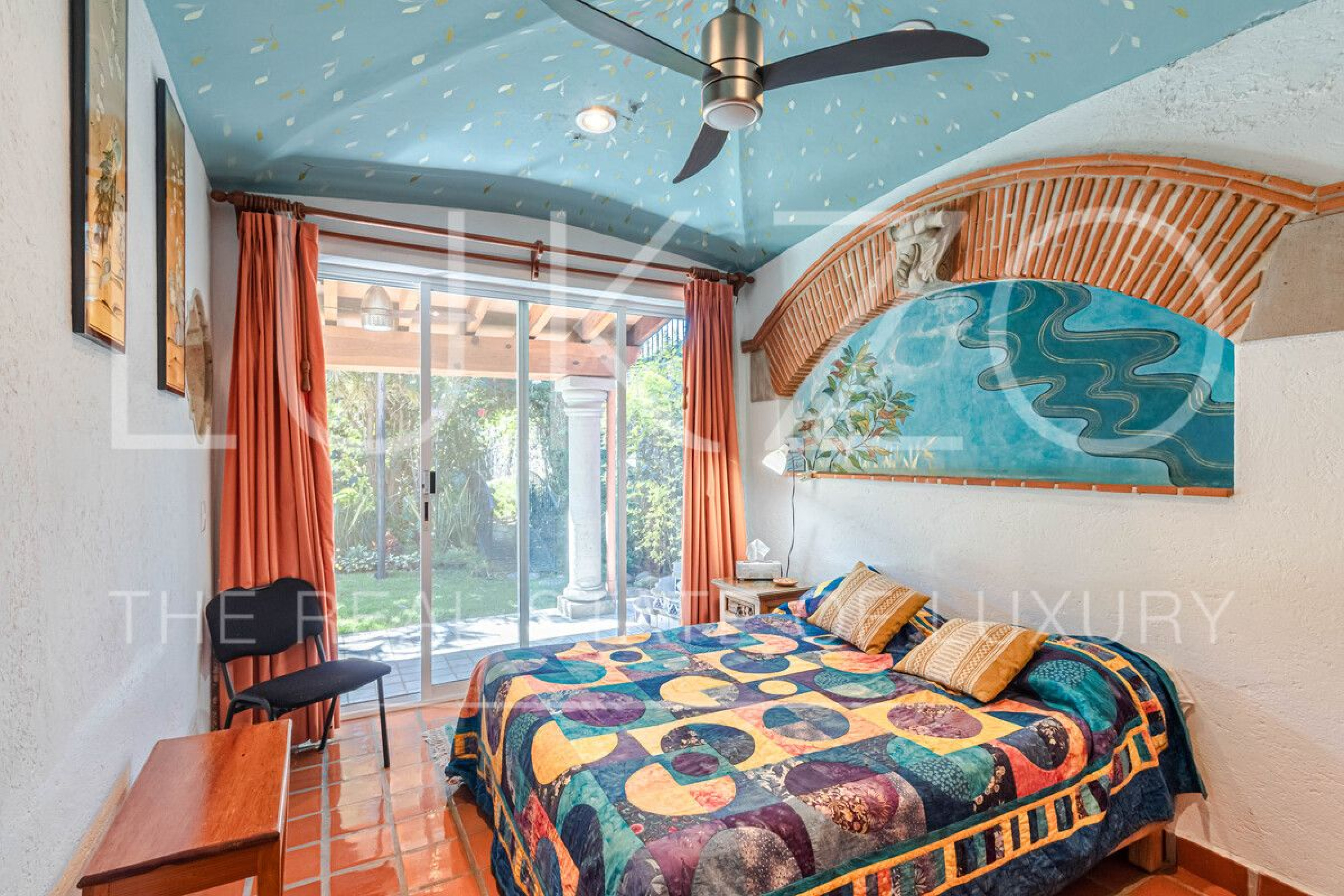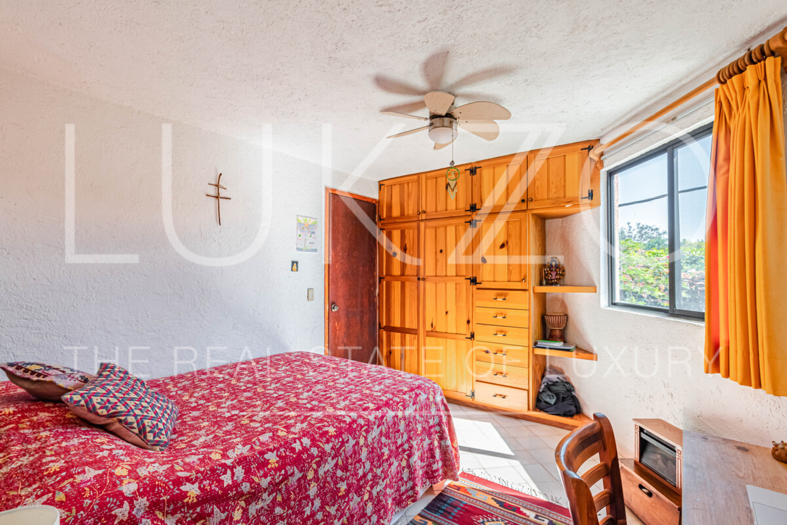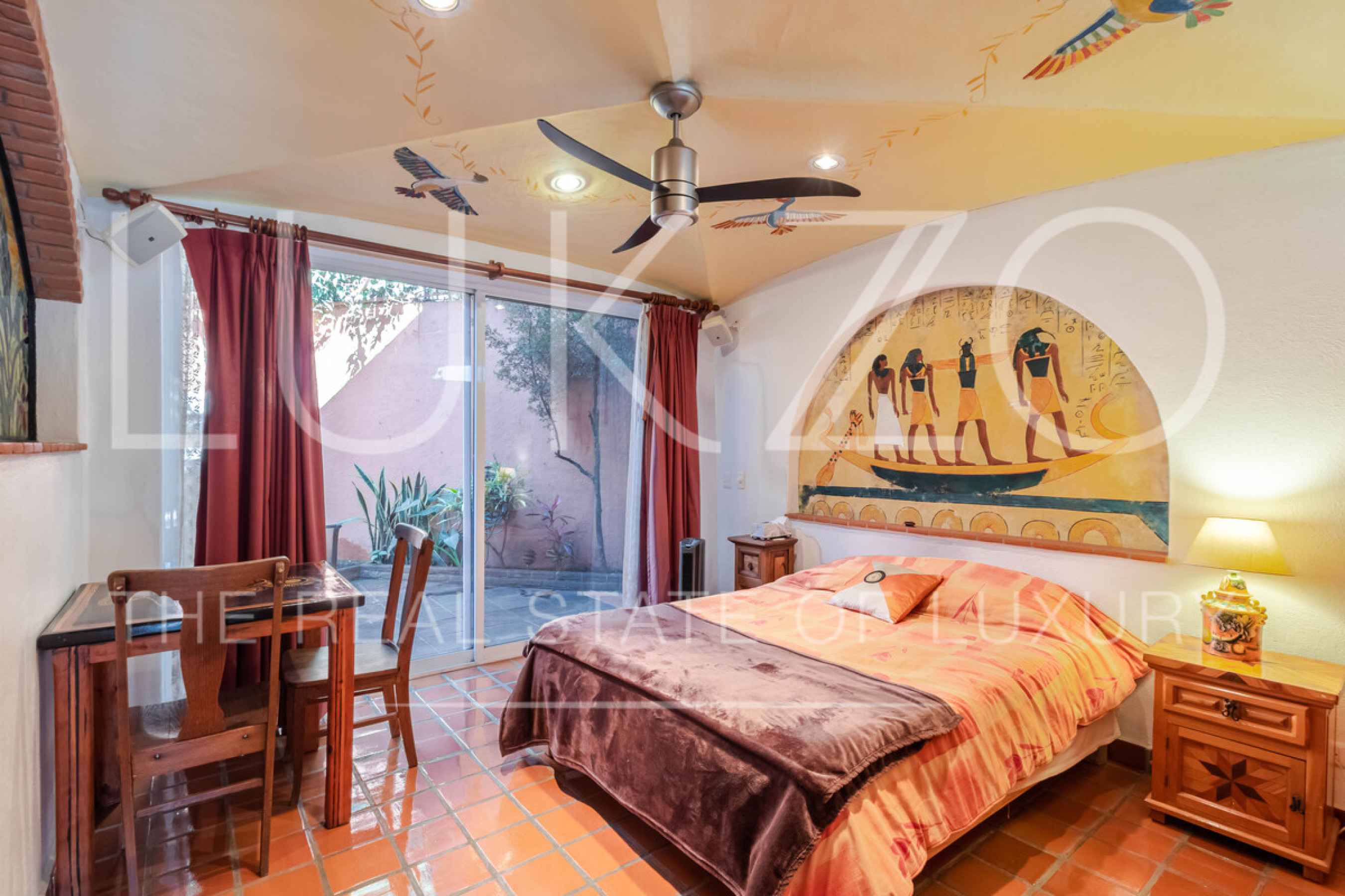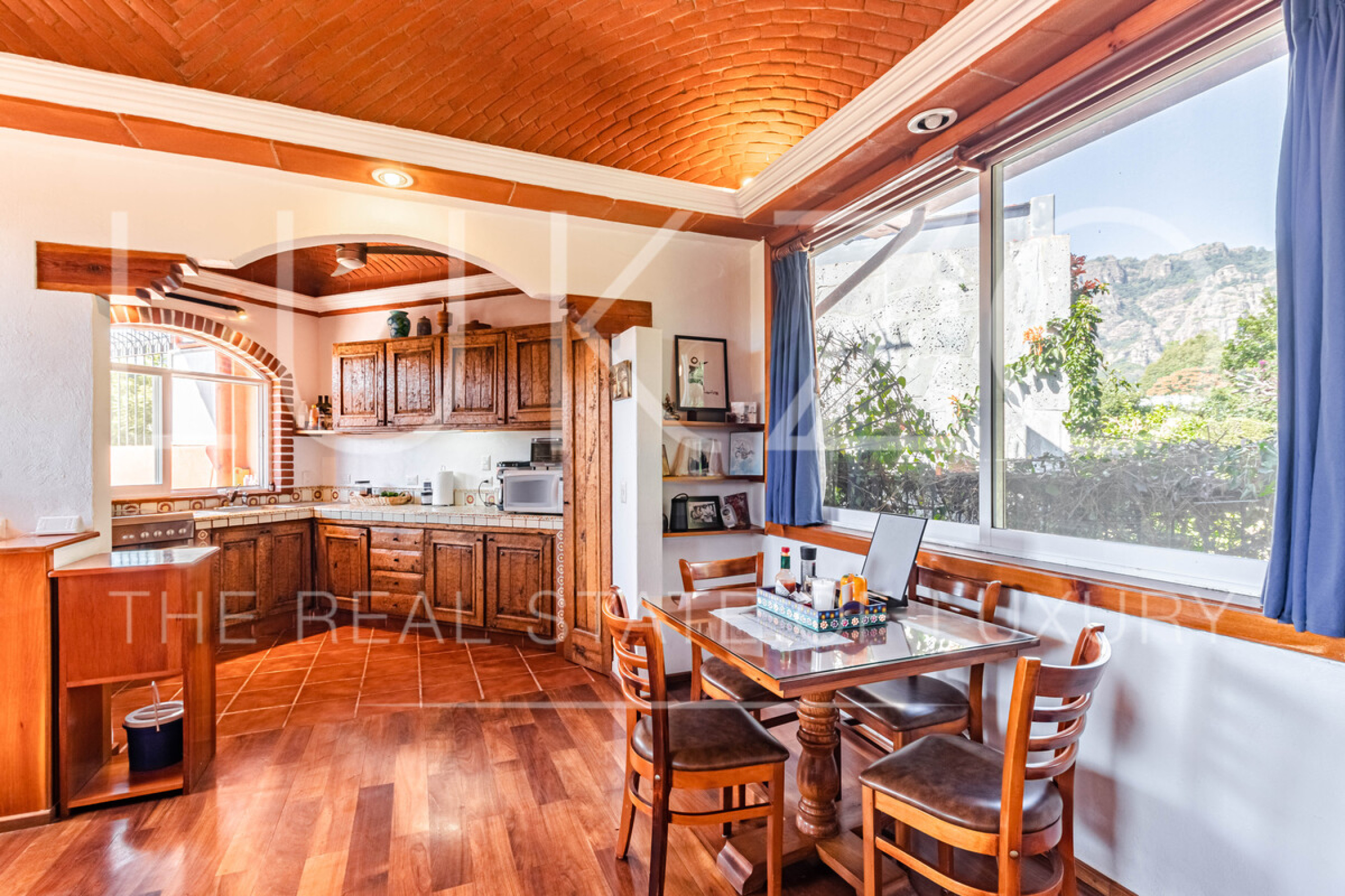 La segunda casa es de dos pisos con techos altos de ladrillo, pisos de mármol y de madera. Vitrales, frescos, y un jardín con fuente. En esta casa hay tres recámaras con baños completos. Terraza o sala al aire libre con chimenea con vista al jardín. Cuenta con cocina integral.